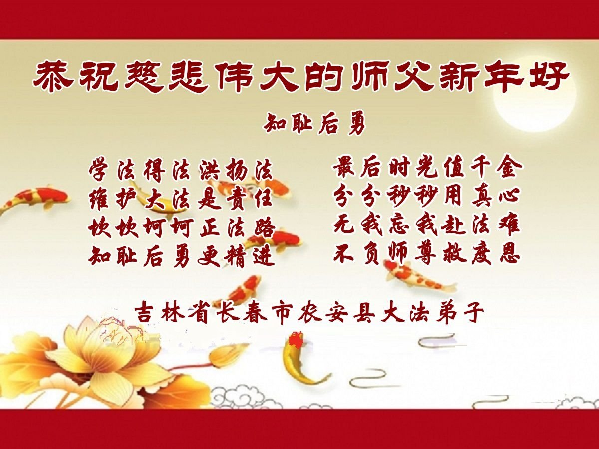 回家後我還惦記著和我一同到公安局的那位同修是否也安全到家了,半夜十二點發完正念後,我就跪在師父法像前求師父把那位同修救回來。早晨做飯時,我耳朵裏有個聲音說,已經回來了。清清楚楚的連續說了兩遍,我非常感動,心裏謝謝師父!