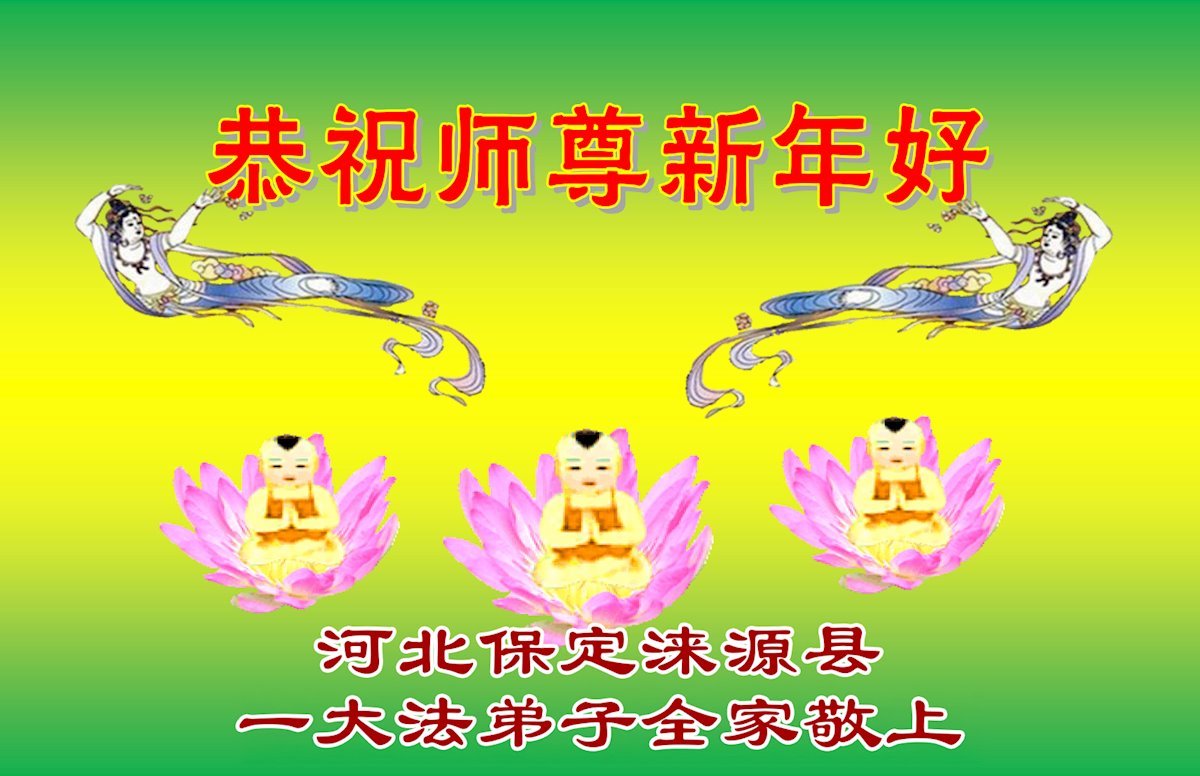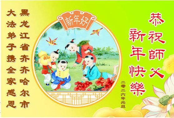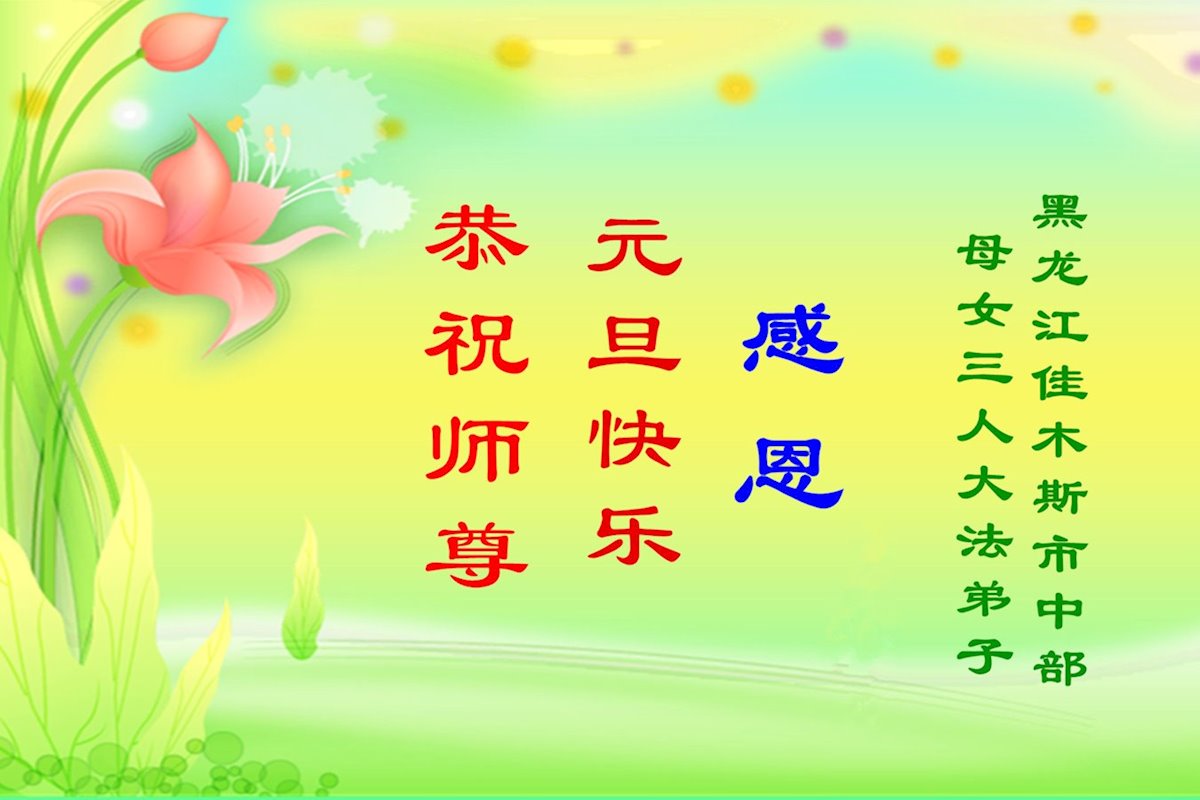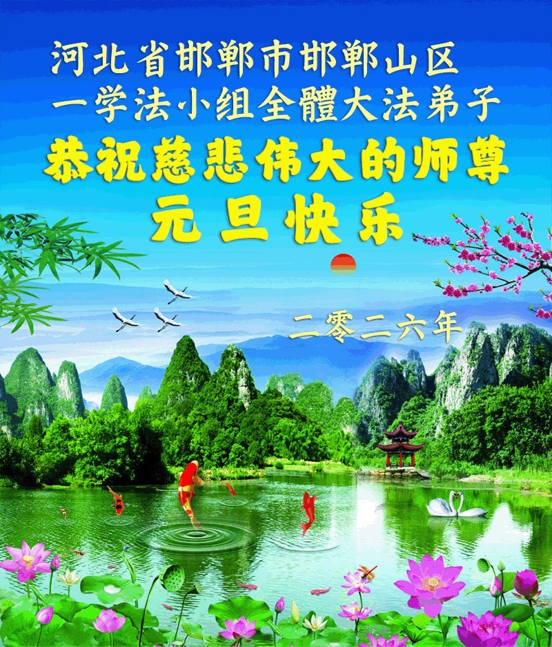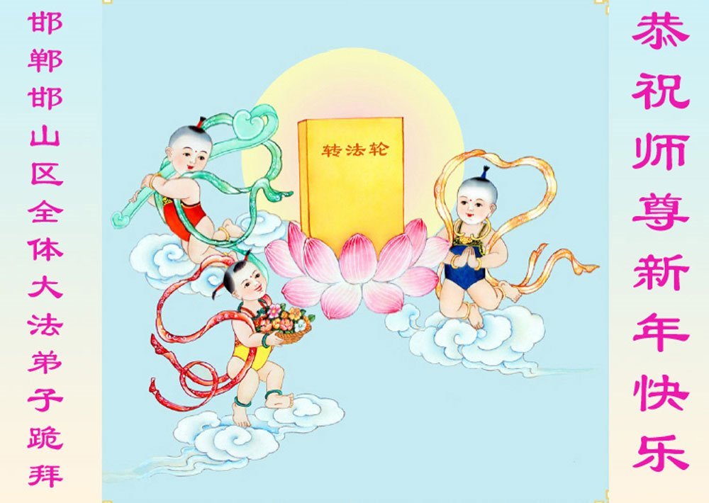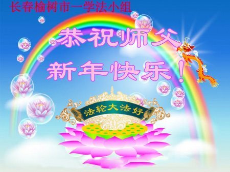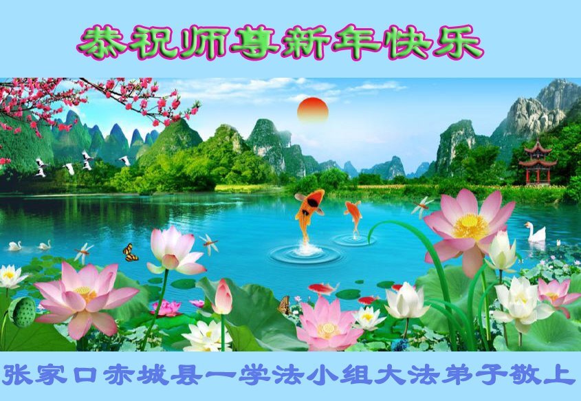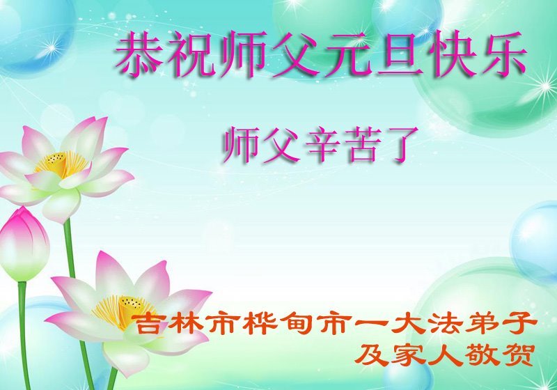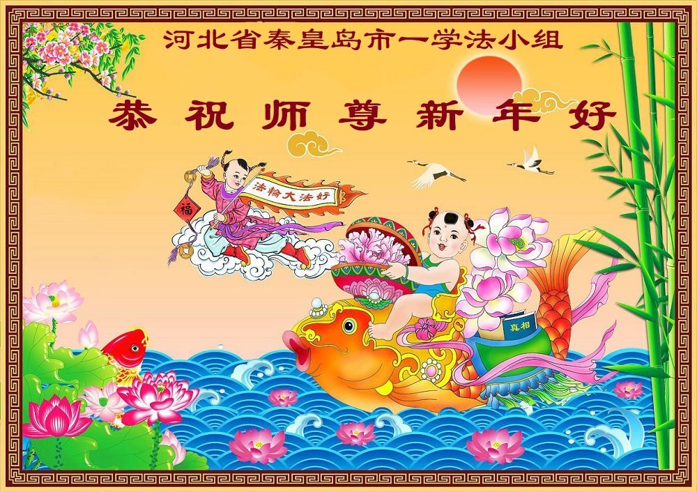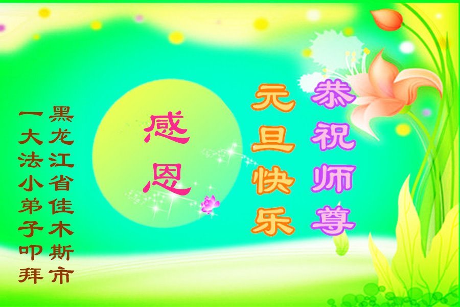 以下是部份來自中國各省、市、地區的學法煉功小組、講真相小組、資料點大法弟子們敬致師尊的新年賀詞賀卡: