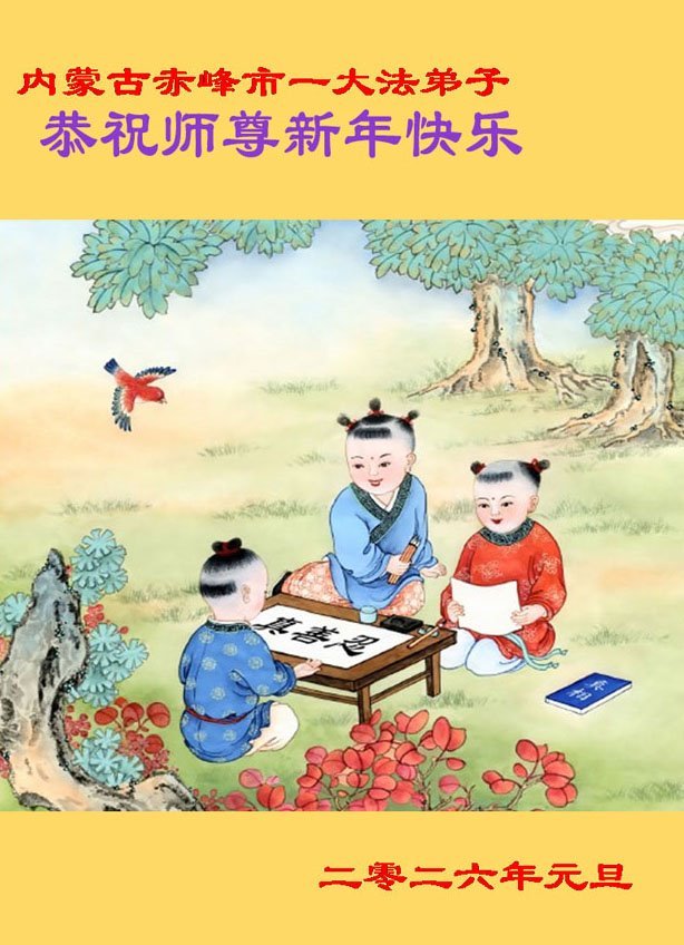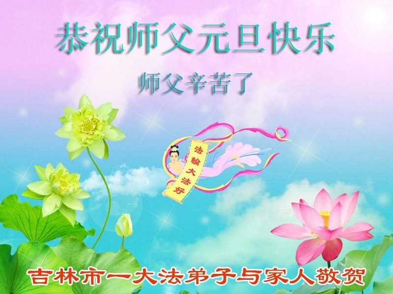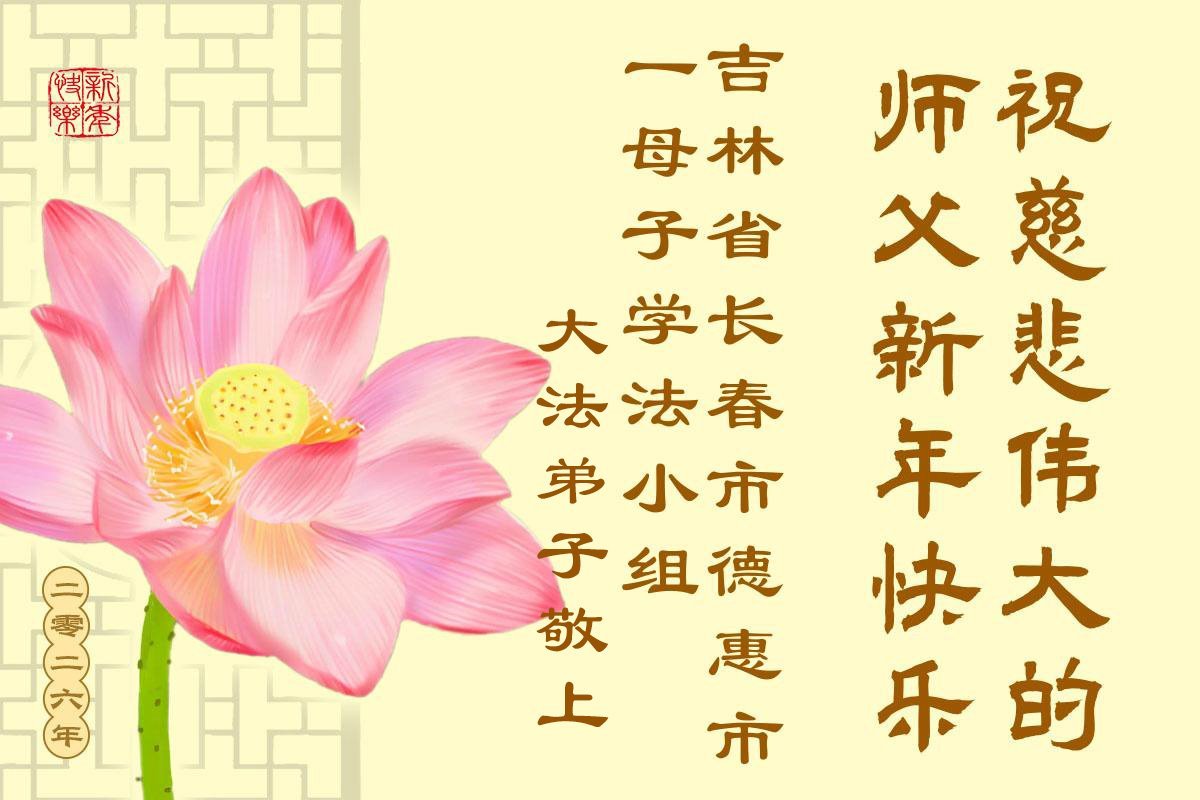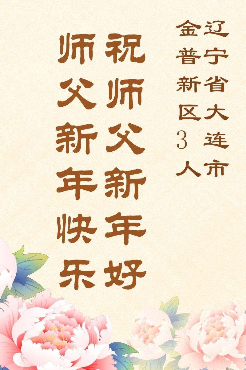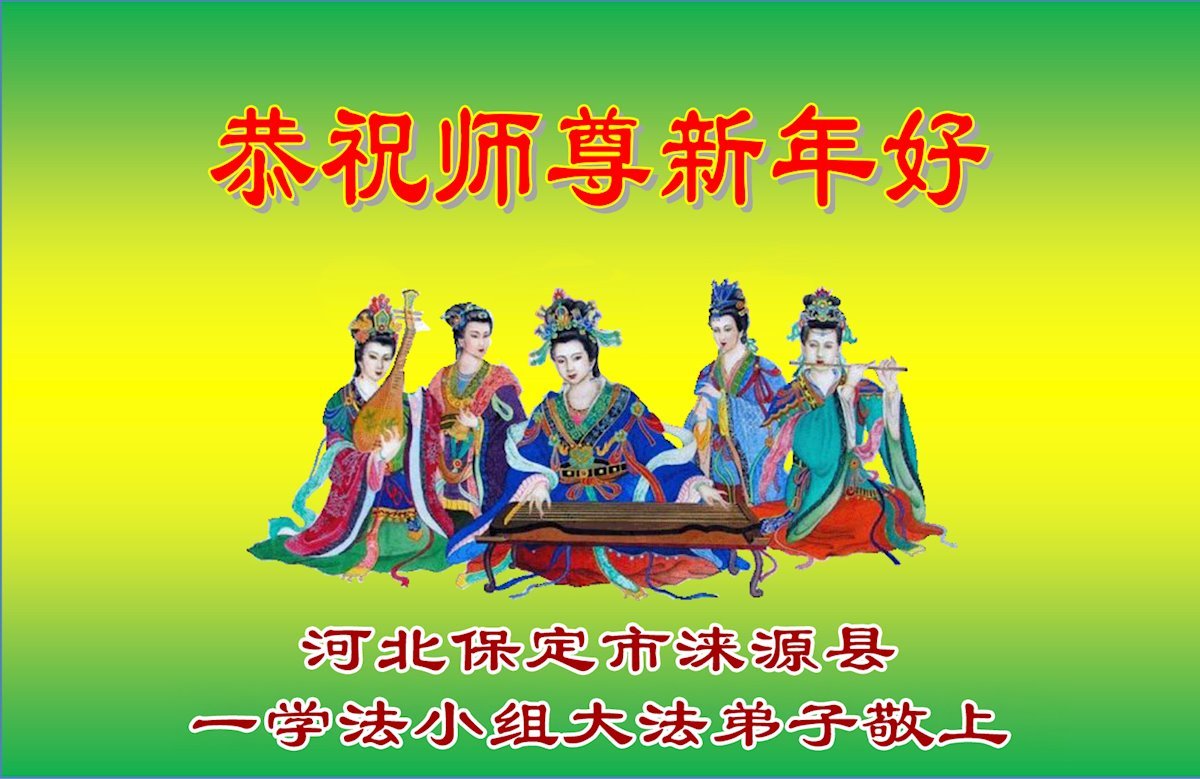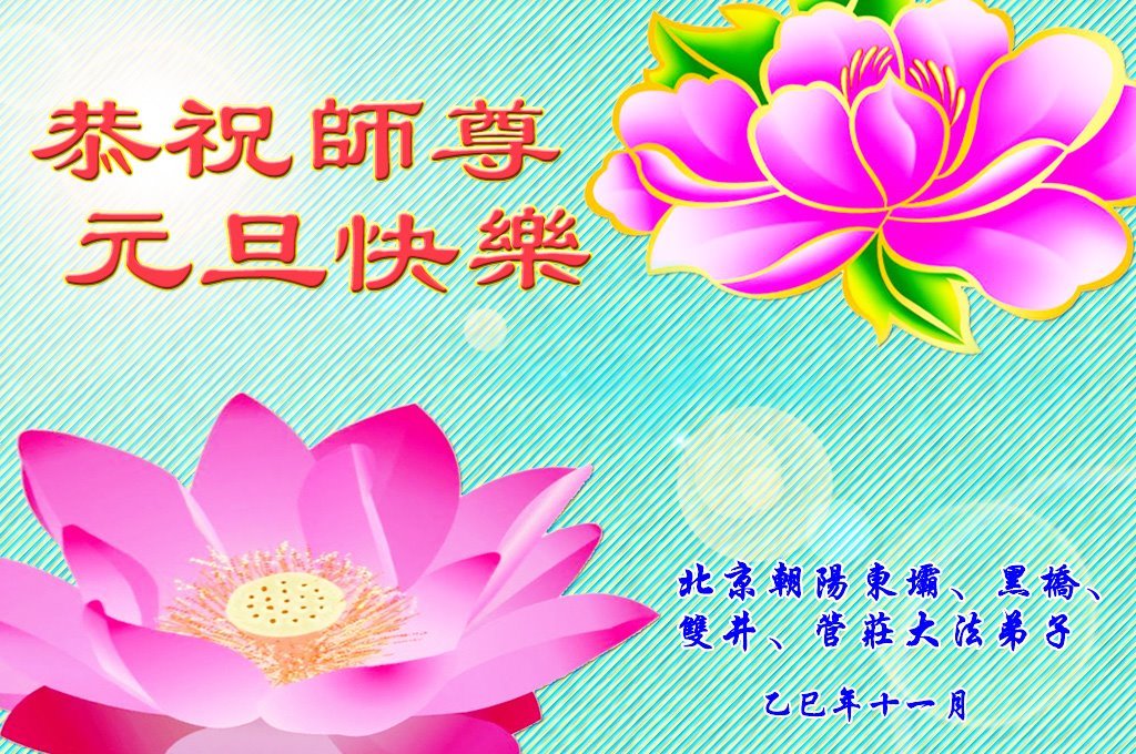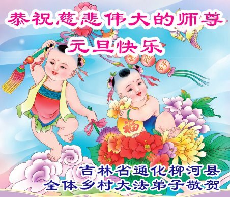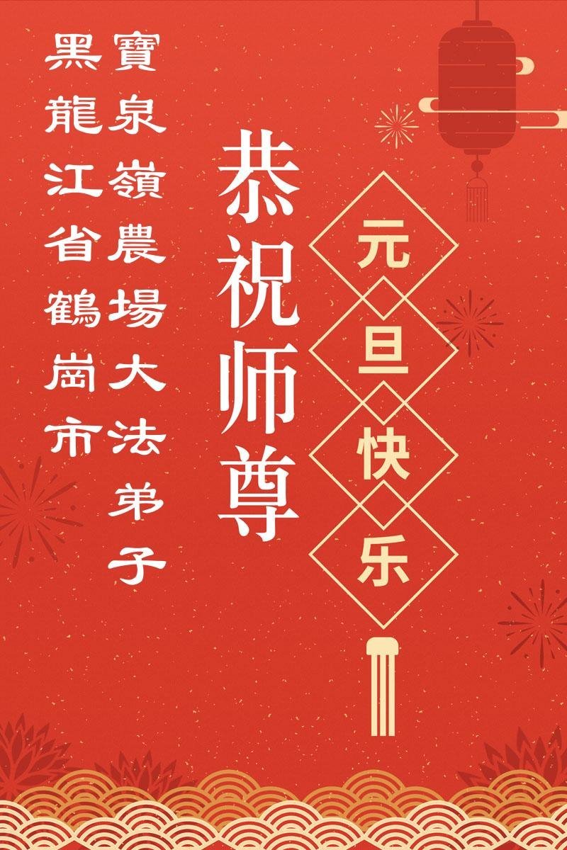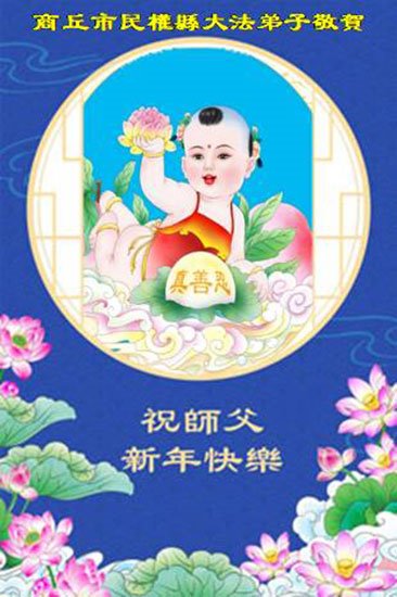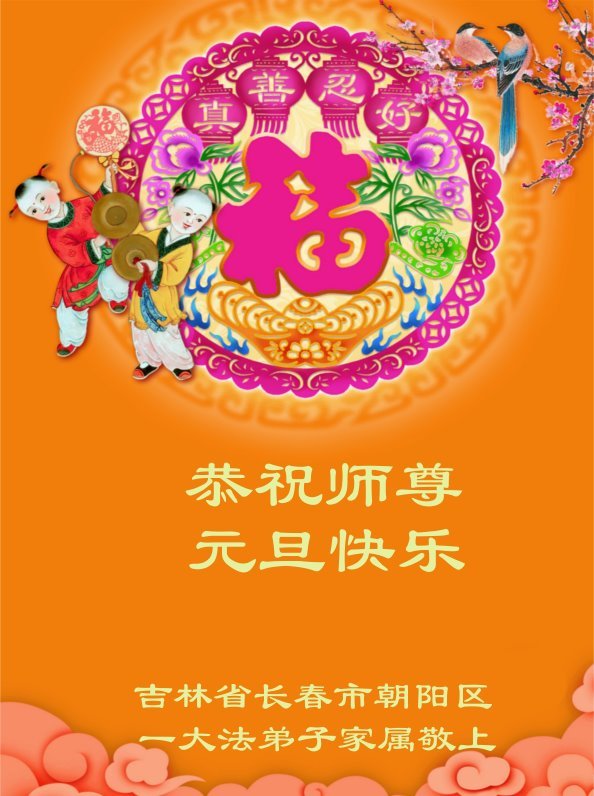以下是部份來自中國各省、市、地區的學法煉功小組、講真相小組、資料點大法弟子們敬致師尊的新年賀詞賀卡: