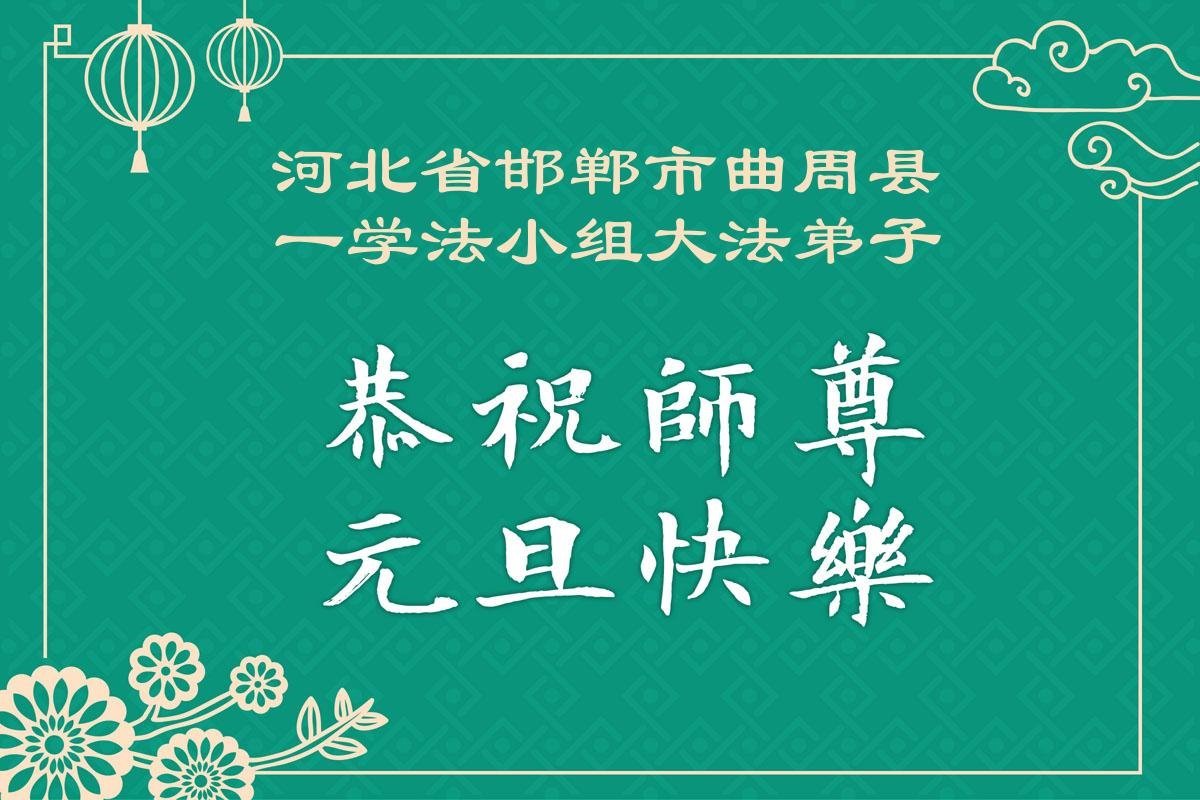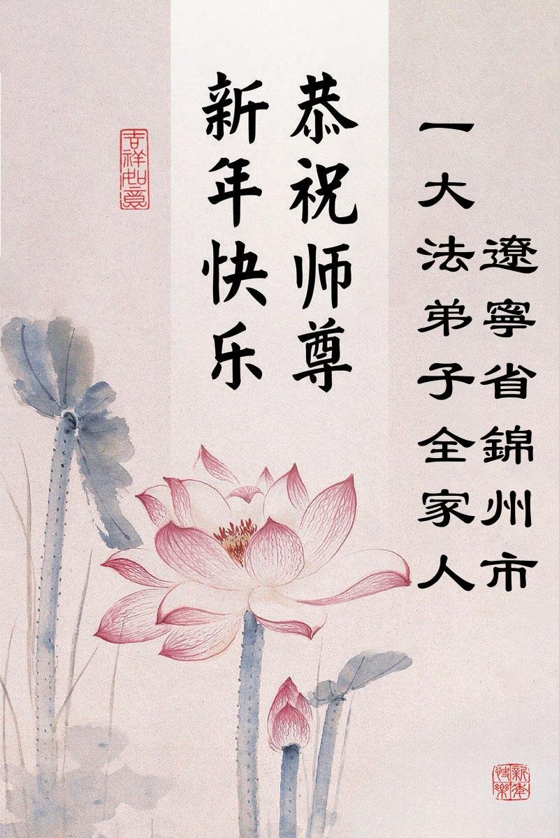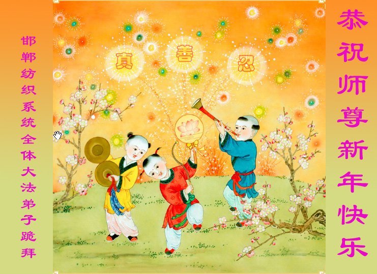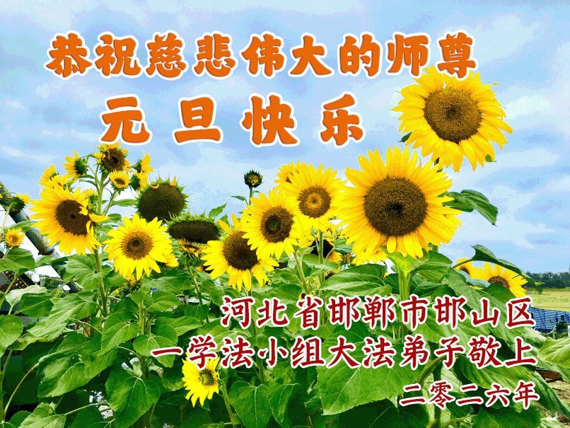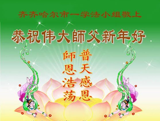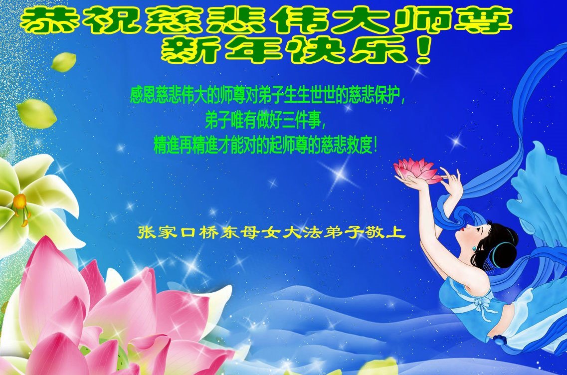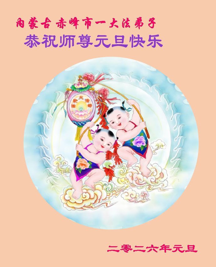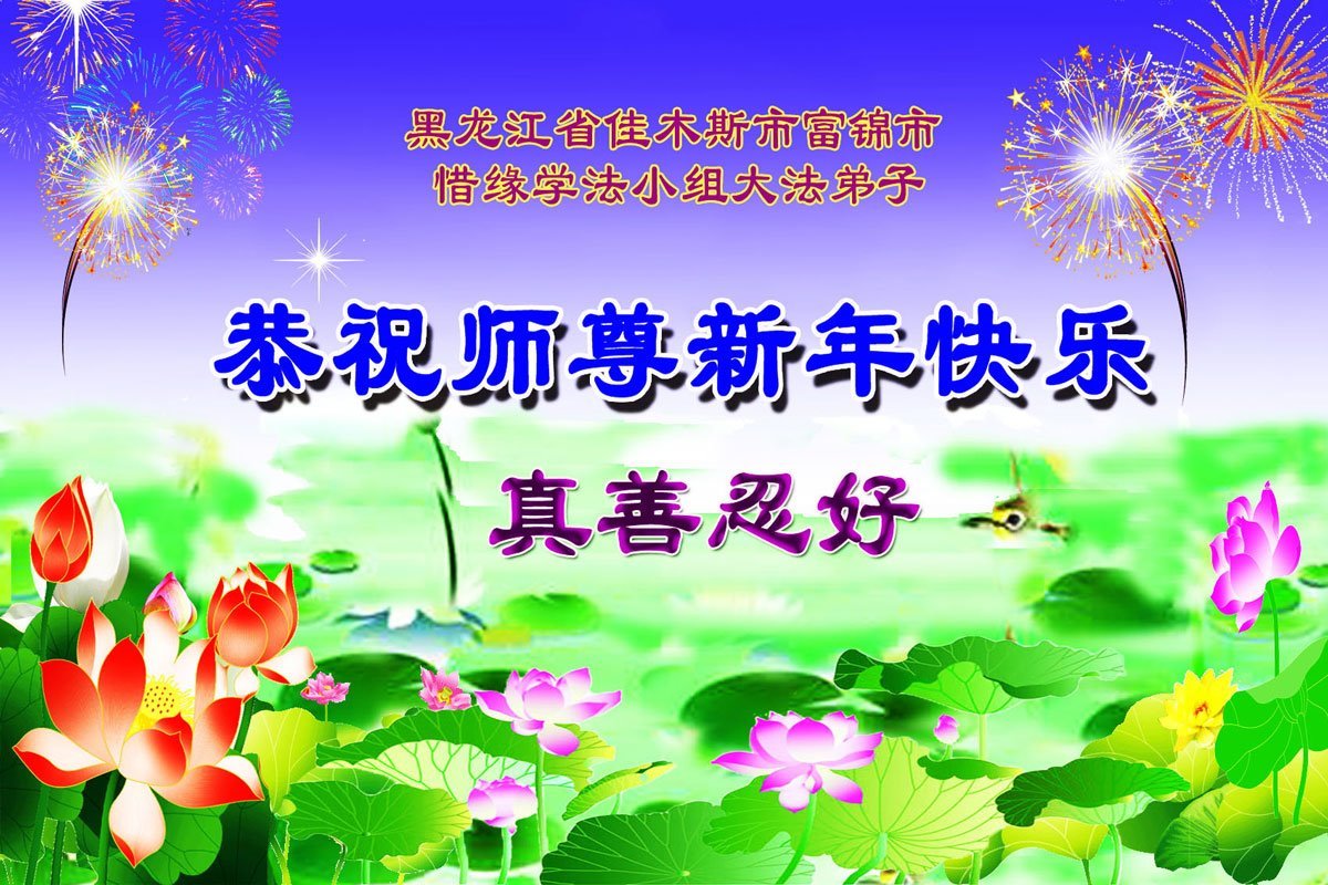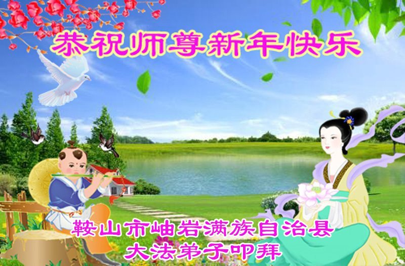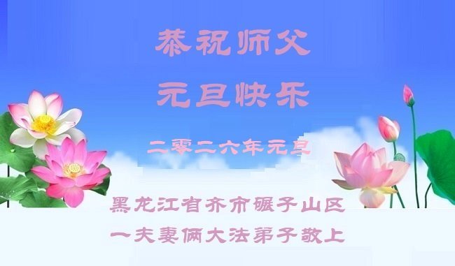 以下是部份來自中國各省、市、地區的學法煉功小組、講真相小組、資料點大法弟子們敬致師尊的新年賀詞賀卡:
