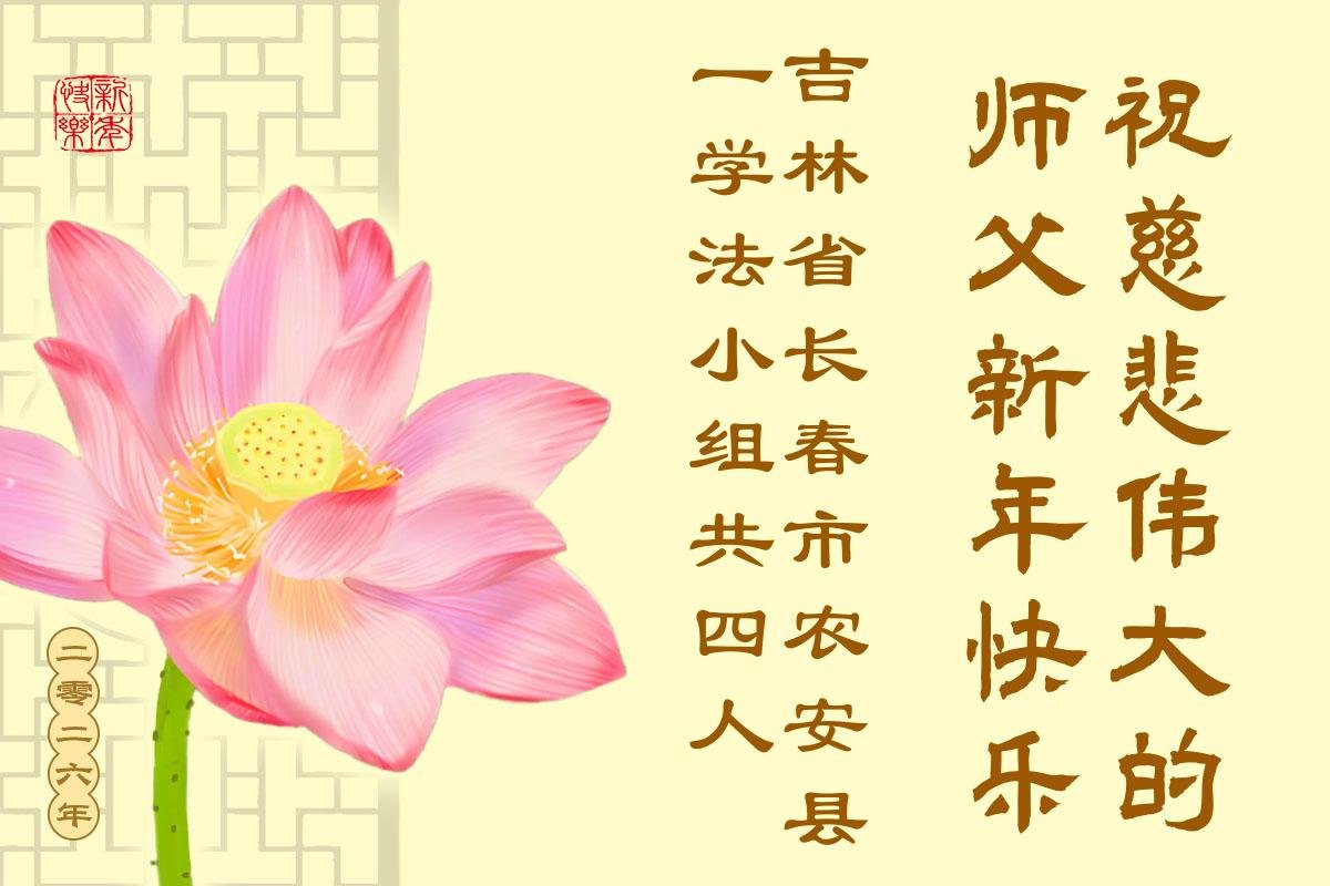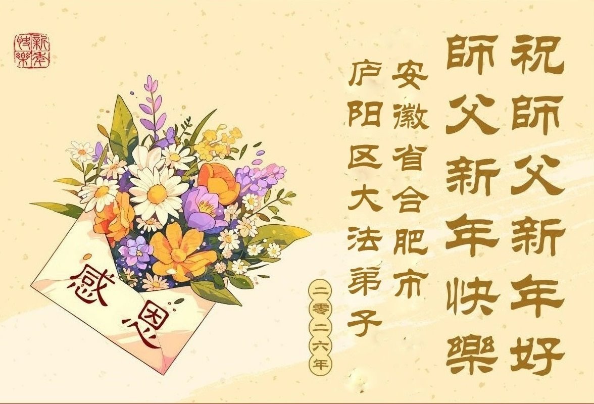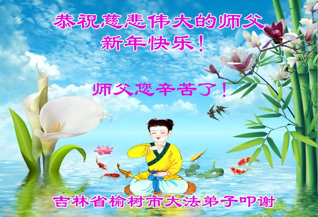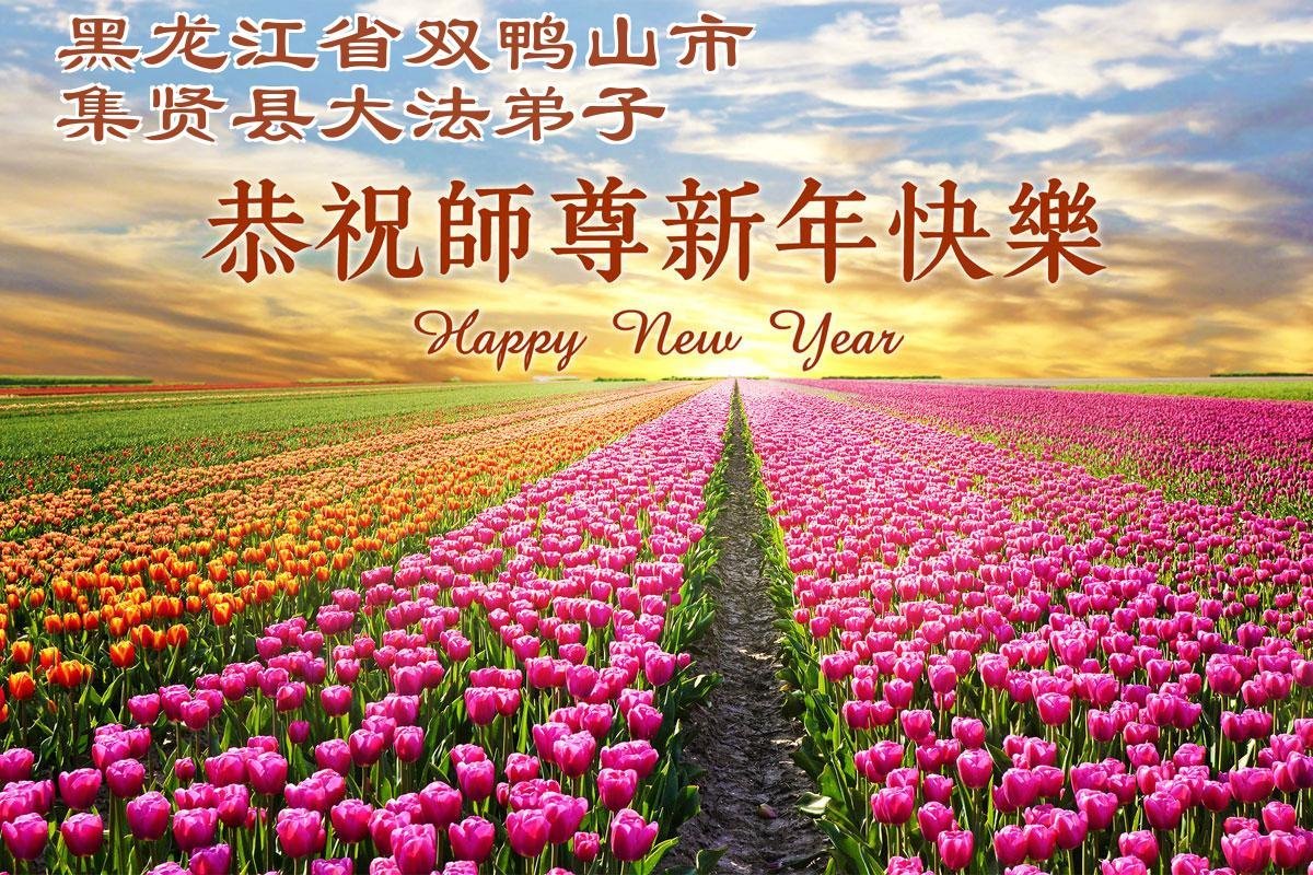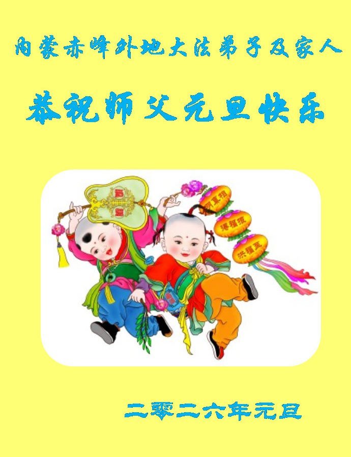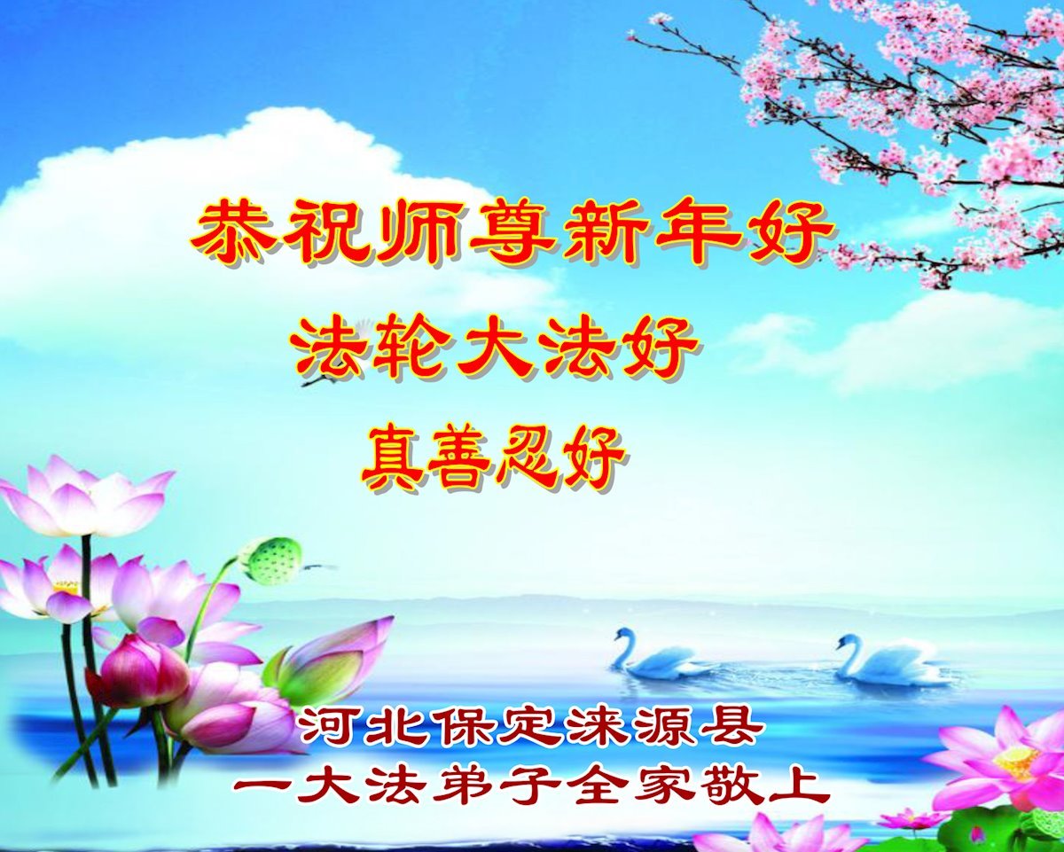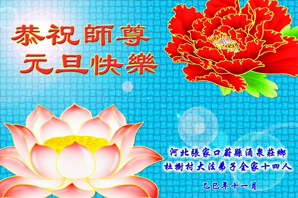 以下是部份來自中國各省、市、地區的學法煉功小組、講真相小組、資料點大法弟子們敬致師尊的新年賀詞賀卡: