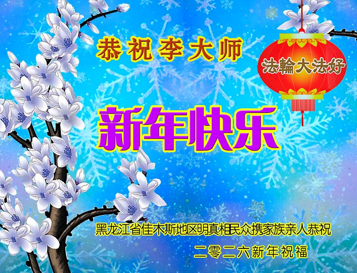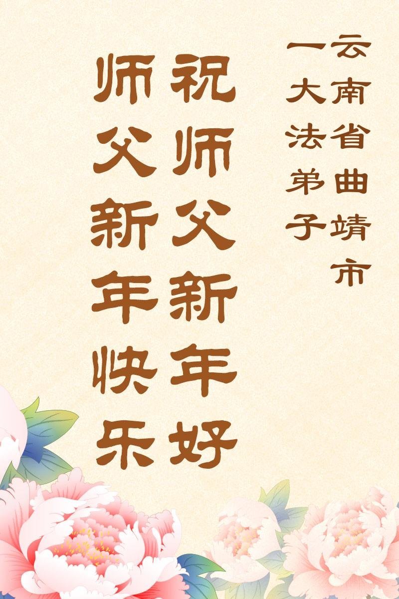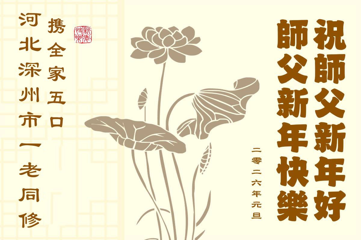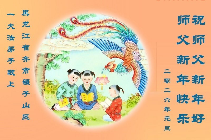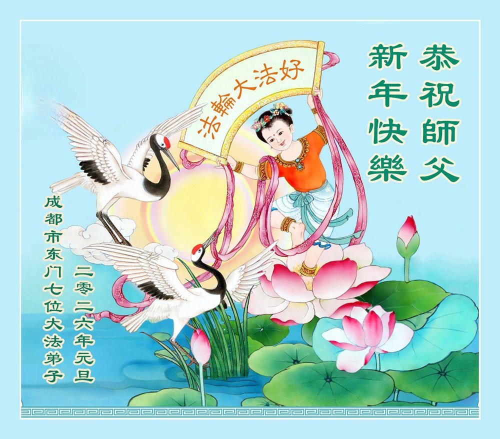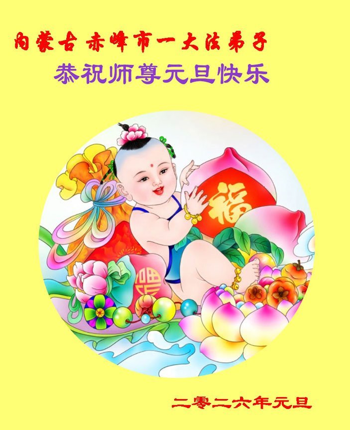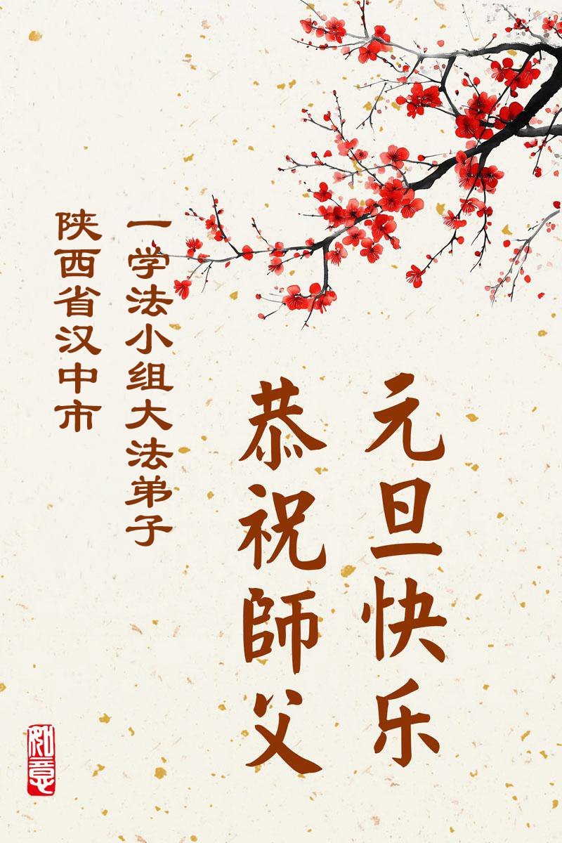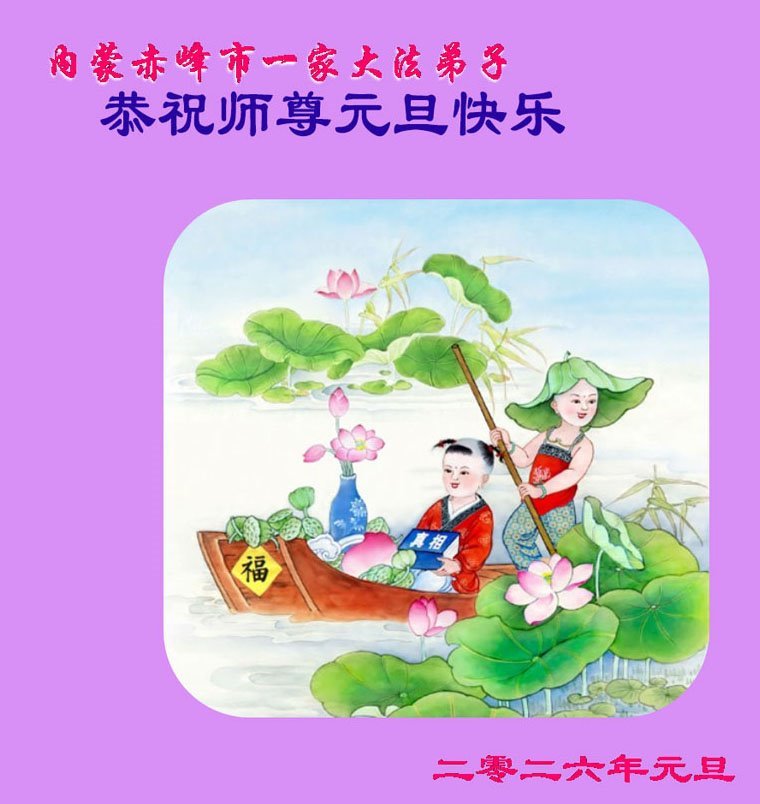 以下是部份來自中國各省、市、地區的學法煉功小組、講真相小組、資料點大法弟子們敬致師尊的新年賀詞賀卡: