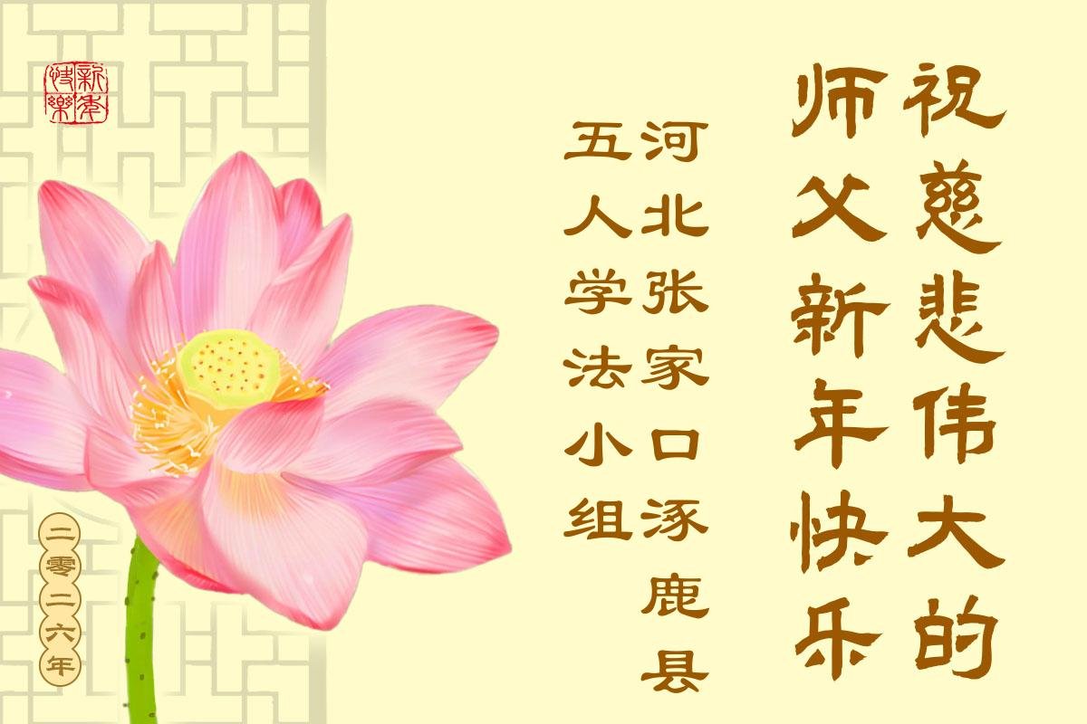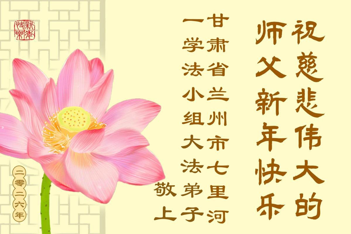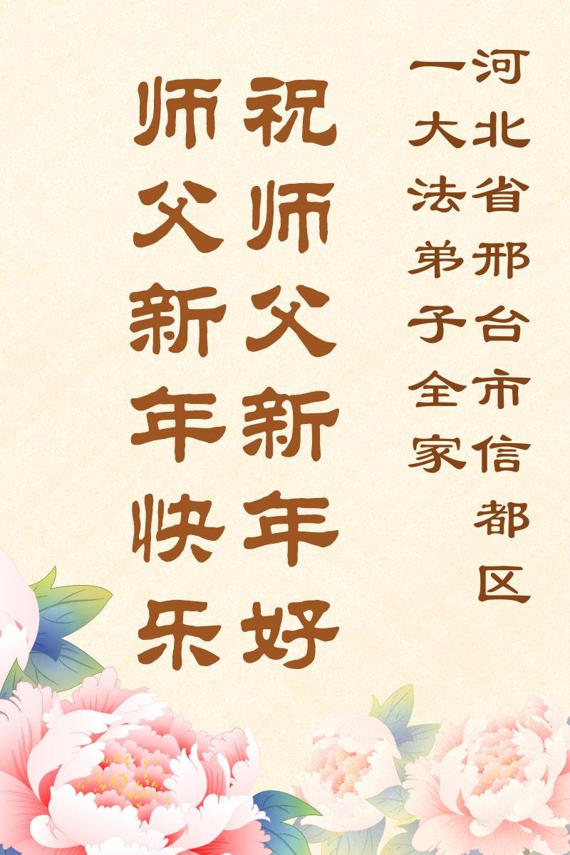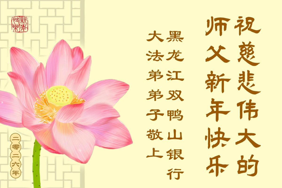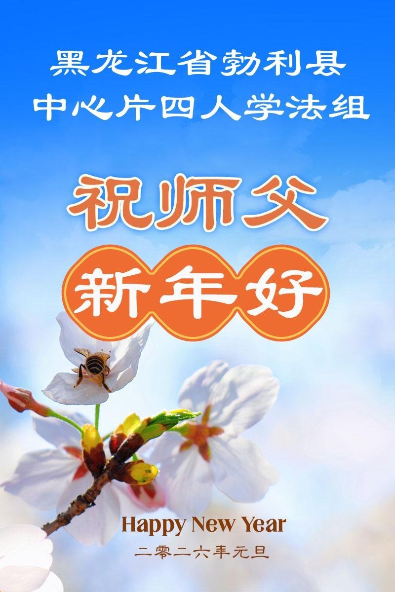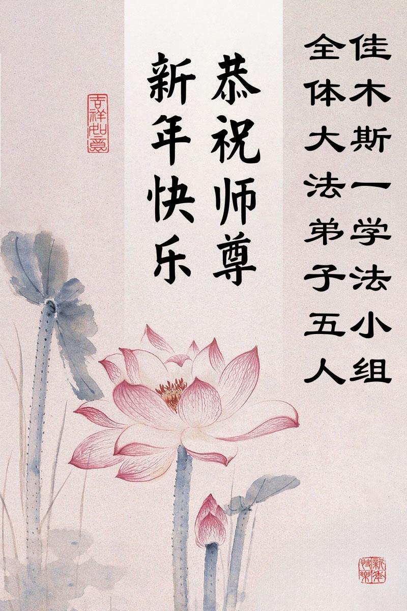 以下是部份來自中國各省、市、地區的學法煉功小組、講真相小組、資料點大法弟子們敬致師尊的新年賀詞賀卡: