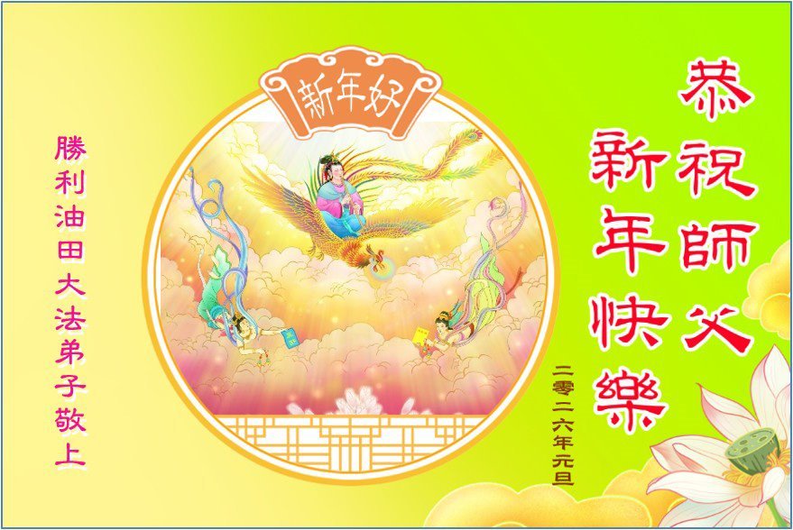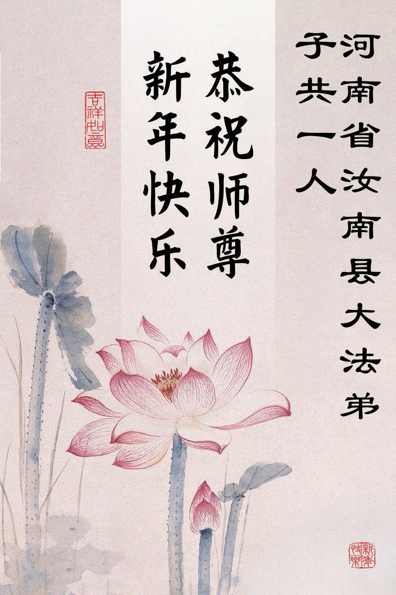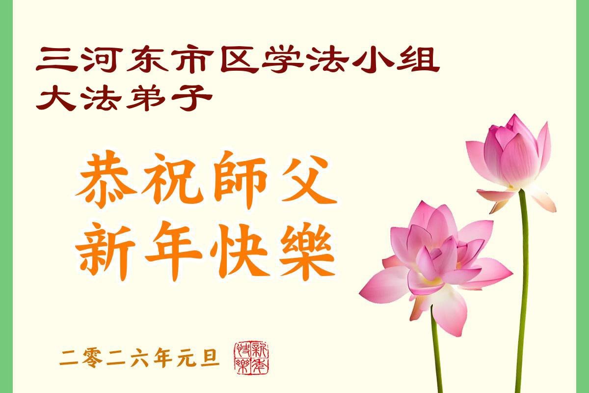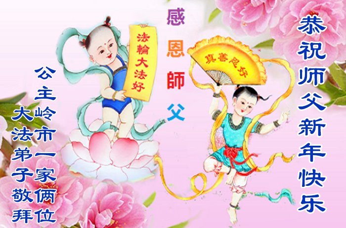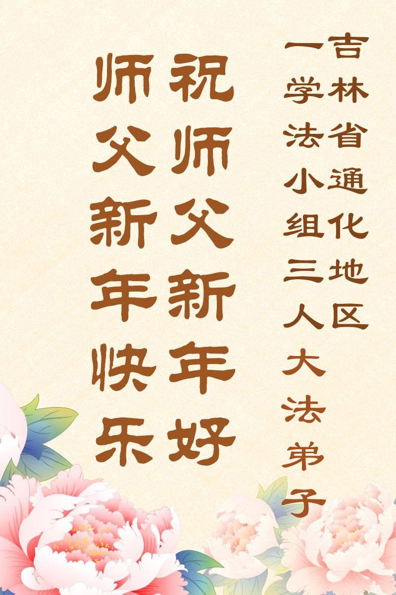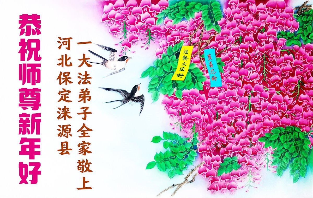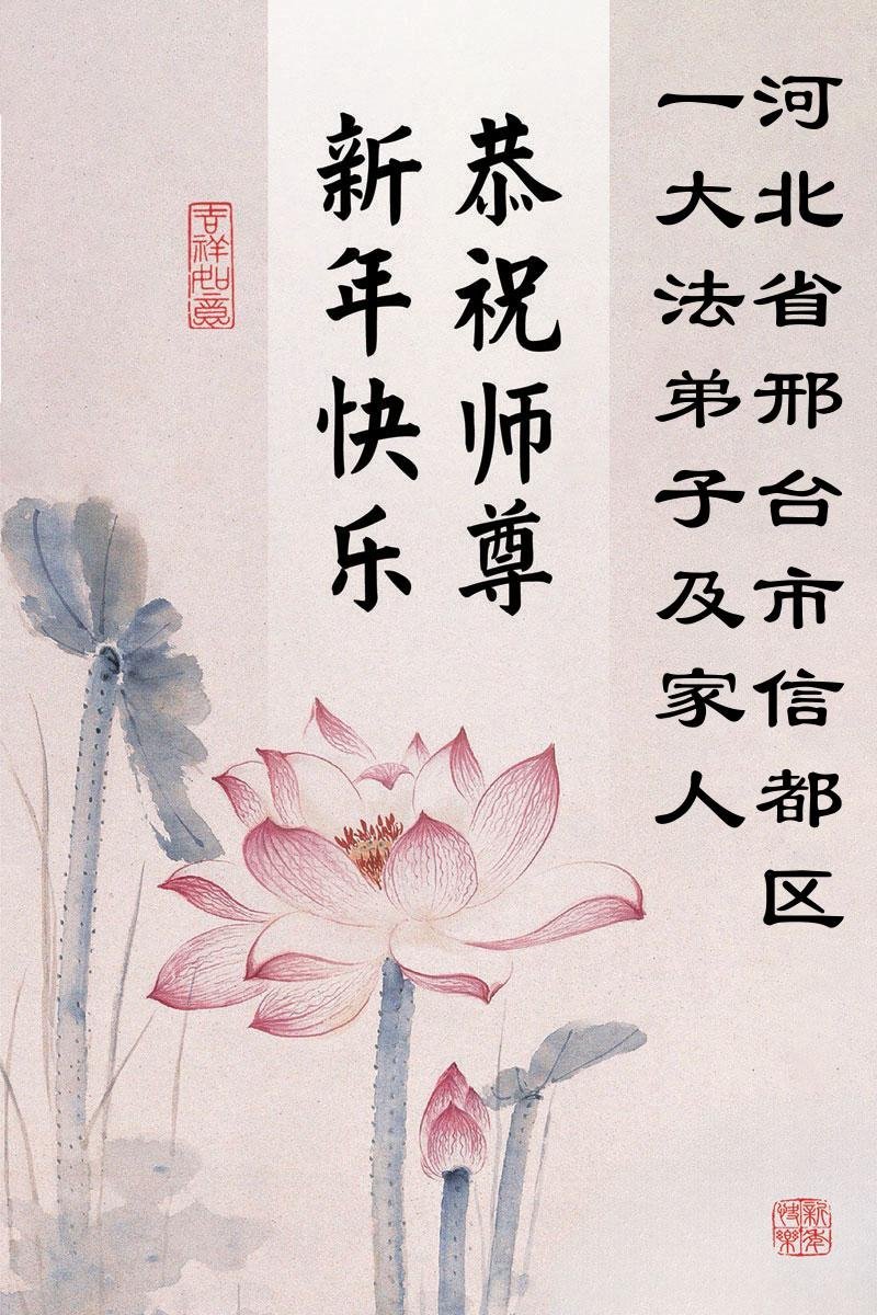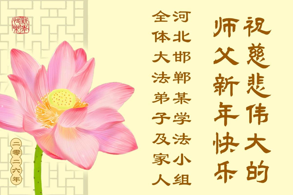 以下是部份來自中國各省、市、地區的學法煉功小組、講真相小組、資料點大法弟子們敬致師尊的新年賀詞賀卡: