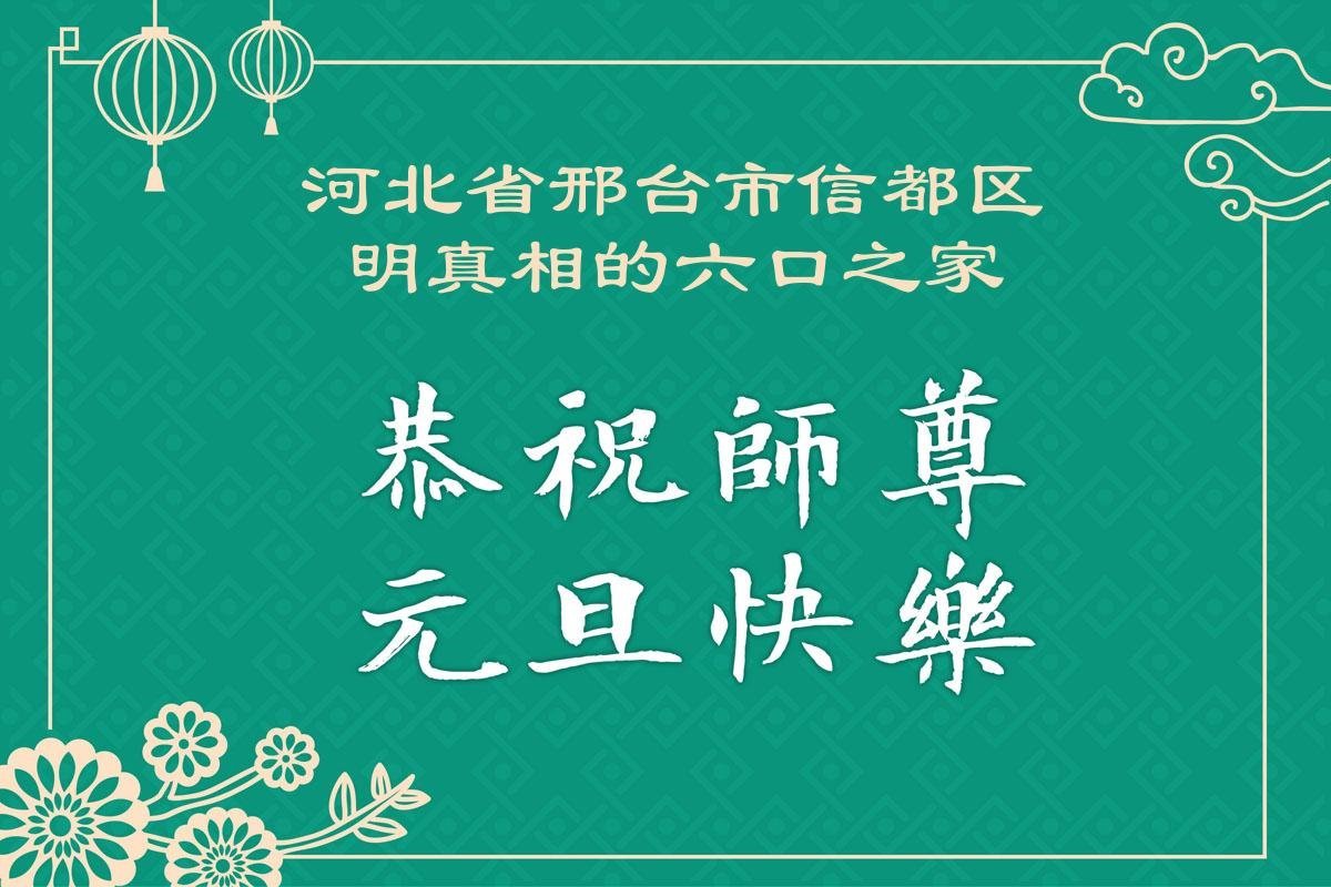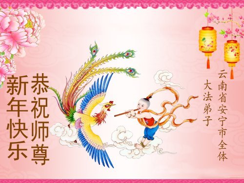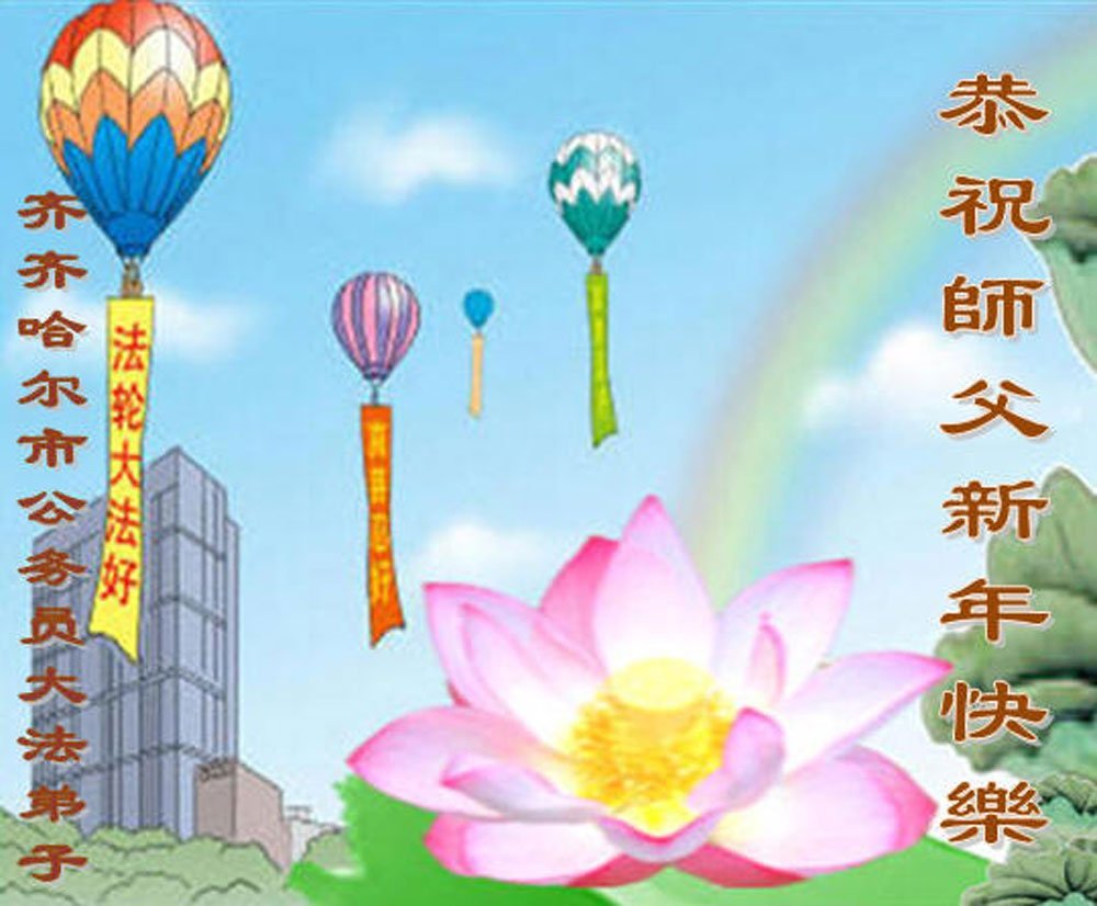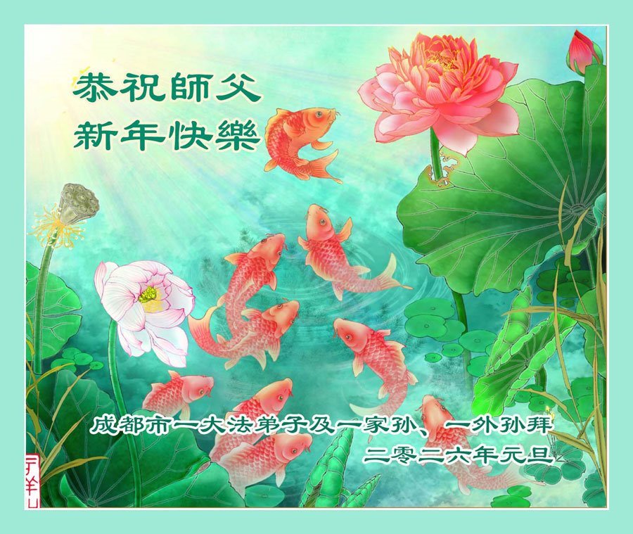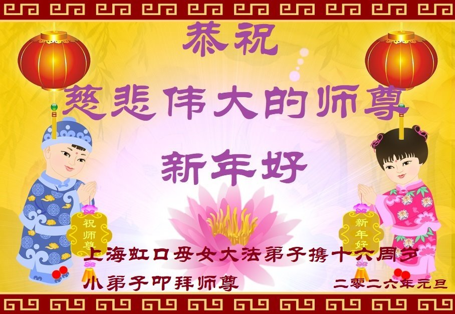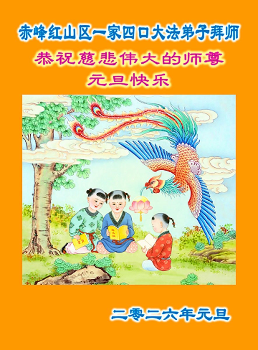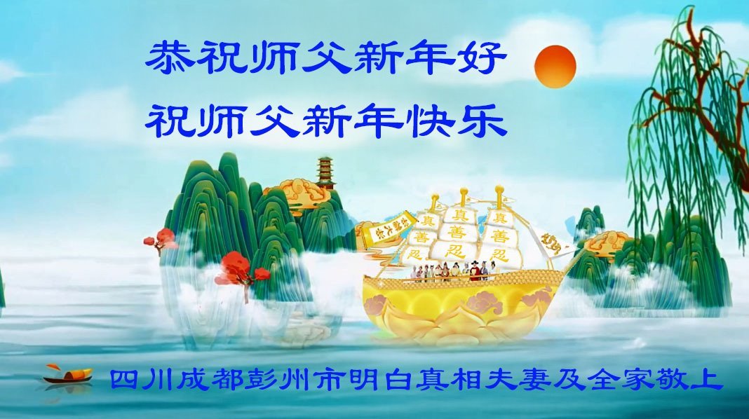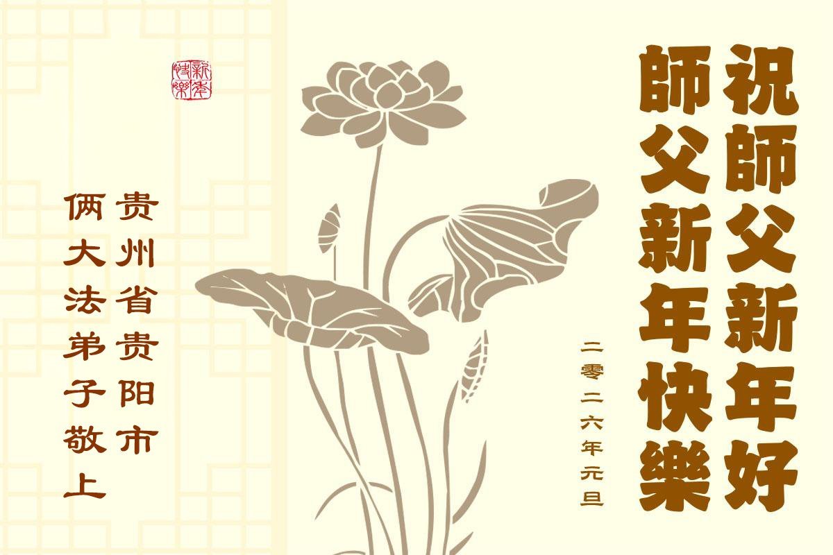 以下是部份來自中國各省、市、地區的學法煉功小組、講真相小組、資料點大法弟子們敬致師尊的新年賀詞賀卡: