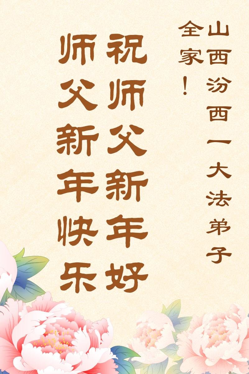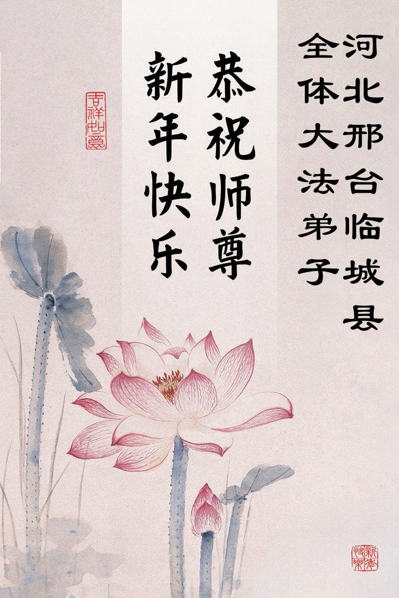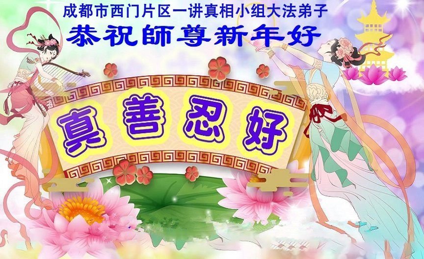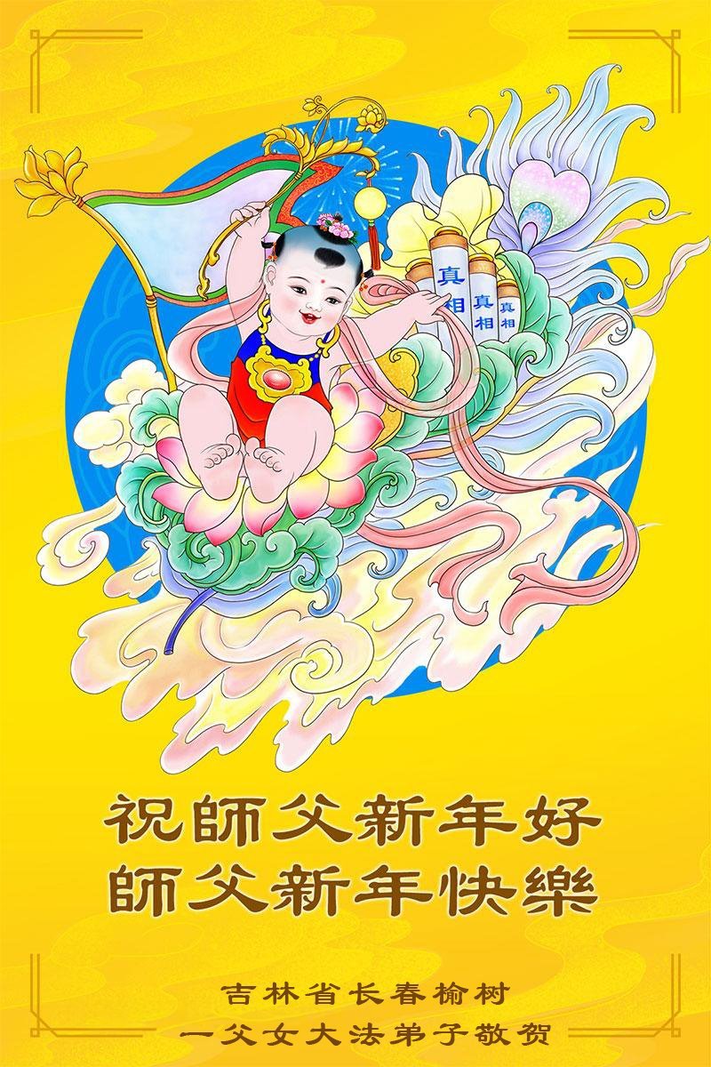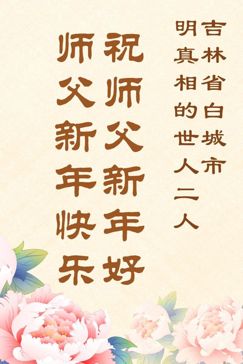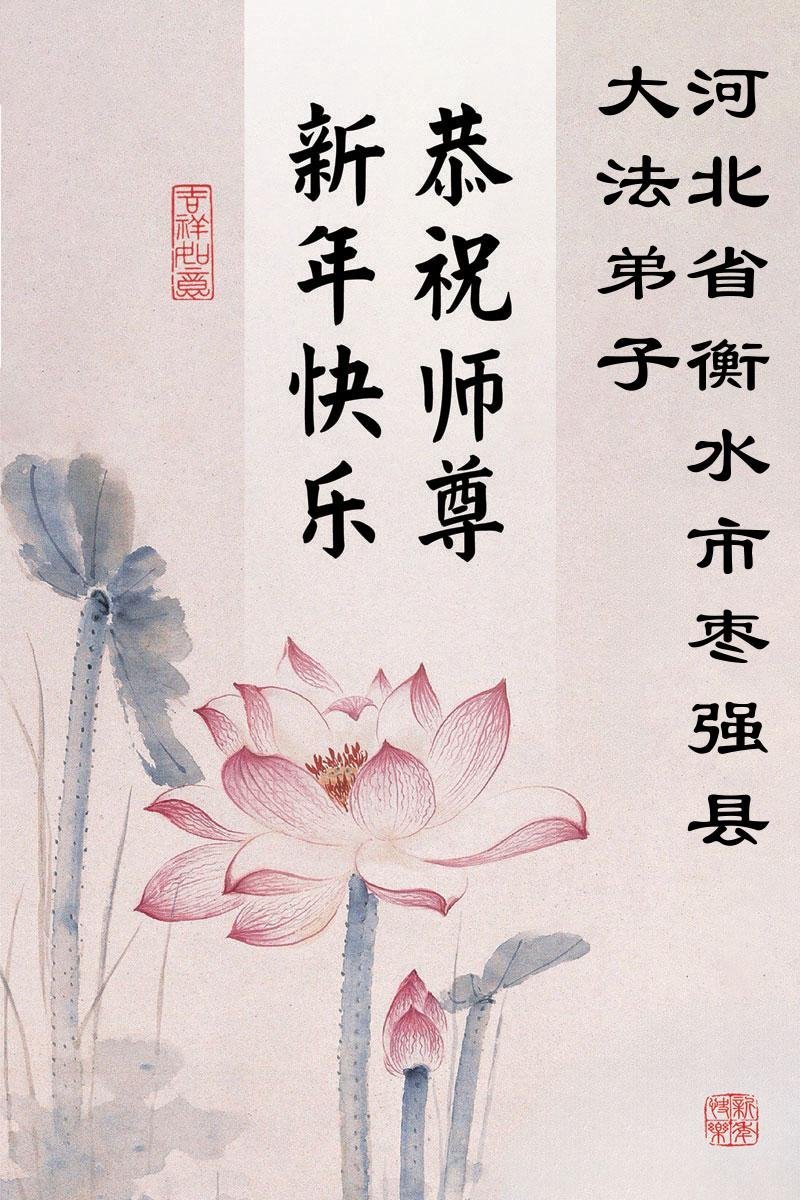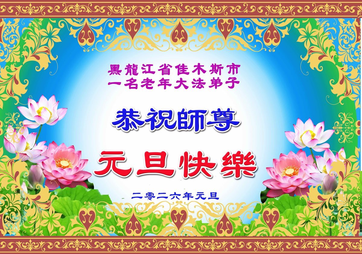 以下是部份來自中國各省、市、地區的學法煉功小組、講真相小組、資料點大法弟子們敬致師尊的新年賀詞賀卡: