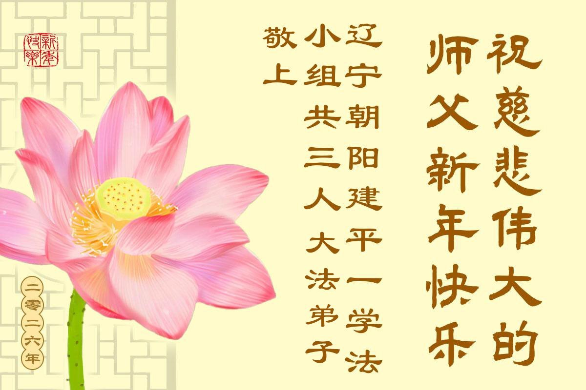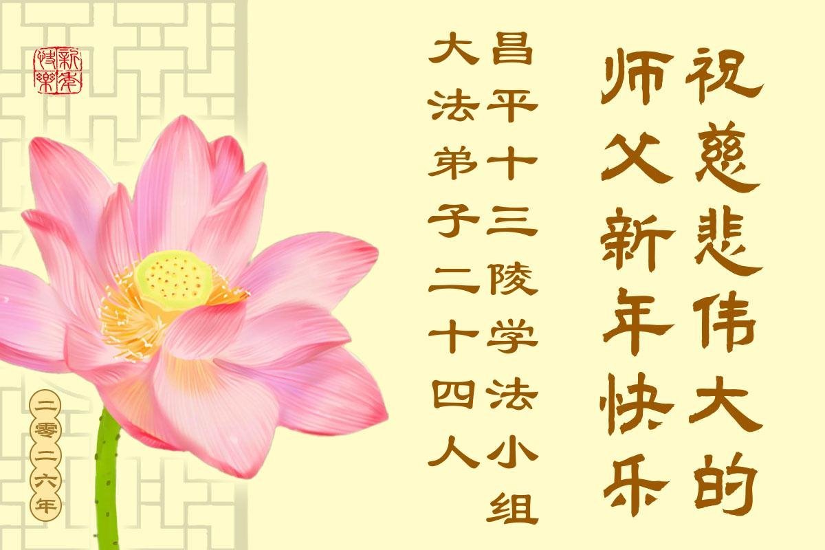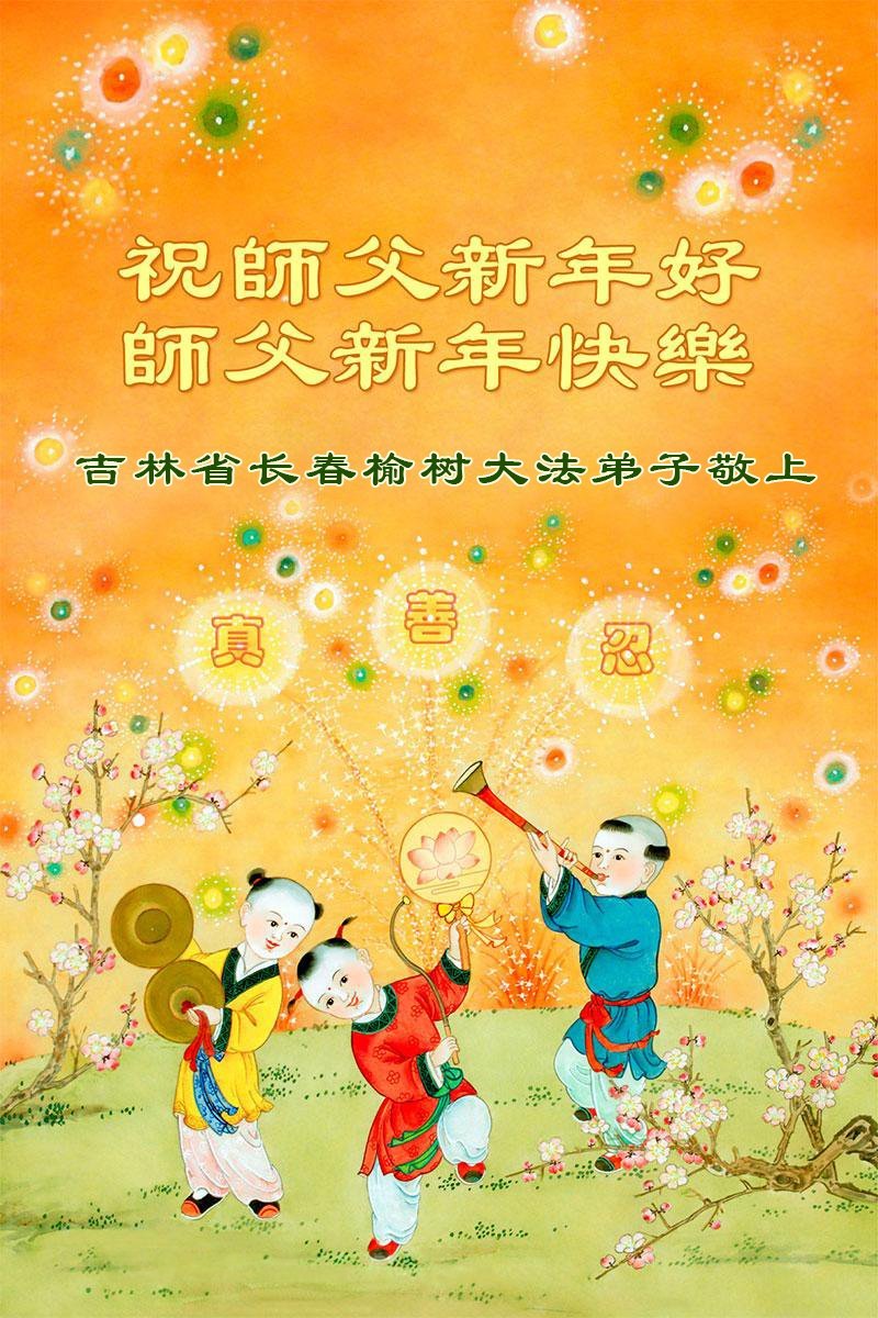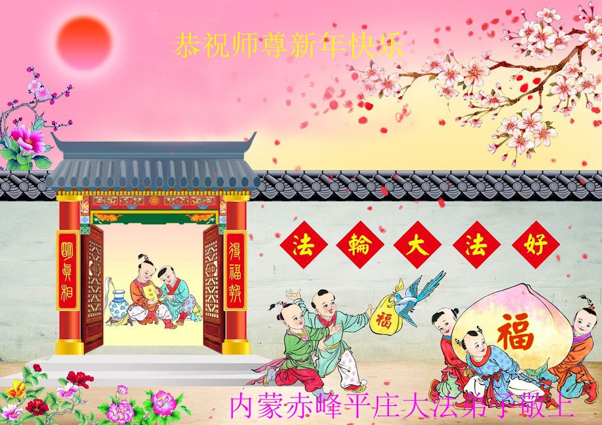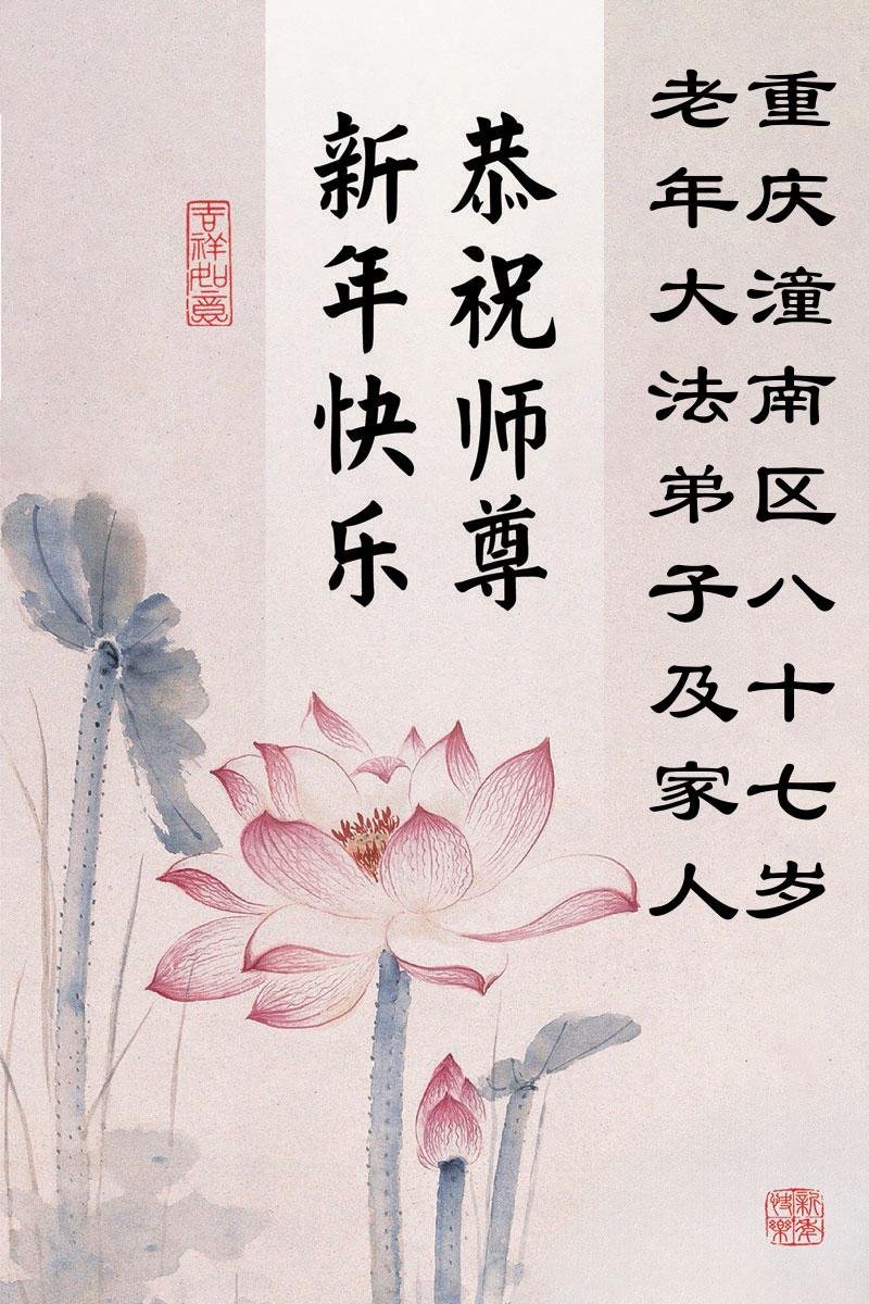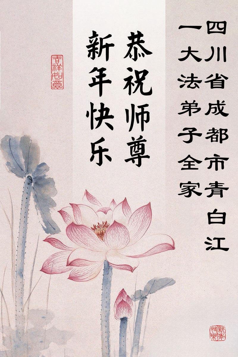 以下是部份來自中國各省、市、地區的學法煉功小組、講真相小組、資料點大法弟子們敬致師尊的新年賀詞賀卡: