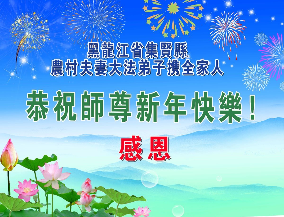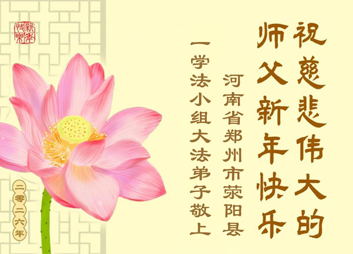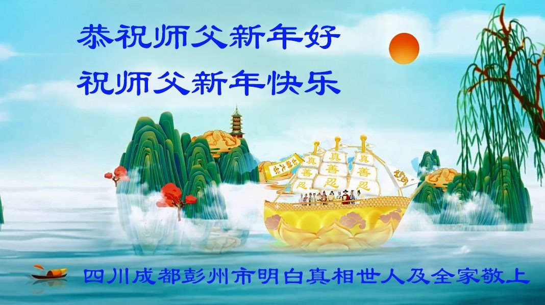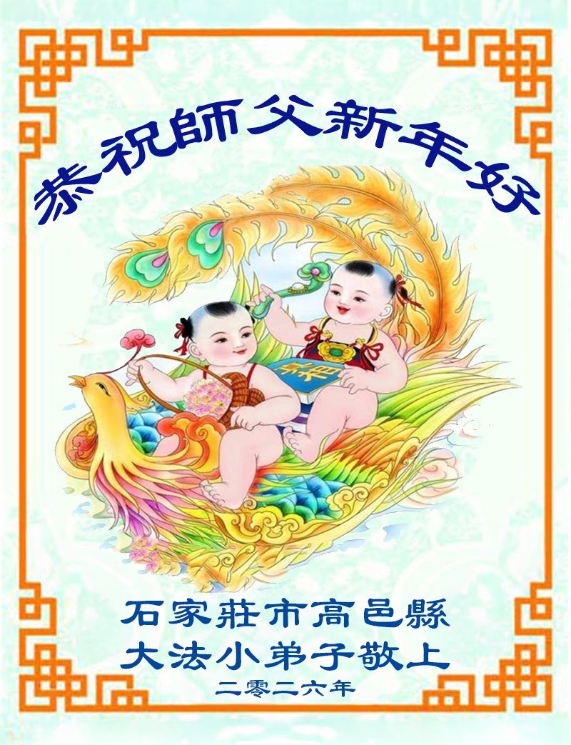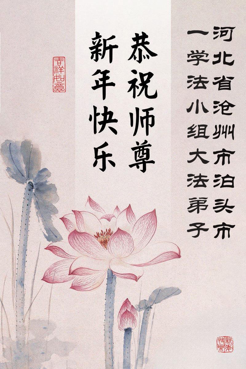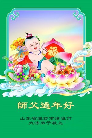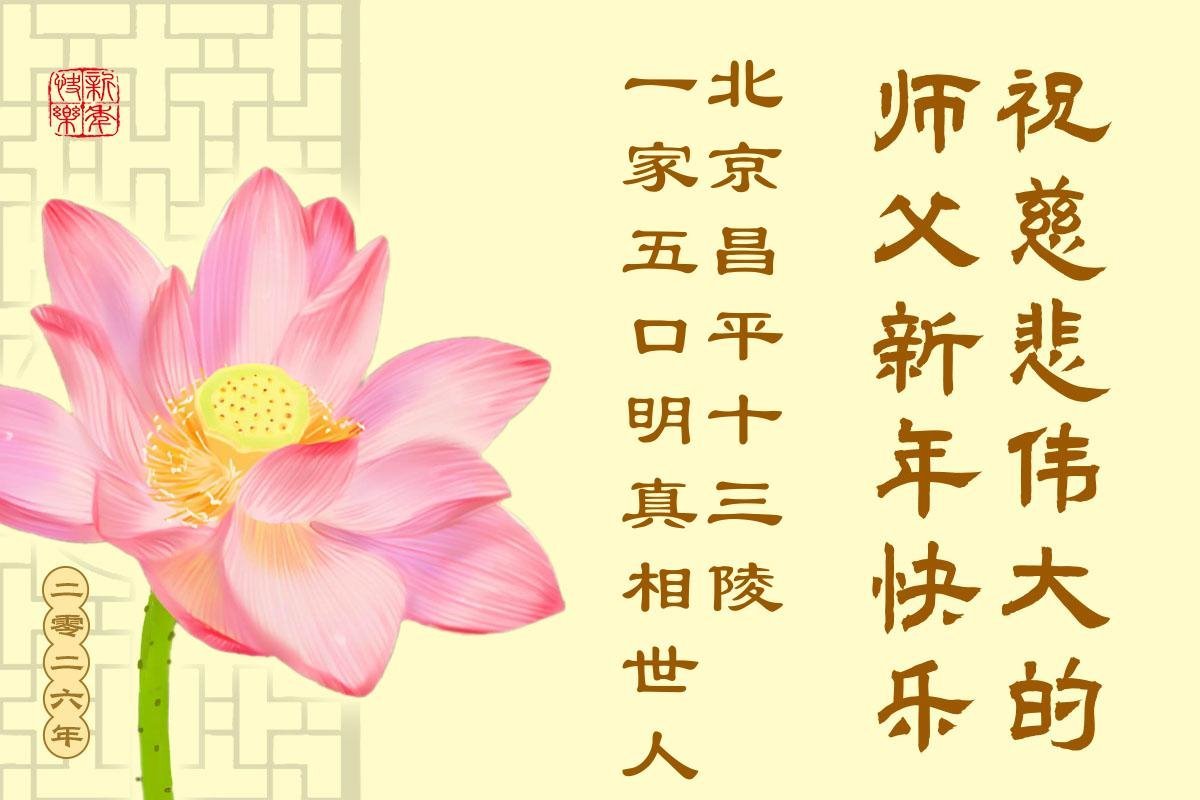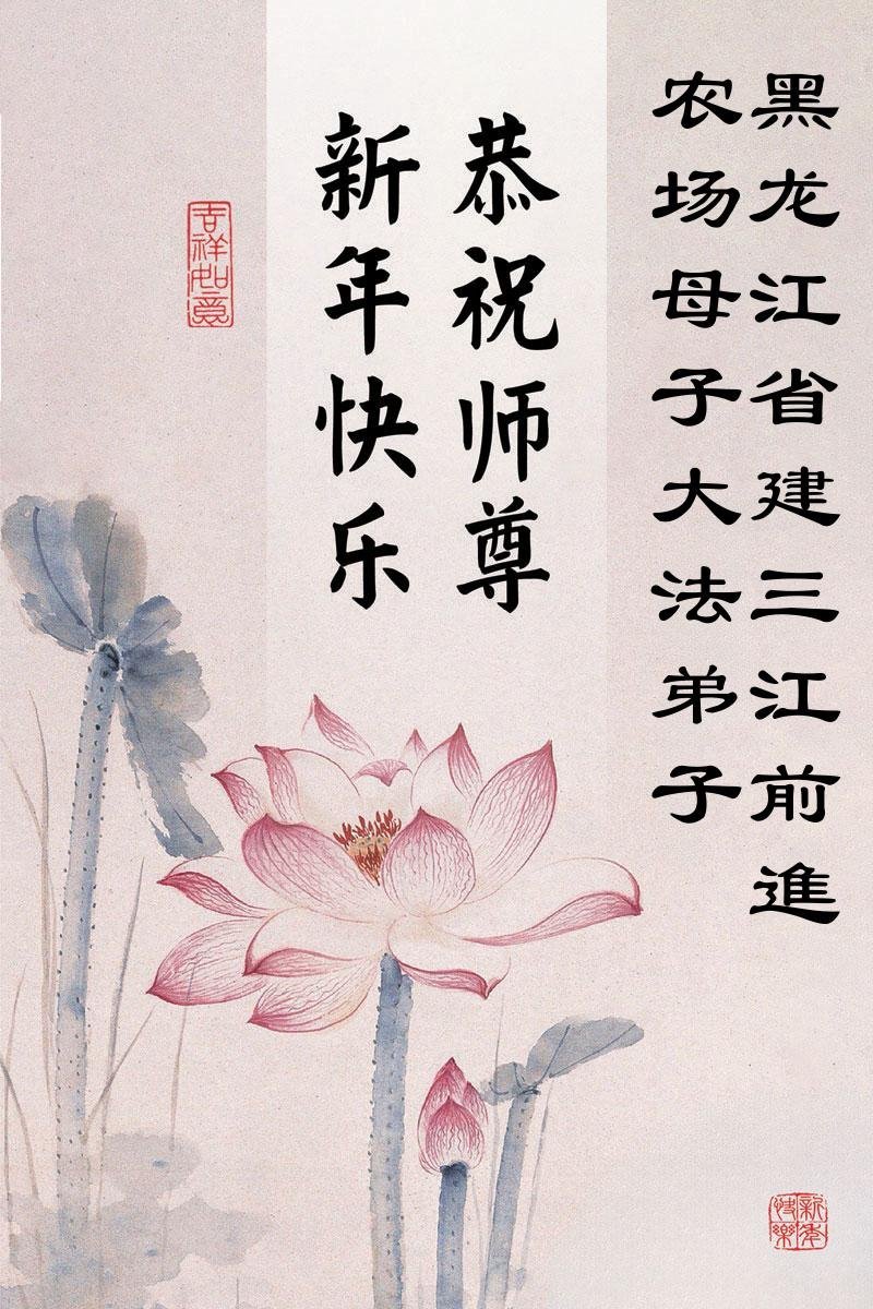 以下是部份來自中國各省、市、地區的學法煉功小組、講真相小組、資料點大法弟子們敬致師尊的新年賀詞賀卡: