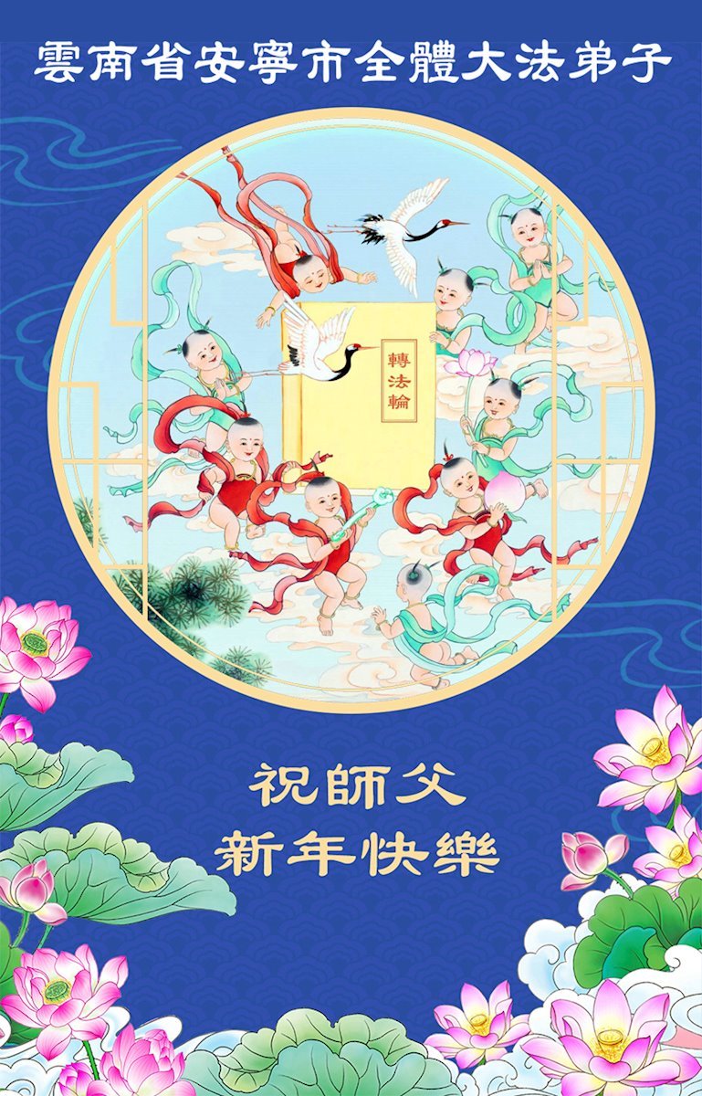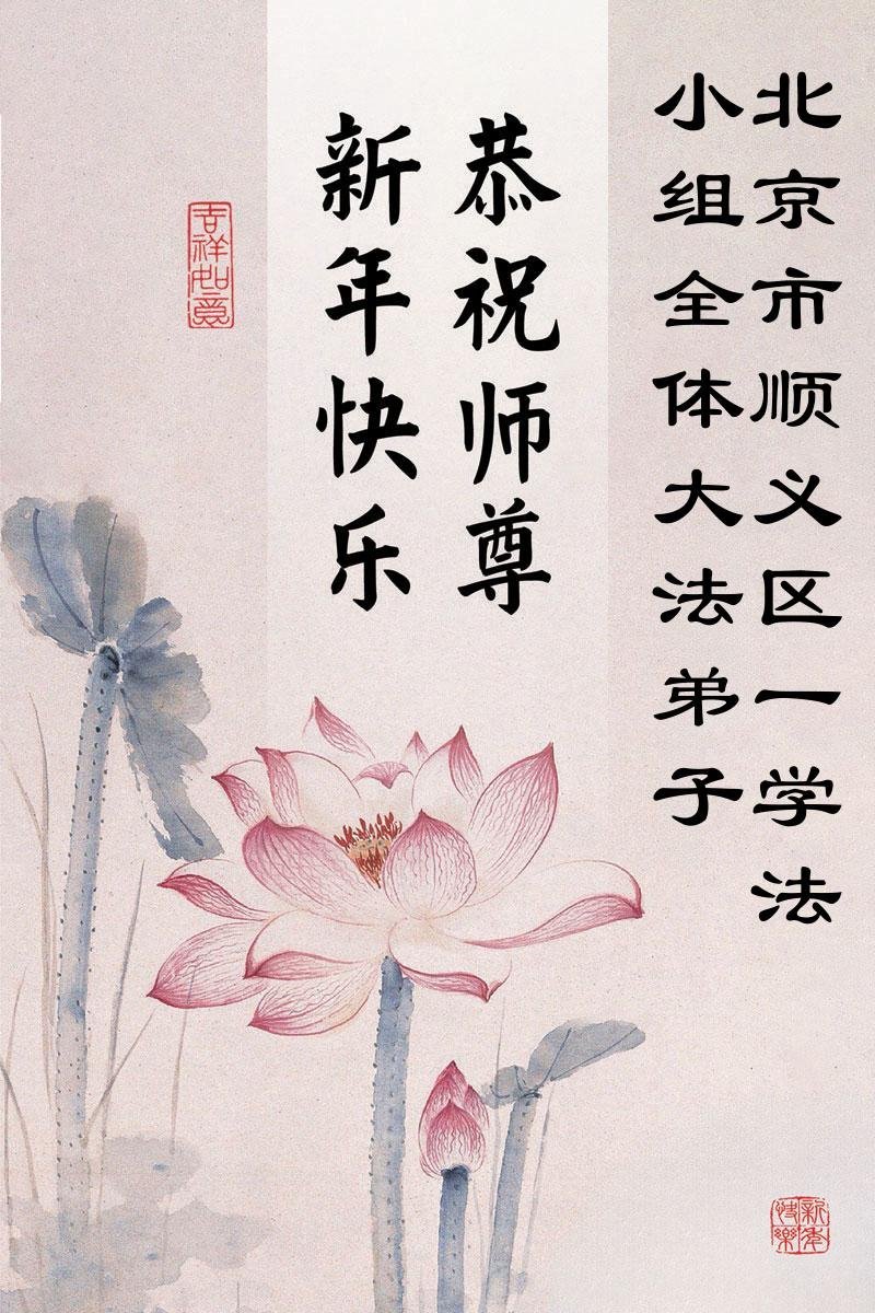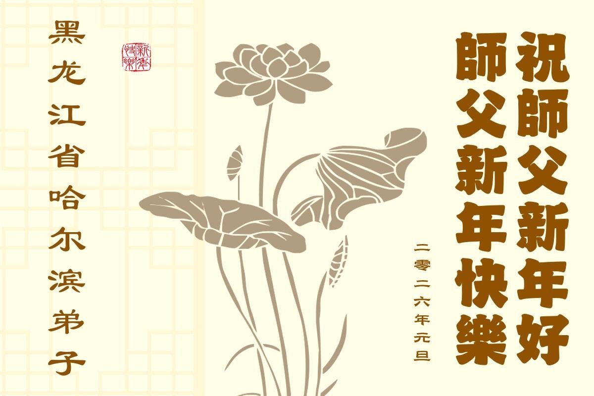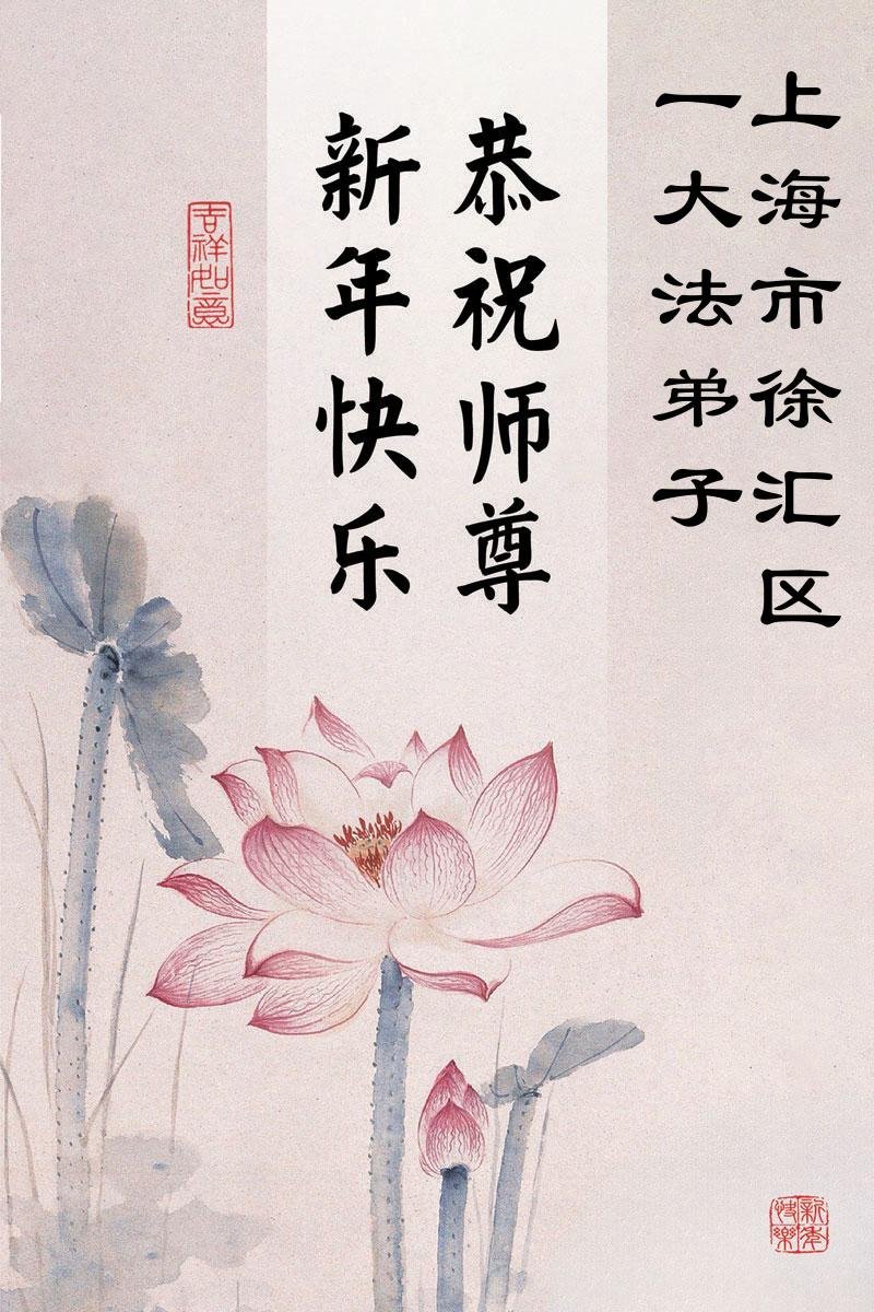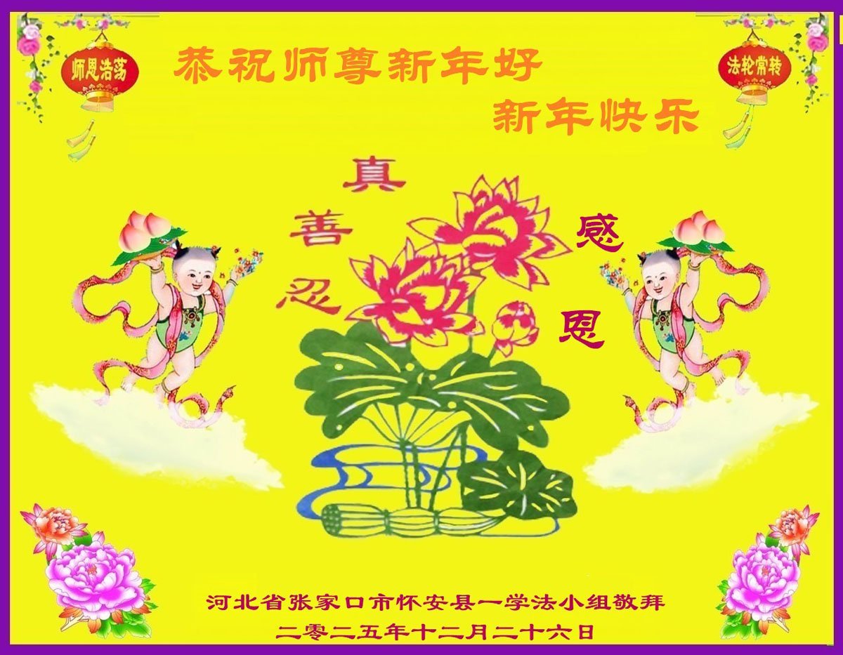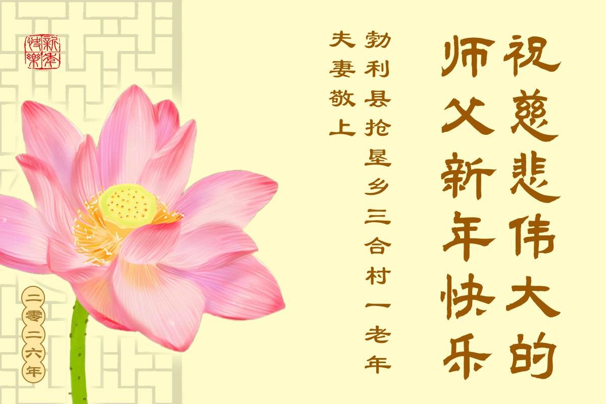 以下是部份來自中國各省、市、地區的學法煉功小組、講真相小組、資料點大法弟子們敬致師尊的新年賀詞賀卡: