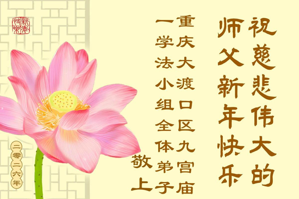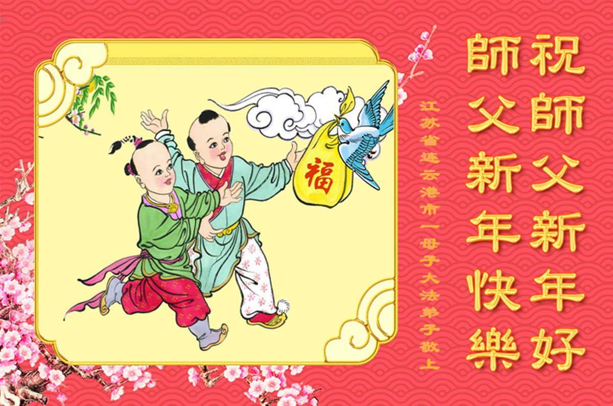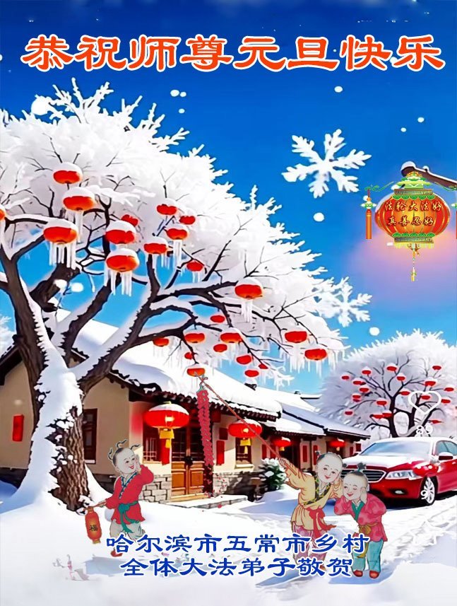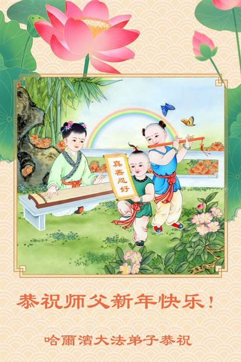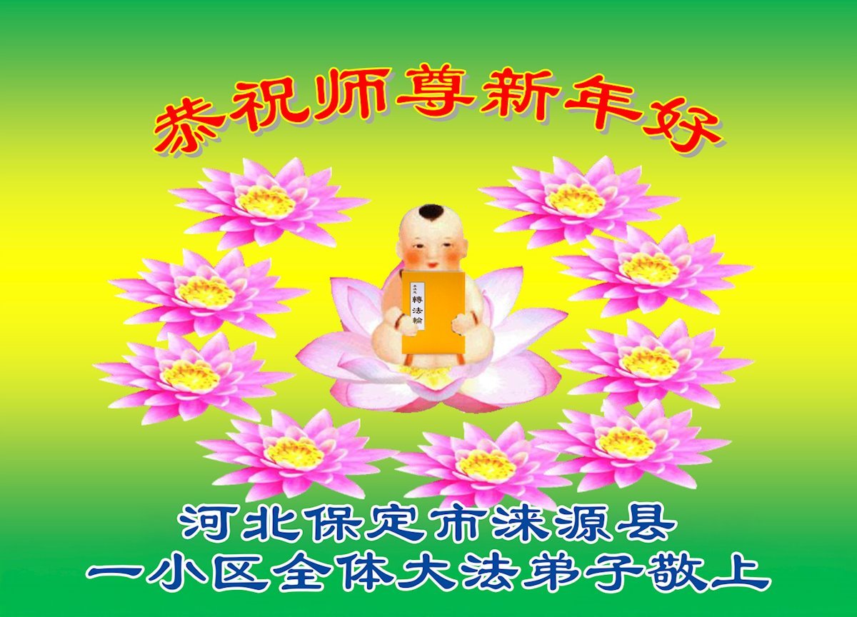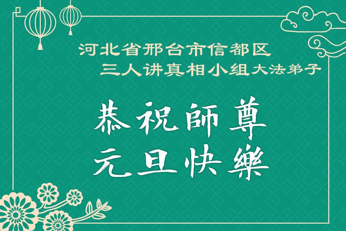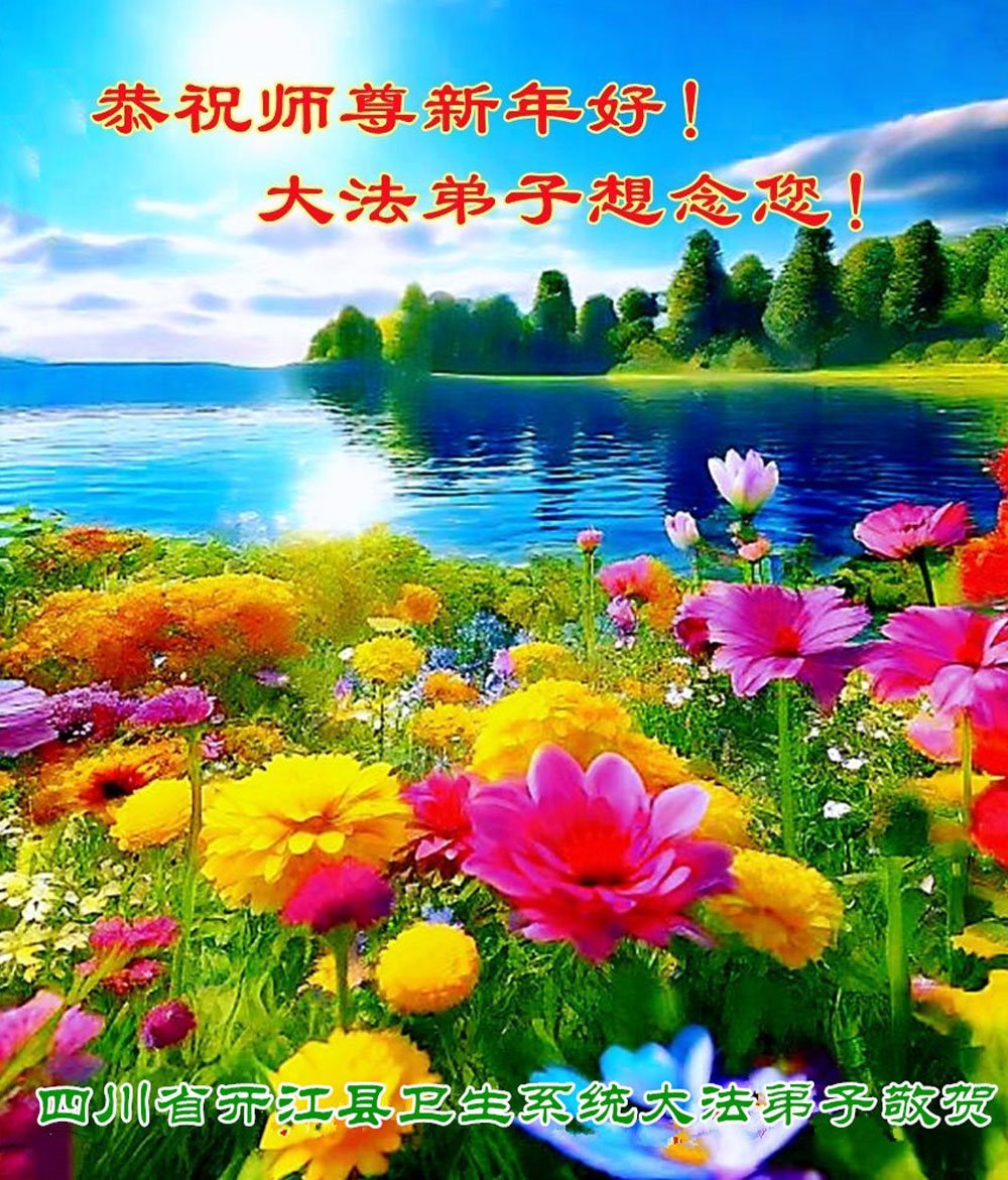 以下是部份來自中國各省、市、地區的學法煉功小組、講真相小組、資料點大法弟子們敬致師尊的新年賀詞賀卡: