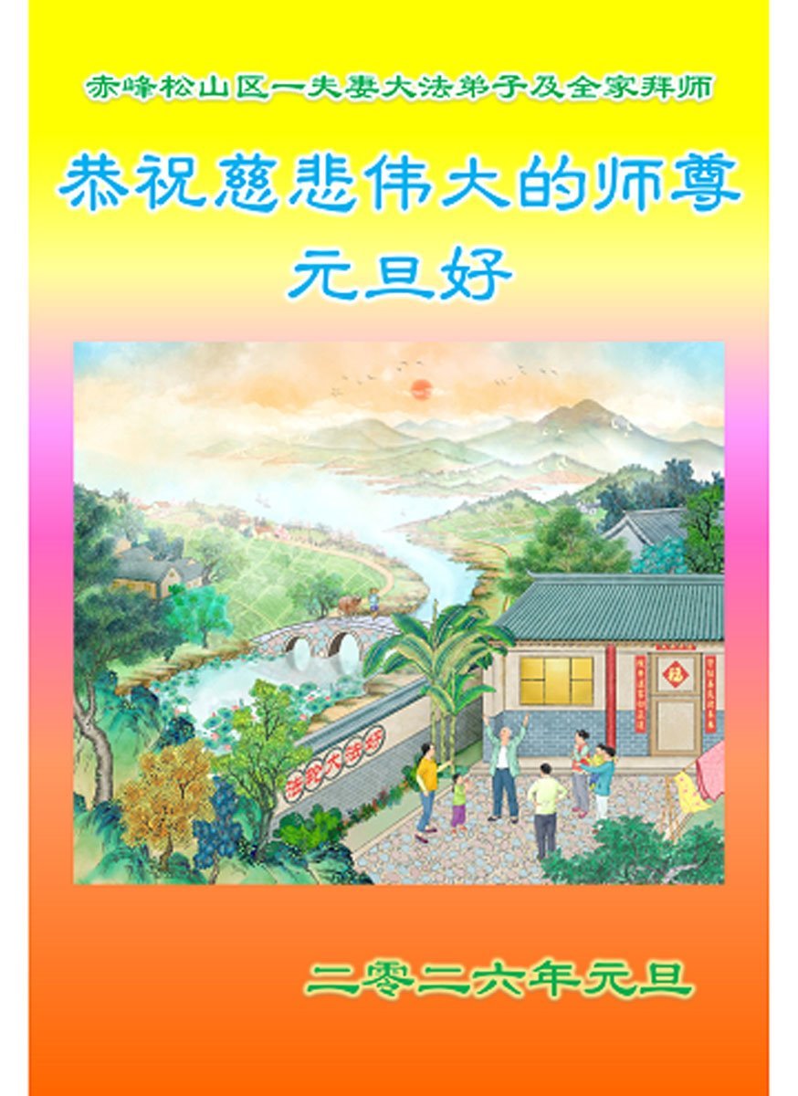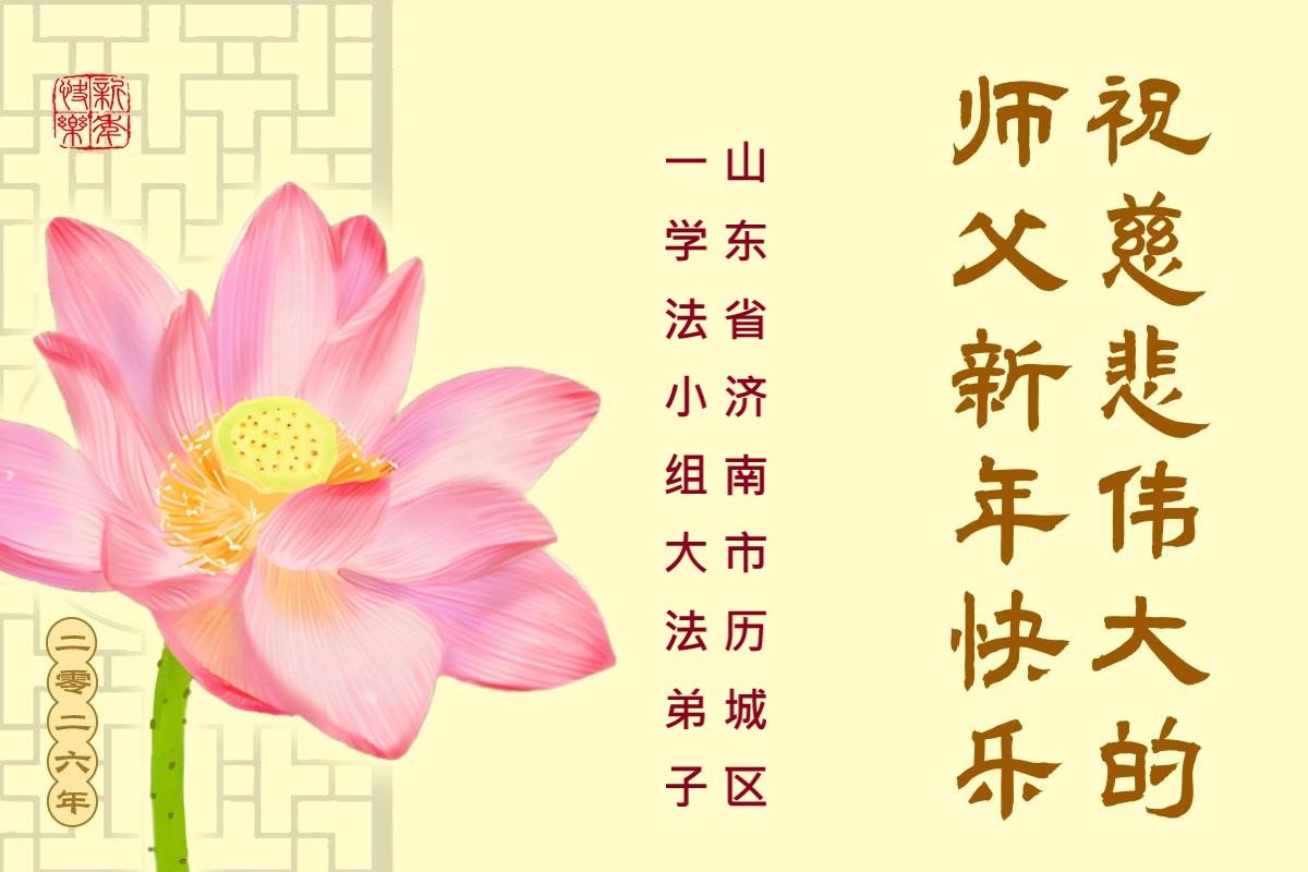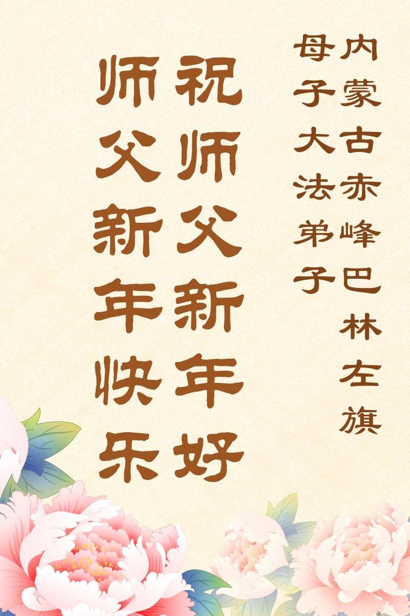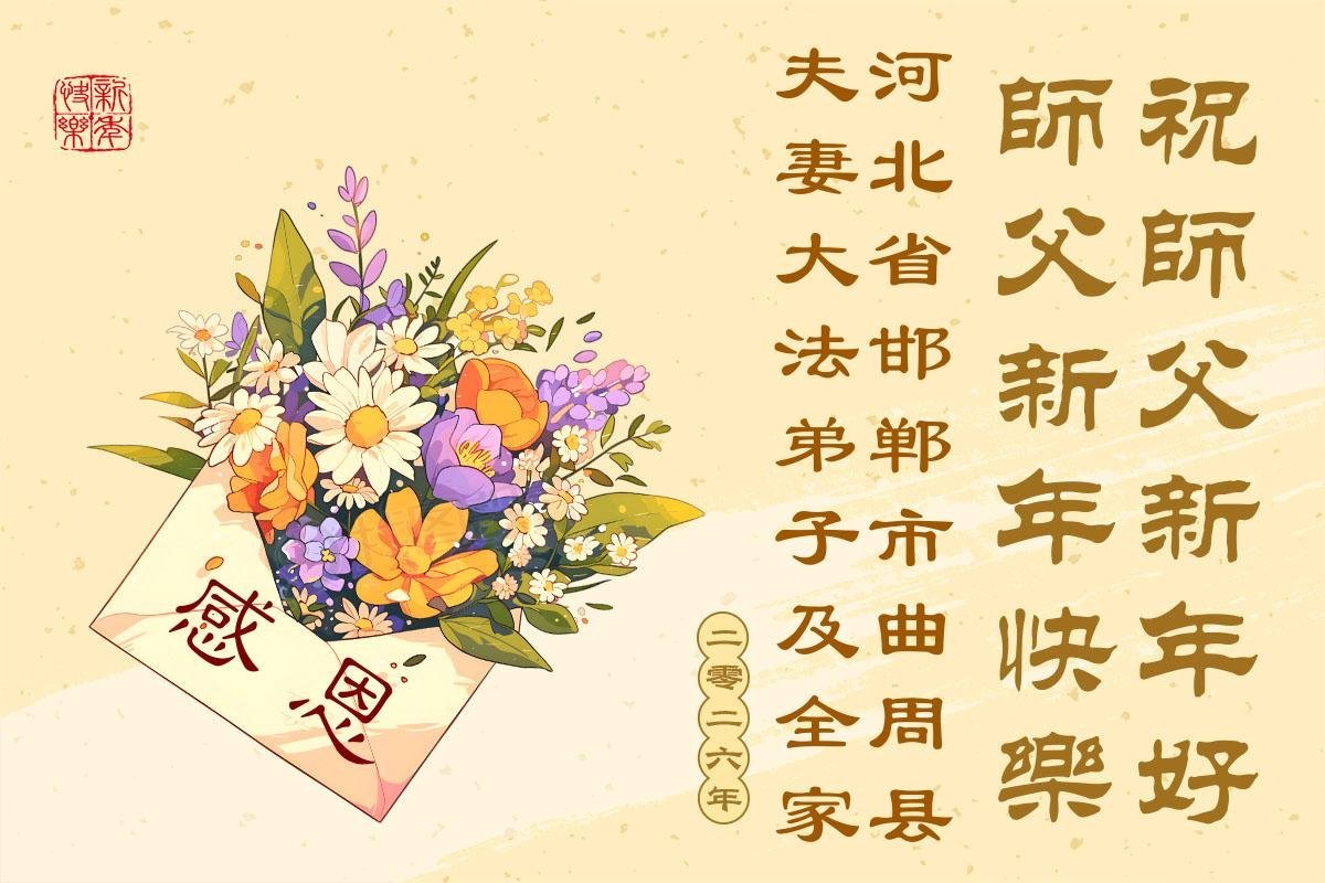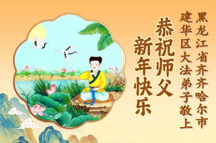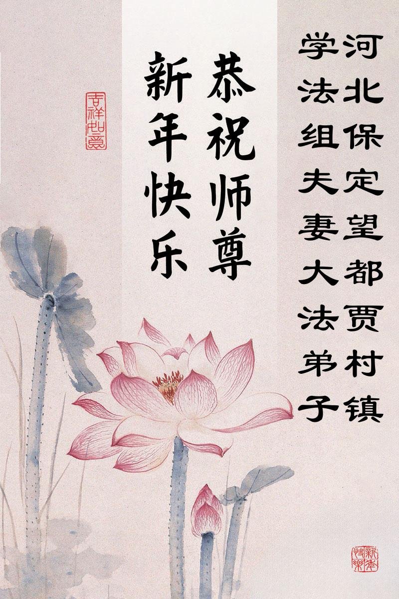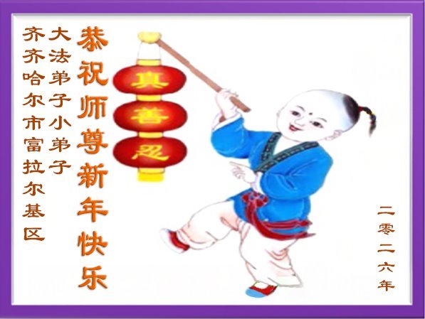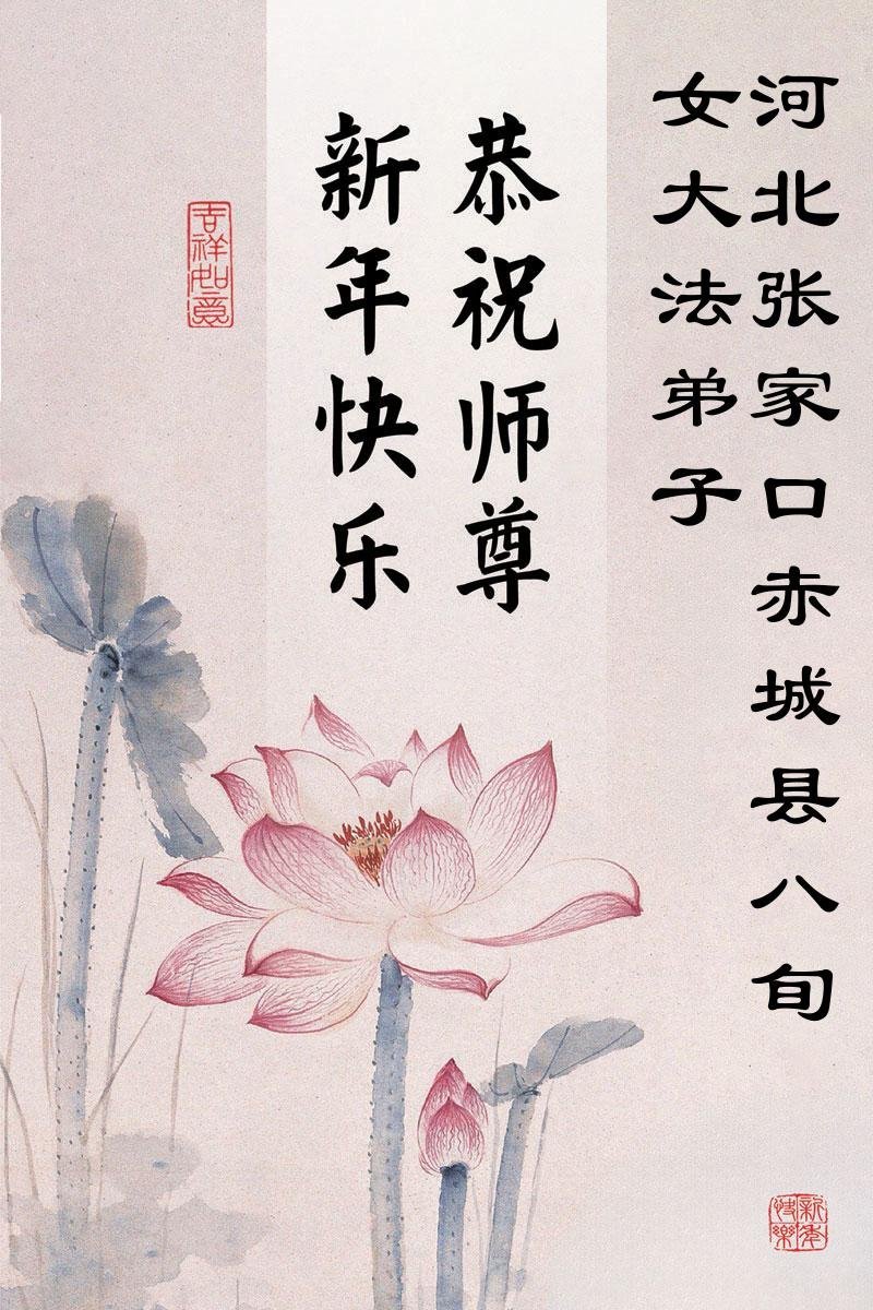 以下是部份來自中國各省、市、地區的學法煉功小組、講真相小組、資料點大法弟子們敬致師尊的新年賀詞賀卡: