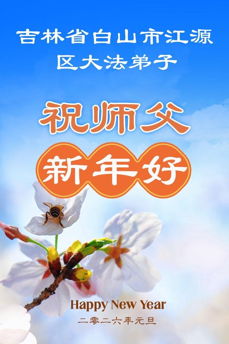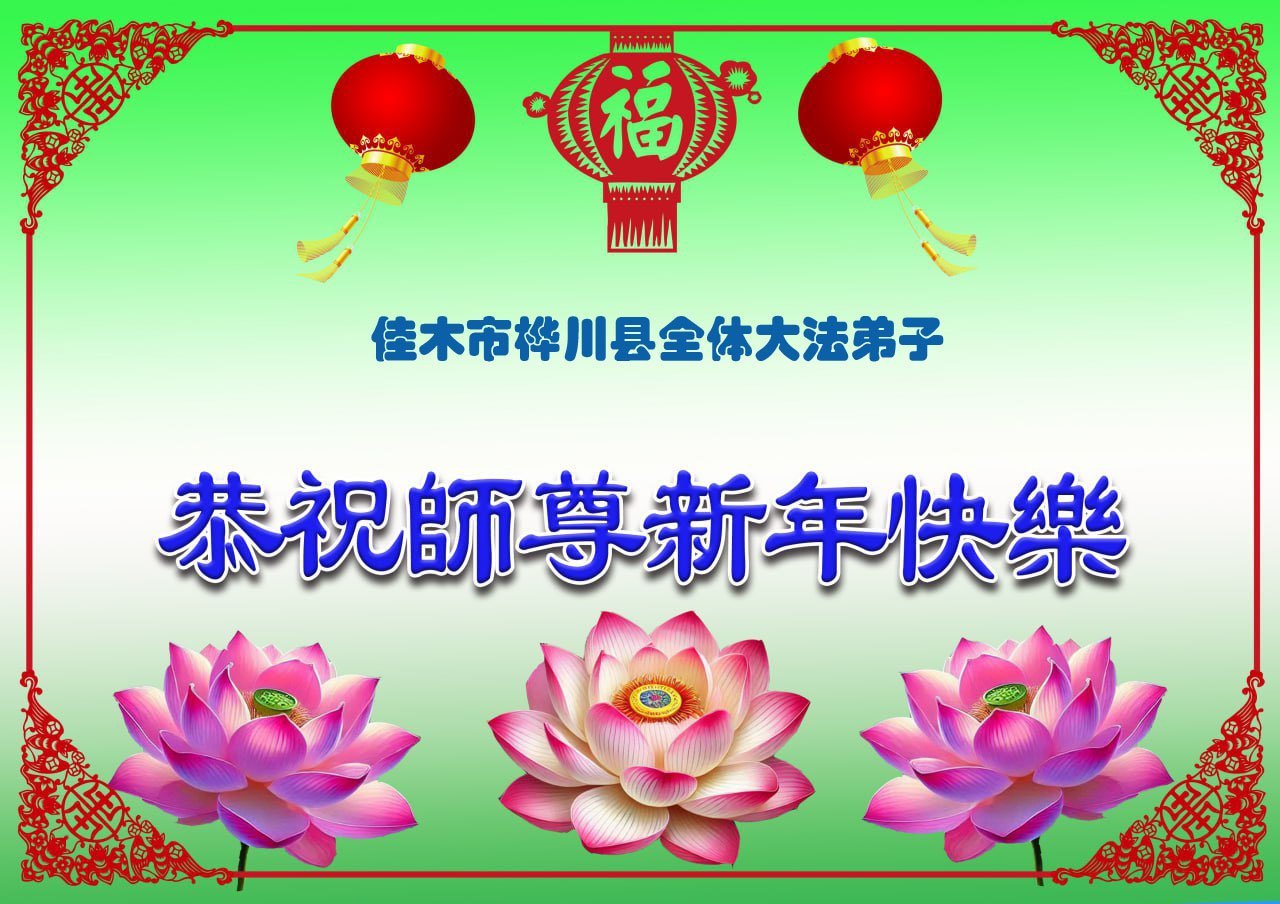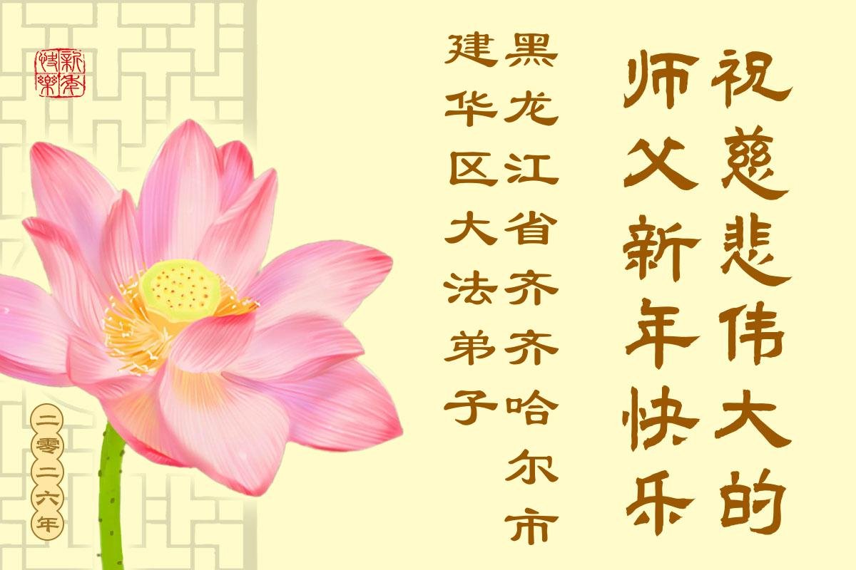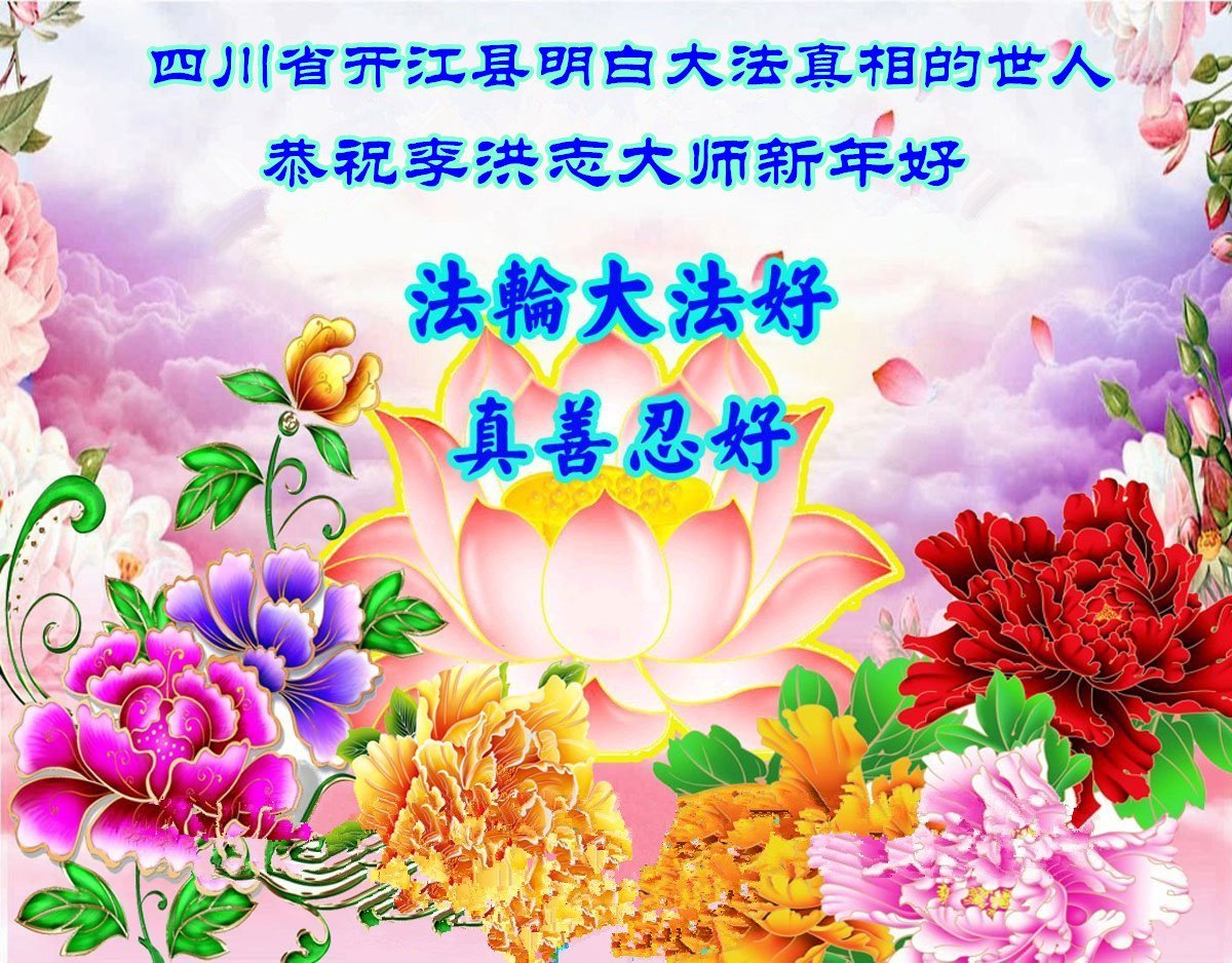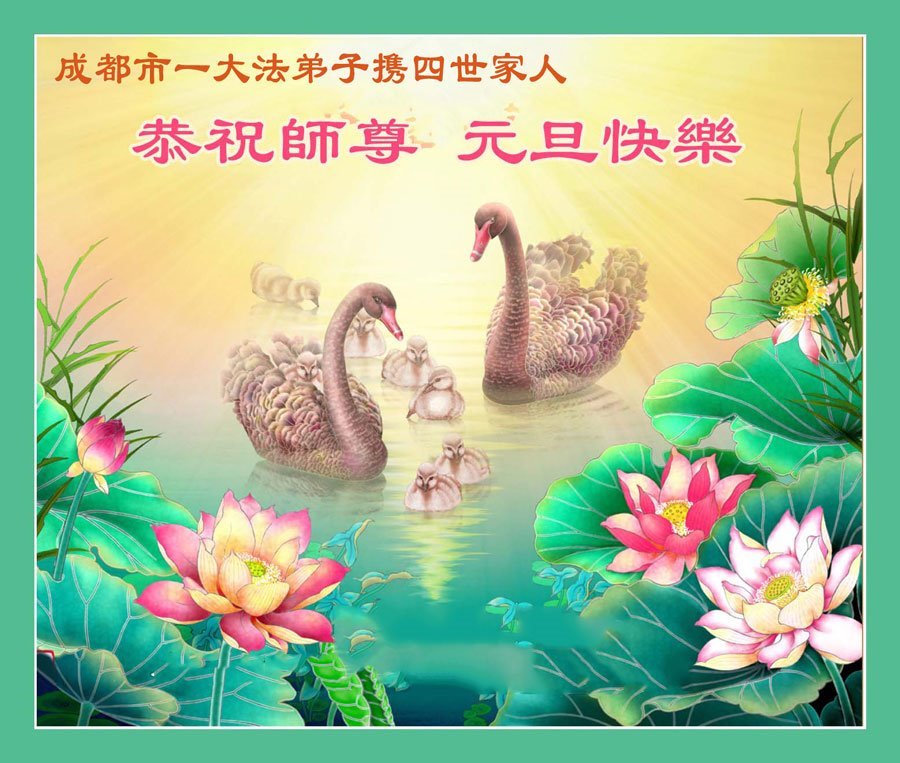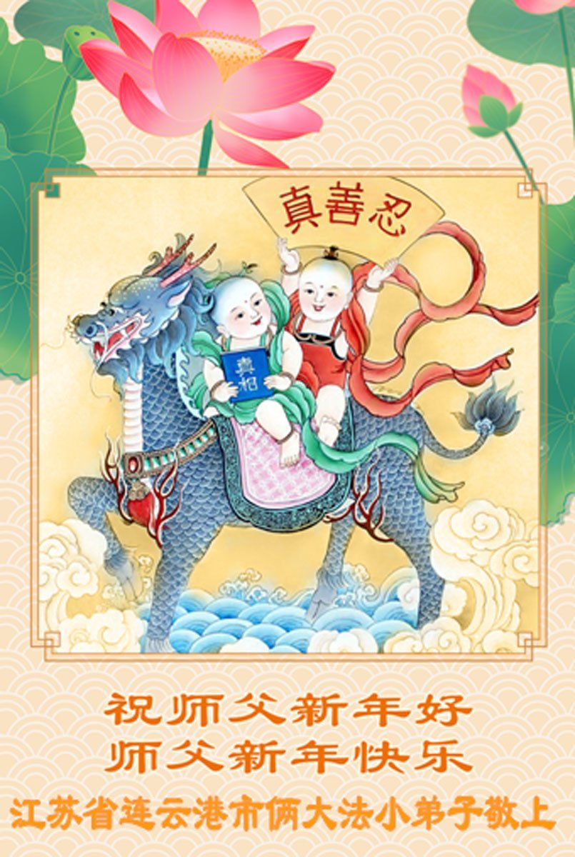 以下是部份來自中國各省、市、地區的學法煉功小組、講真相小組、資料點大法弟子們敬致師尊的新年賀詞賀卡: