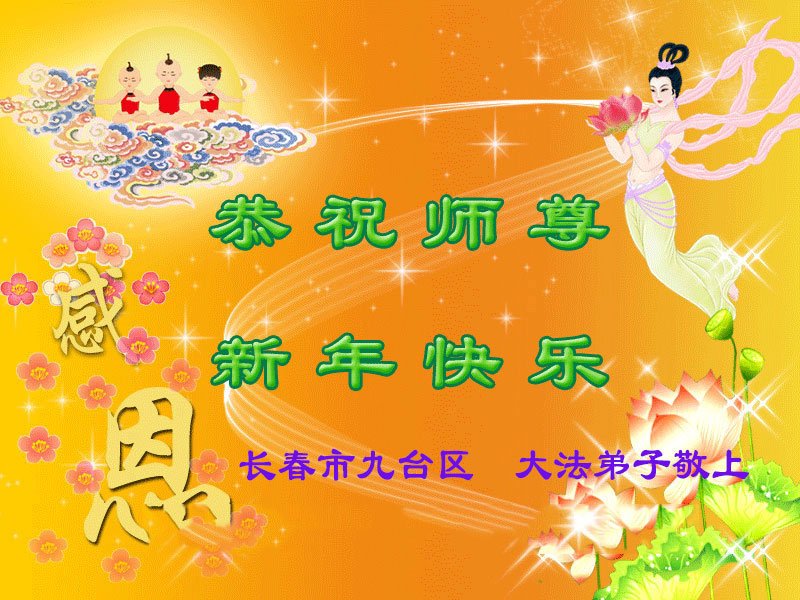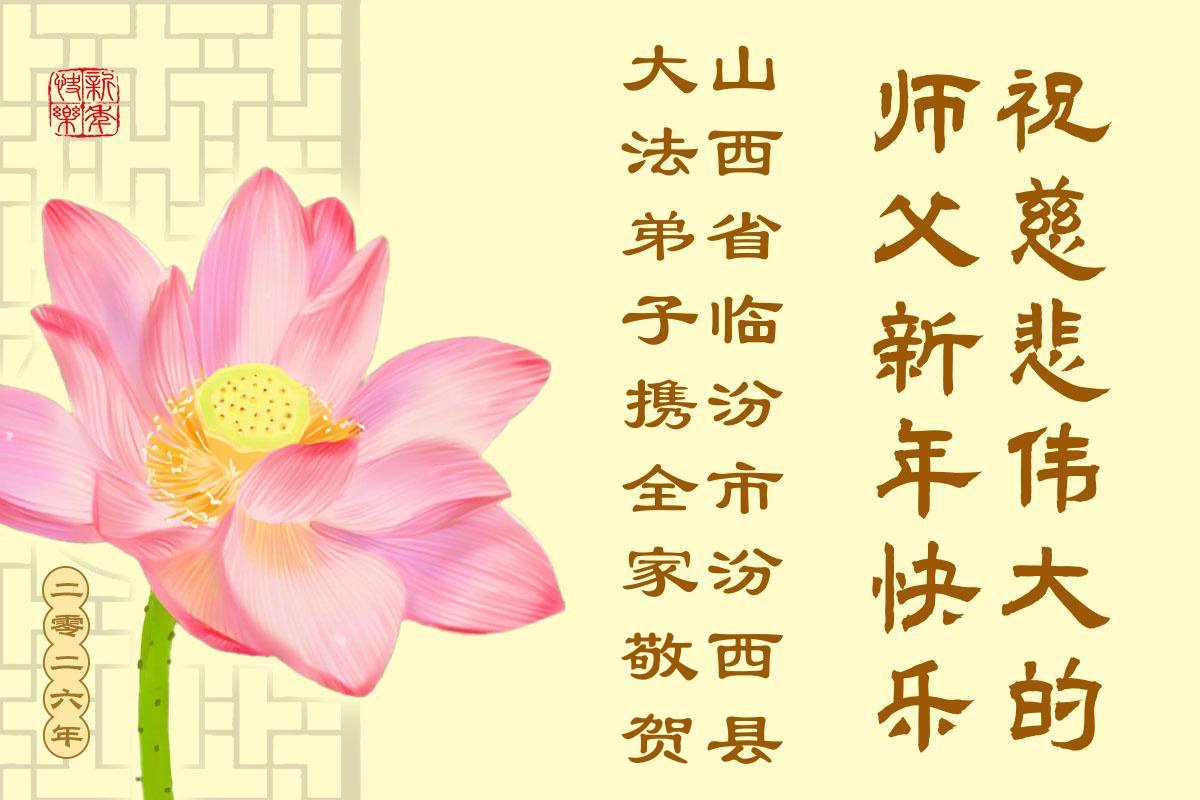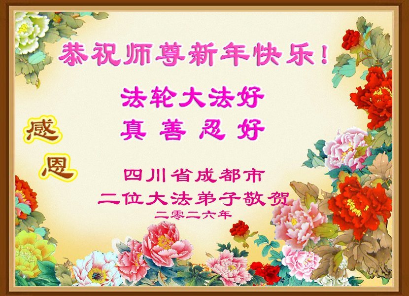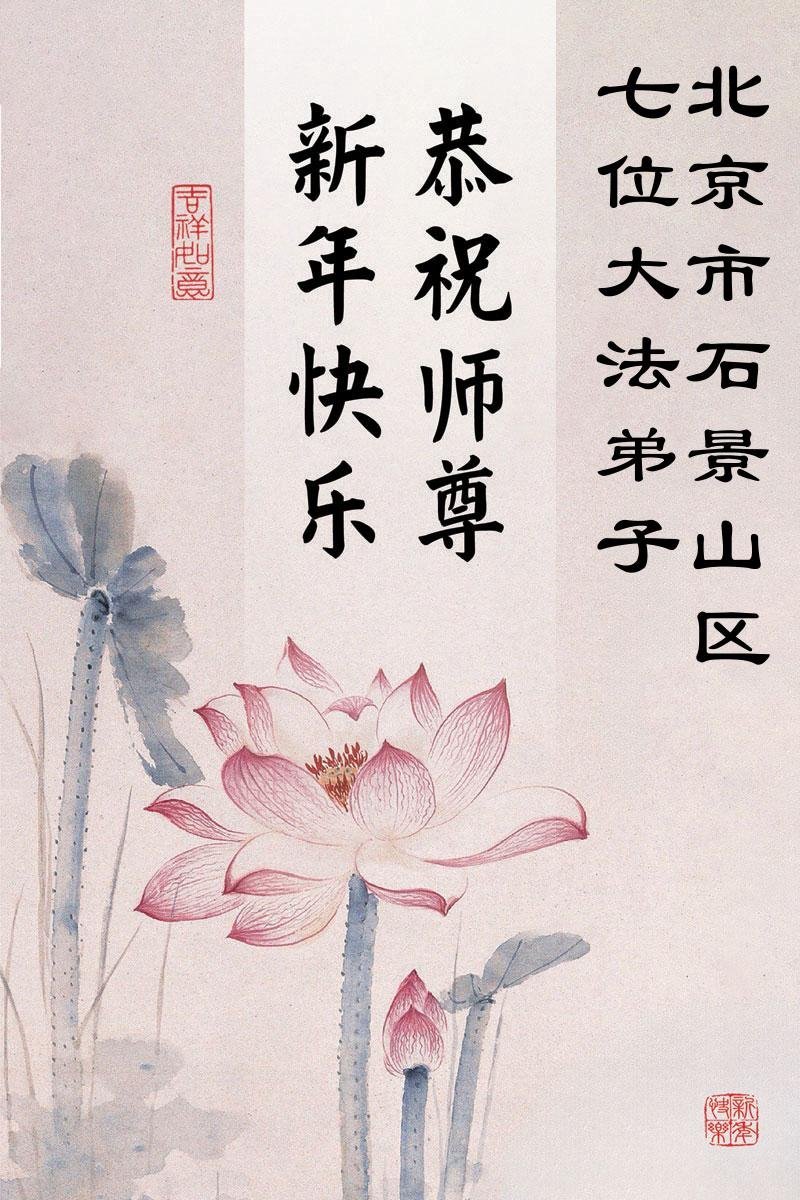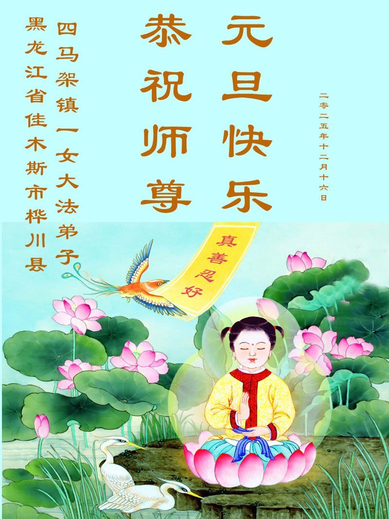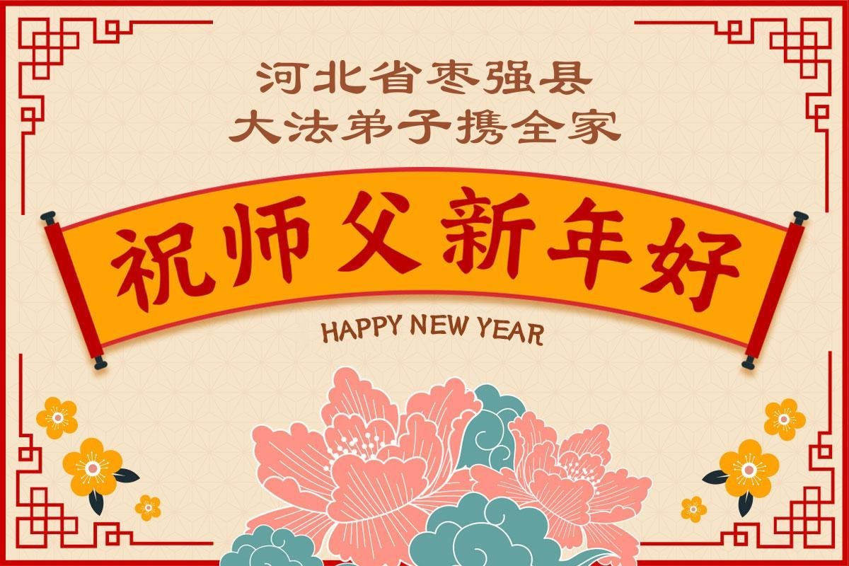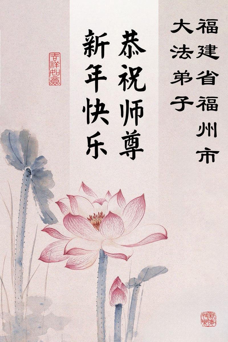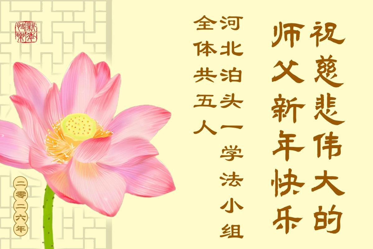 以下是部份來自中國各省、市、地區的學法煉功小組、講真相小組、資料點大法弟子們敬致師尊的新年賀詞賀卡: