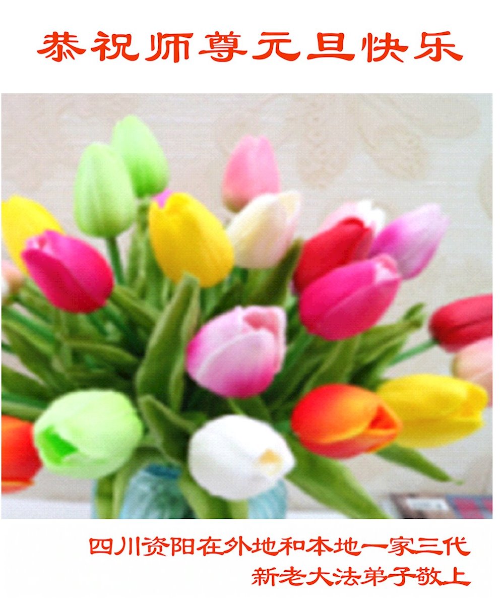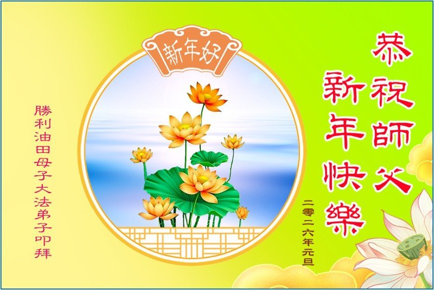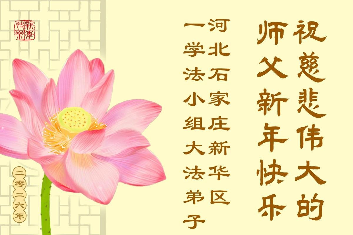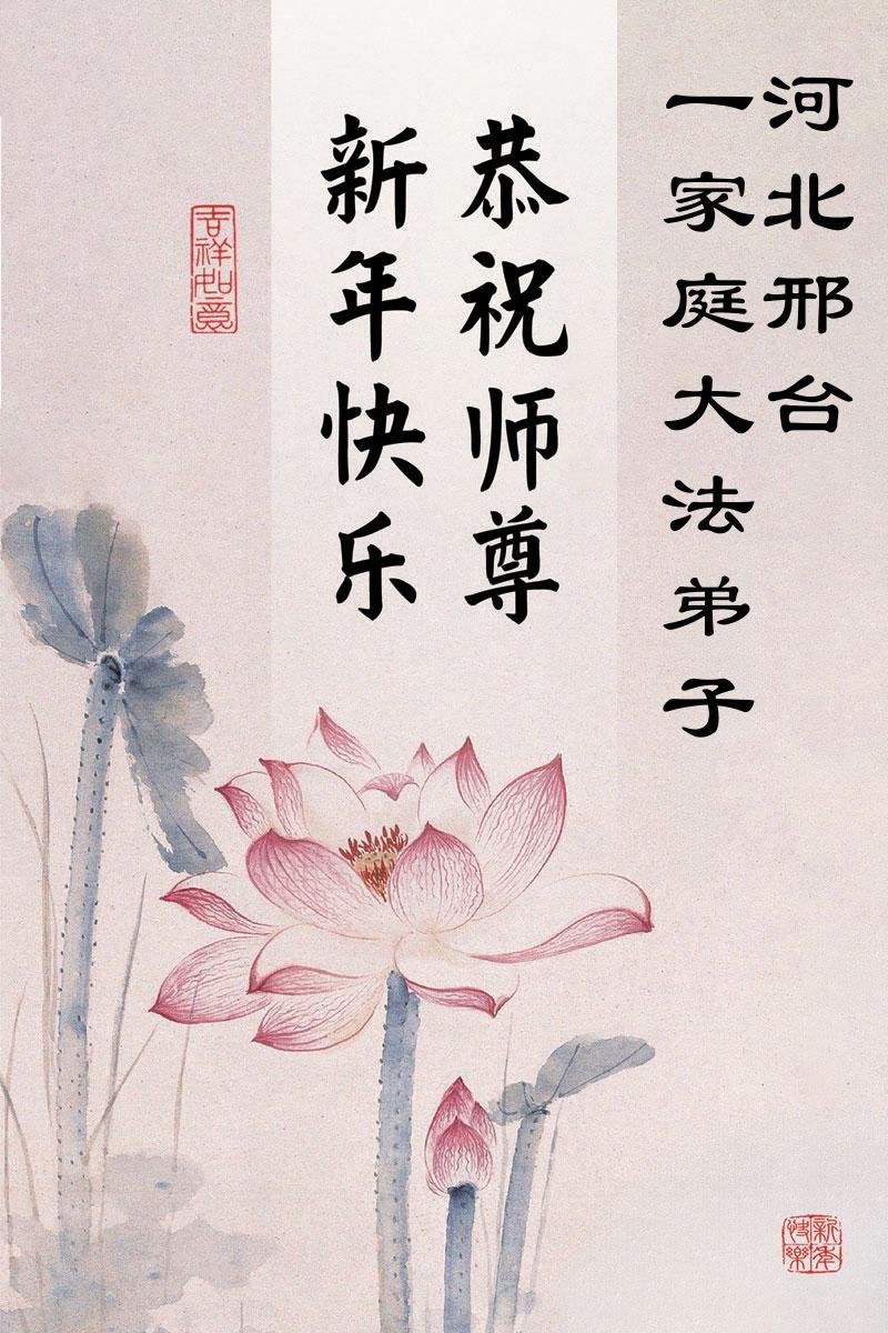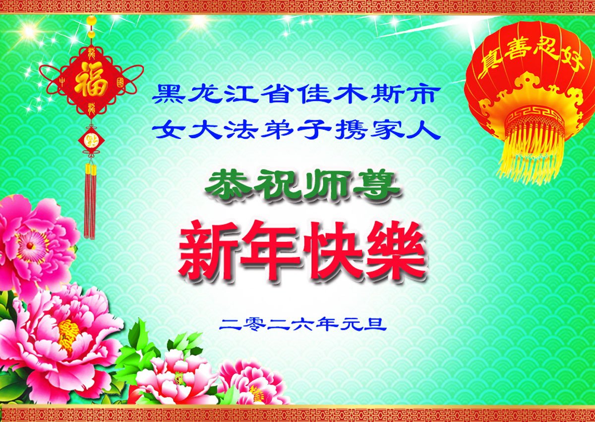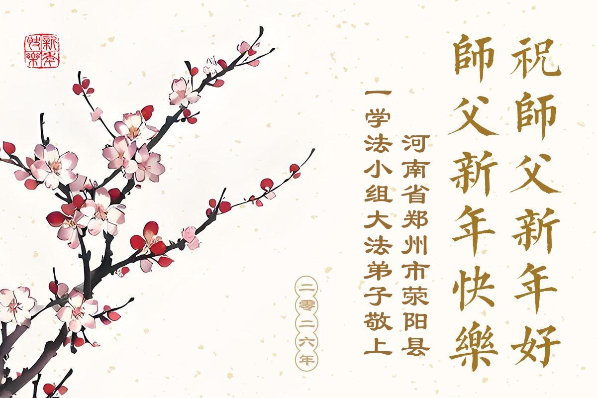 以下是部份來自中國各省、市、地區的學法煉功小組、講真相小組、資料點大法弟子們敬致師尊的新年賀詞賀卡: