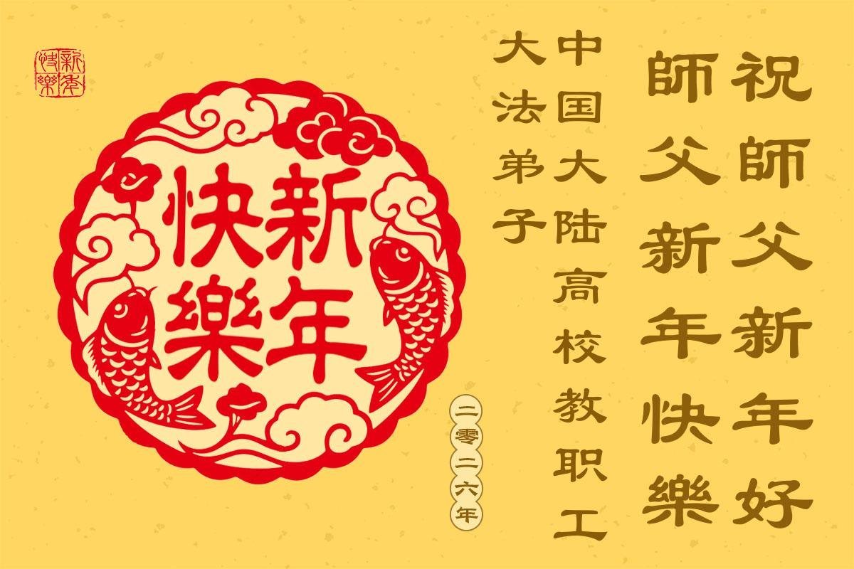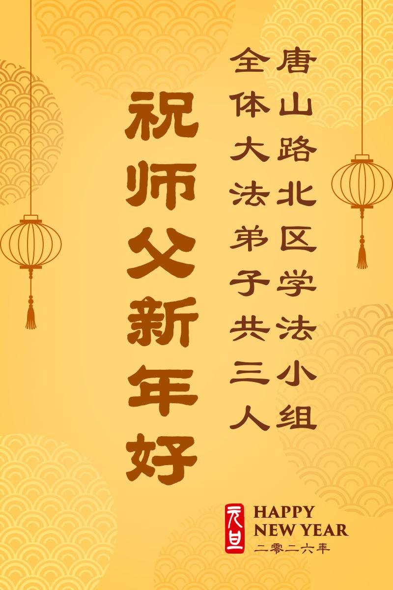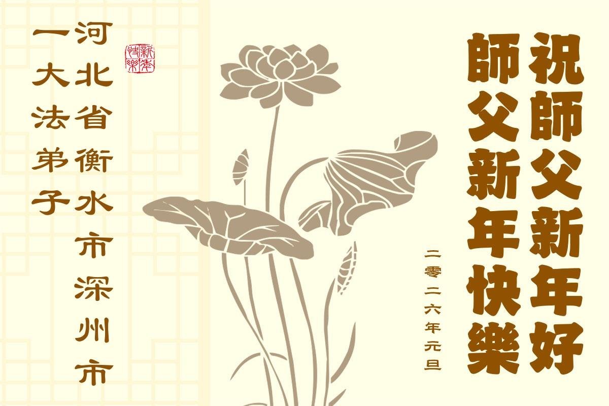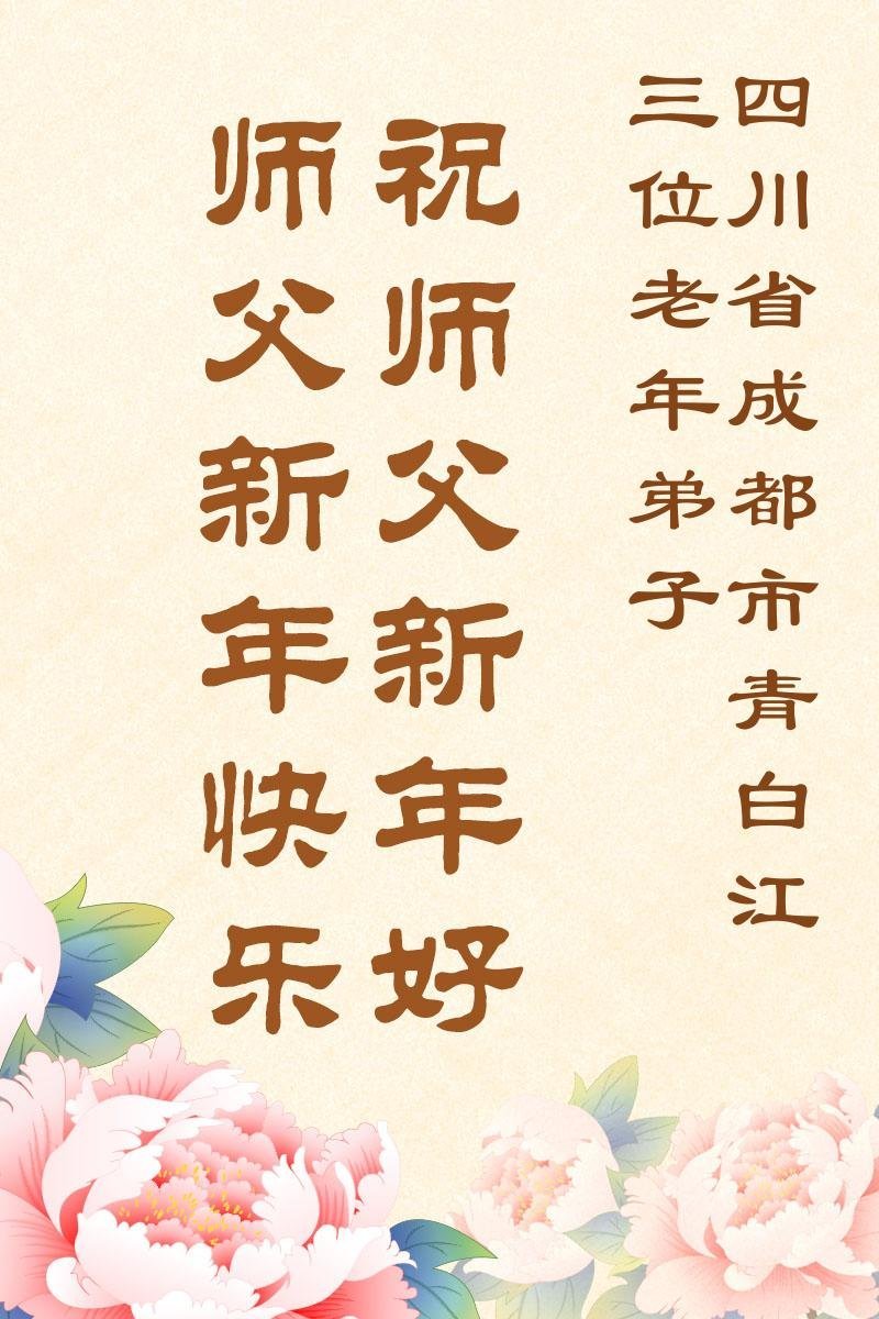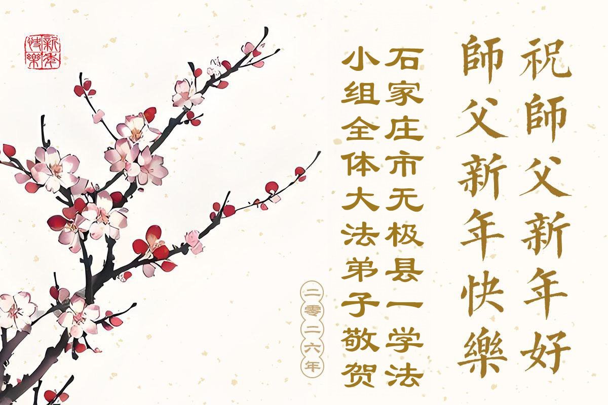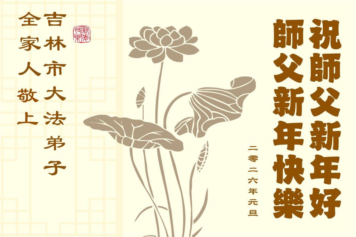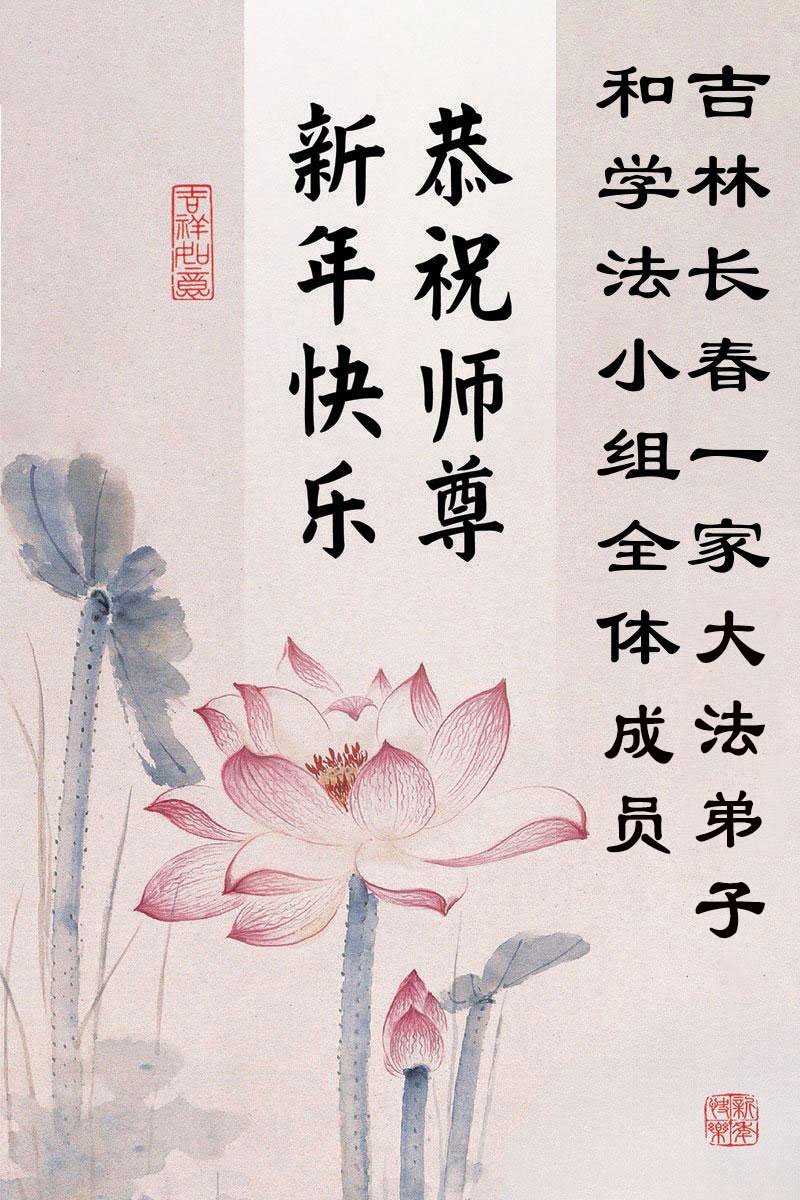 以下是部份來自中國各省、市、地區的學法煉功小組、講真相小組、資料點大法弟子們敬致師尊的新年賀詞賀卡: