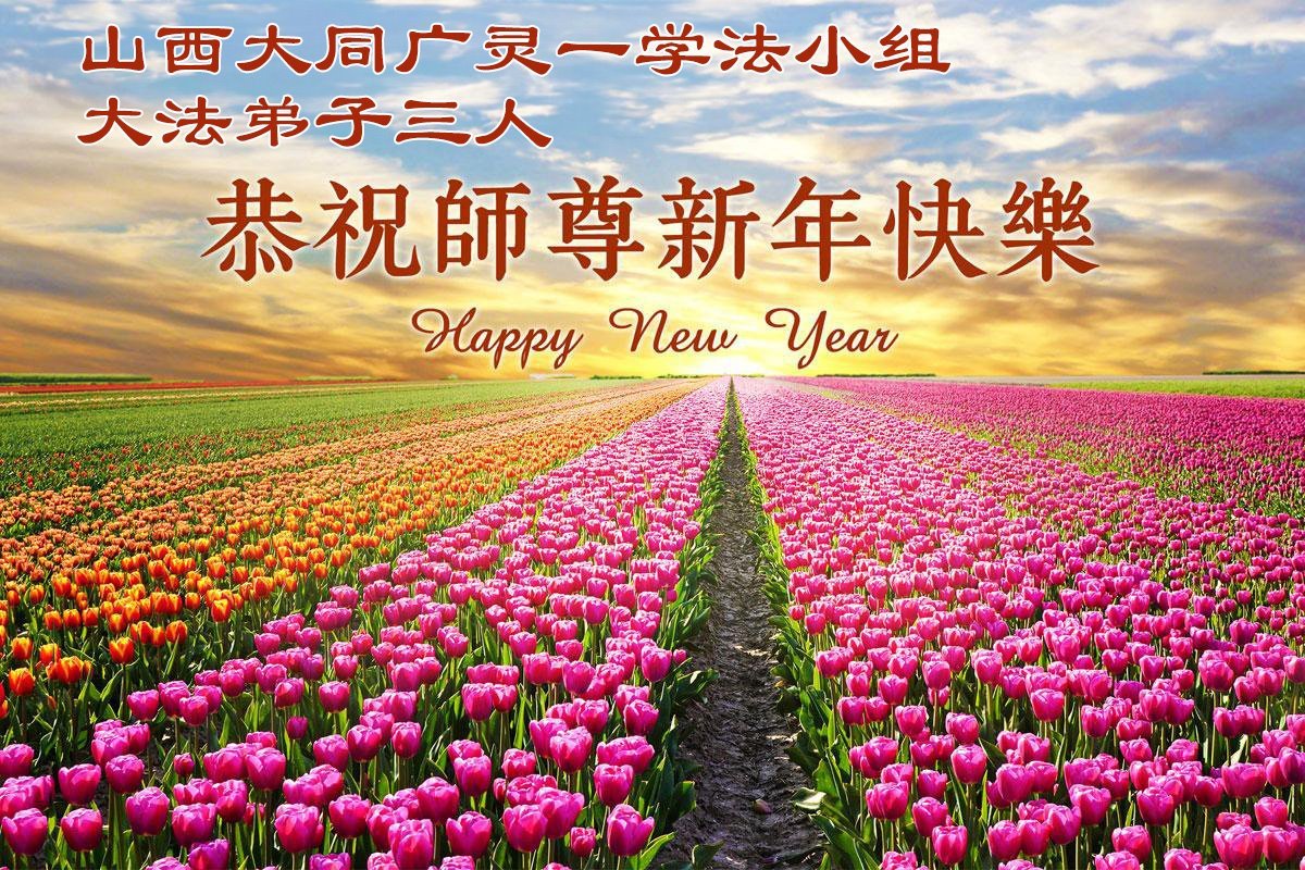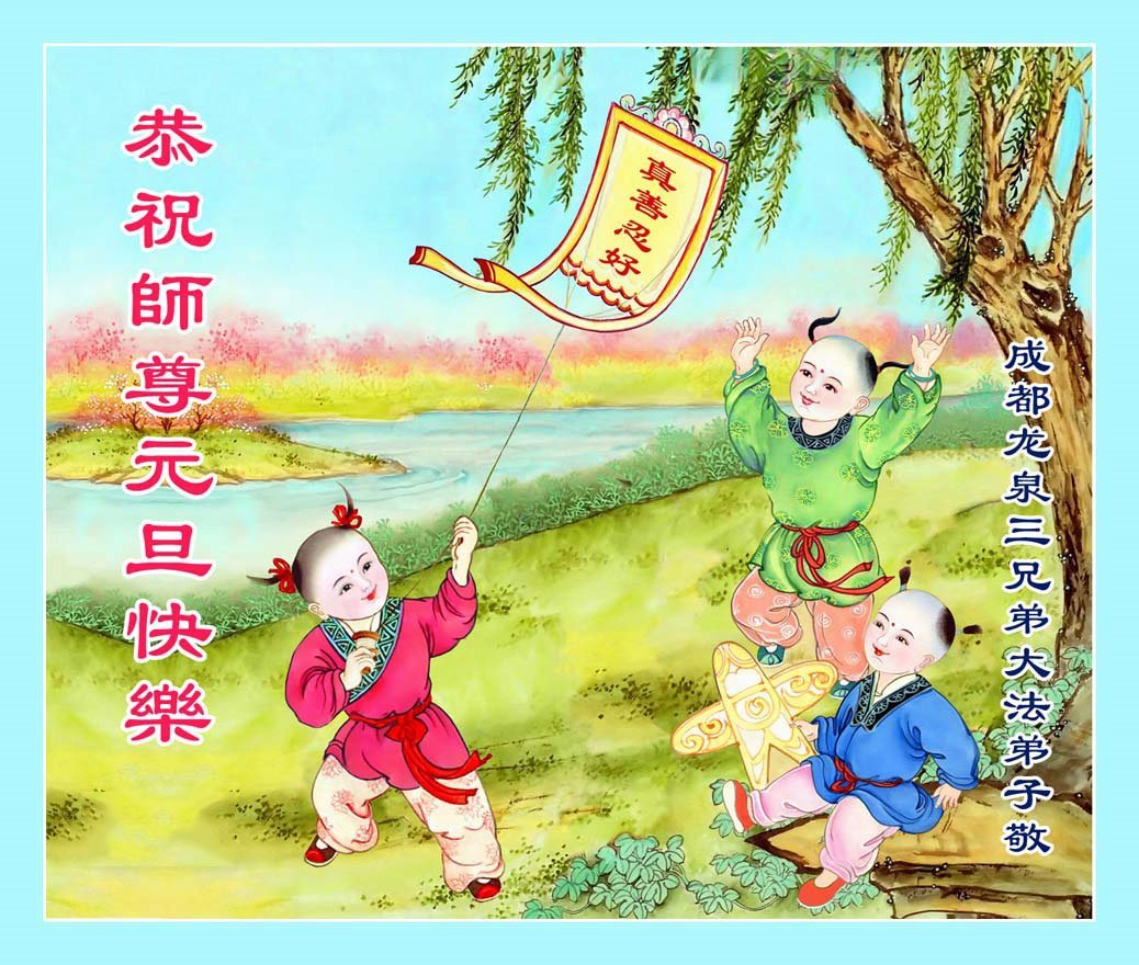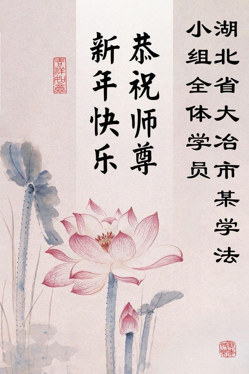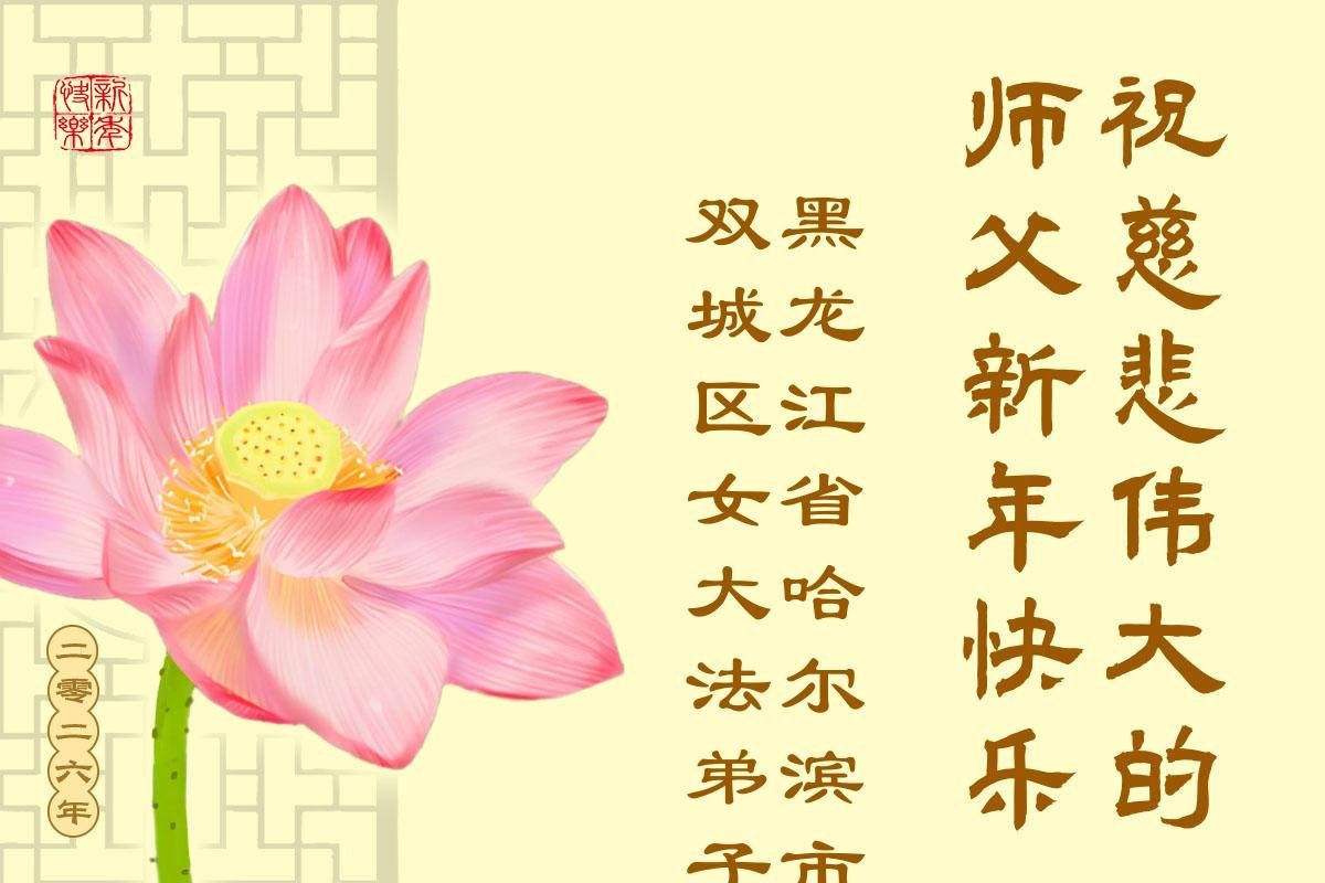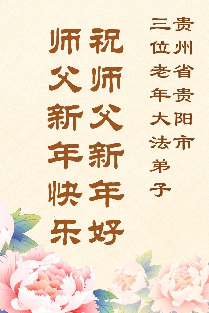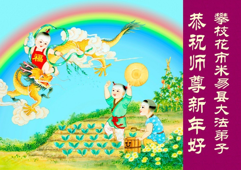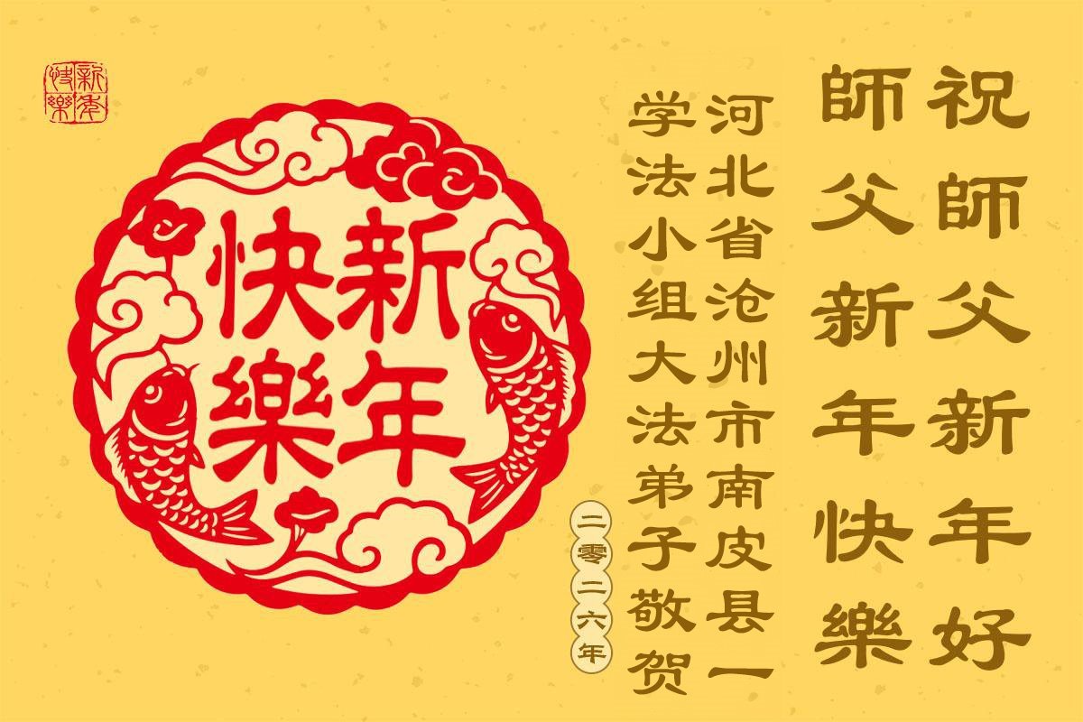 以下是部份來自中國各省、市、地區的學法煉功小組、講真相小組、資料點大法弟子們敬致師尊的新年賀詞賀卡: