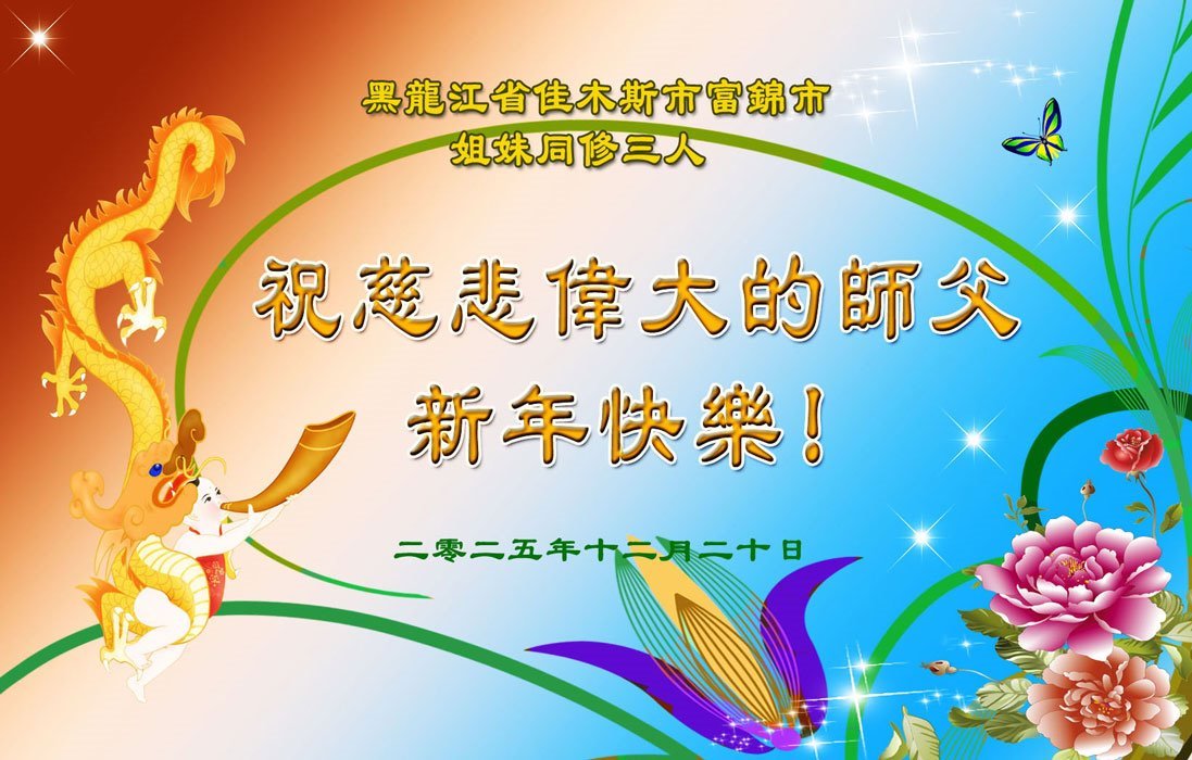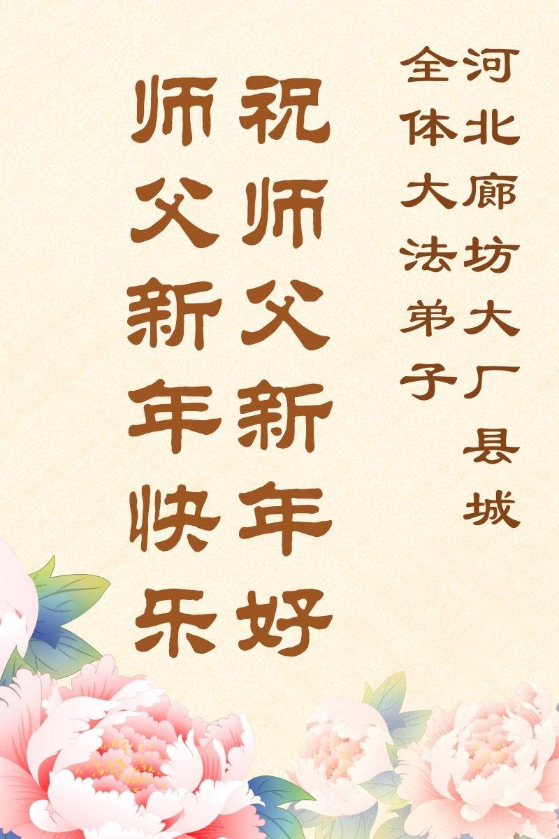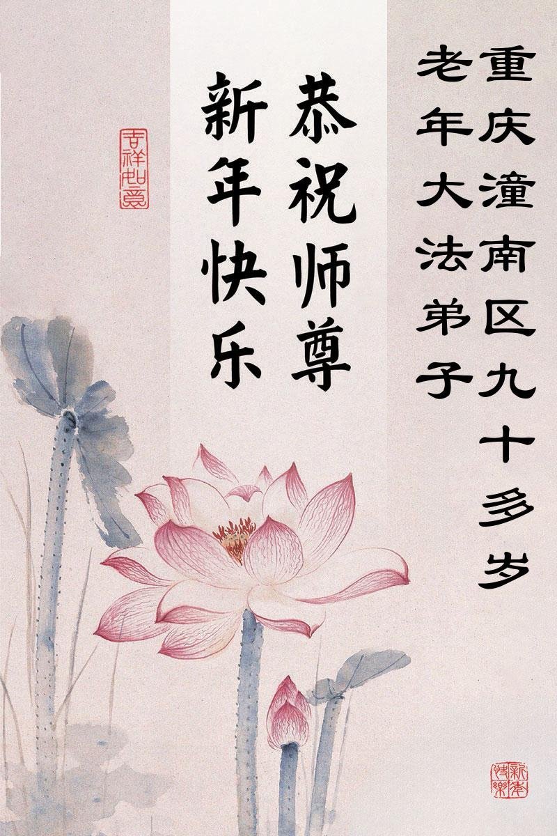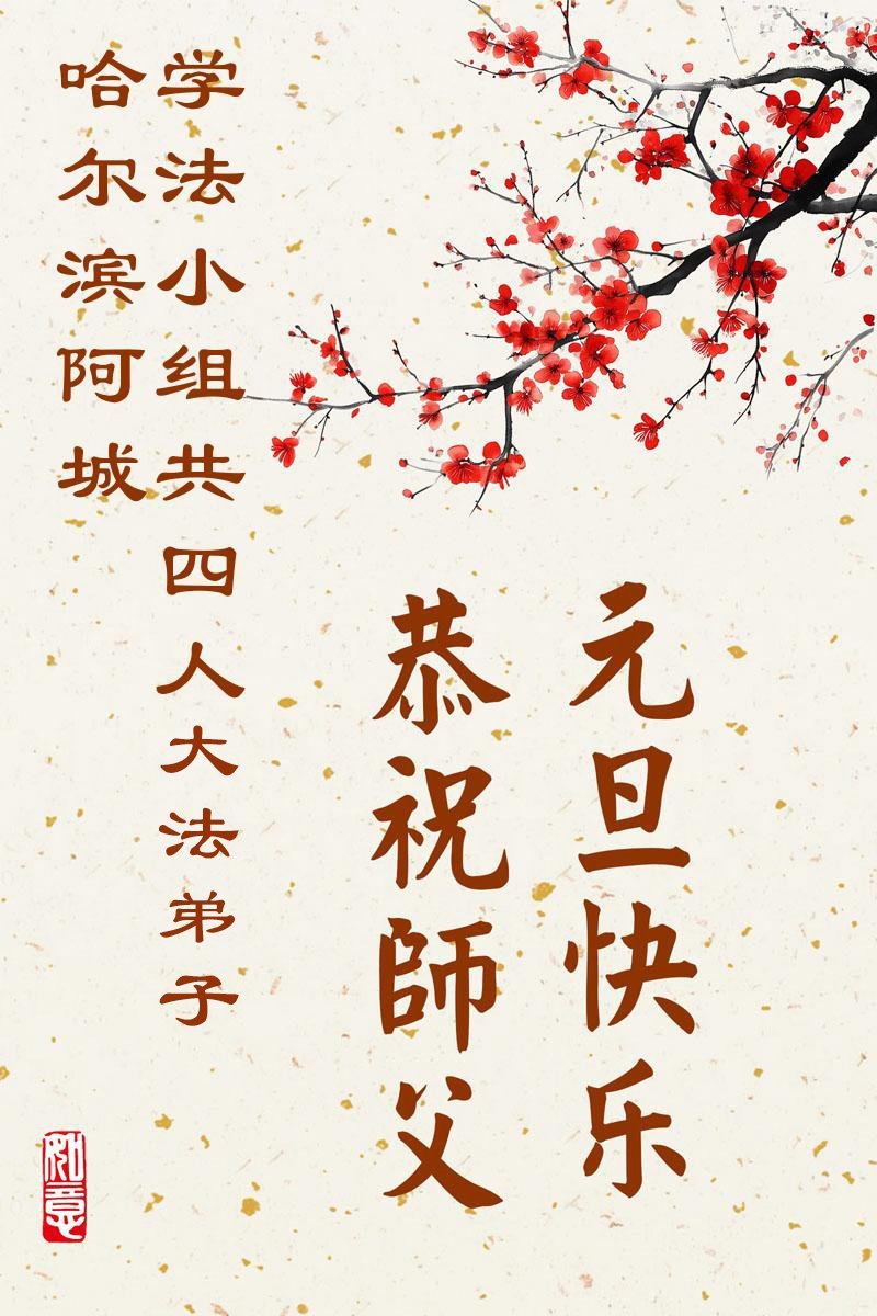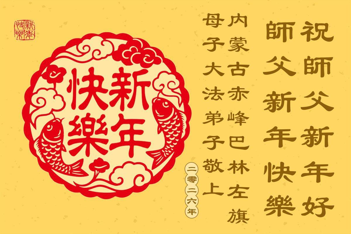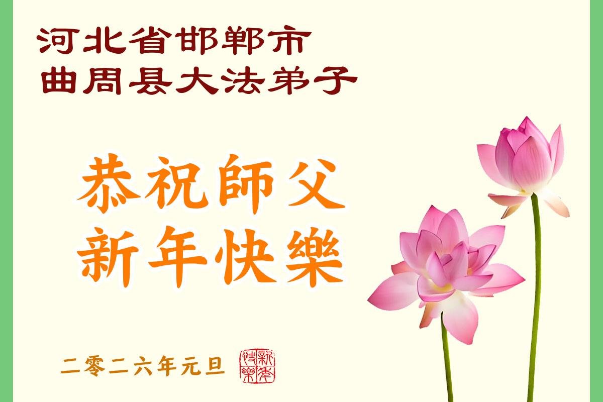 以下是部份來自中國各省、市、地區的學法煉功小組、講真相小組、資料點大法弟子們敬致師尊的新年賀詞賀卡: