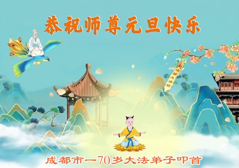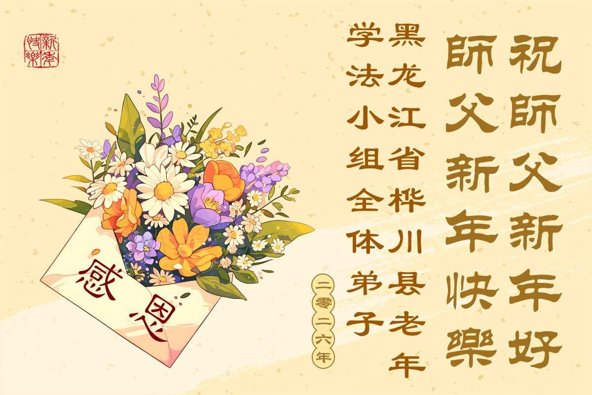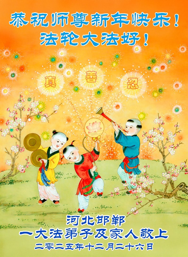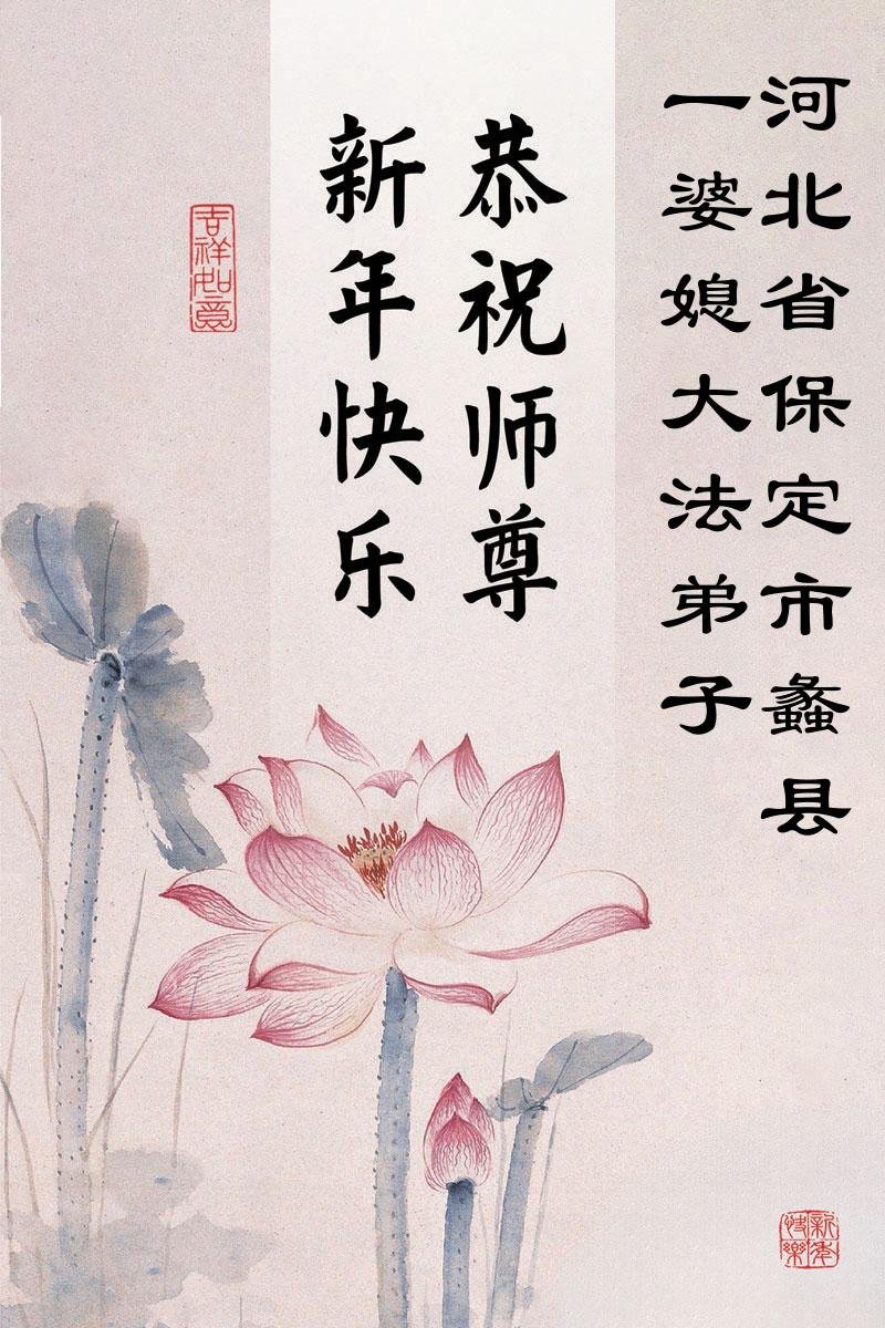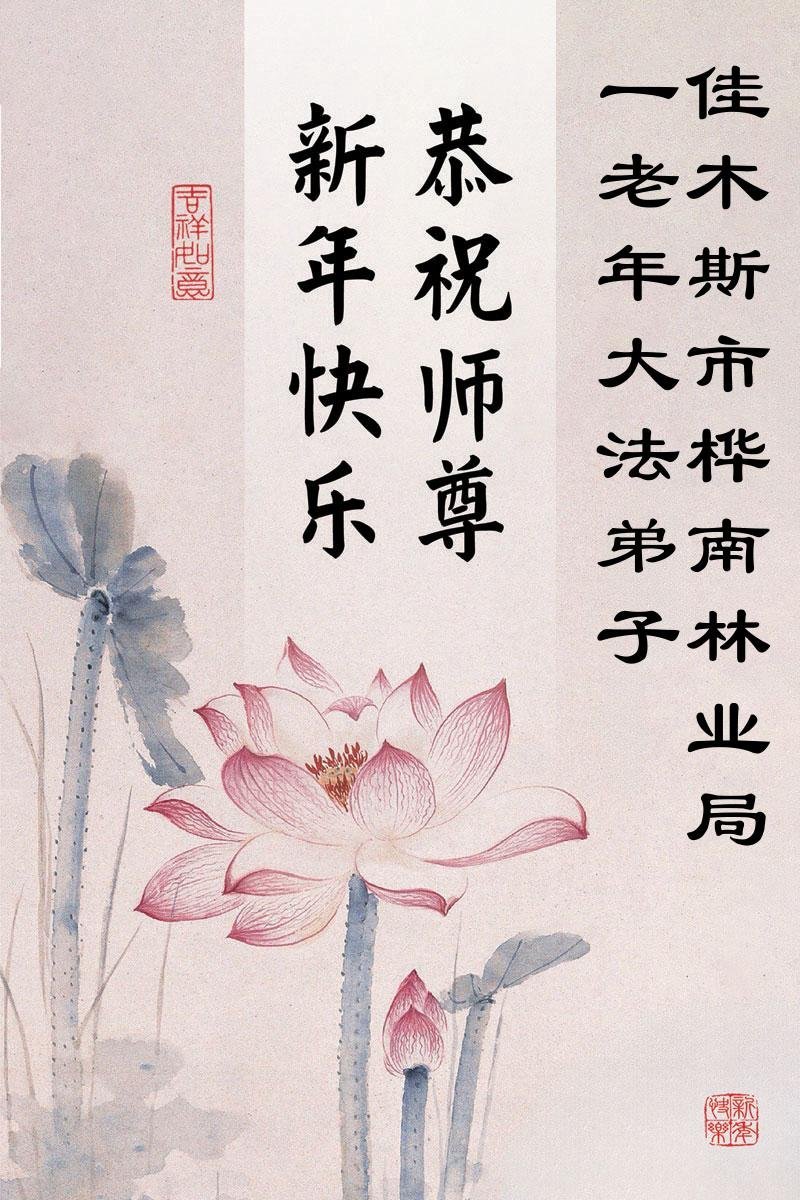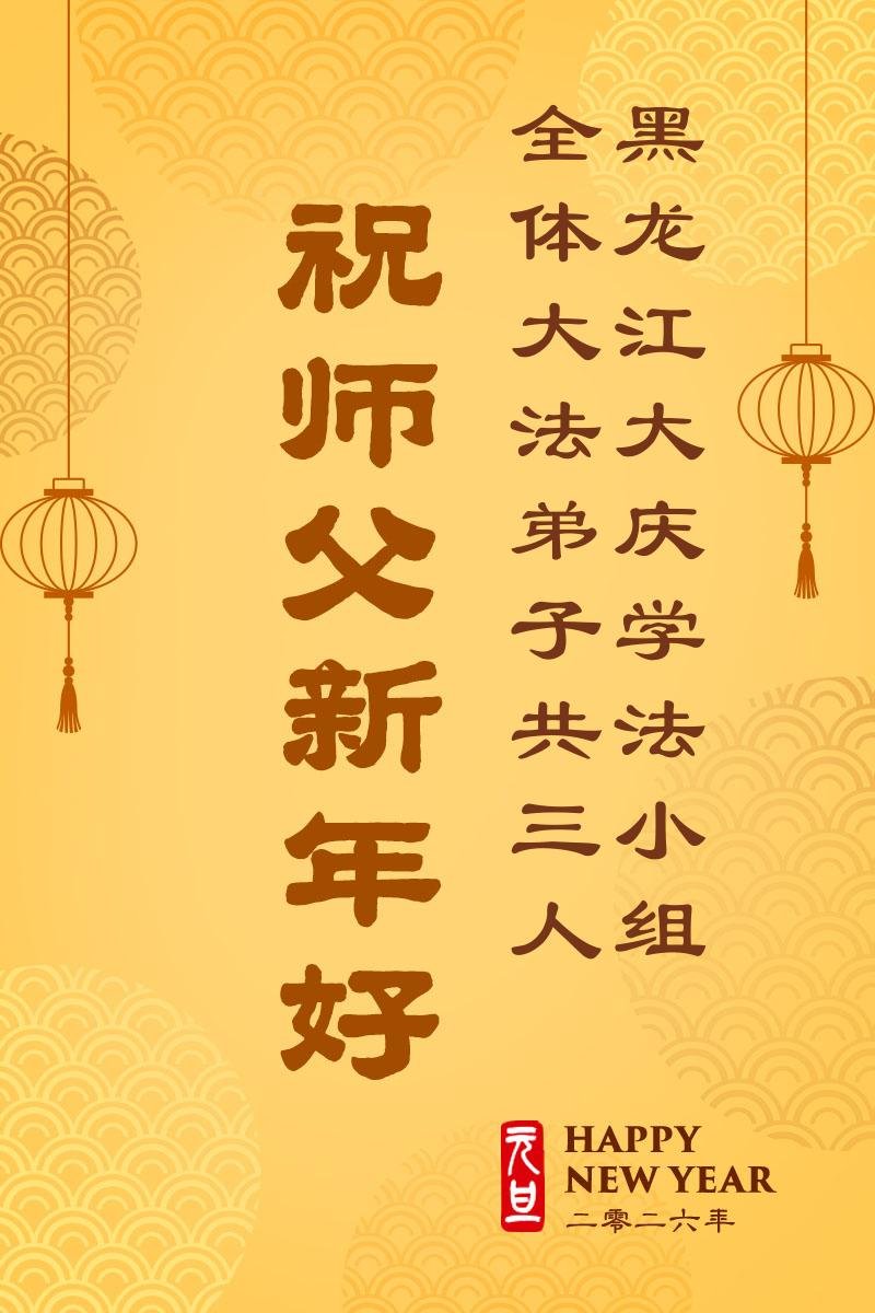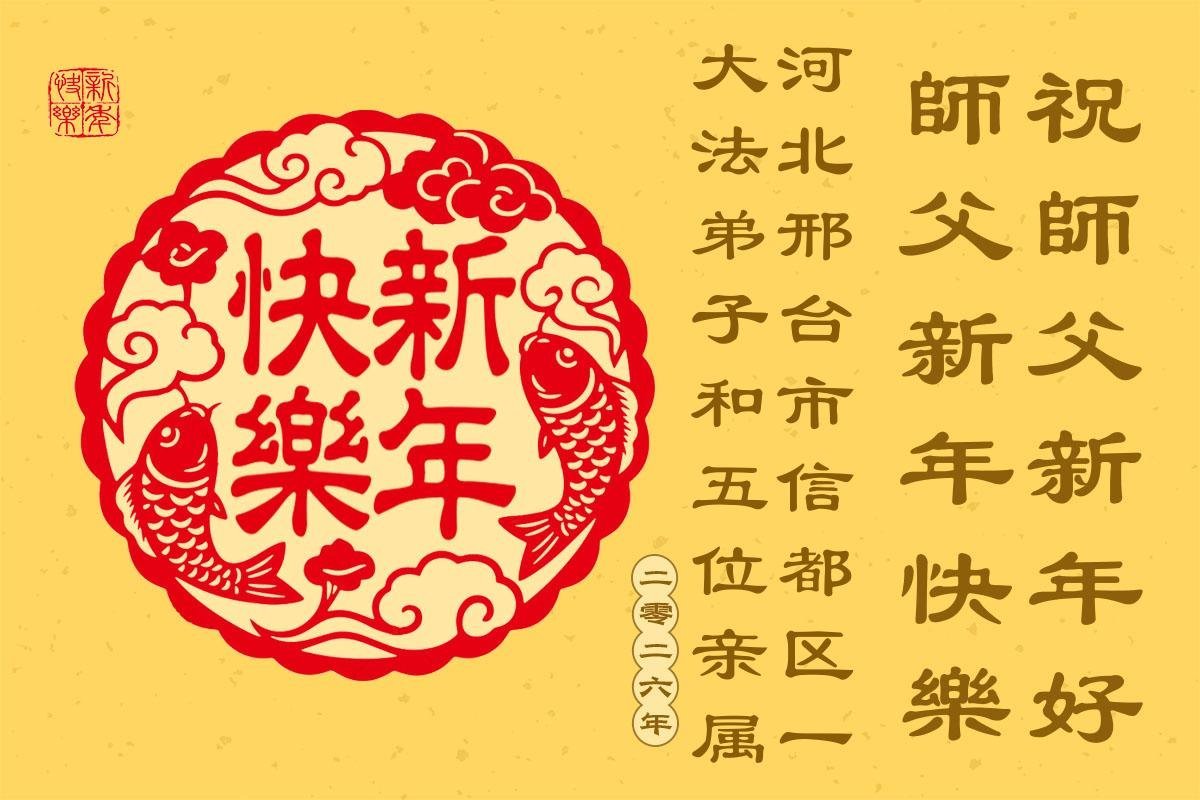 以下是部份來自中國各省、市、地區的學法煉功小組、講真相小組、資料點大法弟子們敬致師尊的新年賀詞賀卡:
