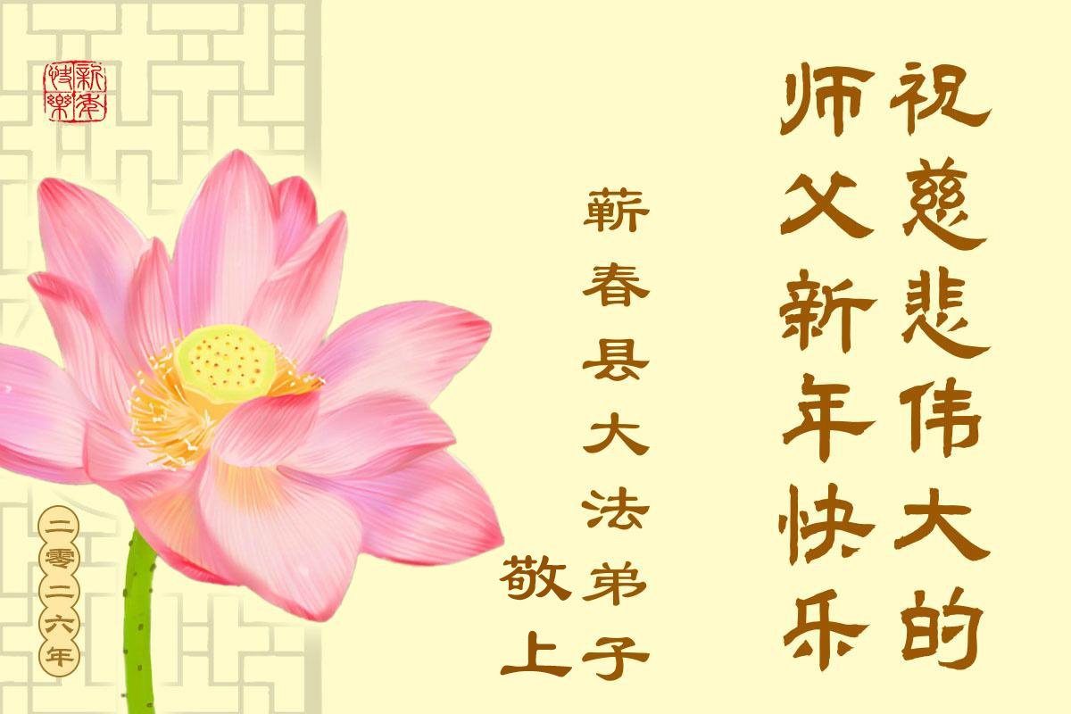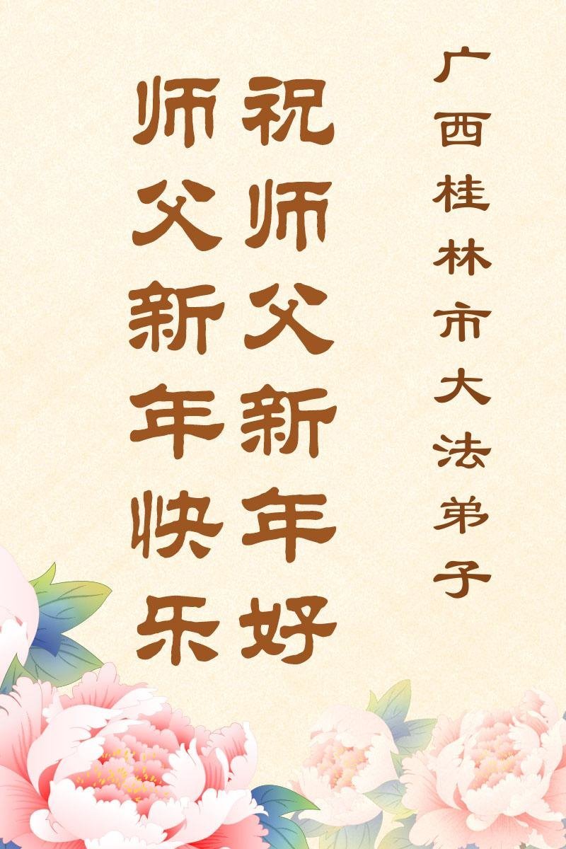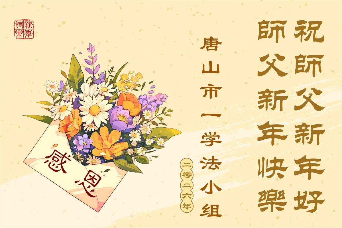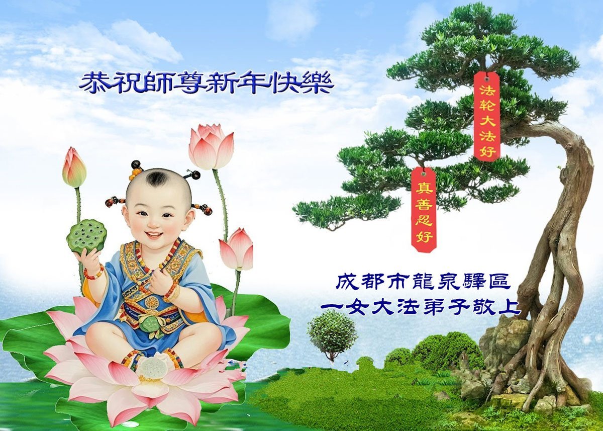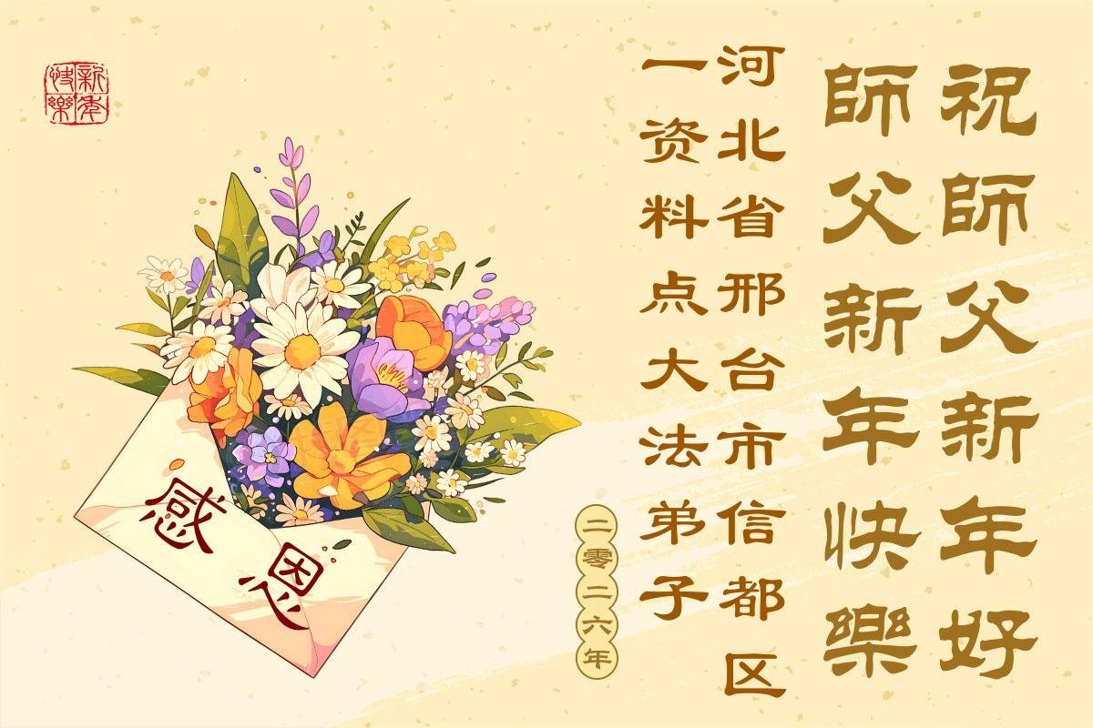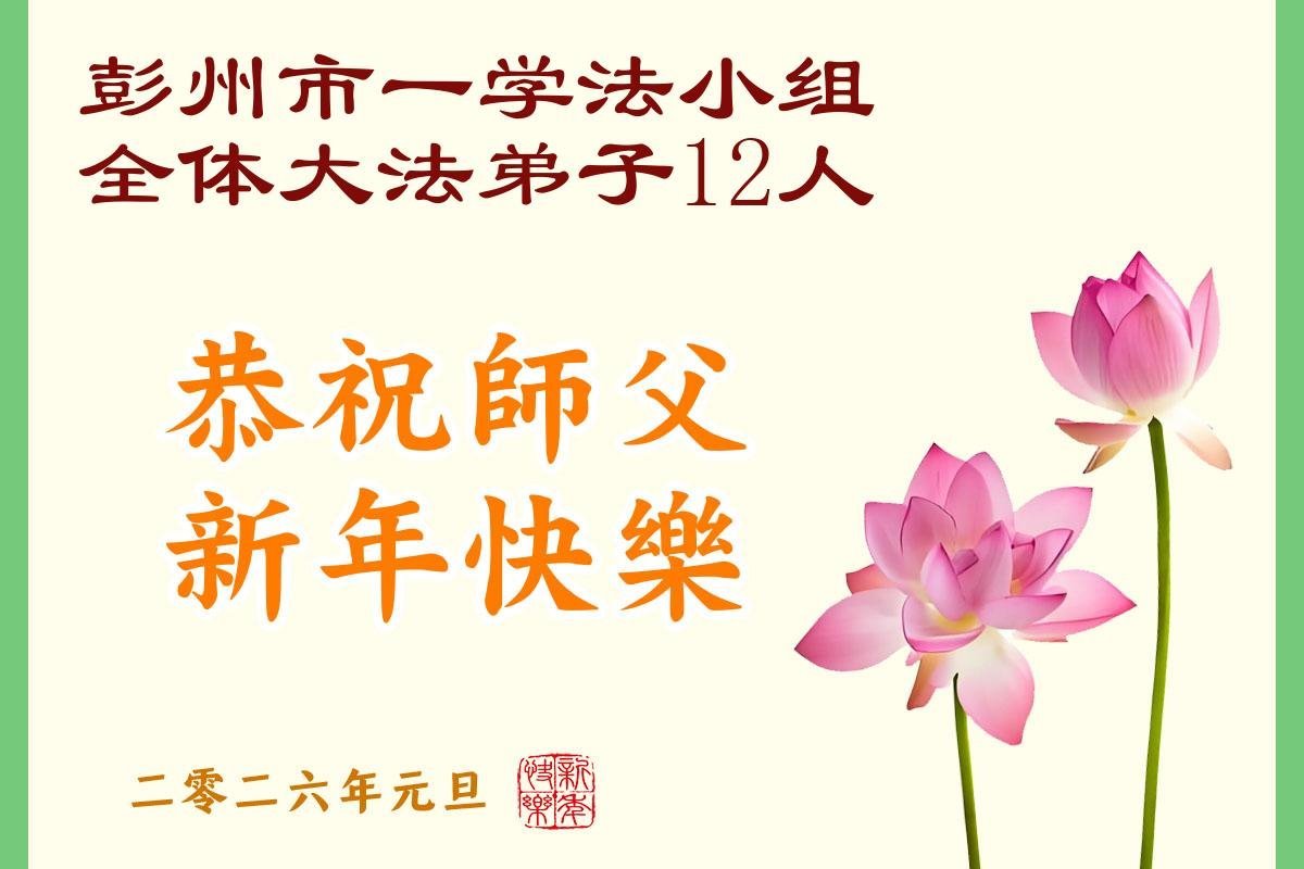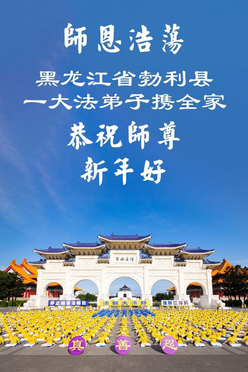 以下是部份來自中國各省、市、地區的學法煉功小組、講真相小組、資料點大法弟子們敬致師尊的新年賀詞賀卡: