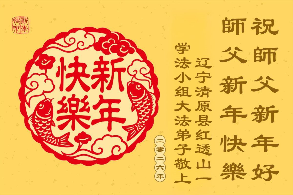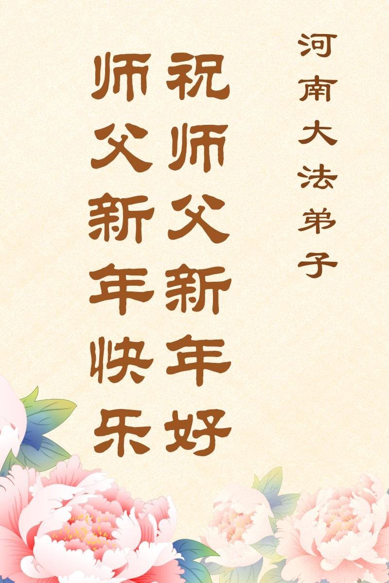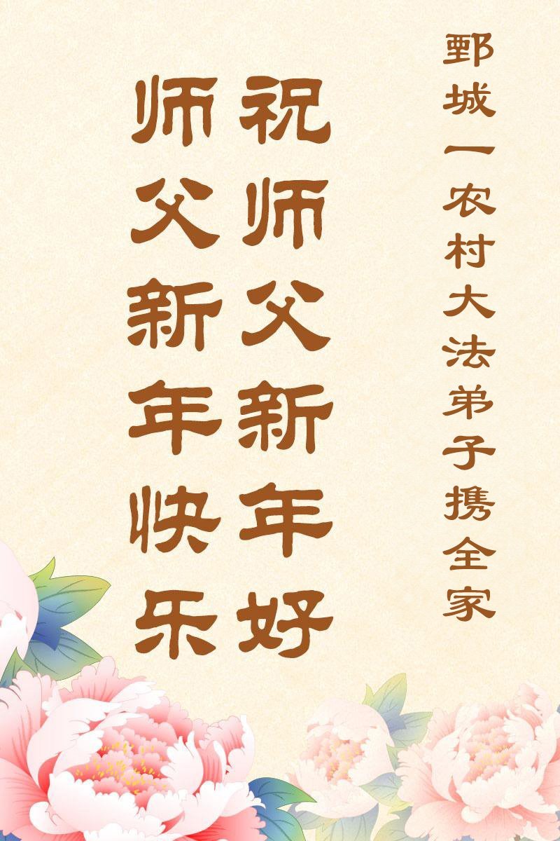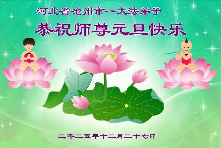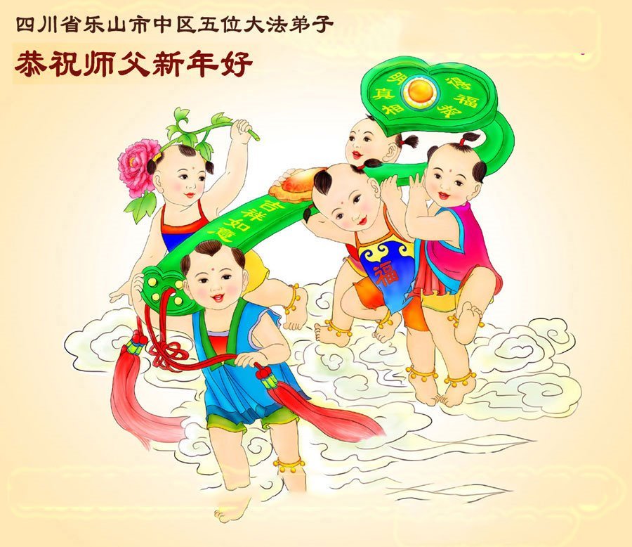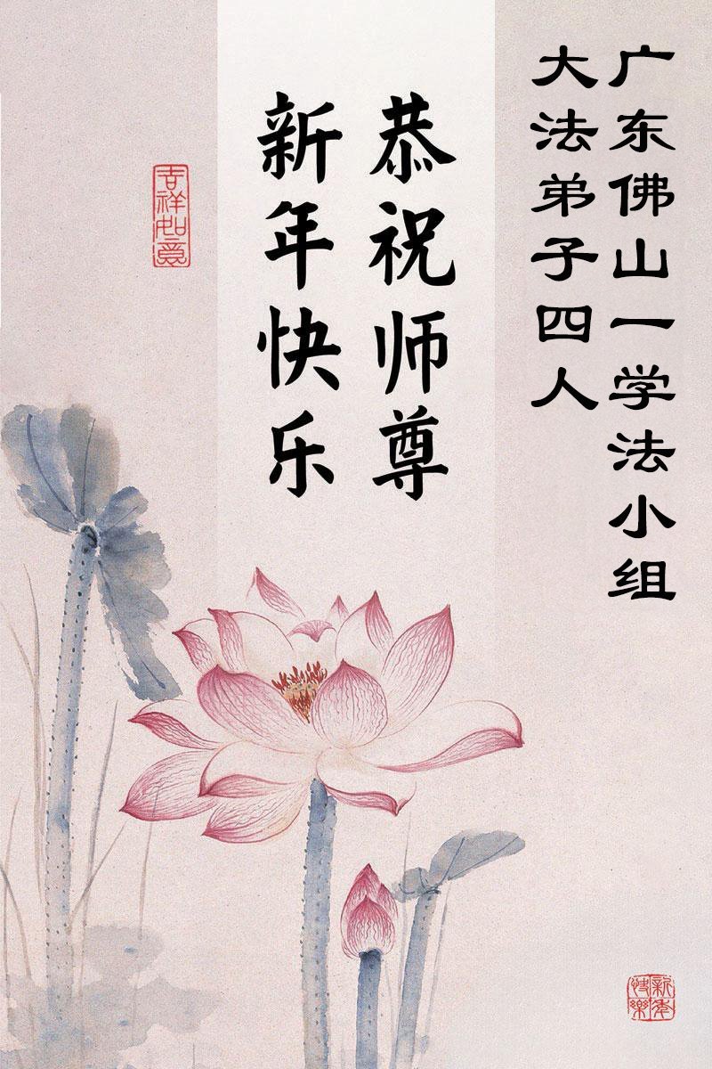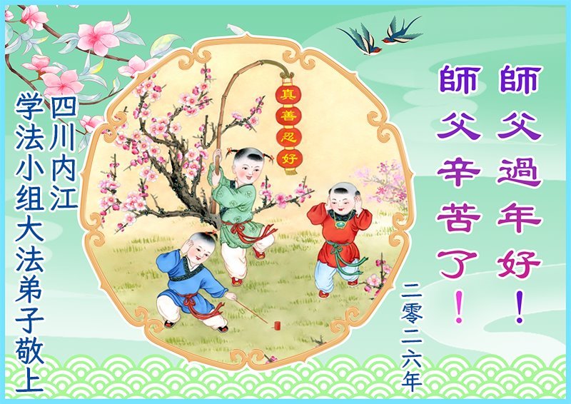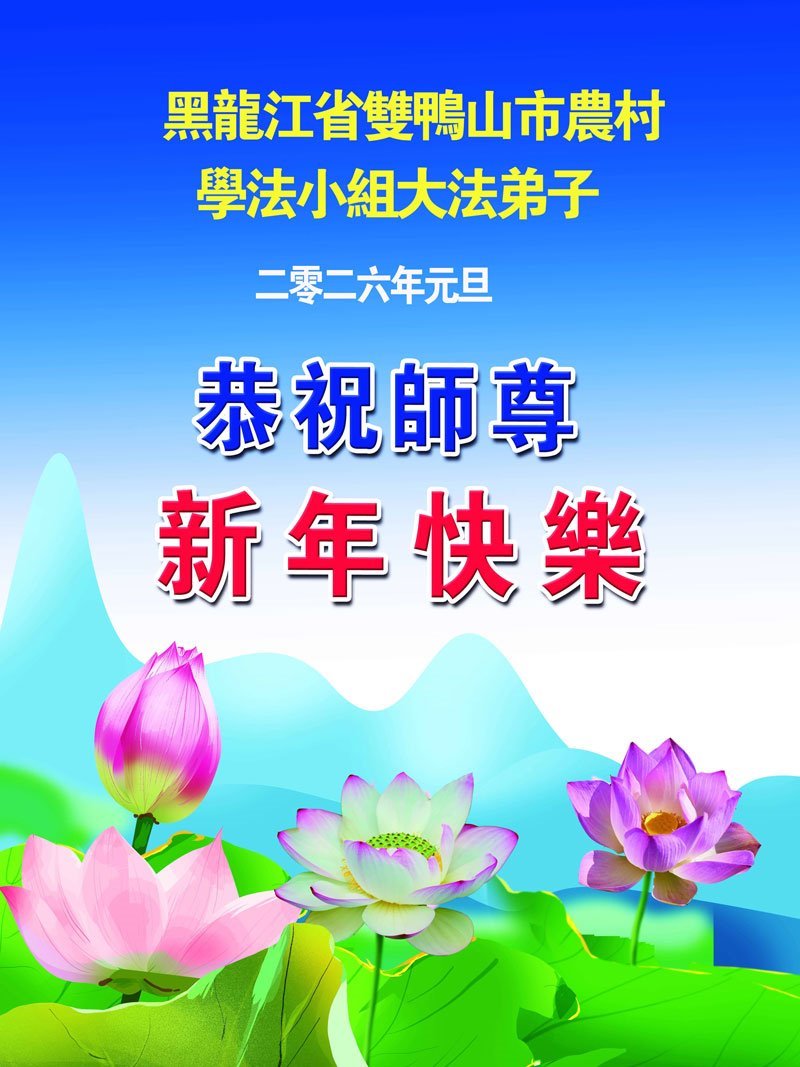以下是部份來自中國各省、市、地區的學法煉功小組、講真相小組、資料點大法弟子們敬致師尊的新年賀詞賀卡: