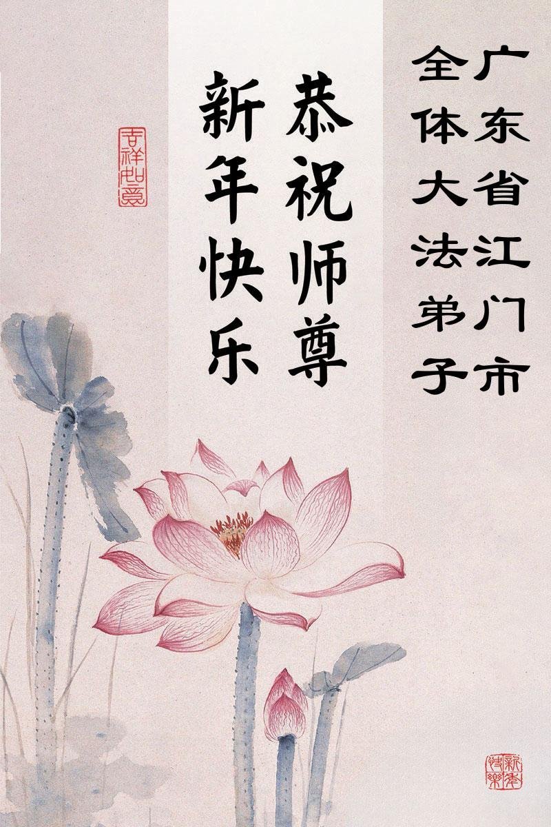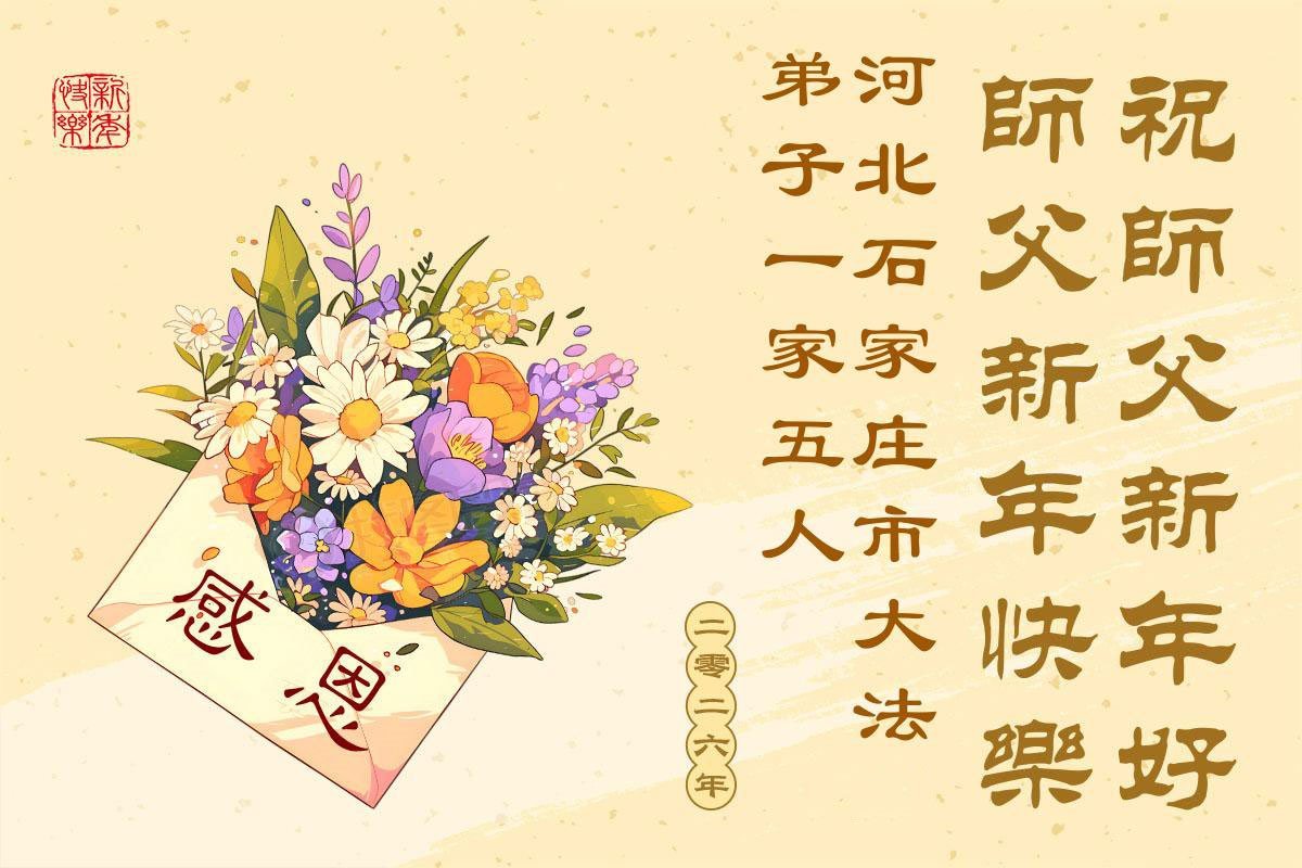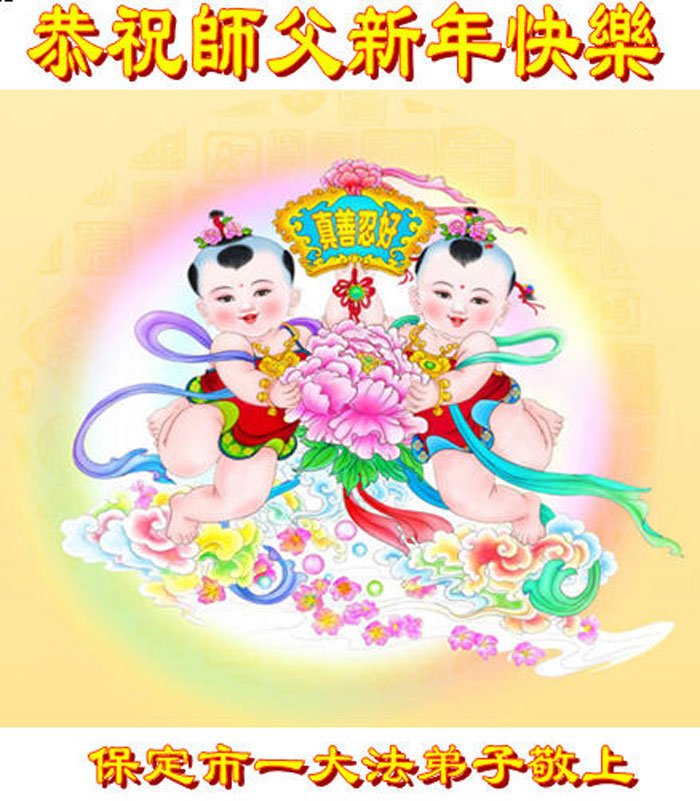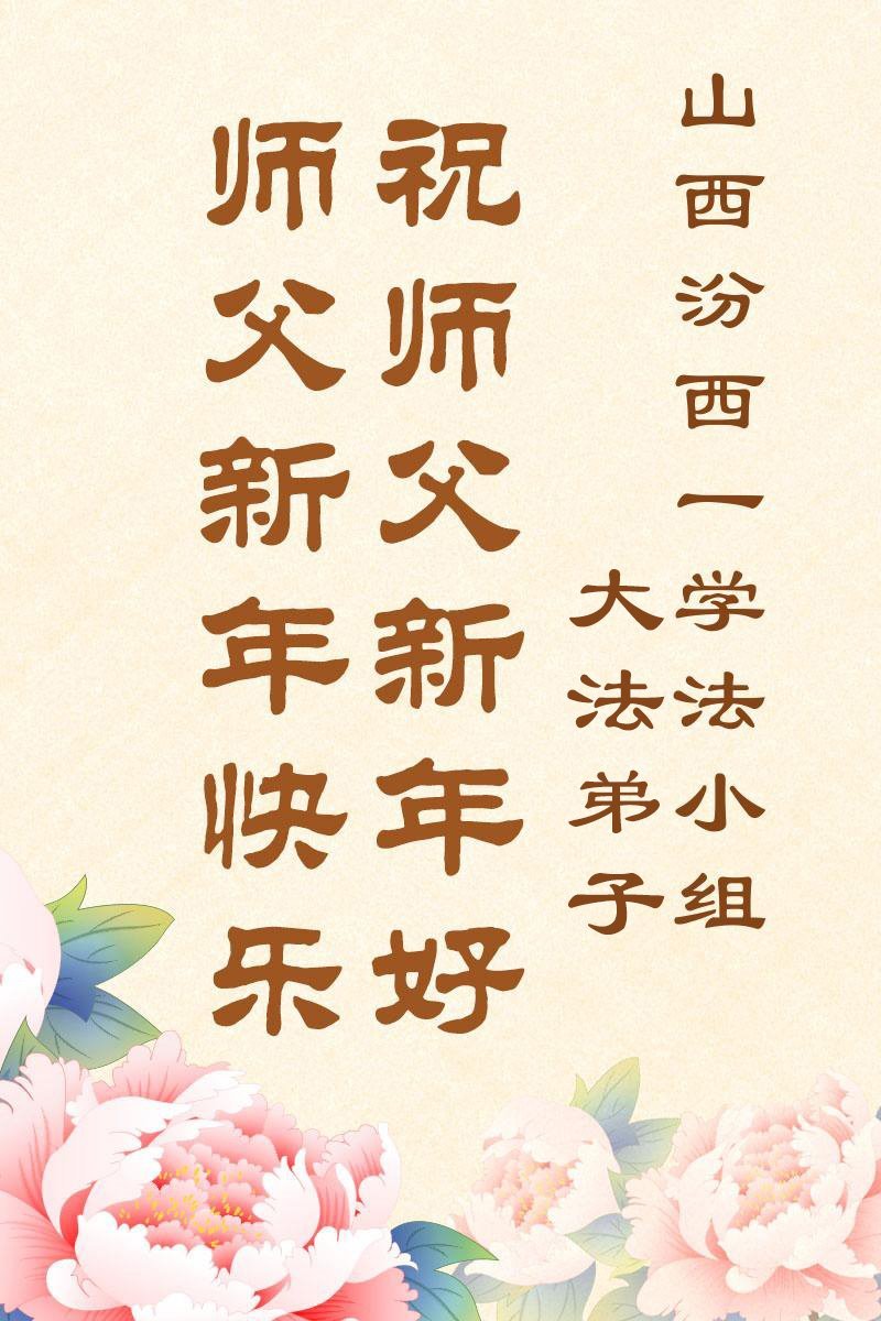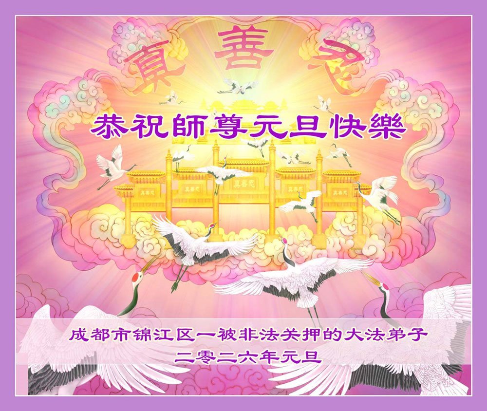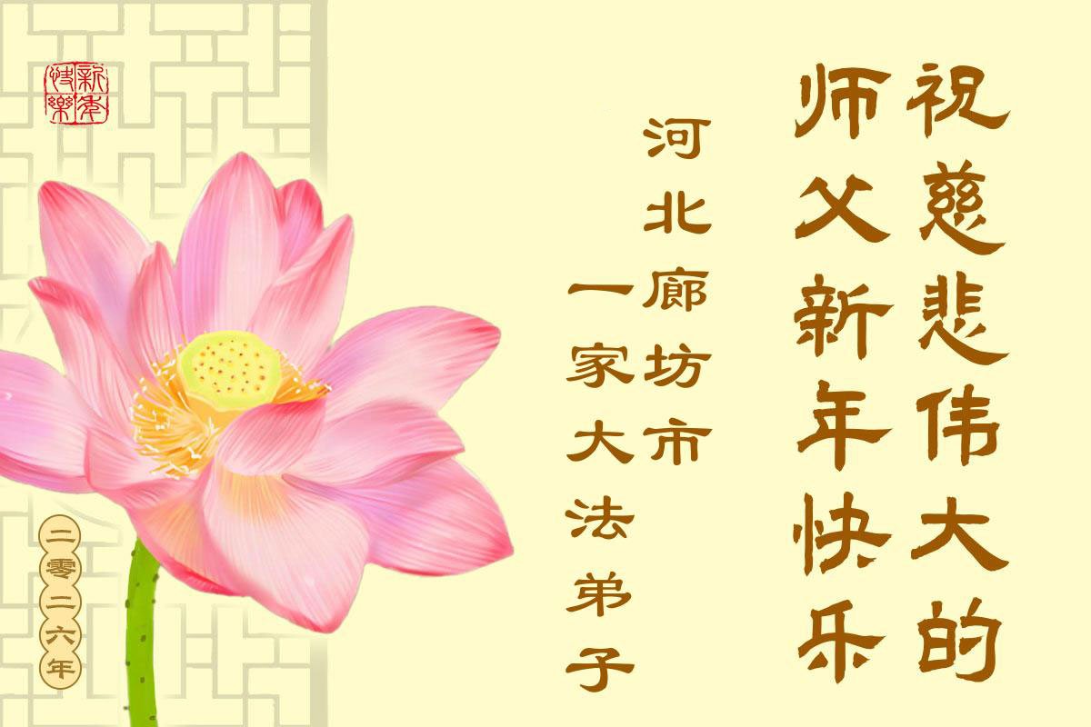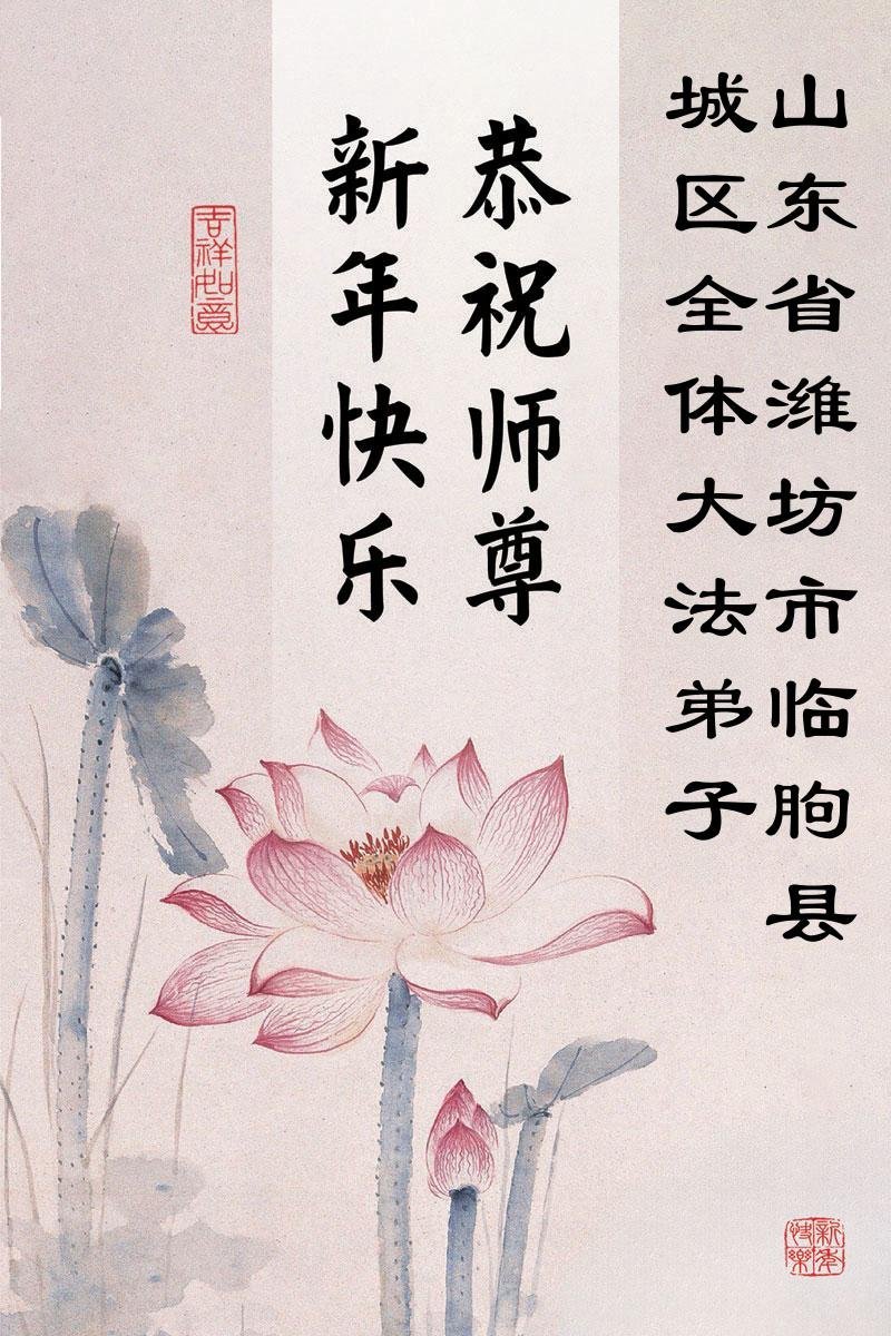 以下是部份來自中國各省、市、地區的學法煉功小組、講真相小組、資料點大法弟子們敬致師尊的新年賀詞賀卡: