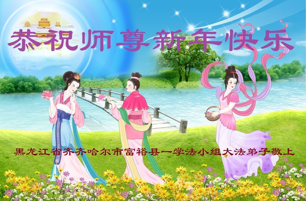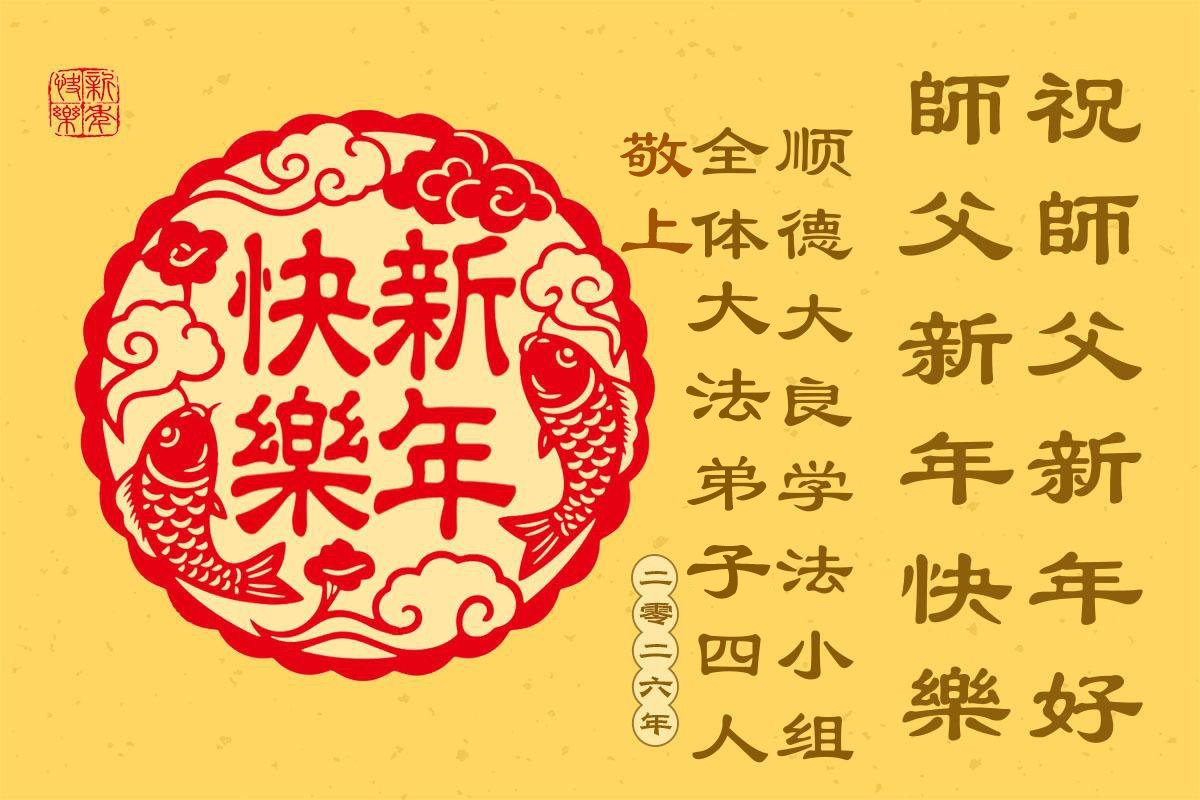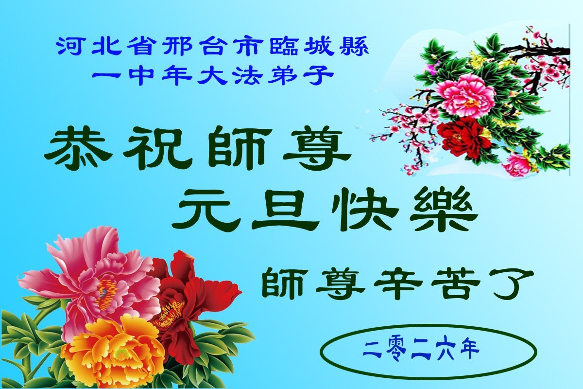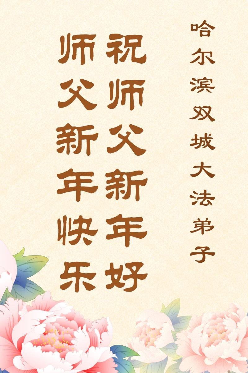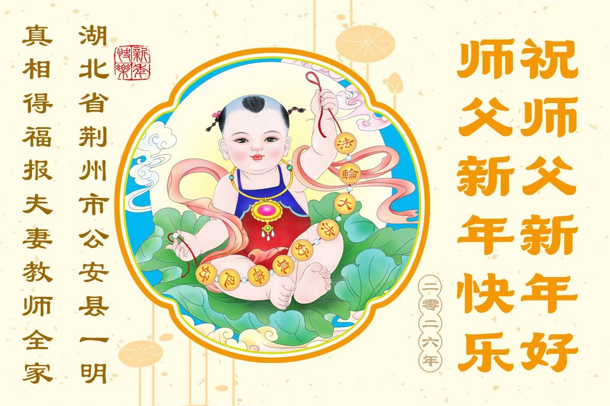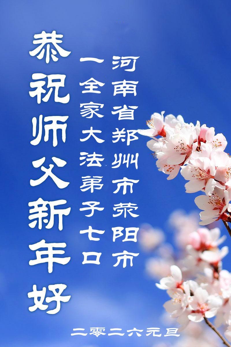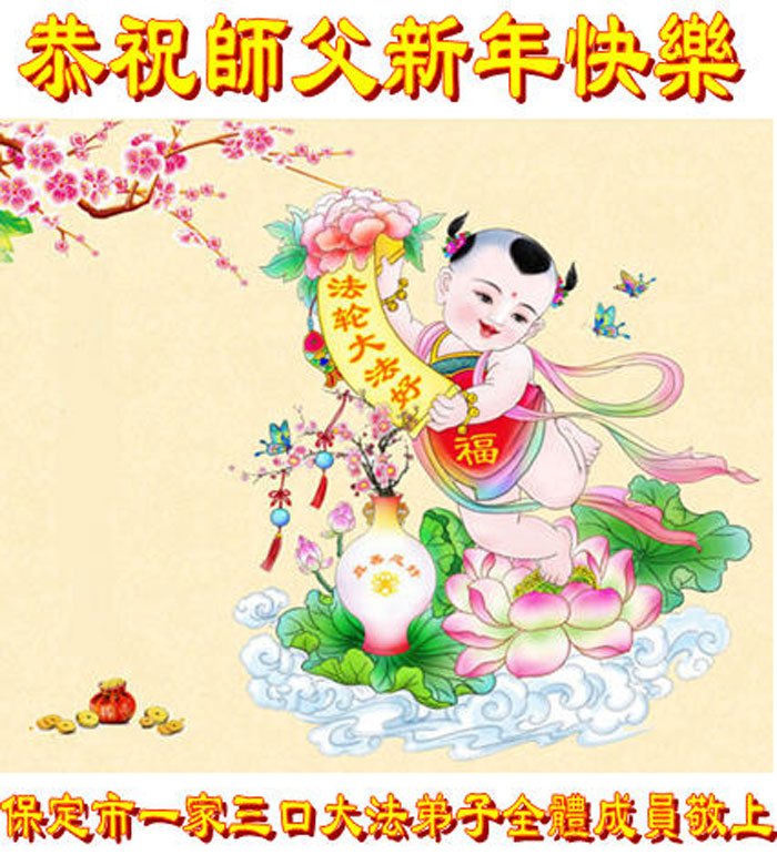 以下是部份來自中國各省、市、地區的學法煉功小組、講真相小組、資料點大法弟子們敬致師尊的新年賀詞賀卡: