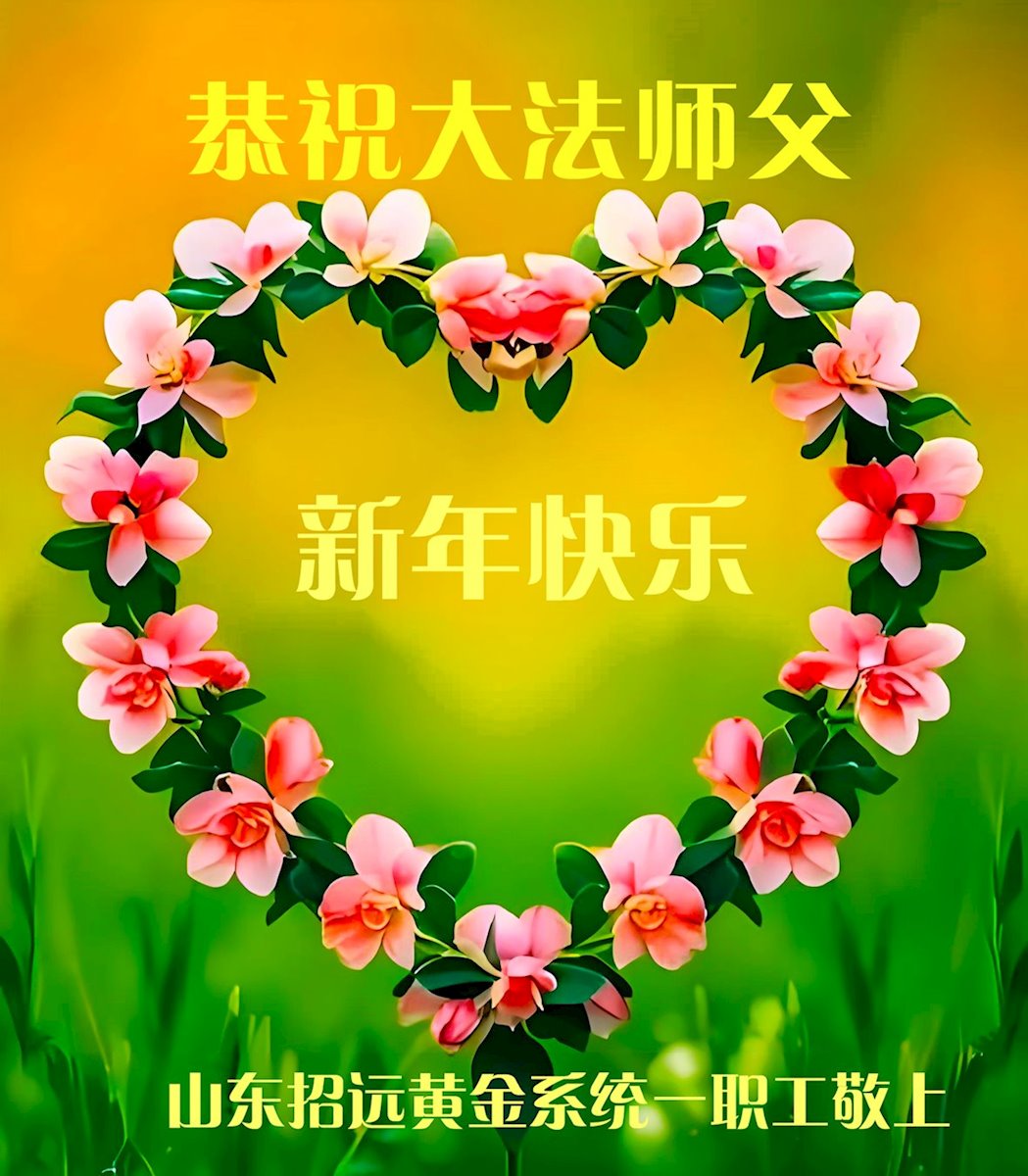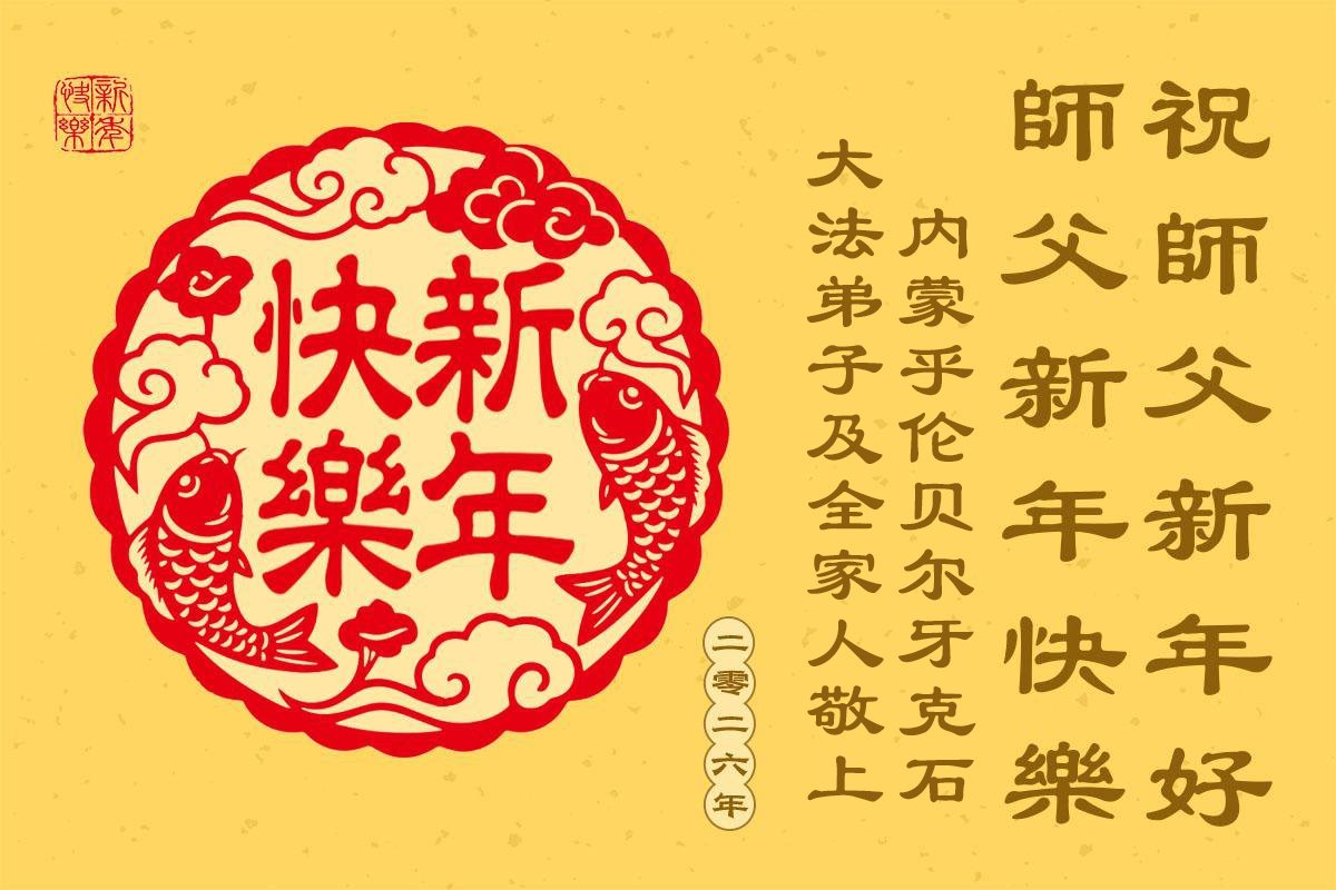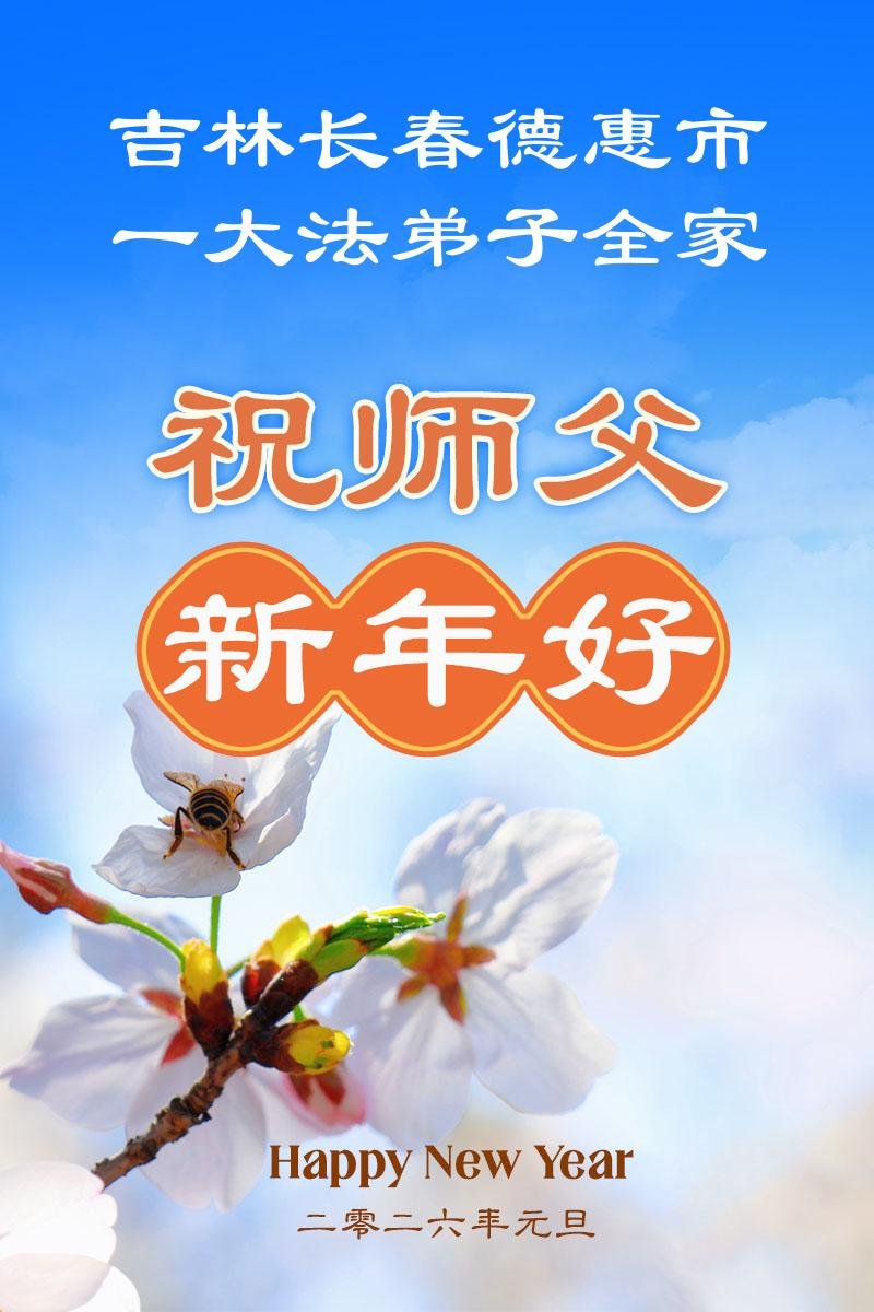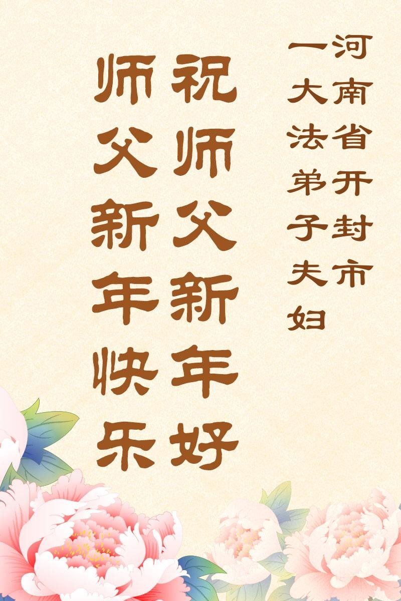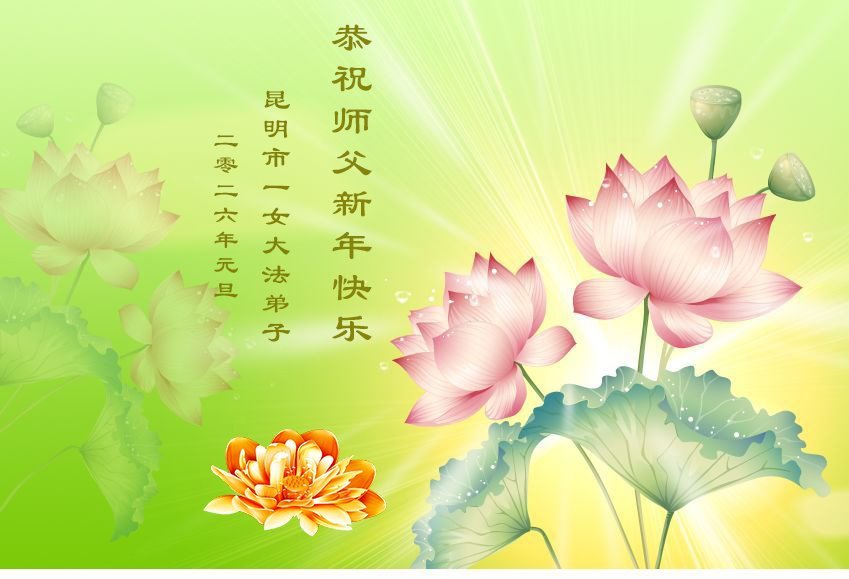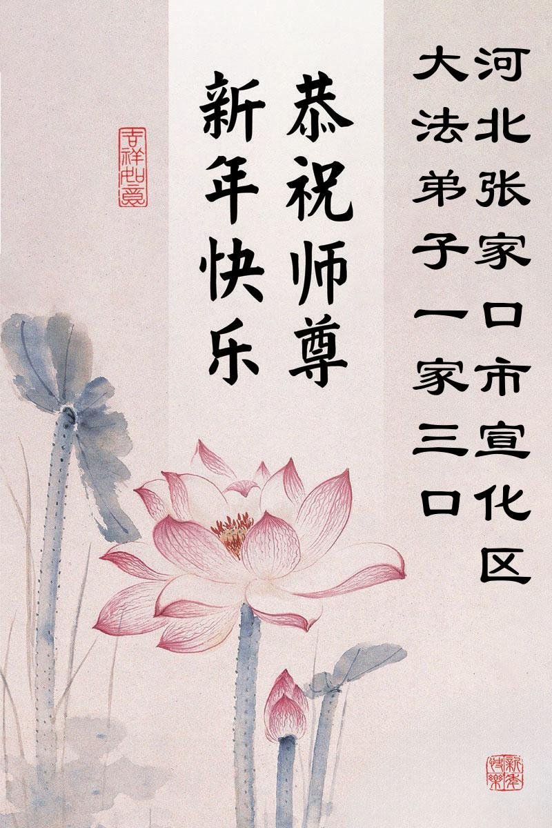 以下是部份來自中國各省、市、地區的學法煉功小組、講真相小組、資料點大法弟子們敬致師尊的新年賀詞賀卡: