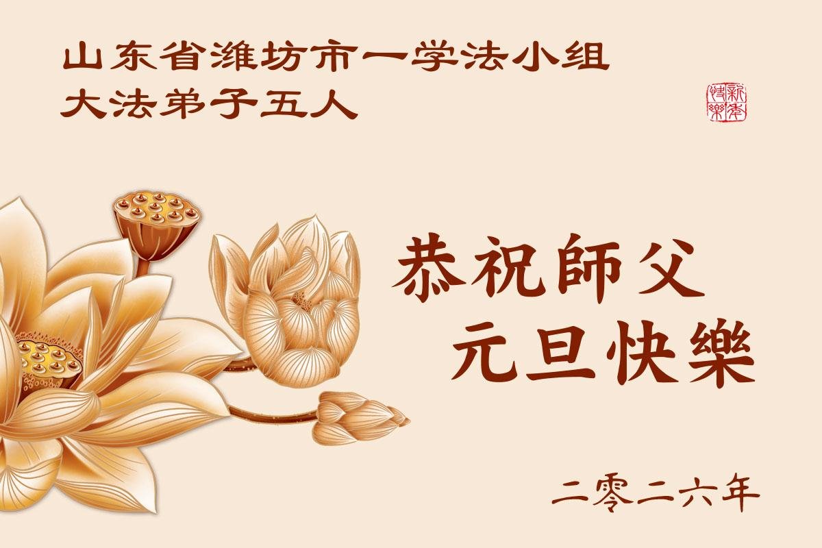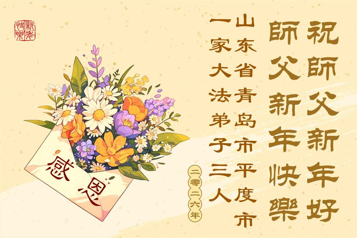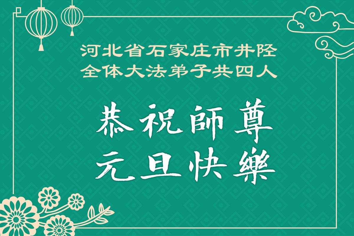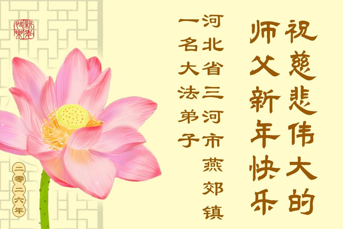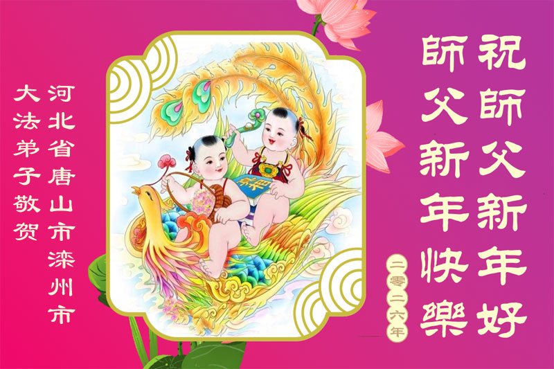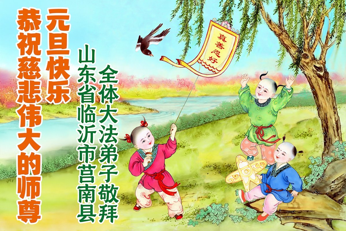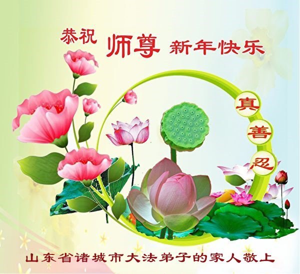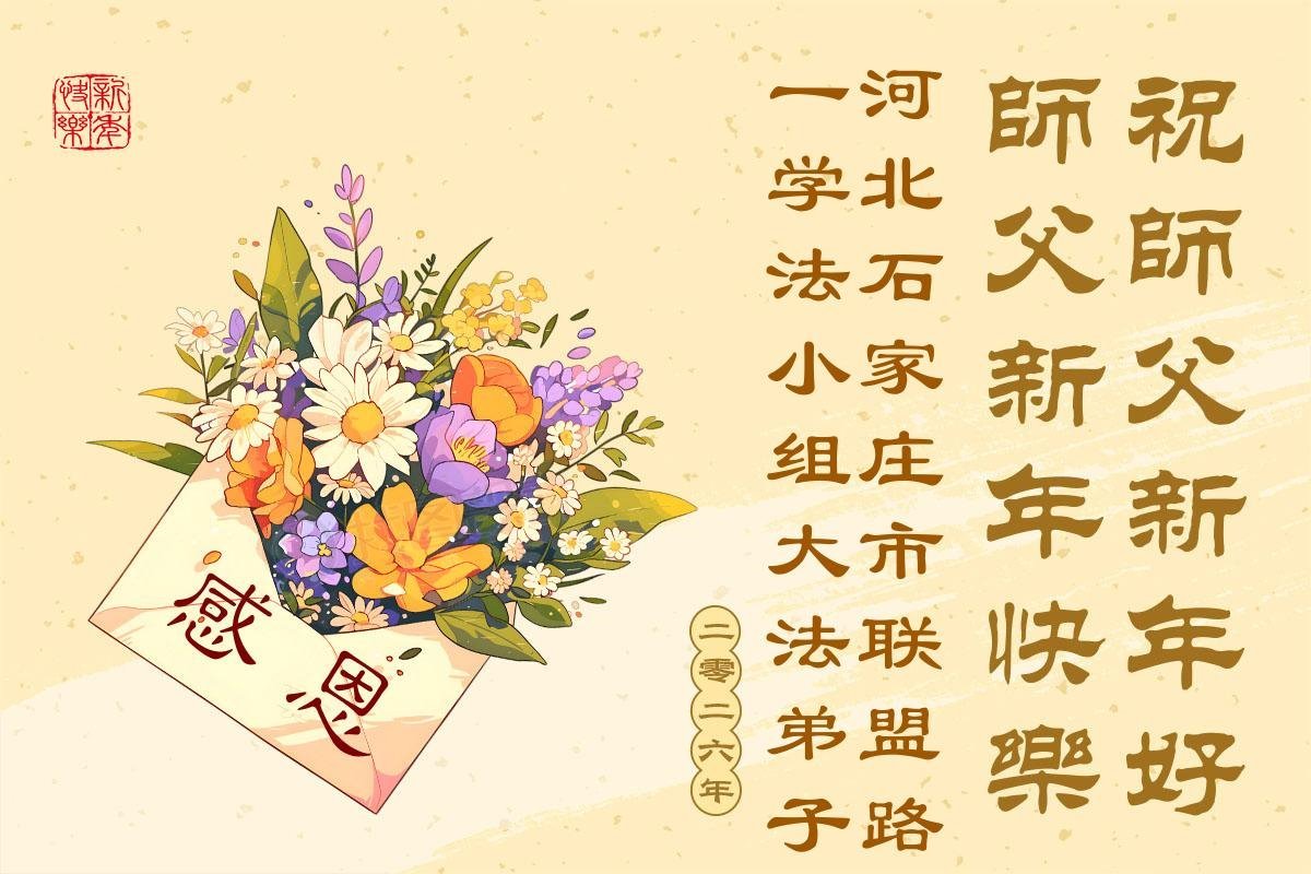 以下是部份來自中國各省、市、地區的學法煉功小組、講真相小組、資料點大法弟子們敬致師尊的新年賀詞賀卡: