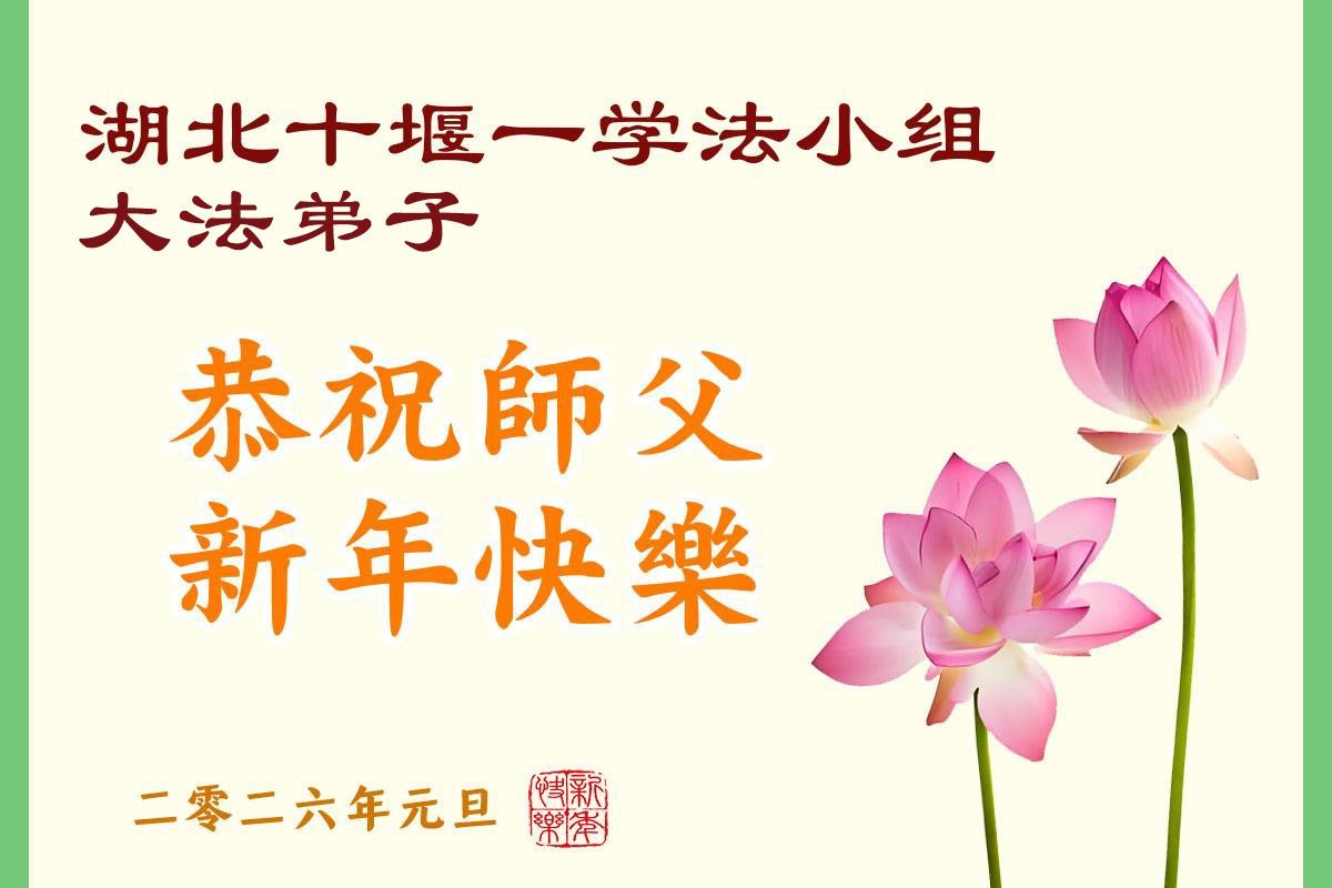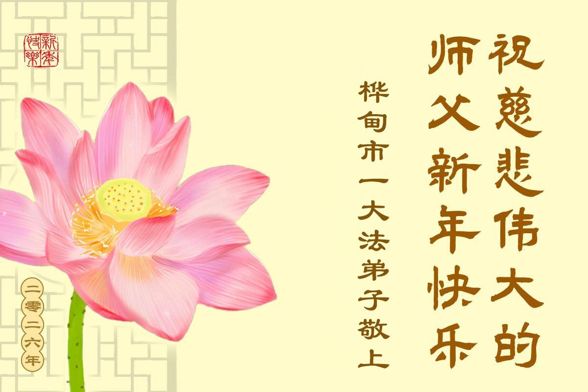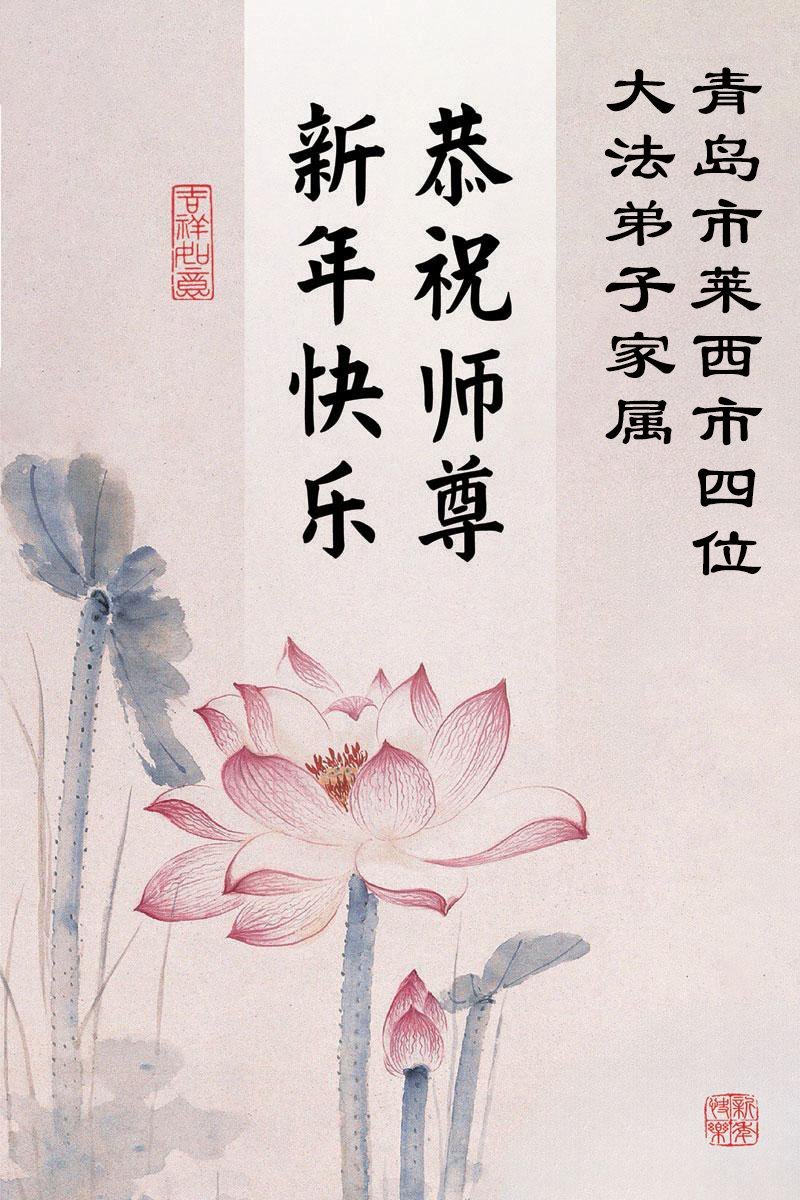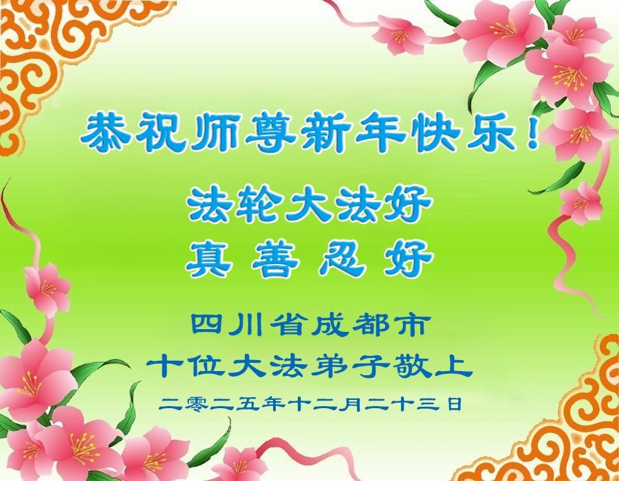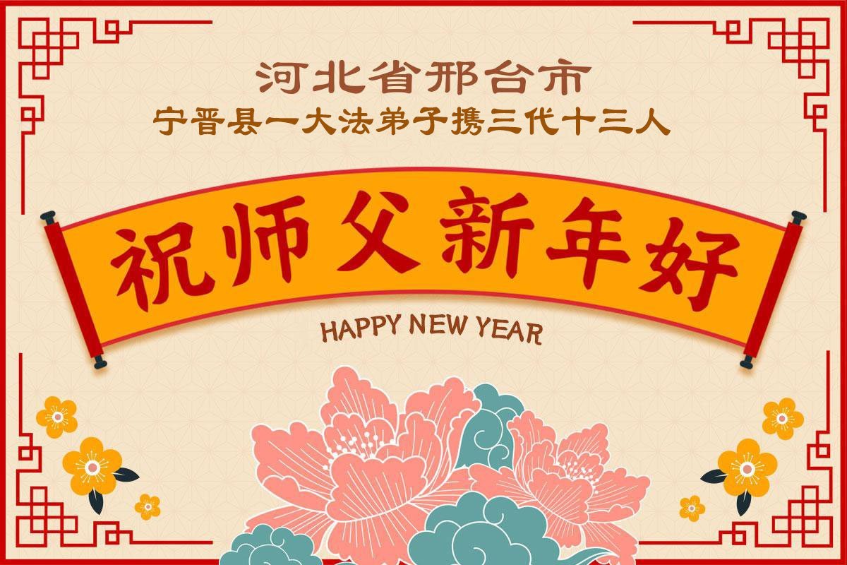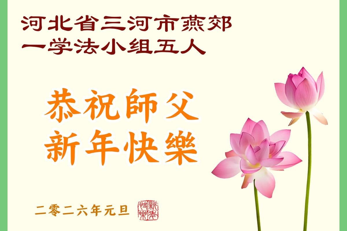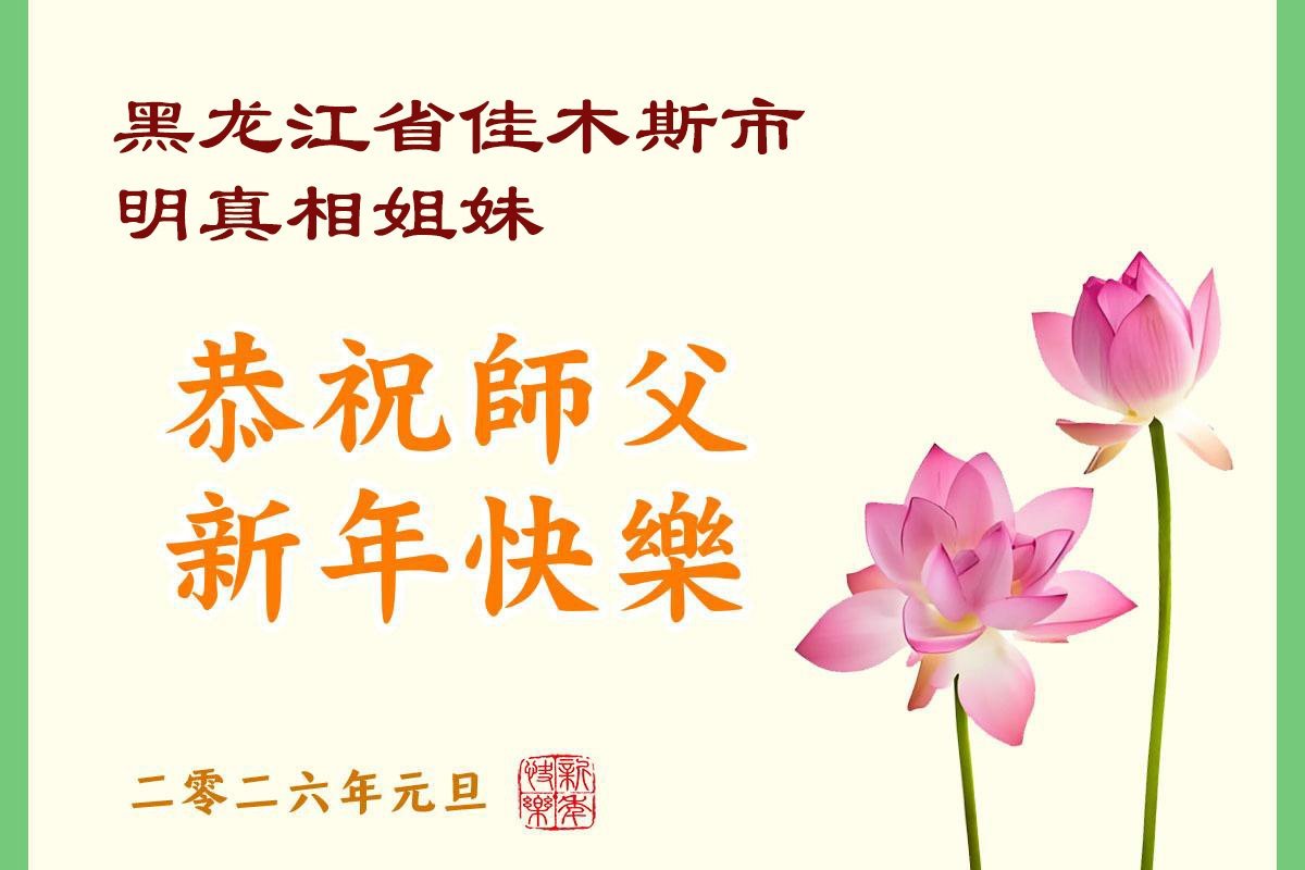 以下是部份來自中國各省、市、地區的學法煉功小組、講真相小組、資料點大法弟子們敬致師尊的新年賀詞賀卡: