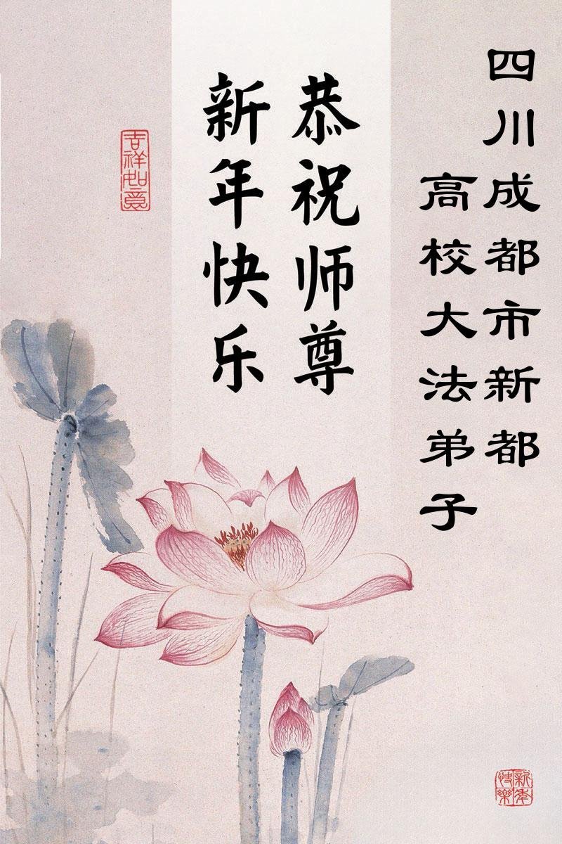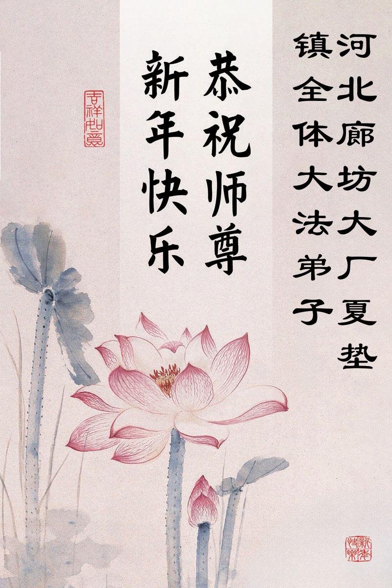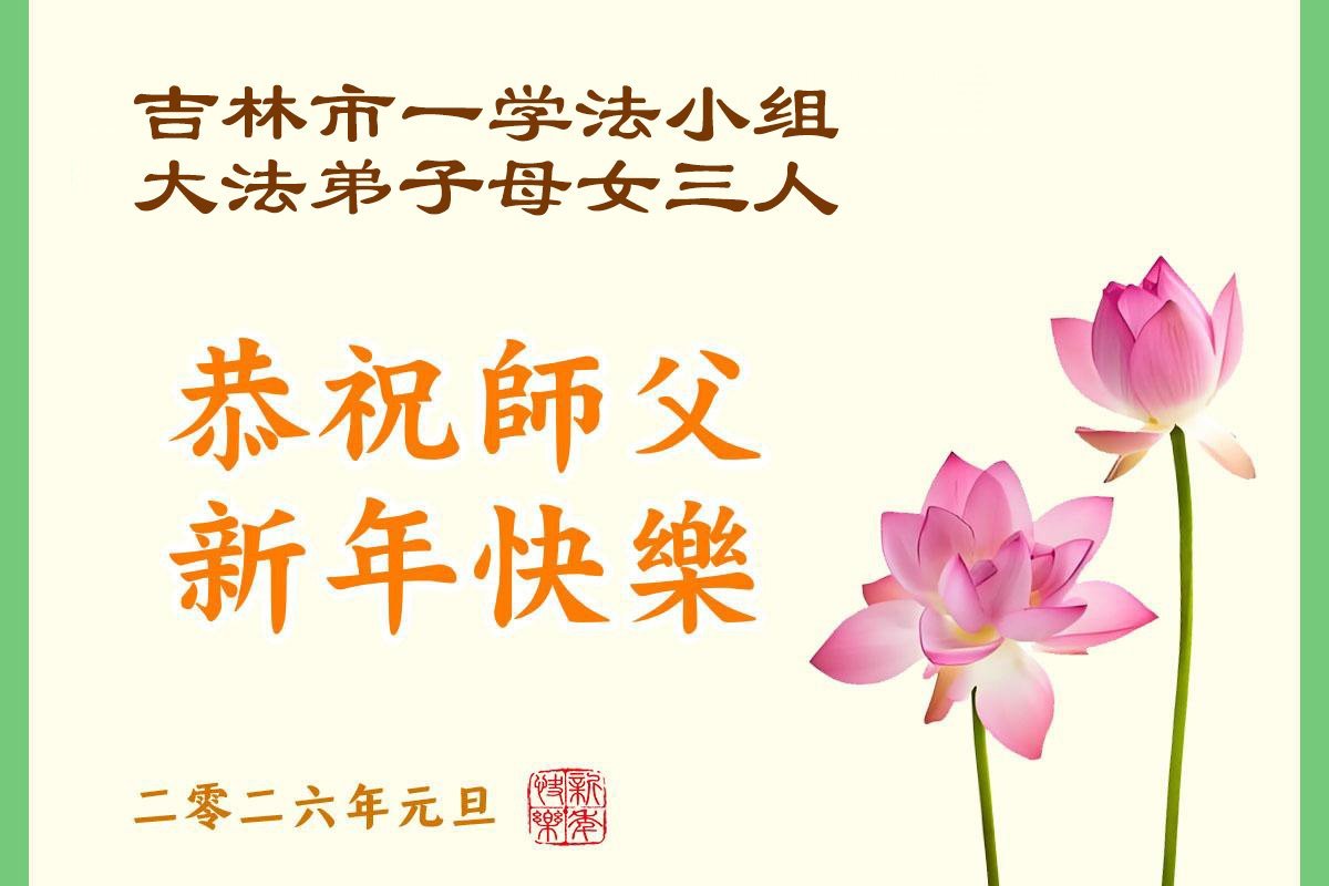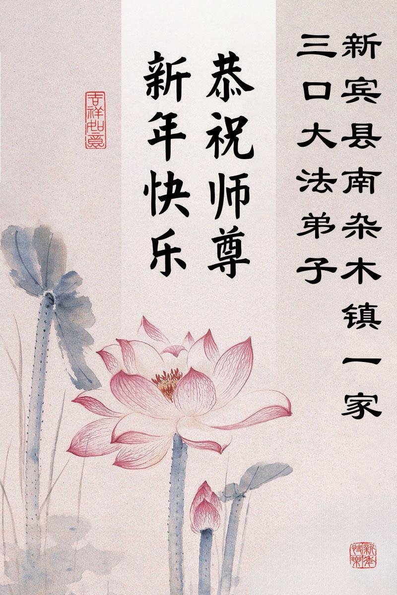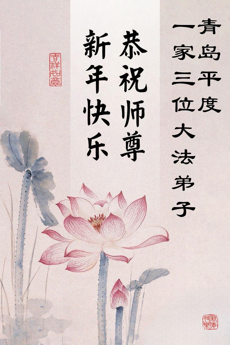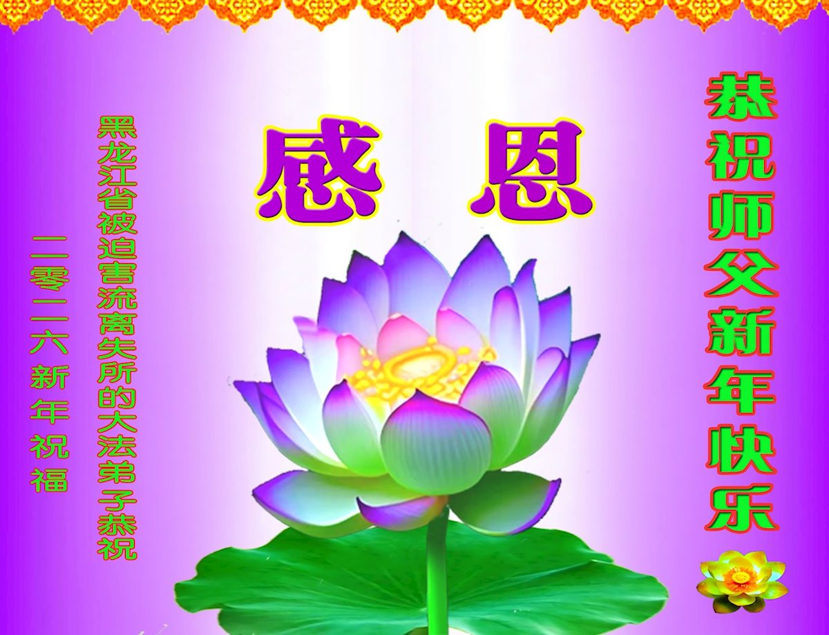 以下是部份來自中國各省、市、地區的學法煉功小組、講真相小組、資料點大法弟子們敬致師尊的新年賀詞賀卡: