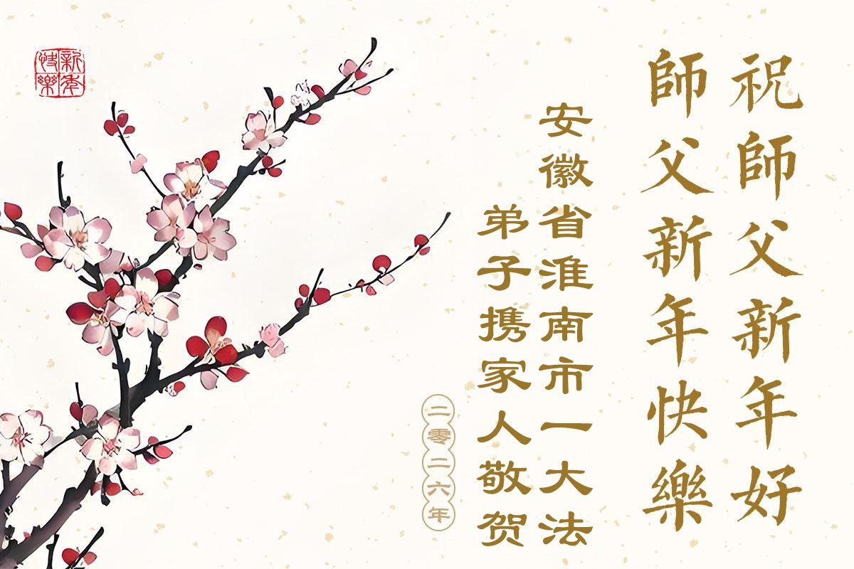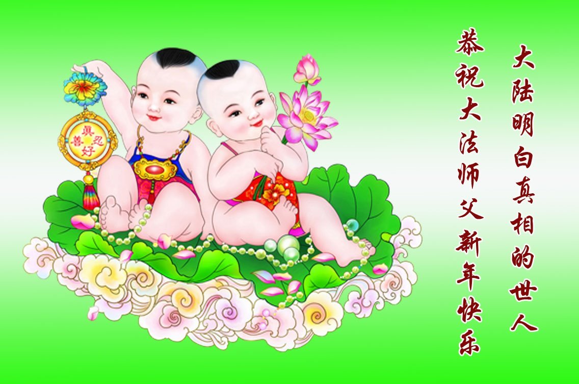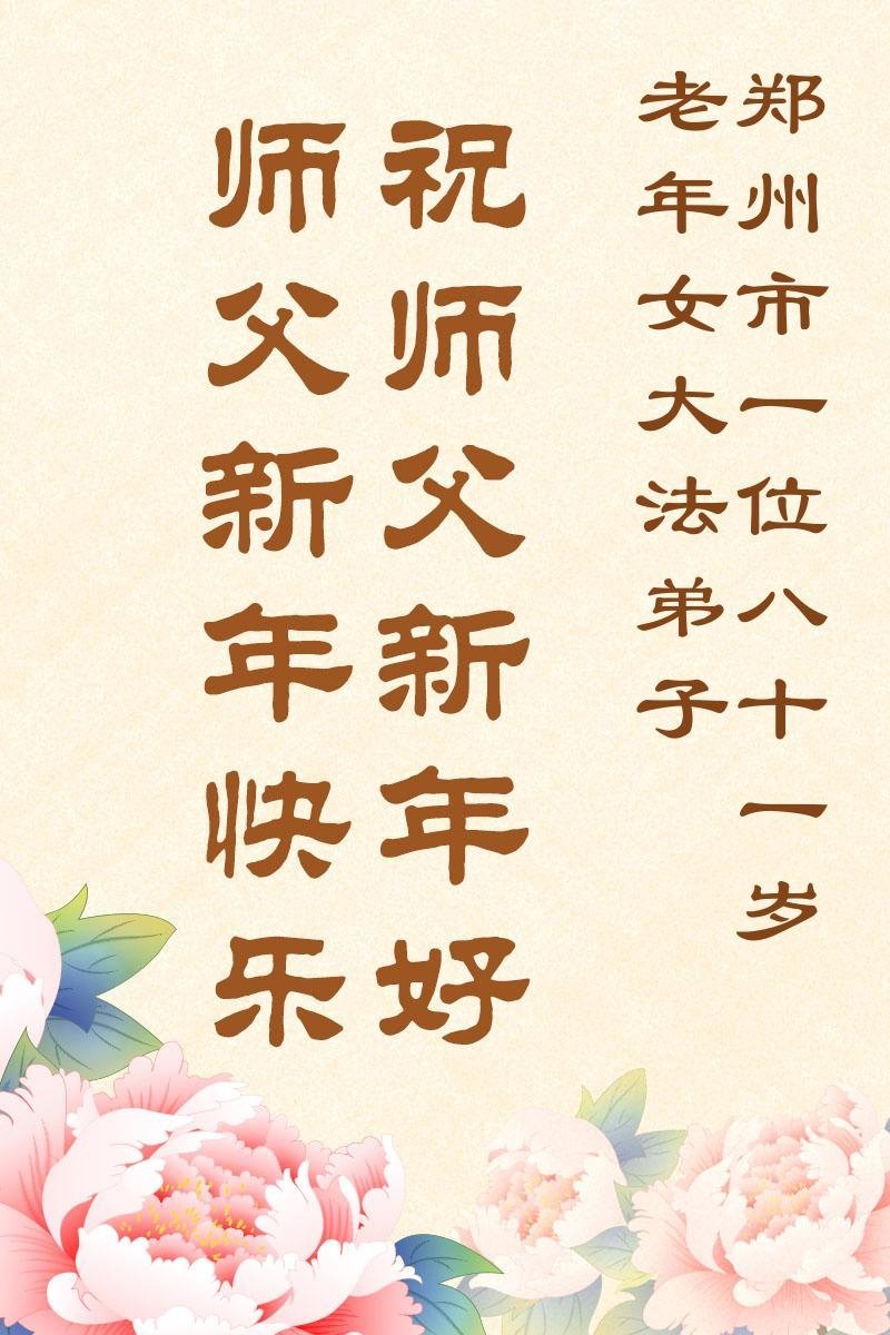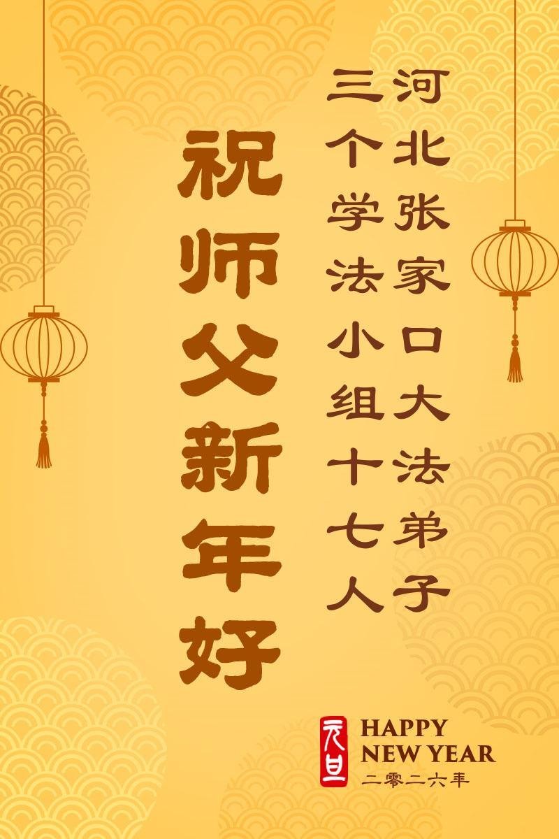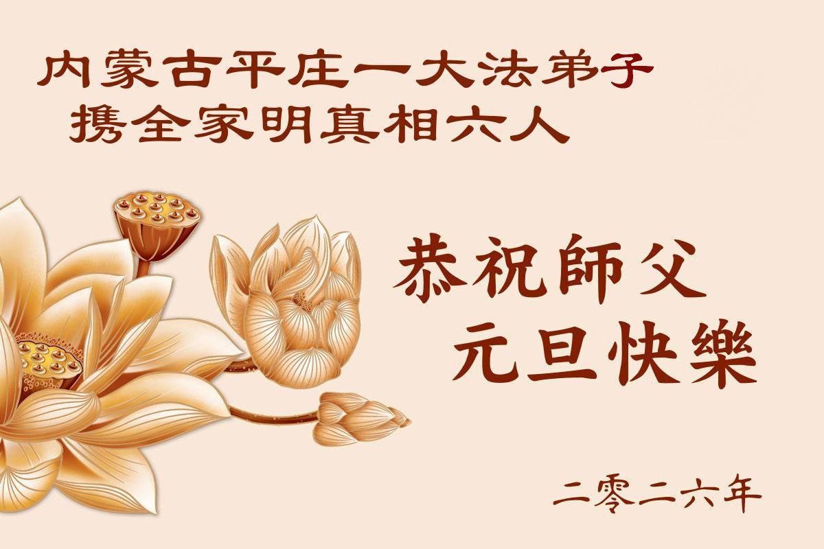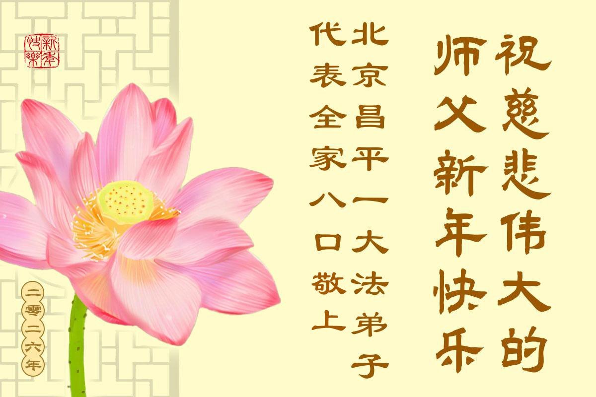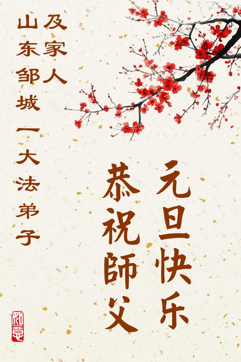 以下是部份來自中國各省、市、地區的學法煉功小組、講真相小組、資料點大法弟子們敬致師尊的新年賀詞賀卡: