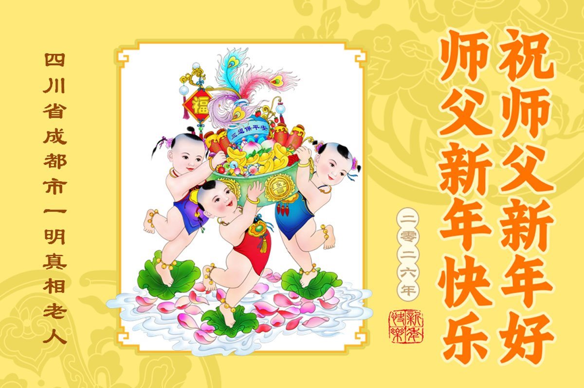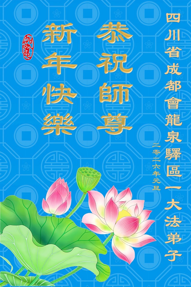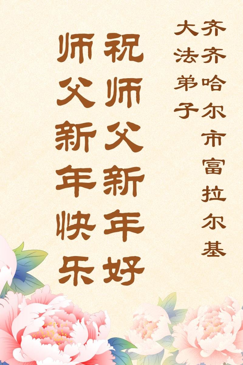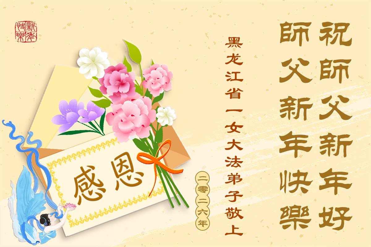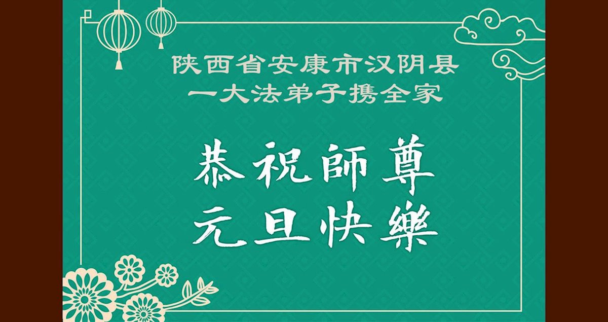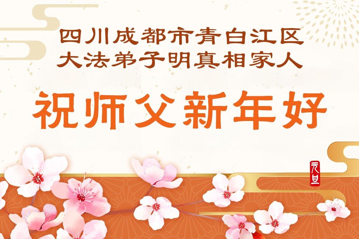 以下是部份來自中國各省、市、地區的學法煉功小組、講真相小組、資料點大法弟子們敬致師尊的新年賀詞賀卡: