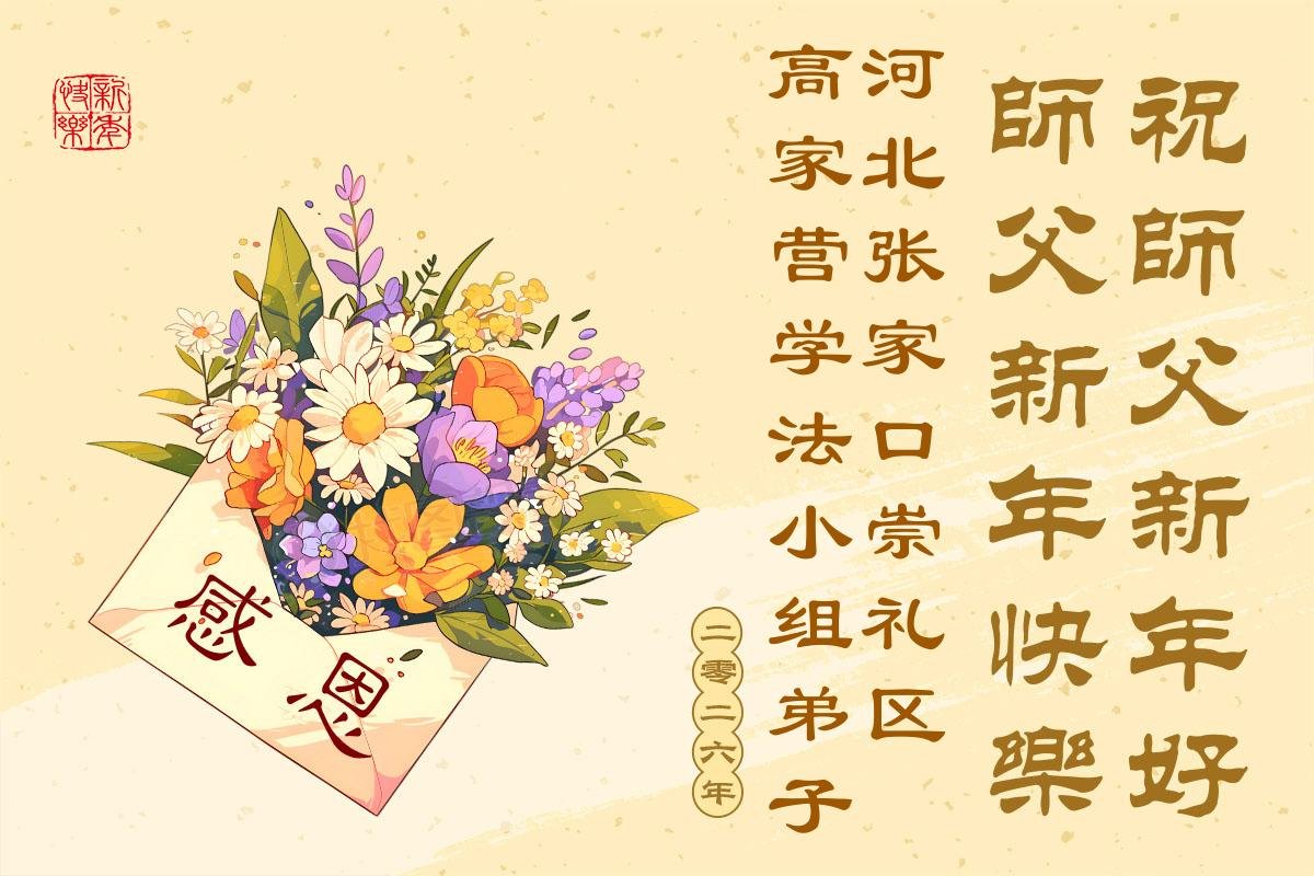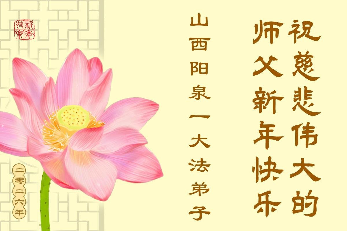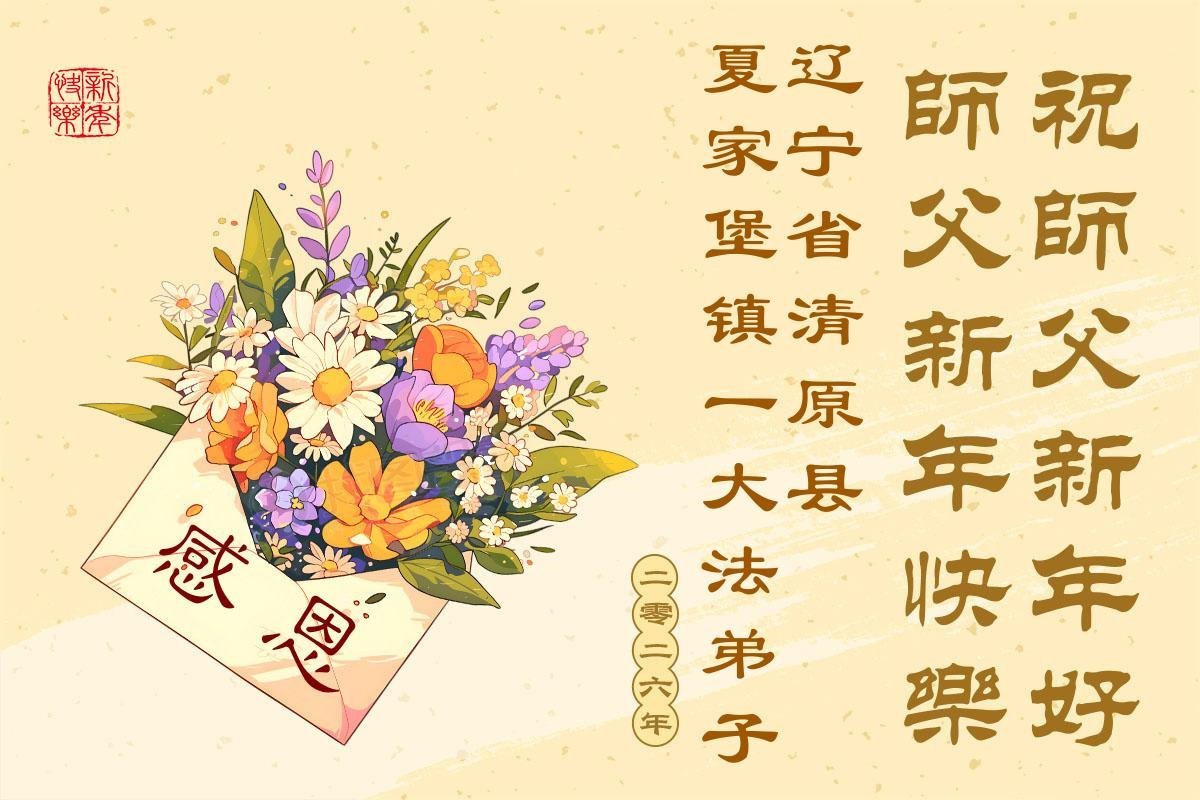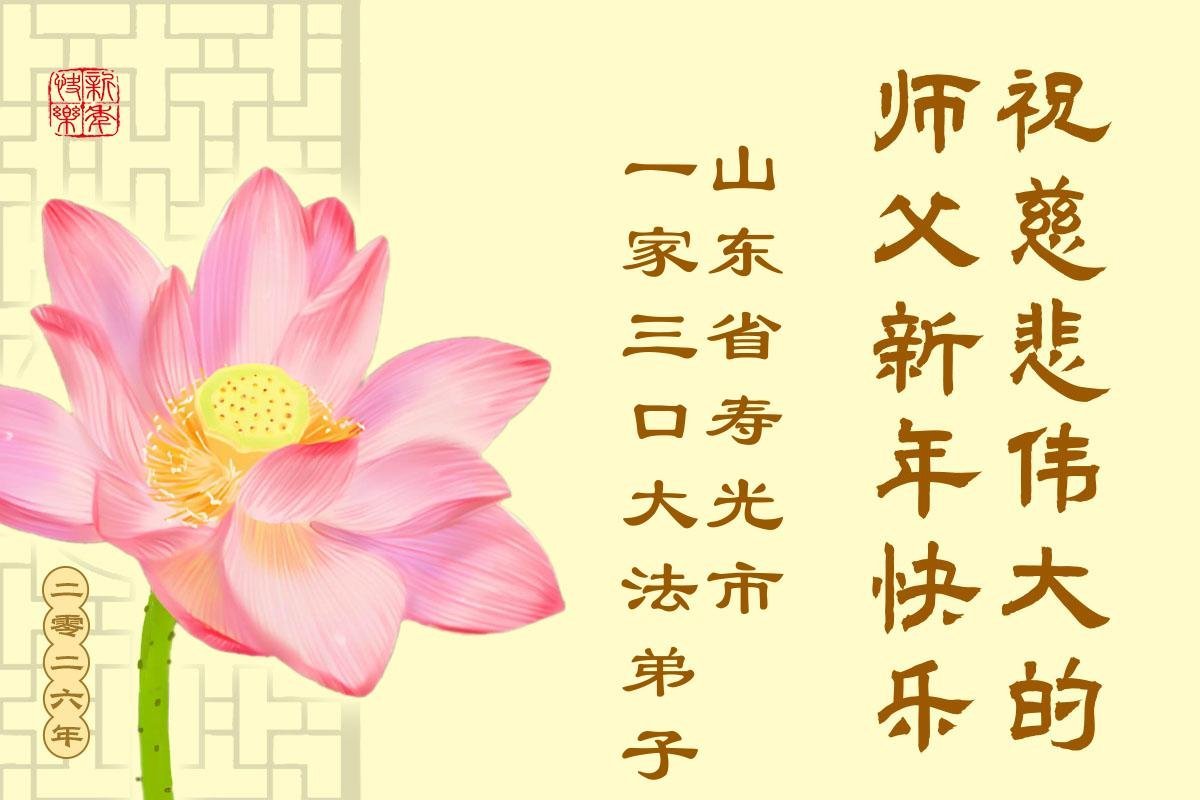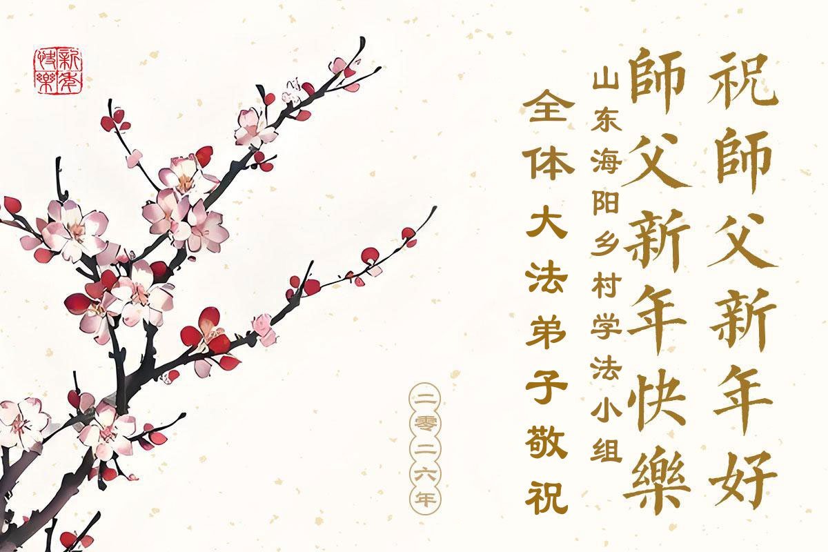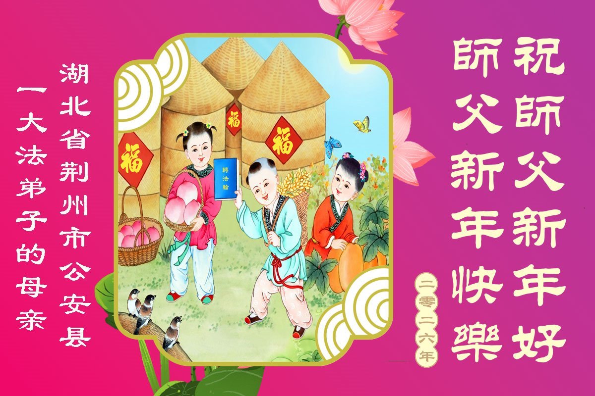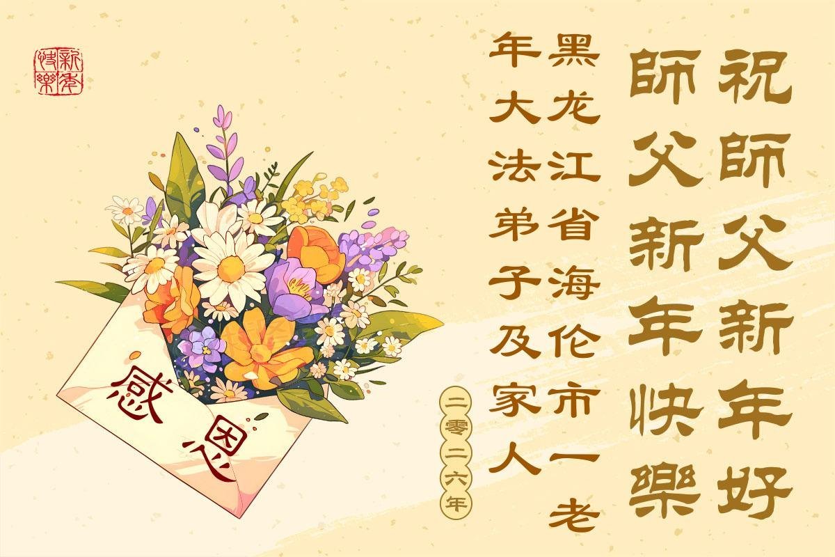 以下是部份來自中國各省、市、地區的學法煉功小組、講真相小組、資料點大法弟子們敬致師尊的新年賀詞賀卡: