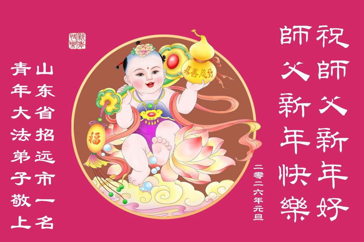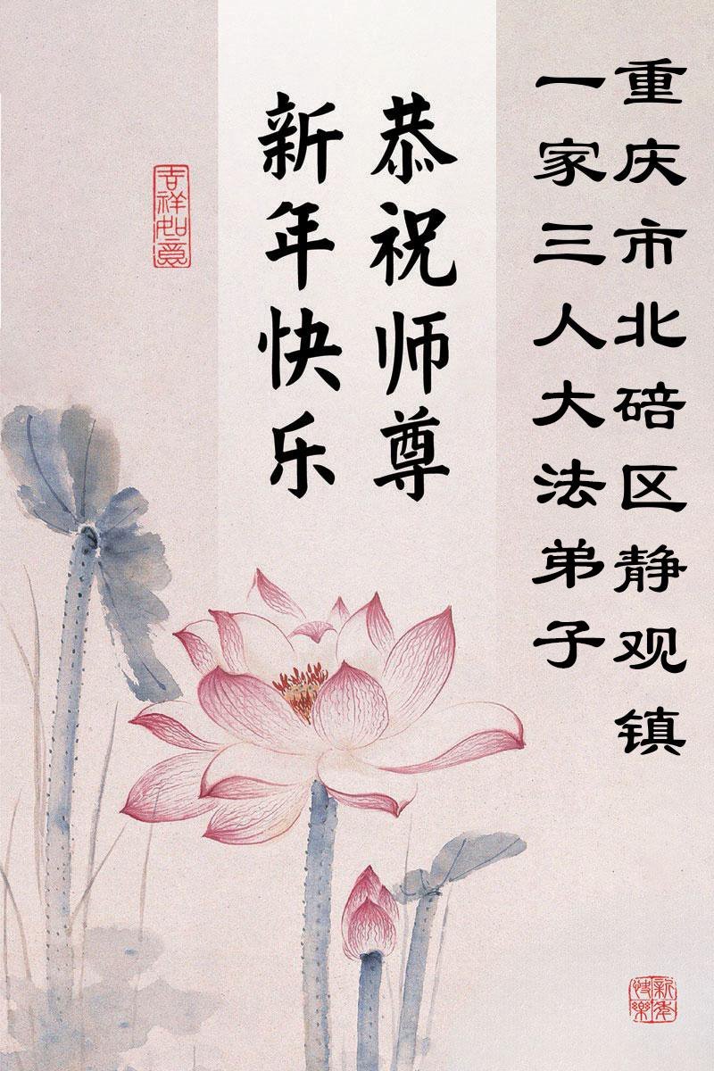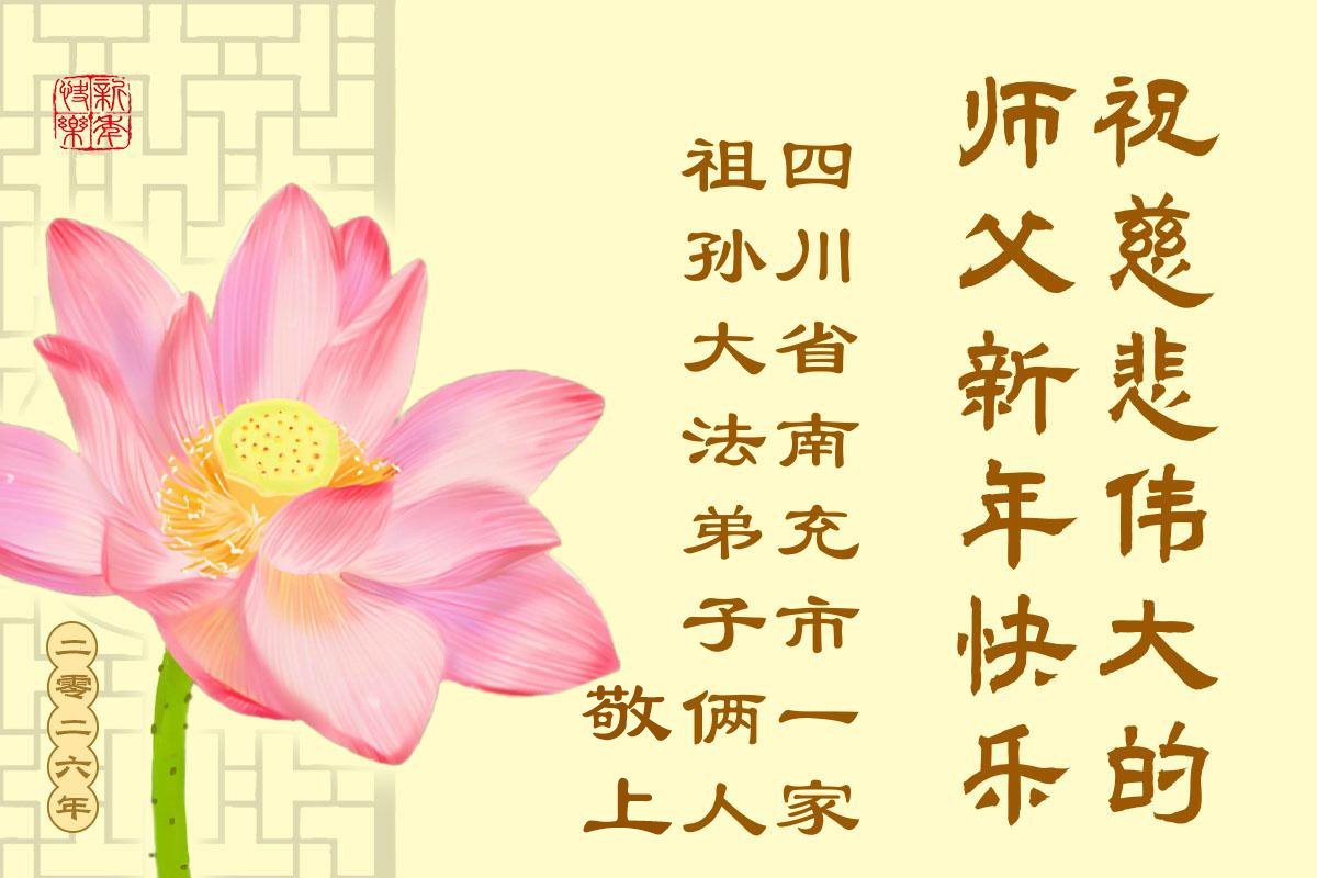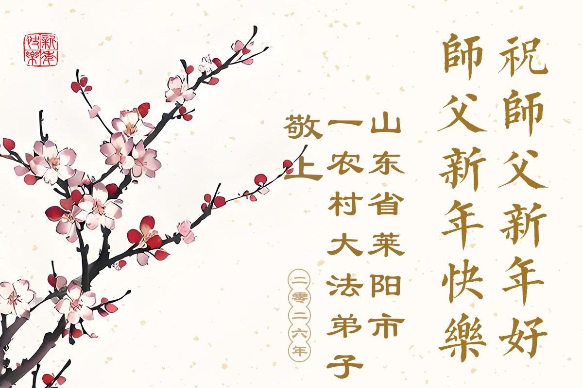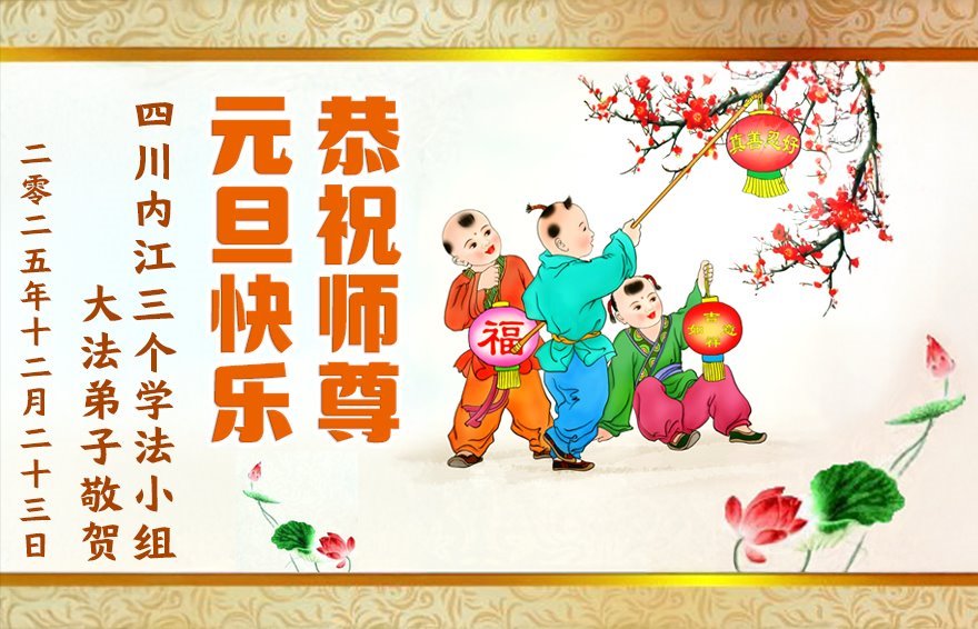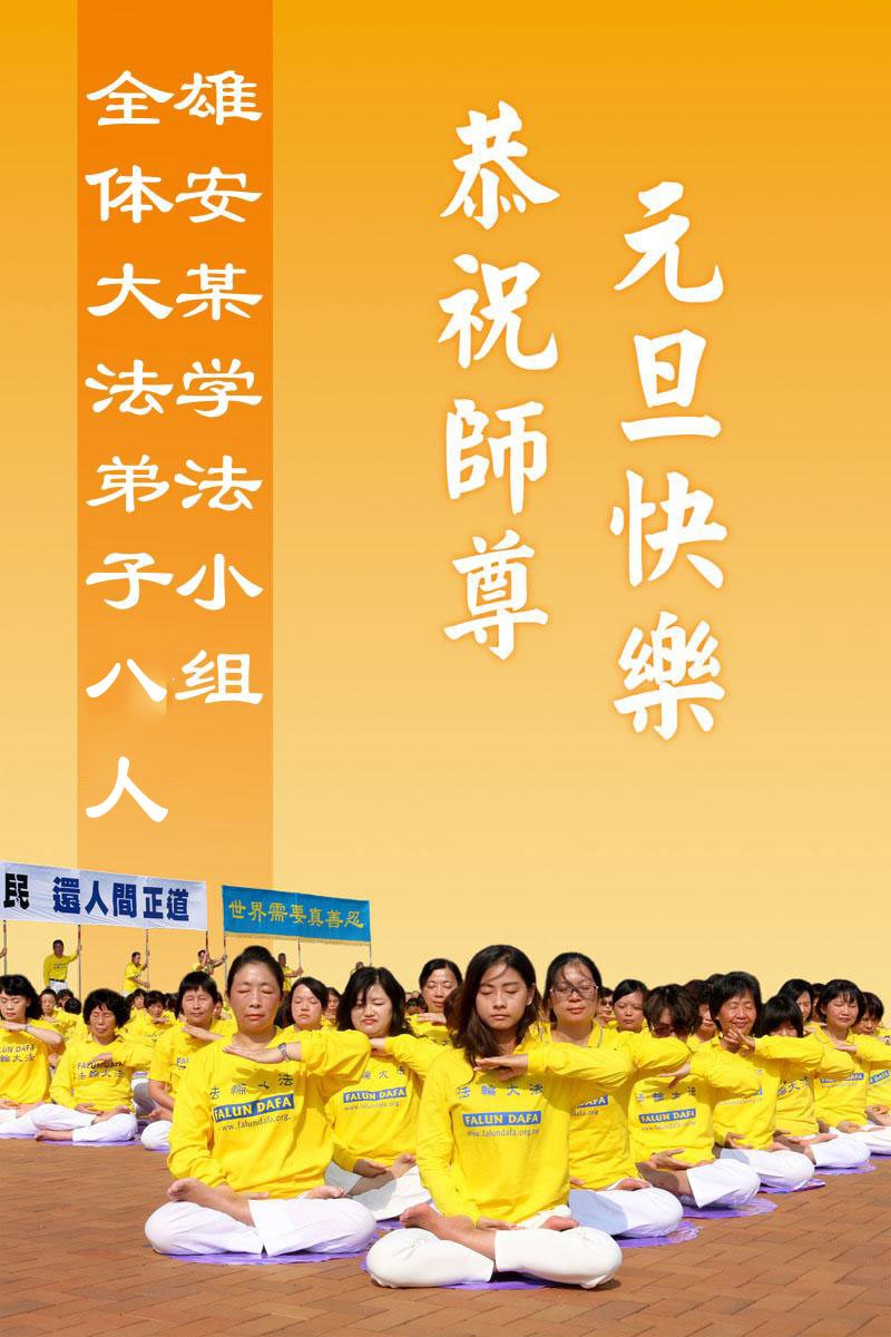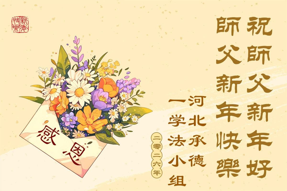 以下是部份來自中國各省、市、地區的學法煉功小組、講真相小組、資料點大法弟子們敬致師尊的新年賀詞賀卡: