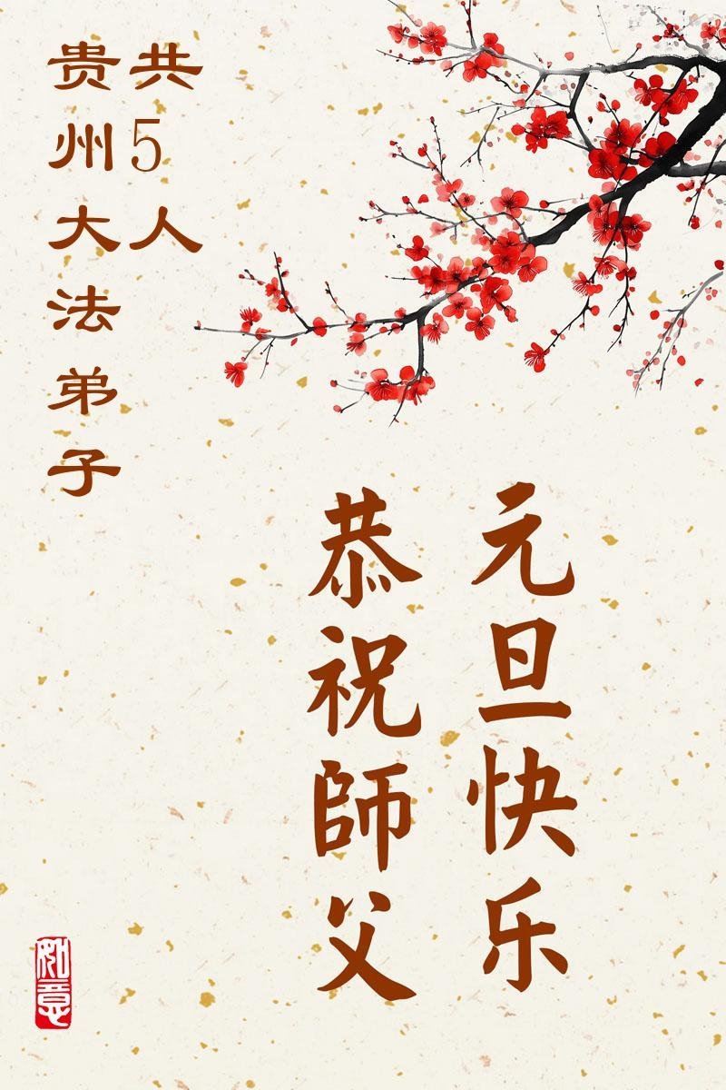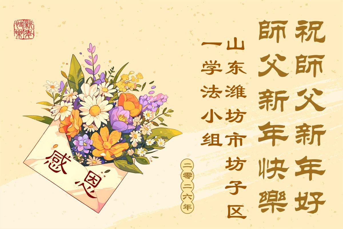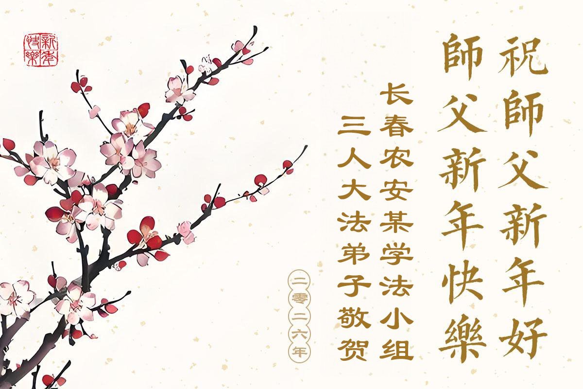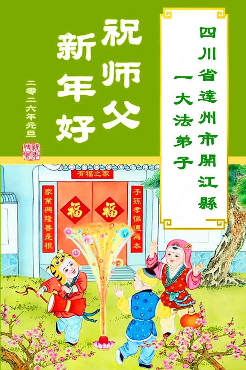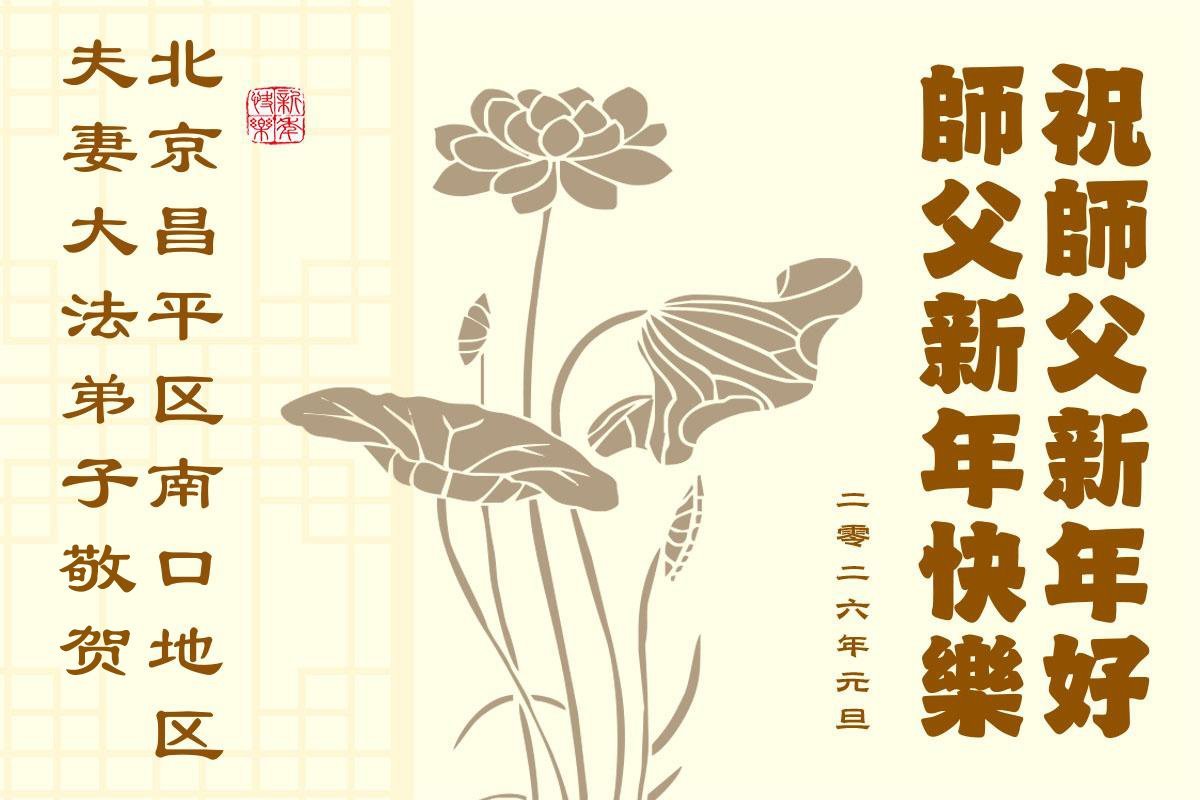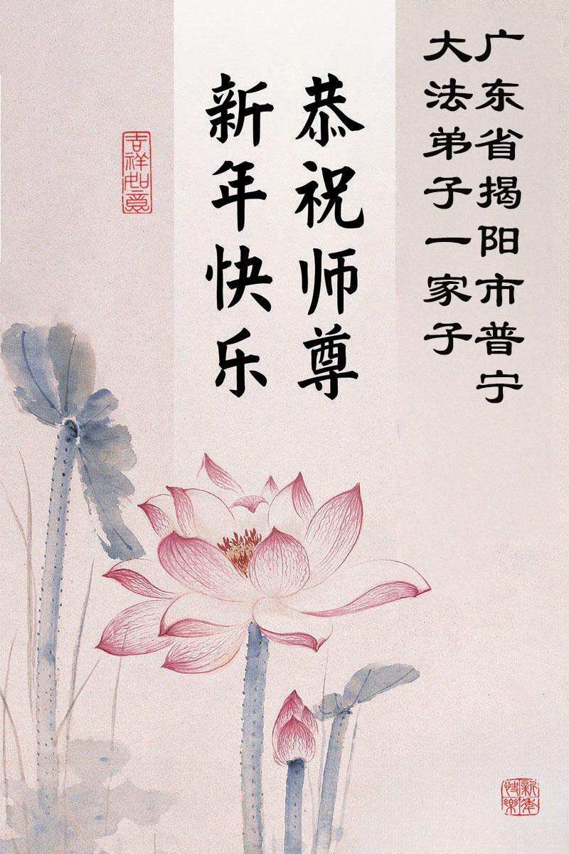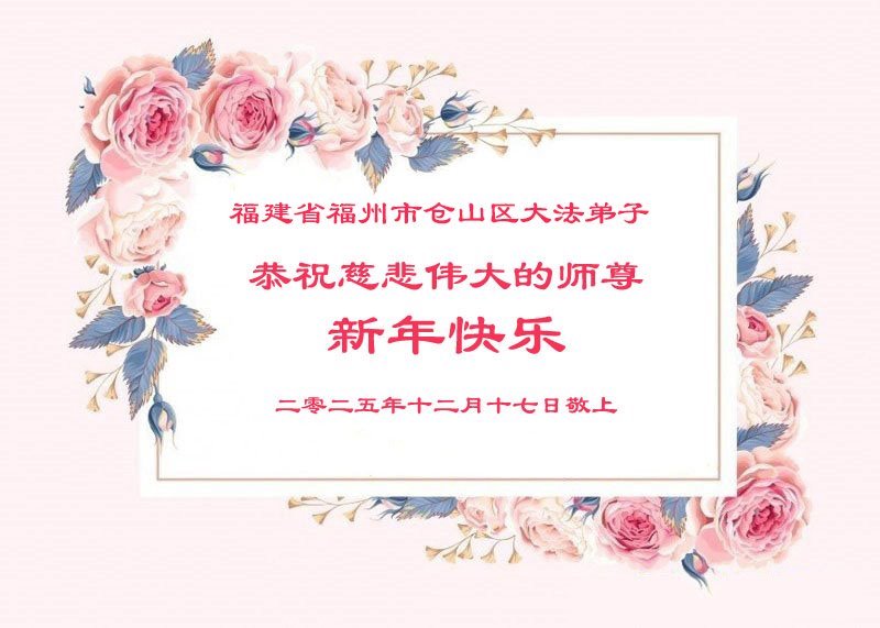 以下是部份來自中國各省、市、地區的學法煉功小組、講真相小組、資料點大法弟子們敬致師尊的新年賀詞賀卡: