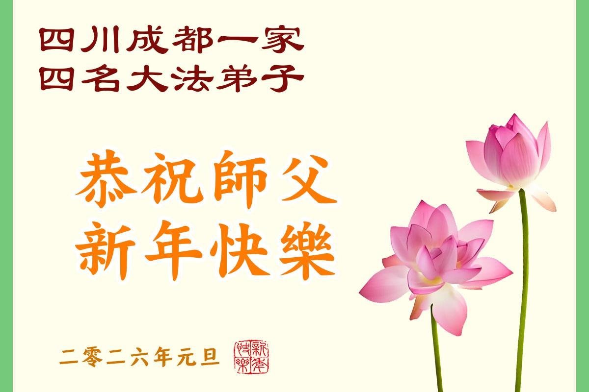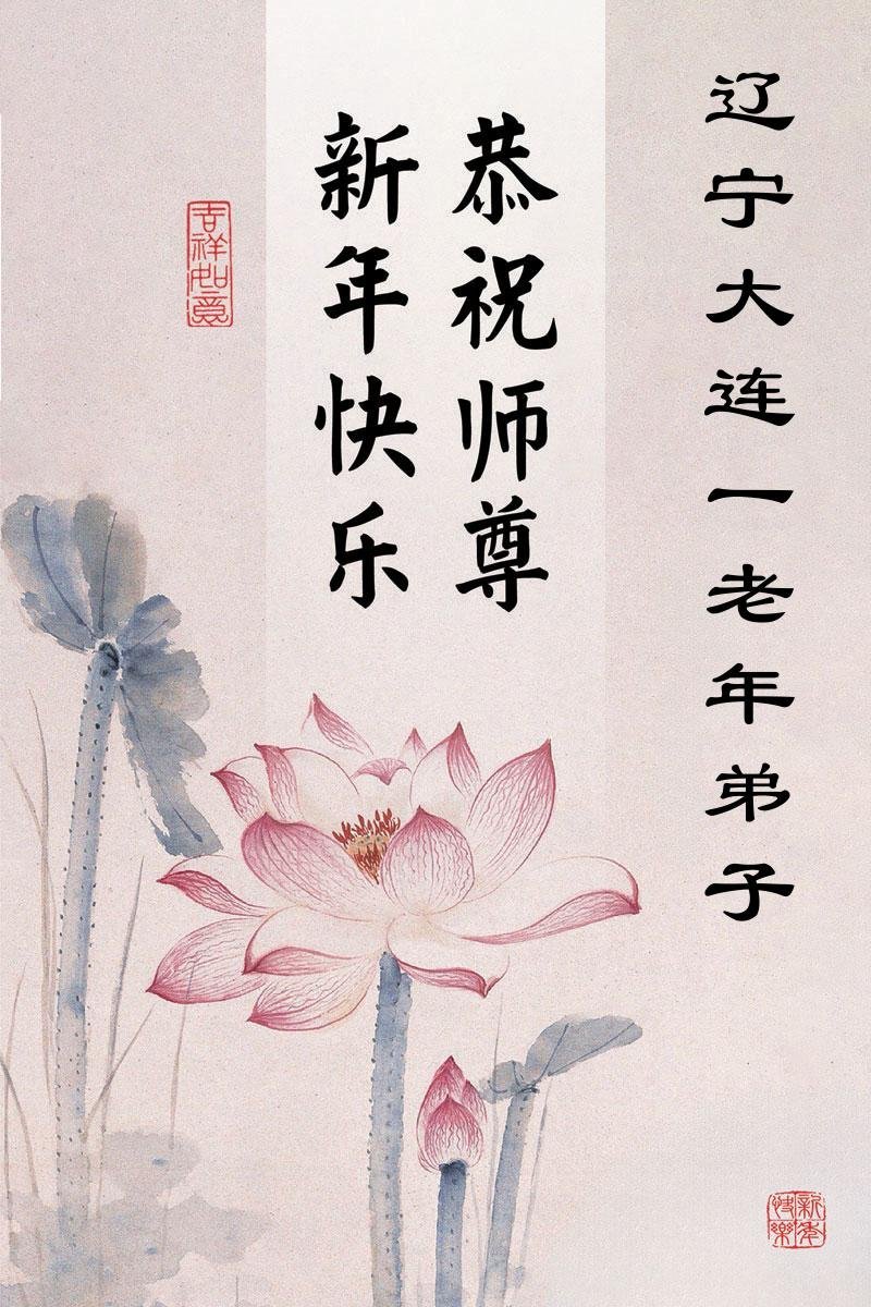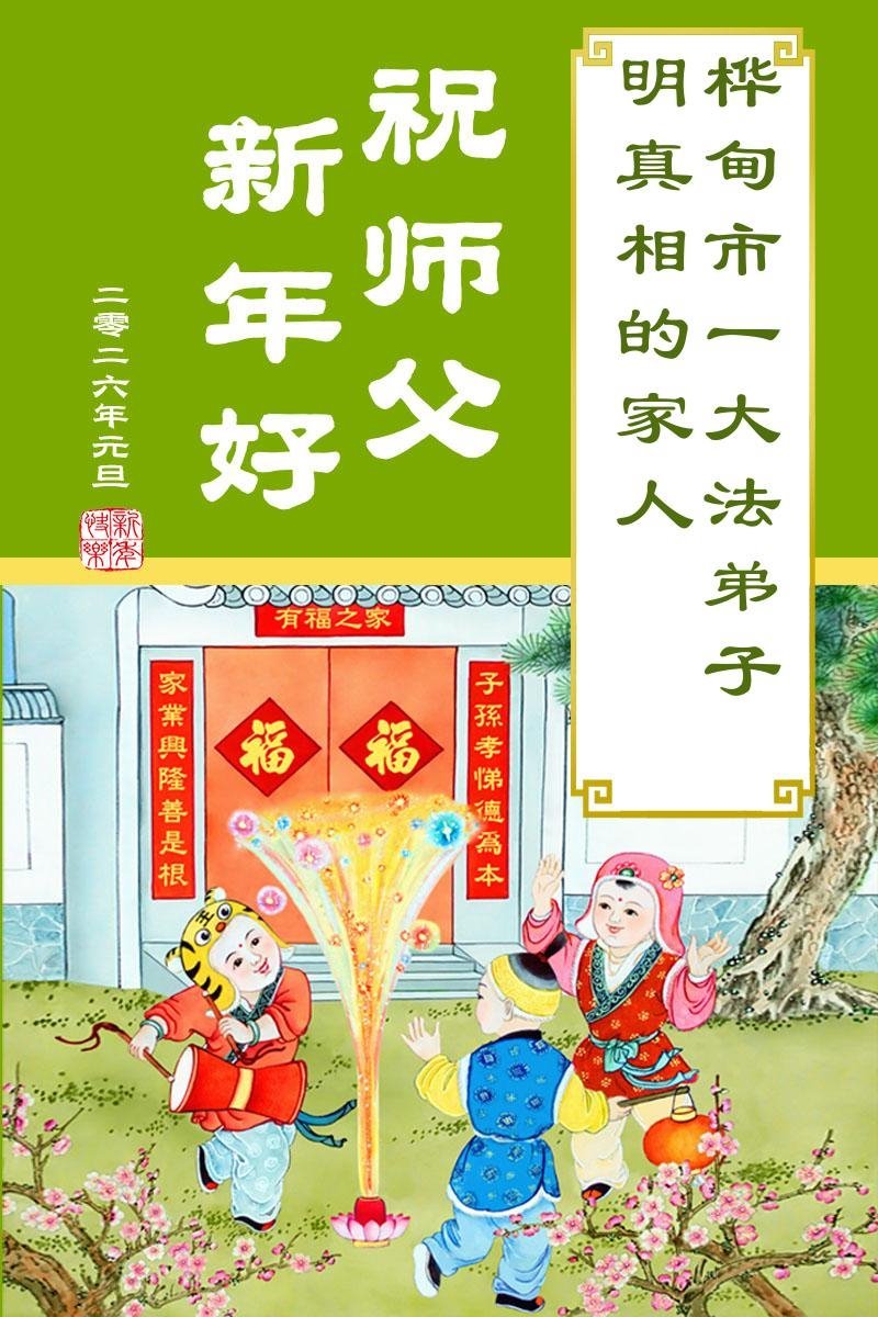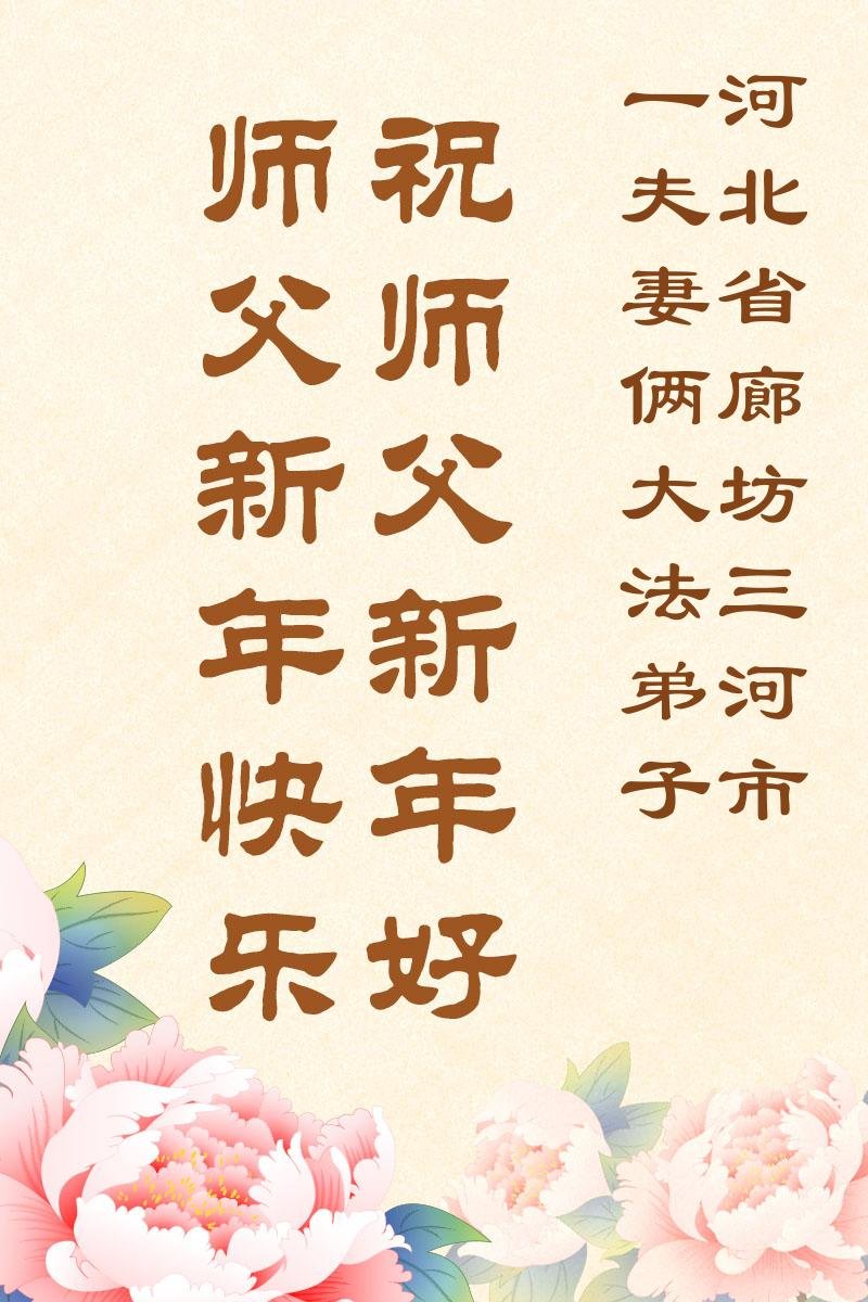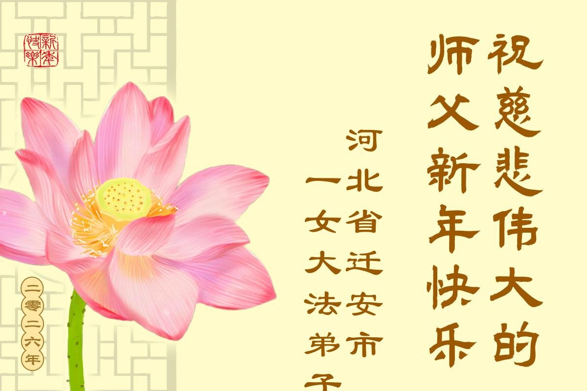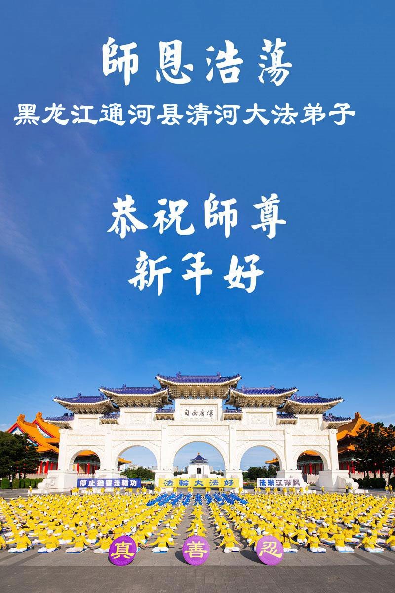 以下是部份來自中國各省、市、地區的學法煉功小組、講真相小組、資料點大法弟子們敬致師尊的新年賀詞賀卡: