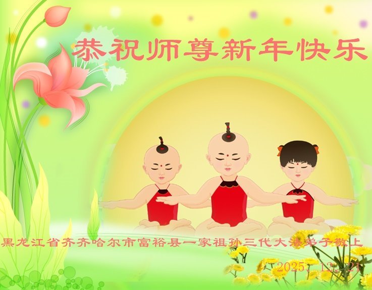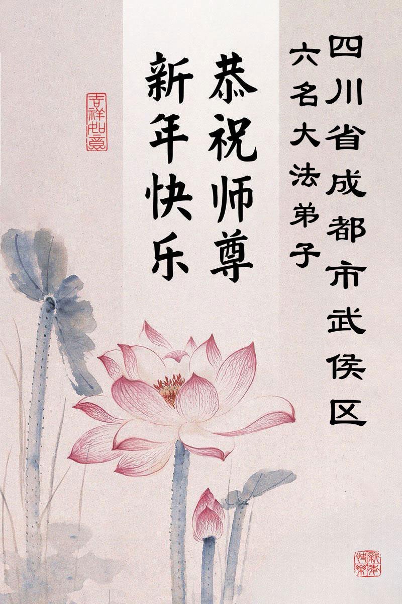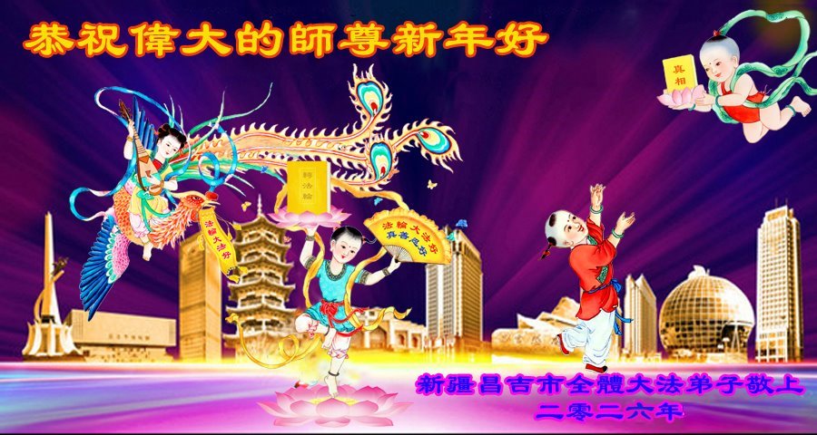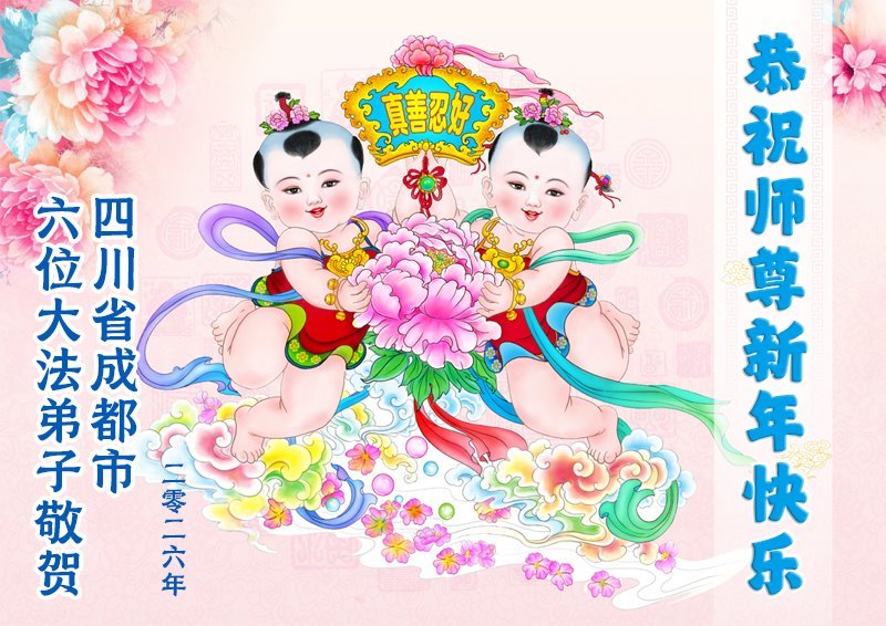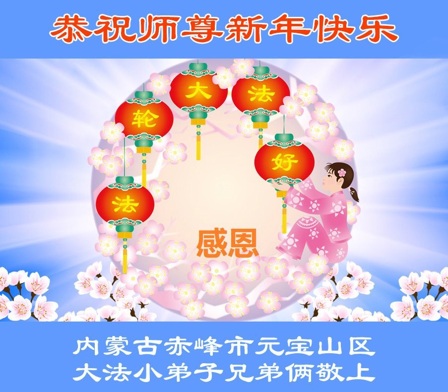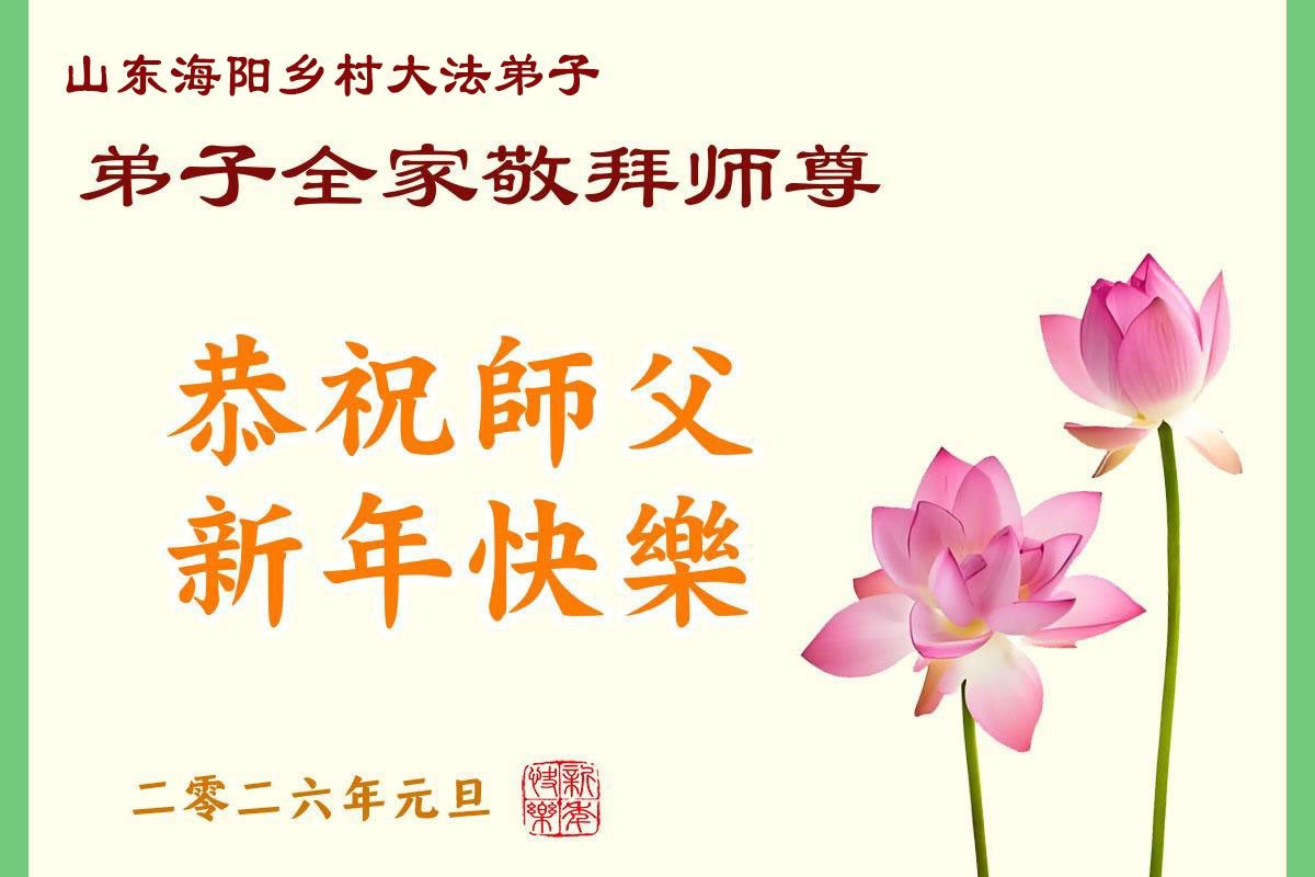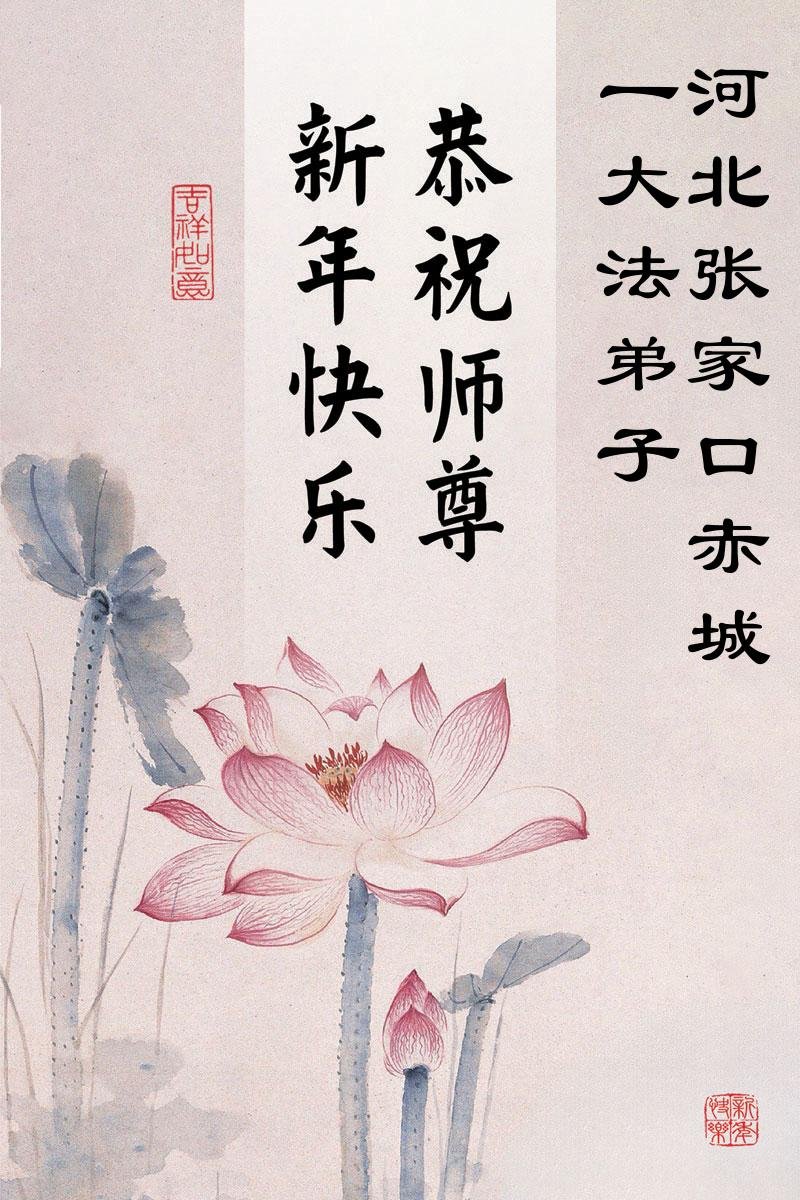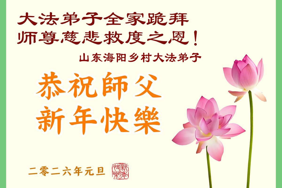 以下是部份來自中國各省、市、地區的學法煉功小組、講真相小組、資料點大法弟子們敬致師尊的新年賀詞賀卡: