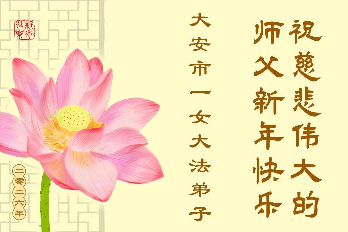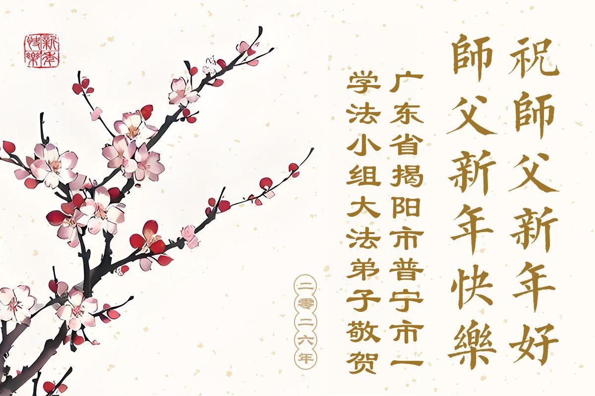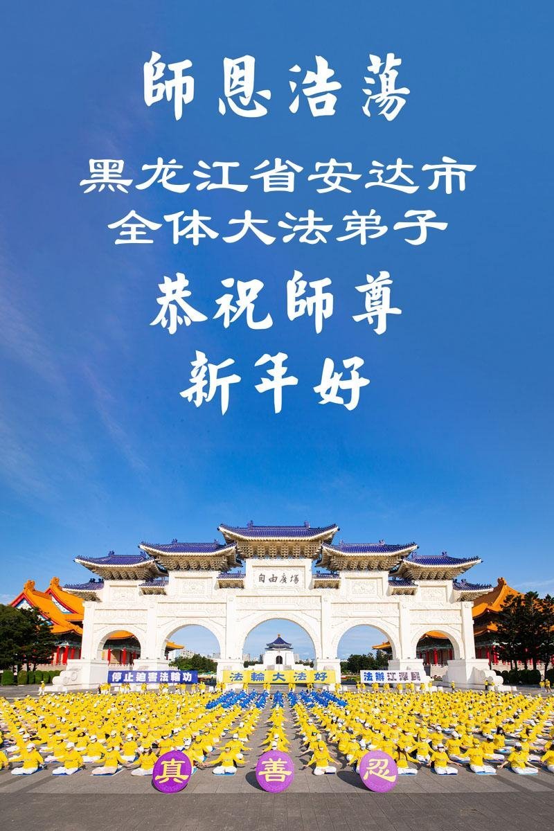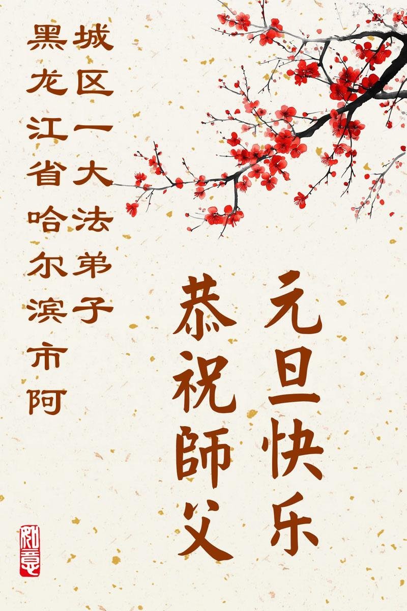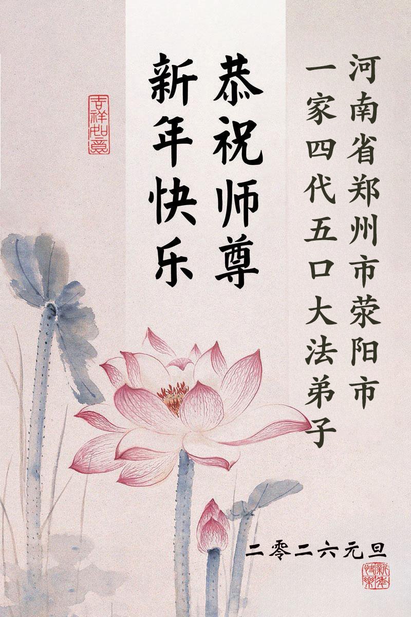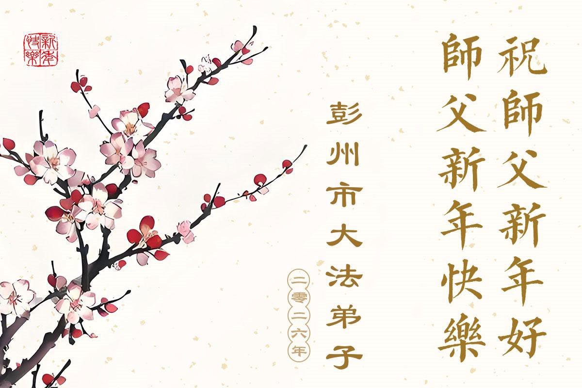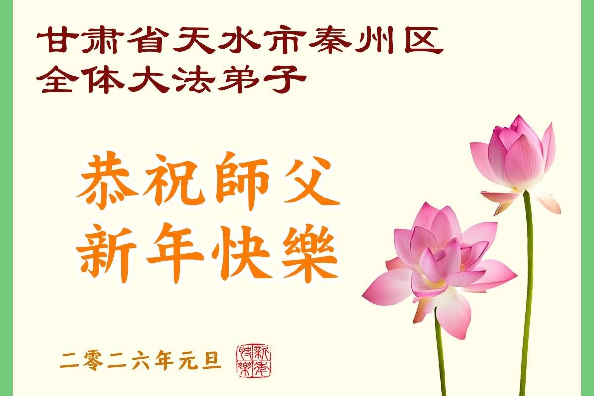 以下是部份來自中國各省、市、地區的學法煉功小組、講真相小組、資料點大法弟子們敬致師尊的新年賀詞賀卡: