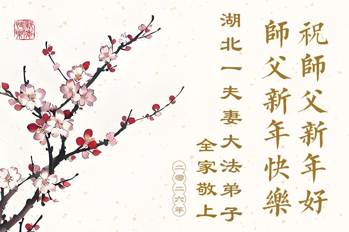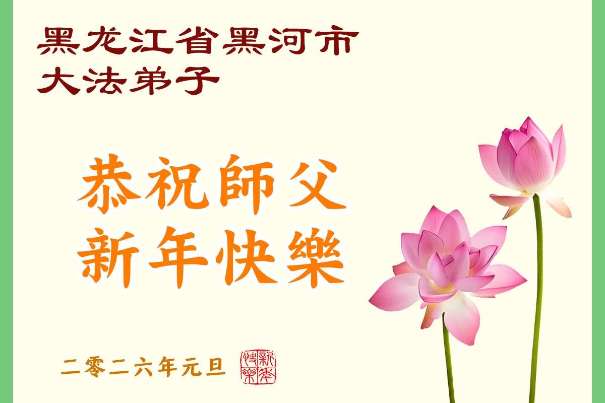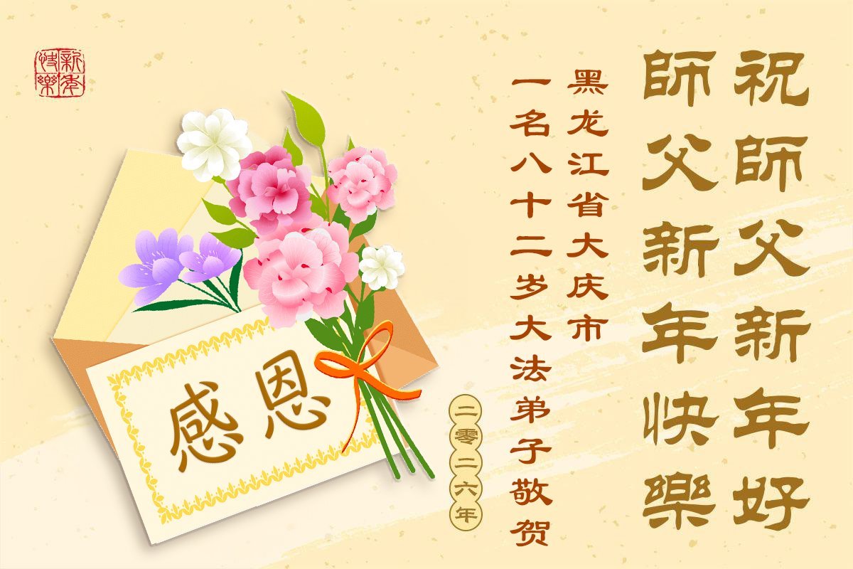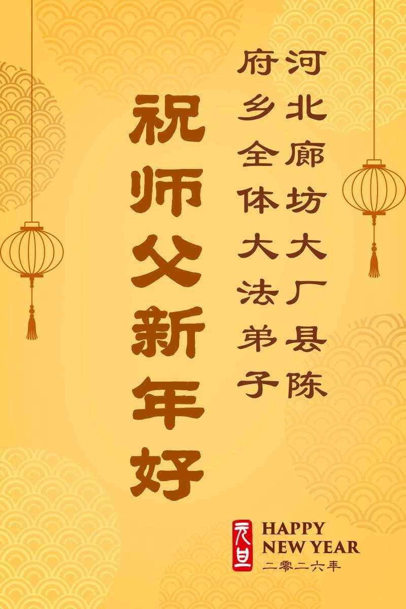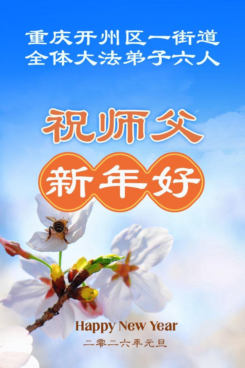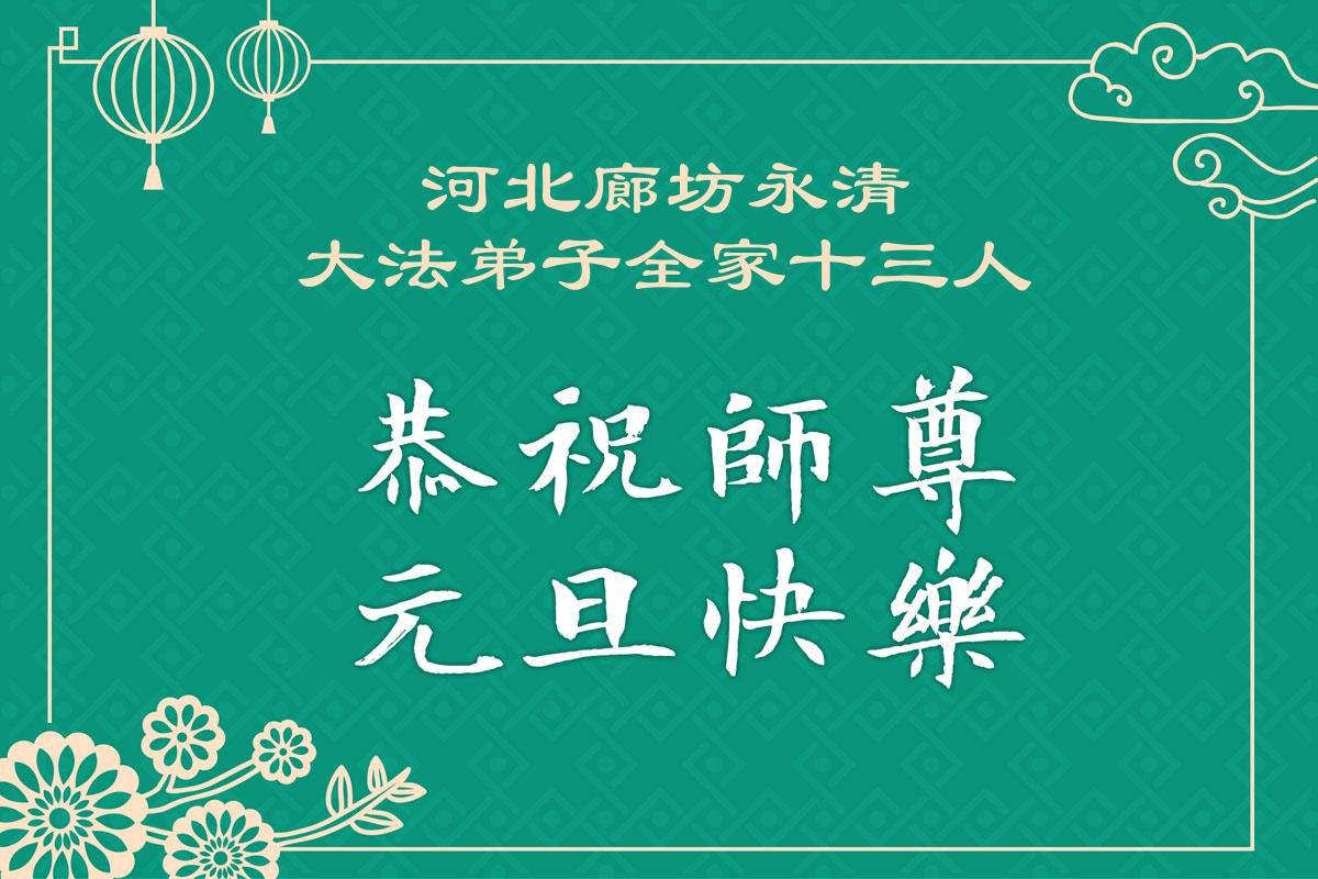 以下是部份來自中國各省、市、地區的學法煉功小組、講真相小組、資料點大法弟子們敬致師尊的新年賀詞賀卡: