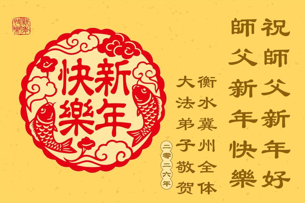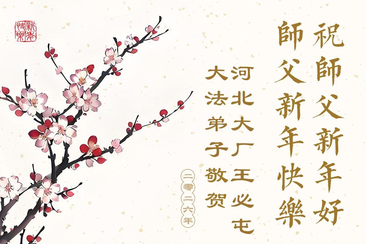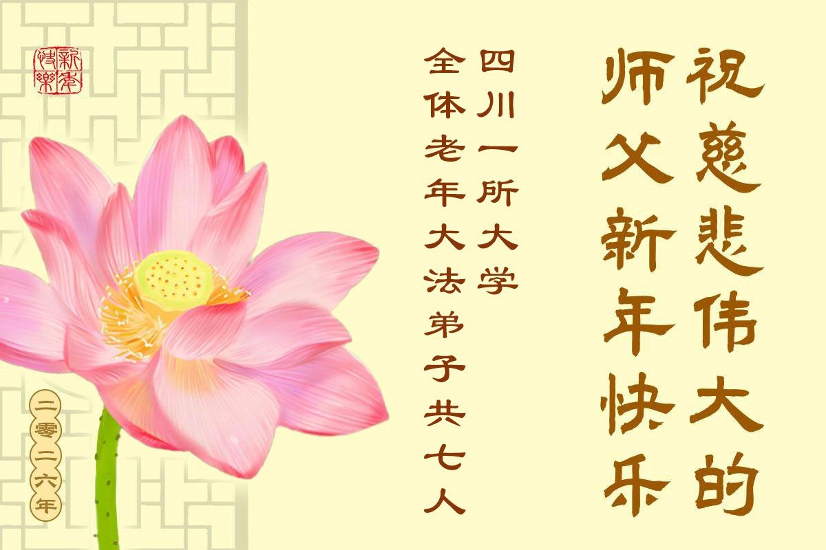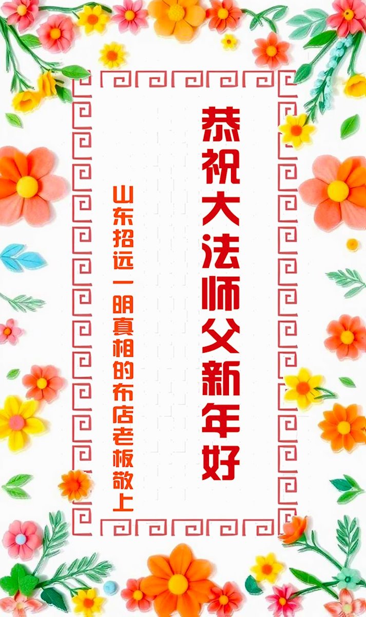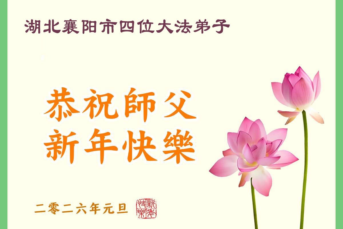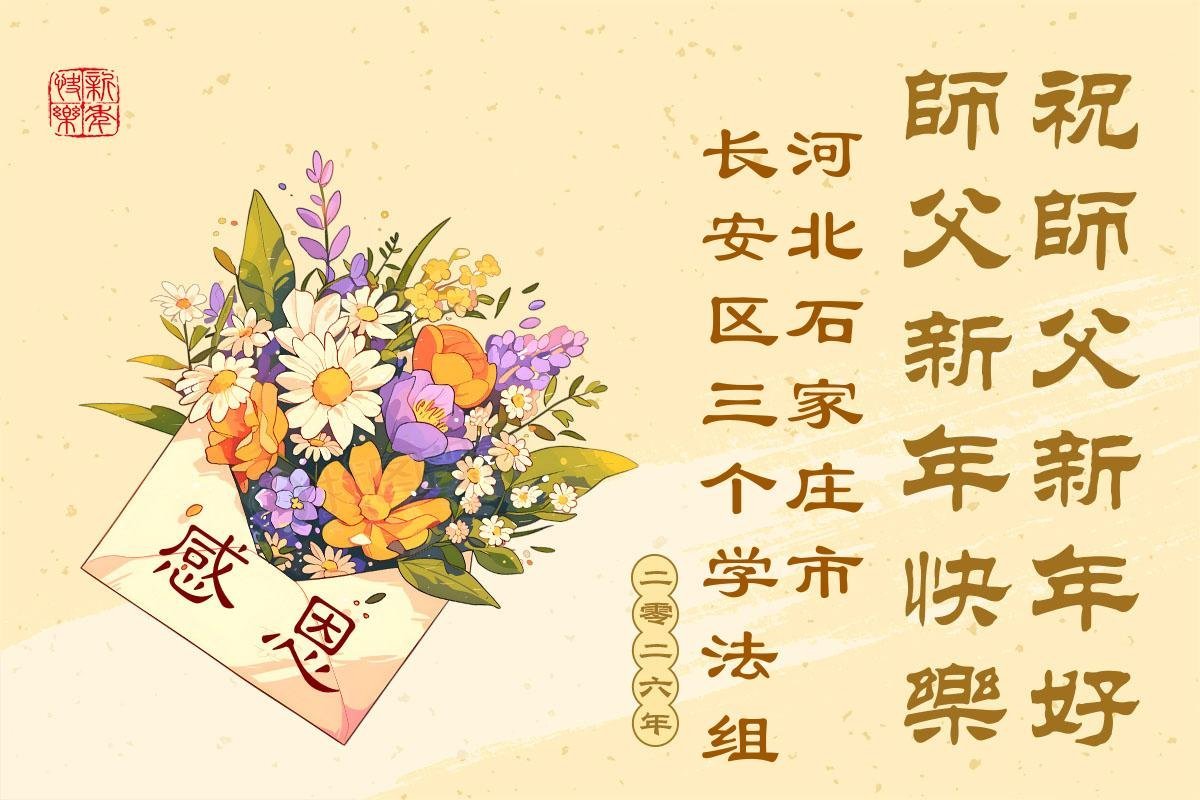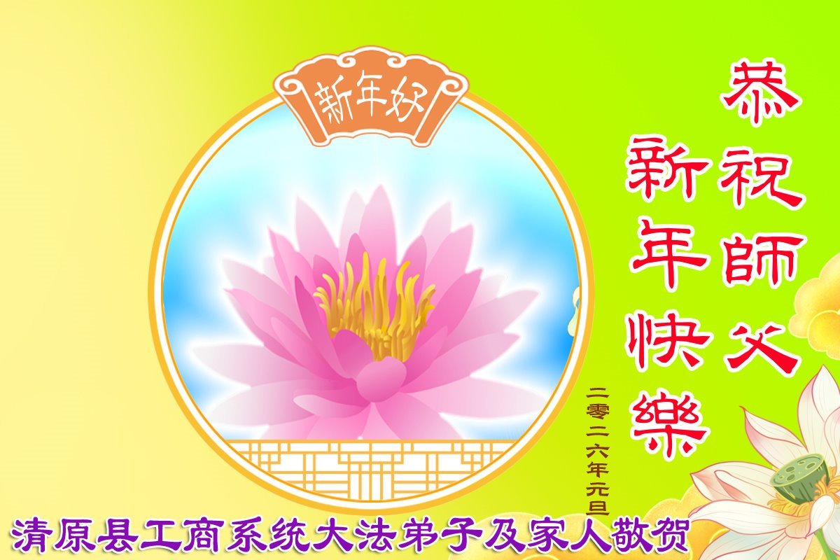 以下是部份來自中國各省、市、地區的學法煉功小組、講真相小組、資料點大法弟子們敬致師尊的新年賀詞賀卡: