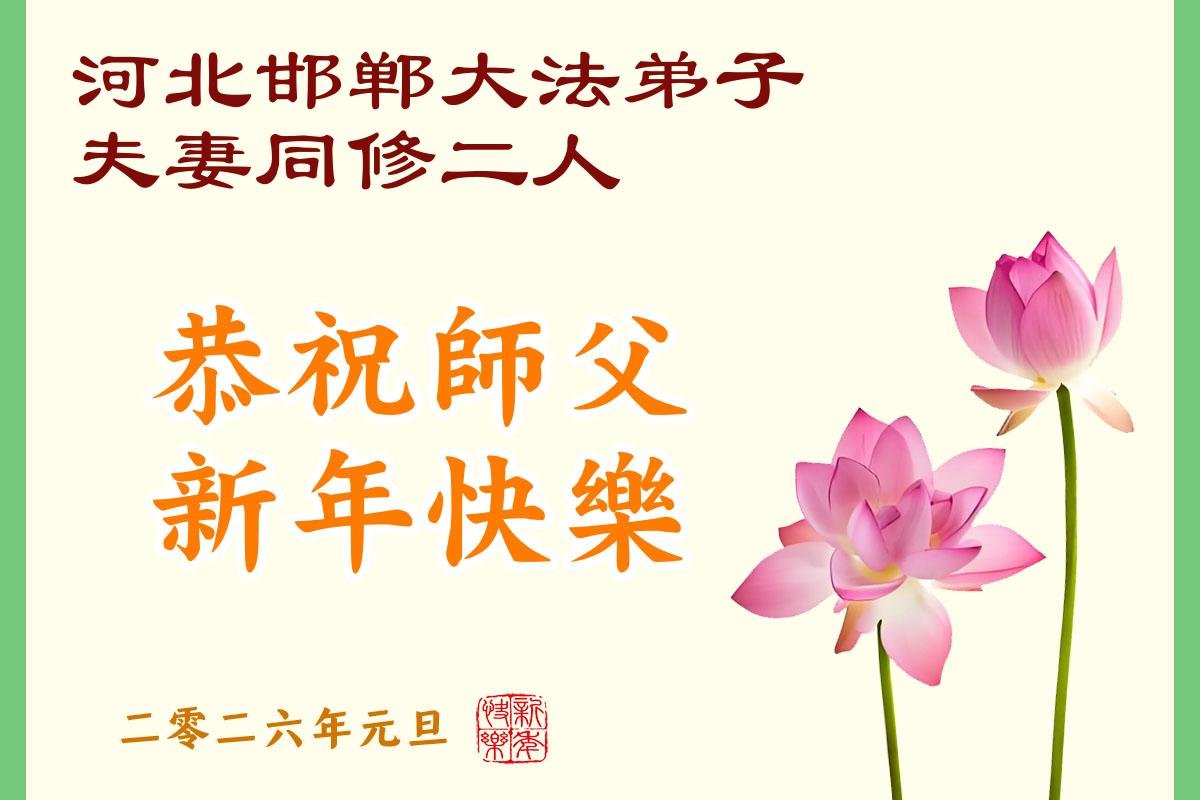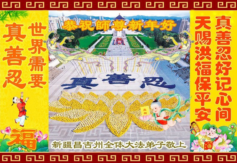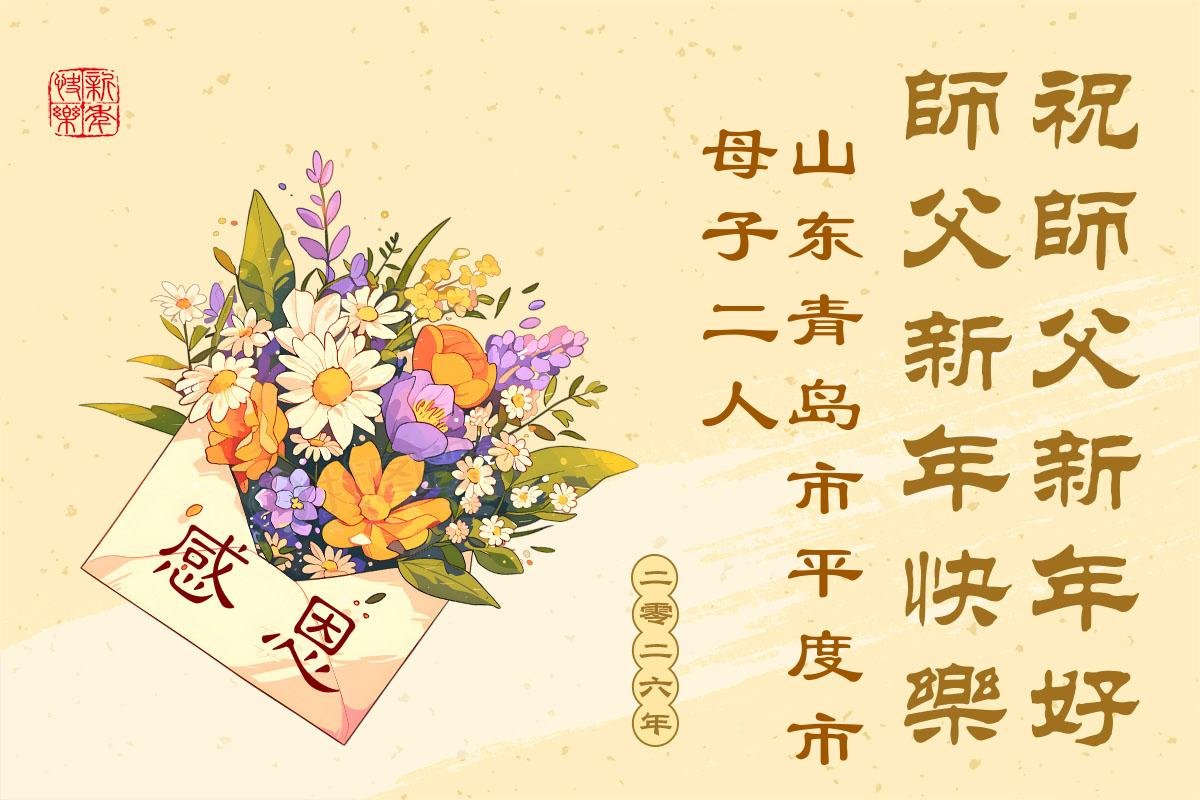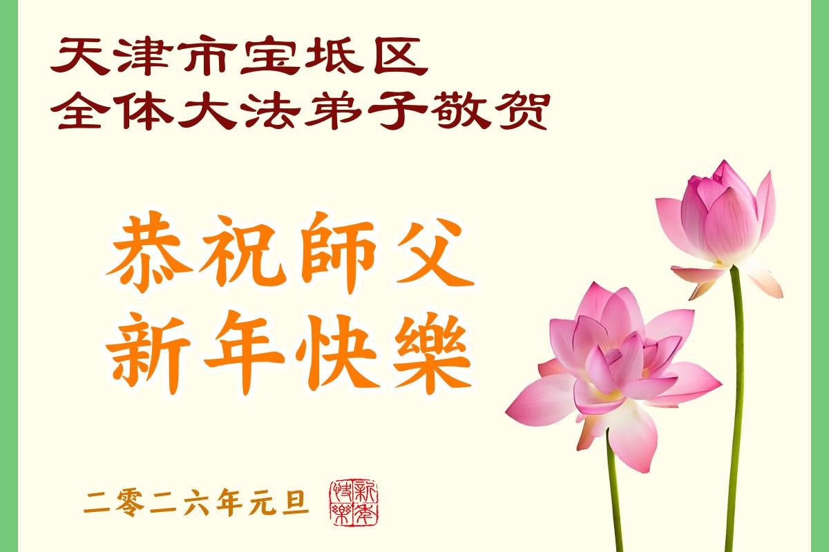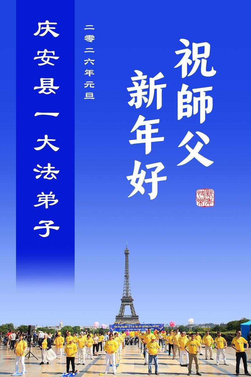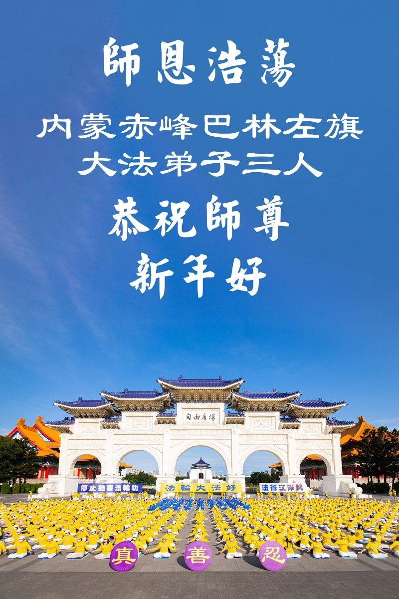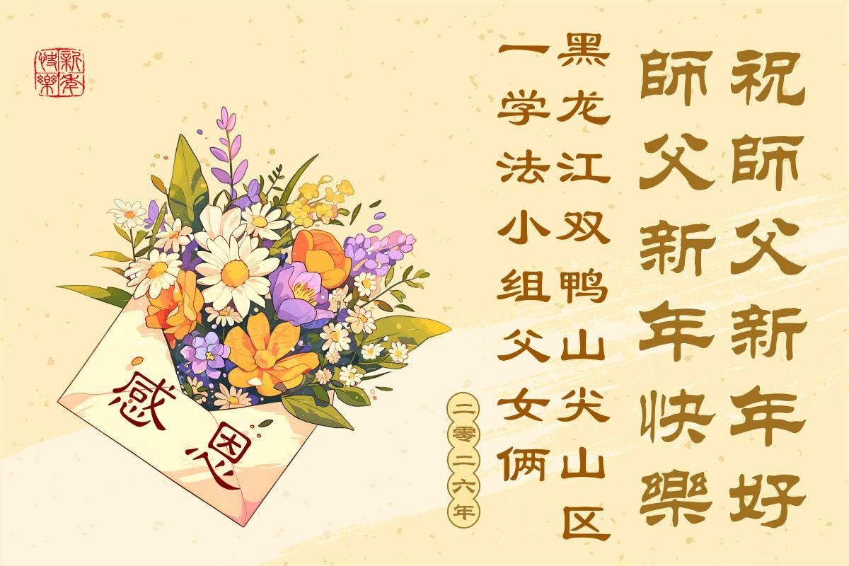 以下是部份來自中國各省、市、地區的學法煉功小組、講真相小組、資料點大法弟子們敬致師尊的新年賀詞賀卡: