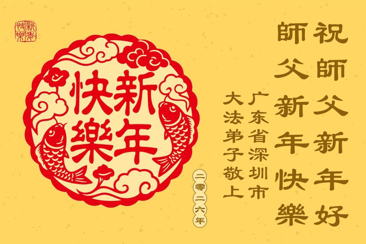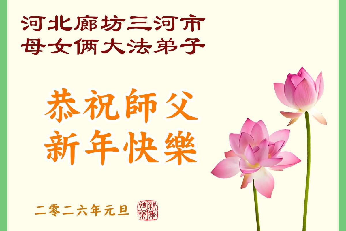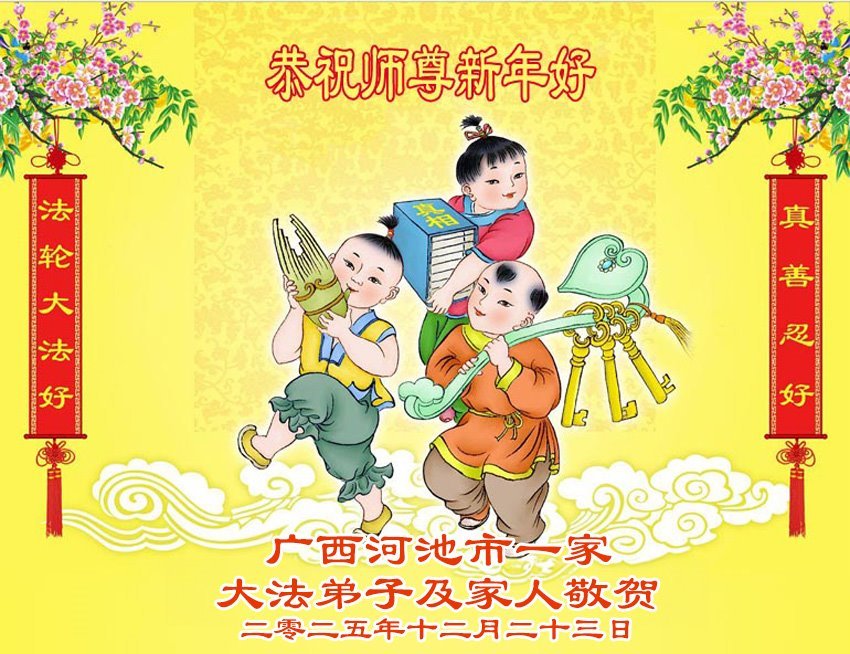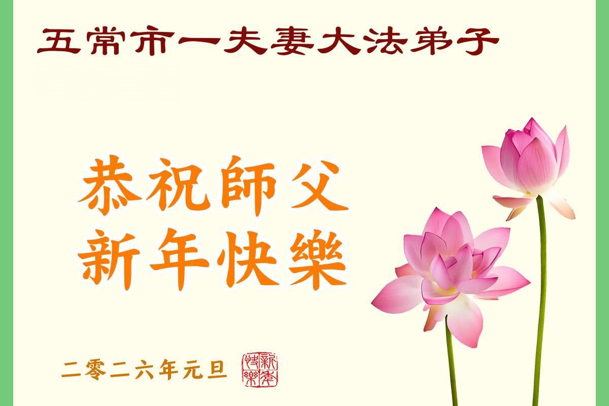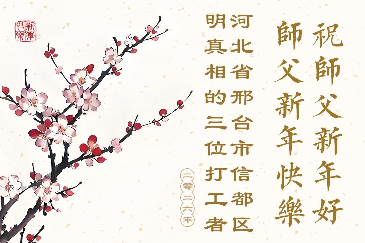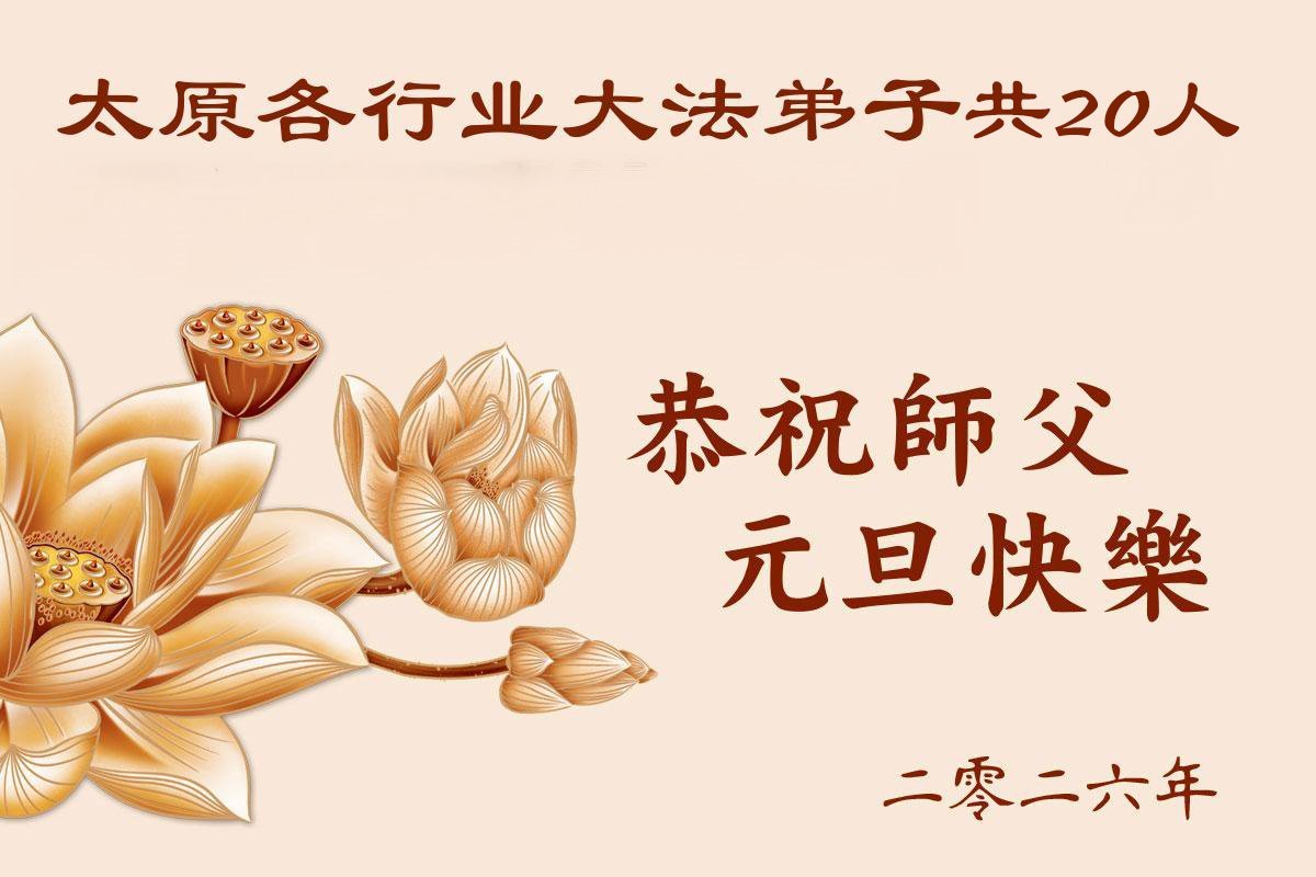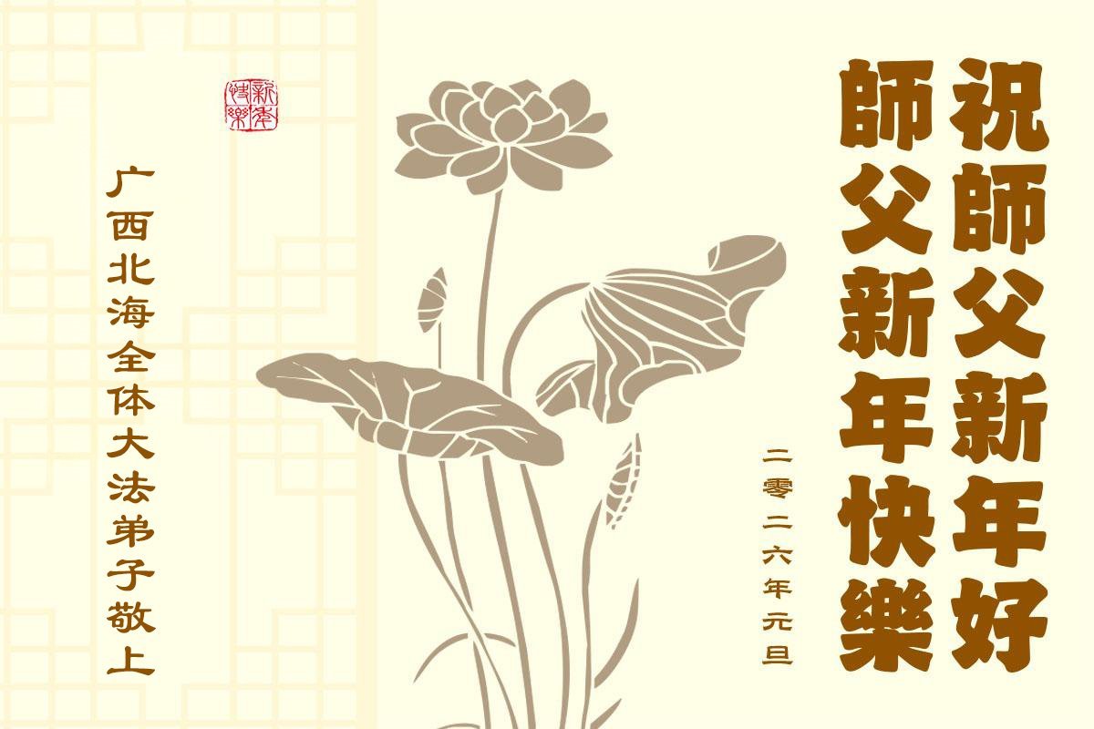 以下是部份來自中國各省、市、地區的學法煉功小組、講真相小組、資料點大法弟子們敬致師尊的新年賀詞賀卡: