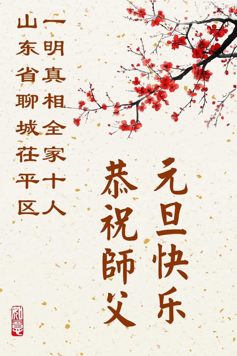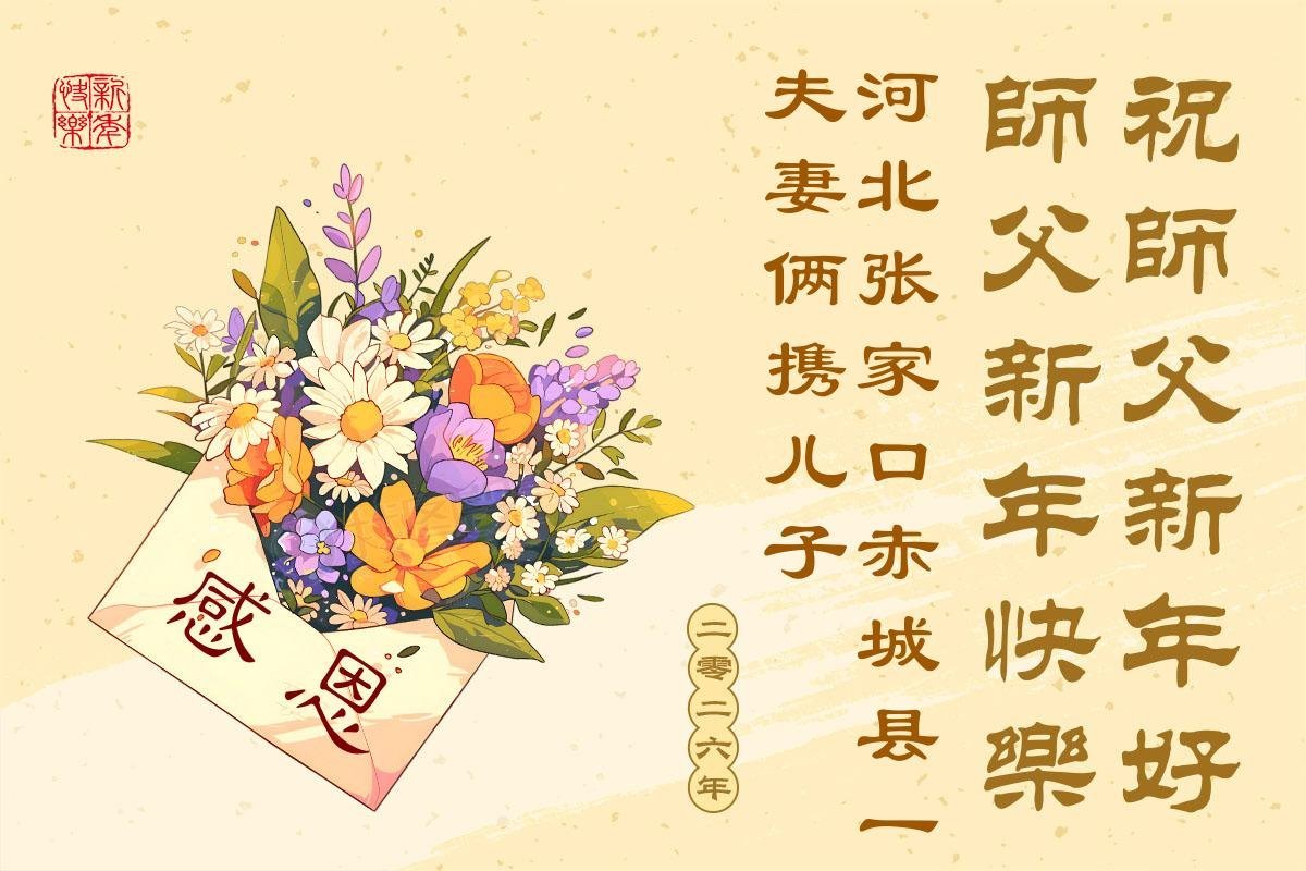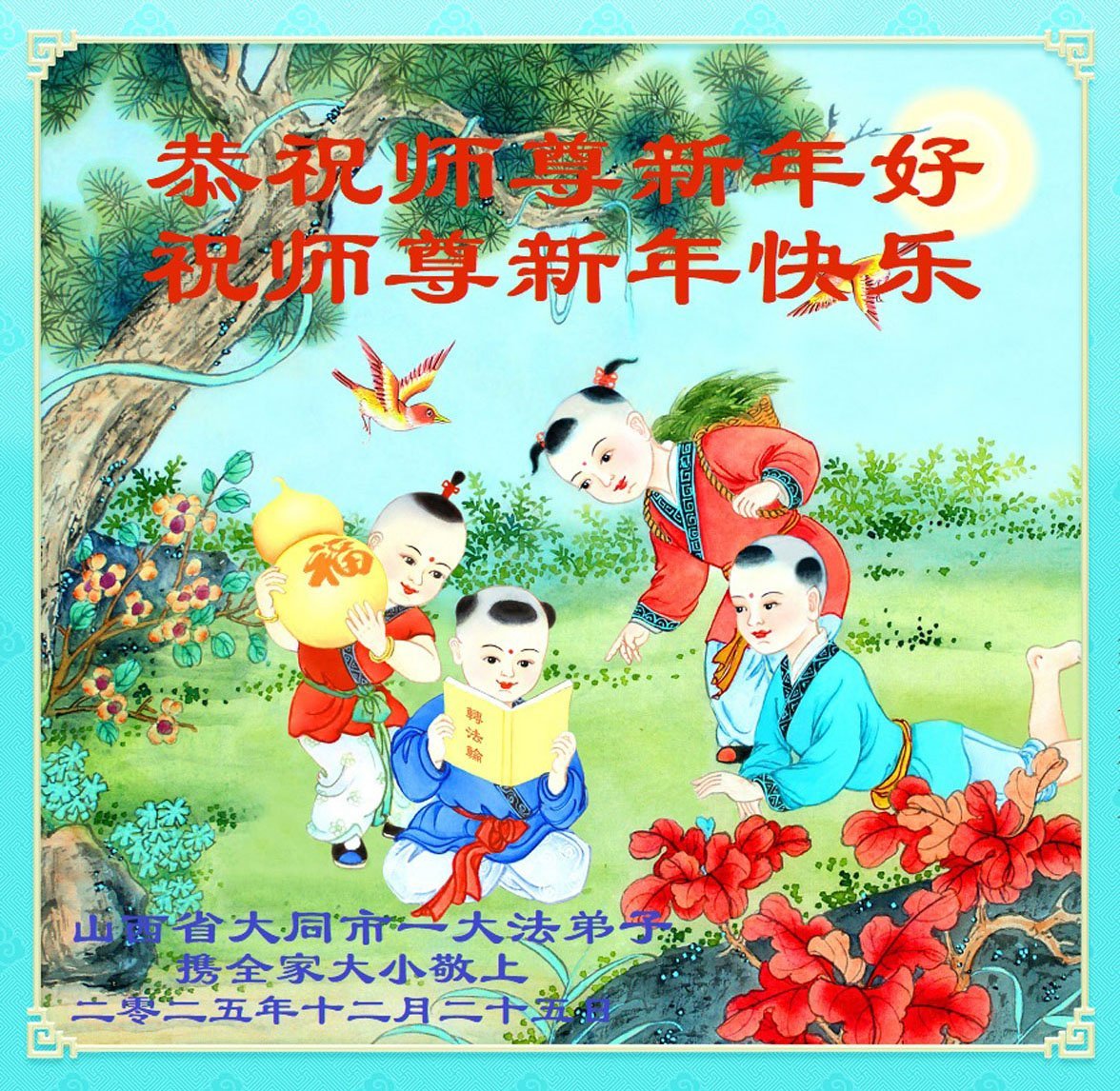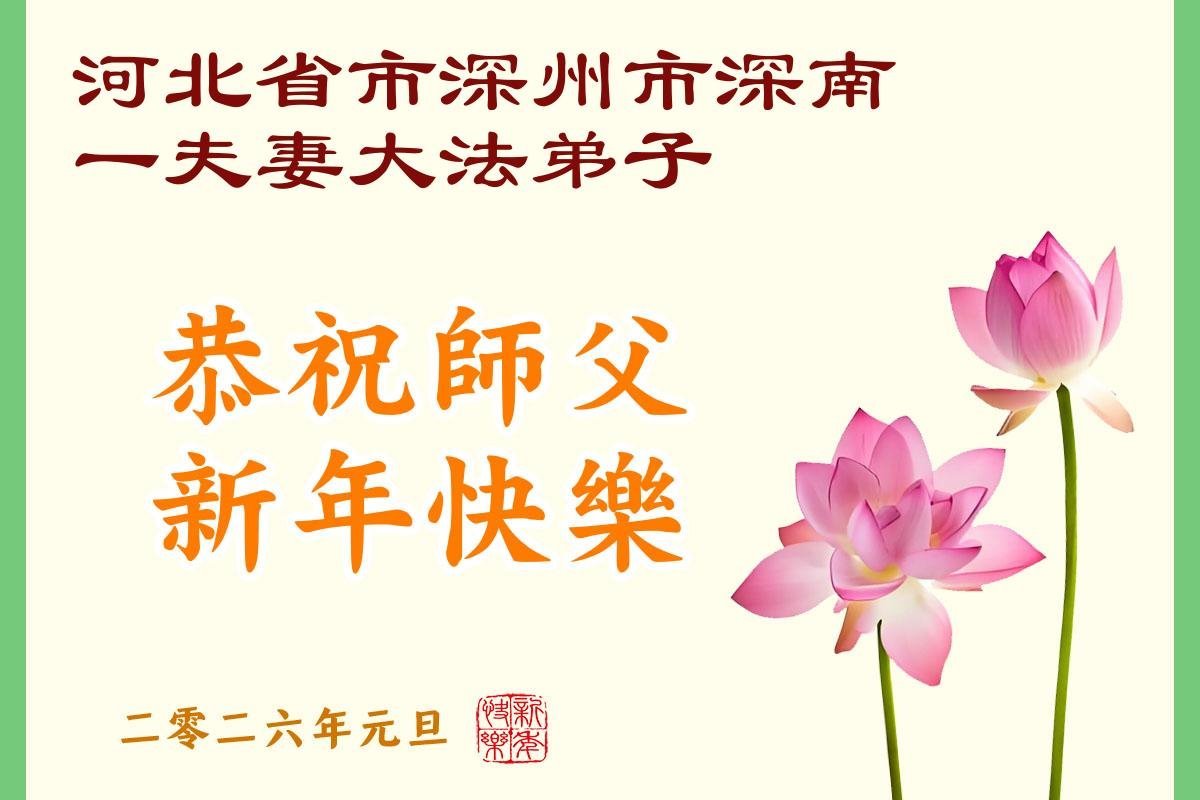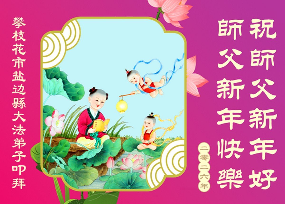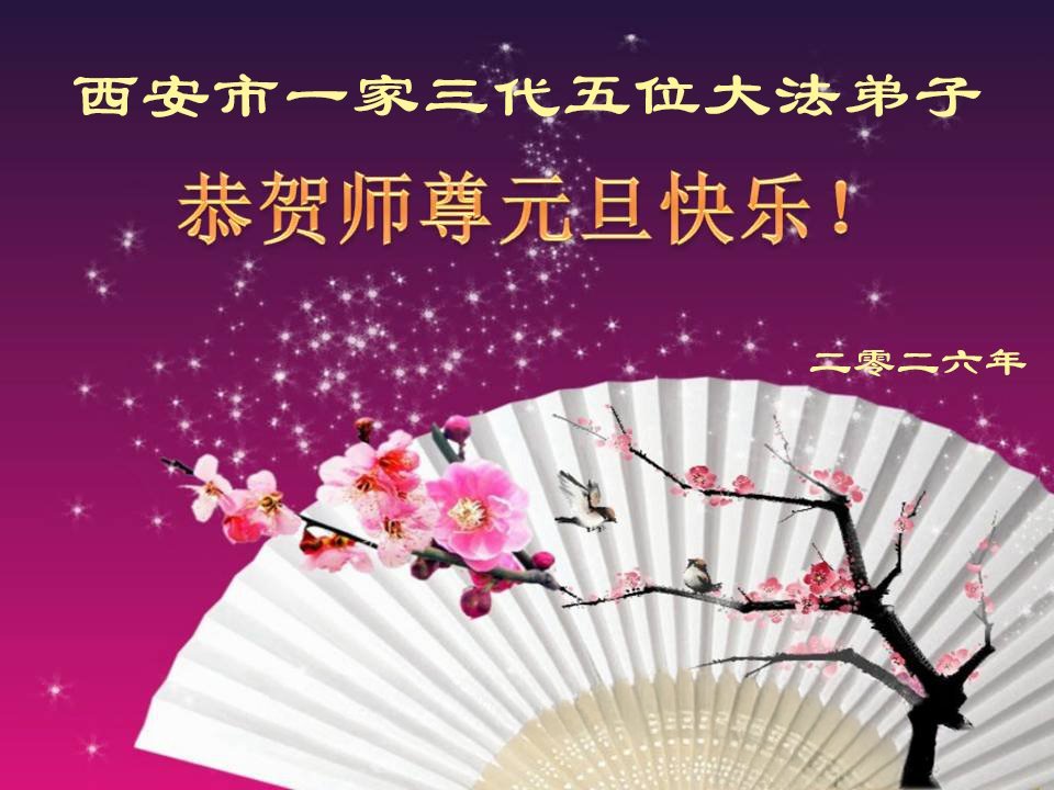 以下是部份來自中國各省、市、地區的學法煉功小組、講真相小組、資料點大法弟子們敬致師尊的新年賀詞賀卡: