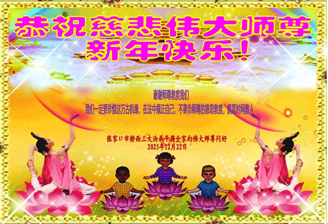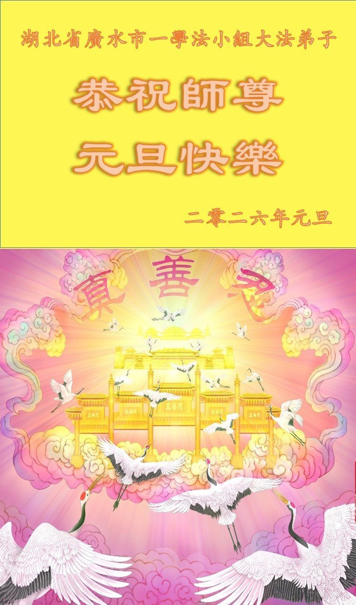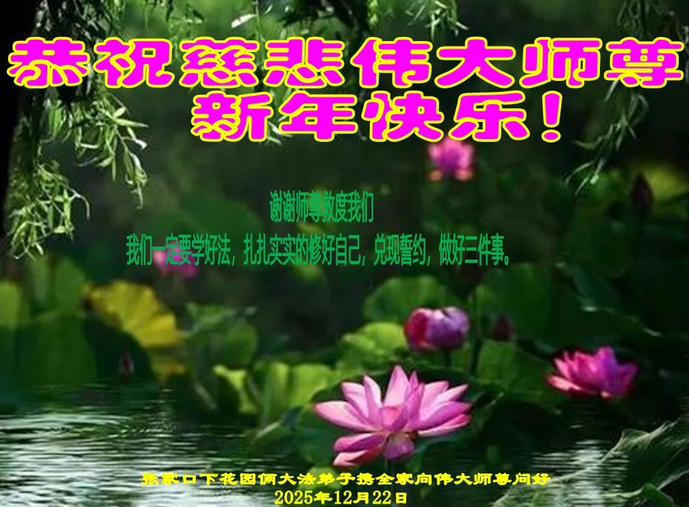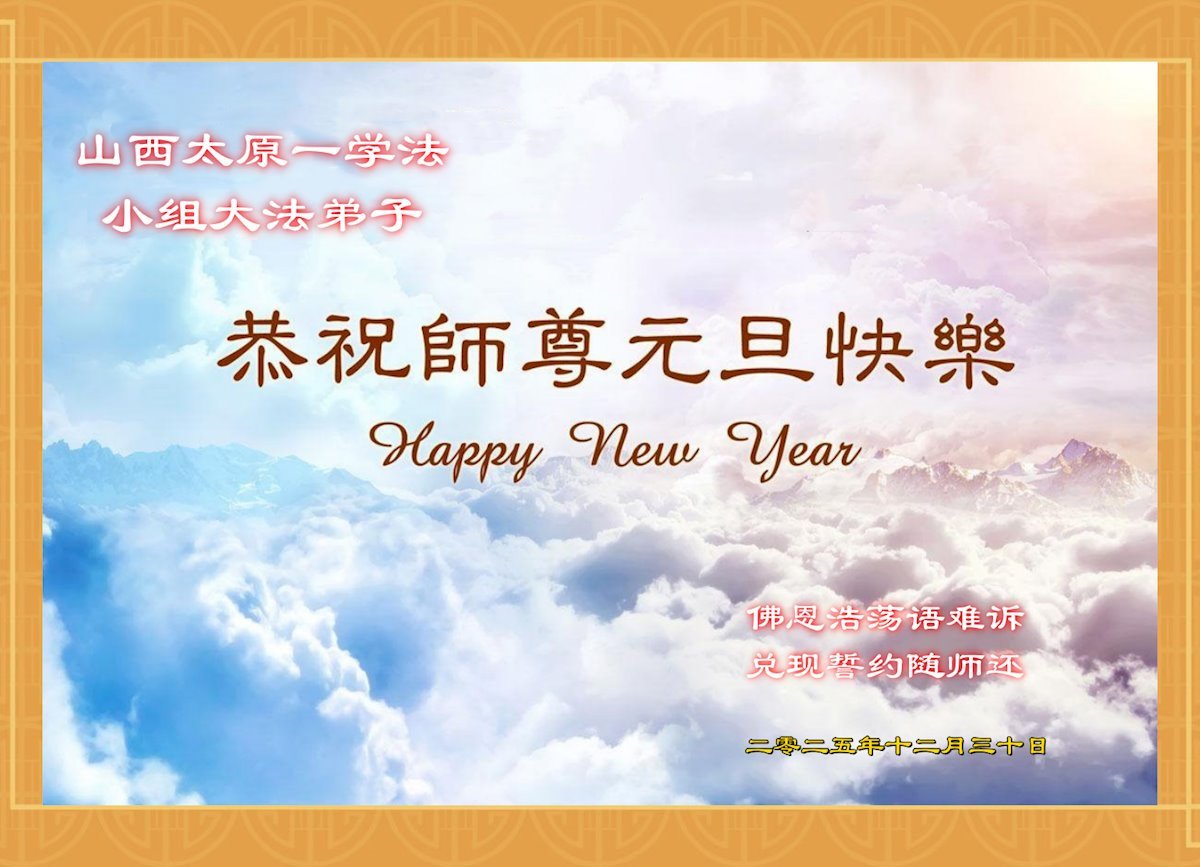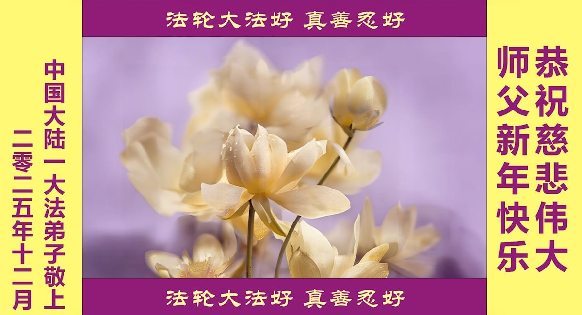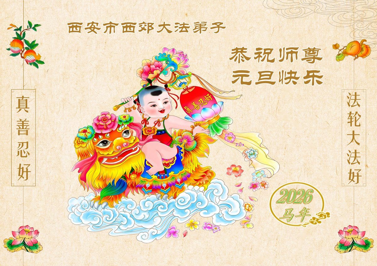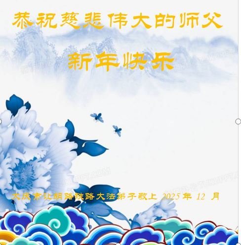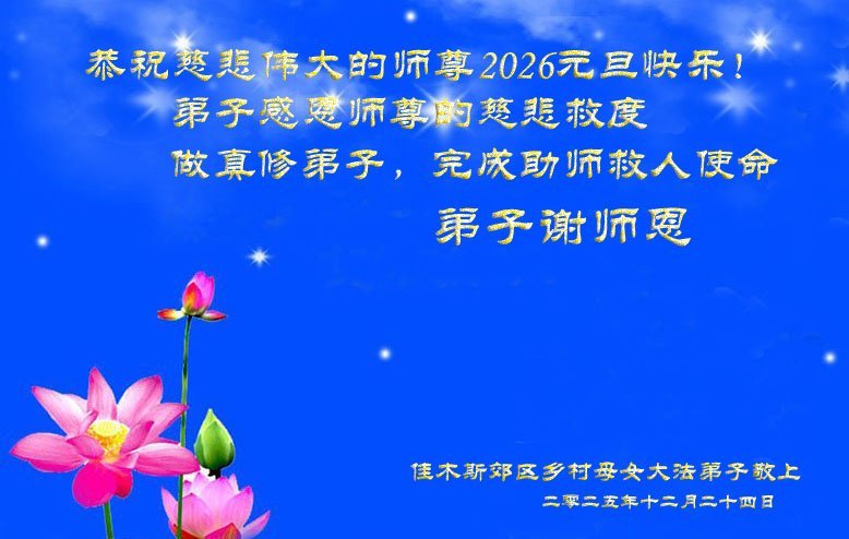 【明慧網二零二五年十二月三十一日】二零二六年新年鐘聲敲響之際,中國大陸30省、直轄市、自治區大法弟子同拜師尊,恭祝慈悲偉大的師尊新年好!