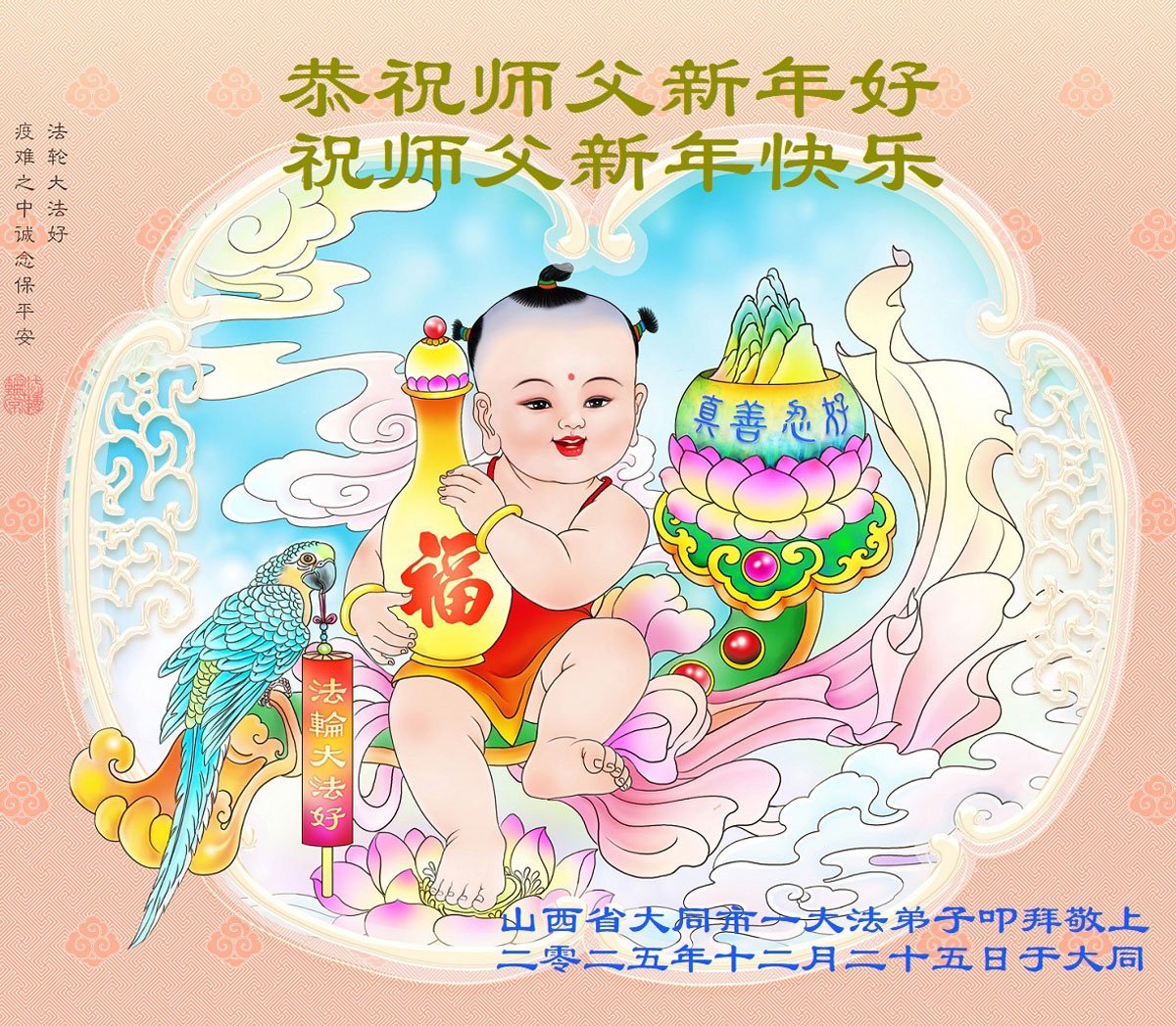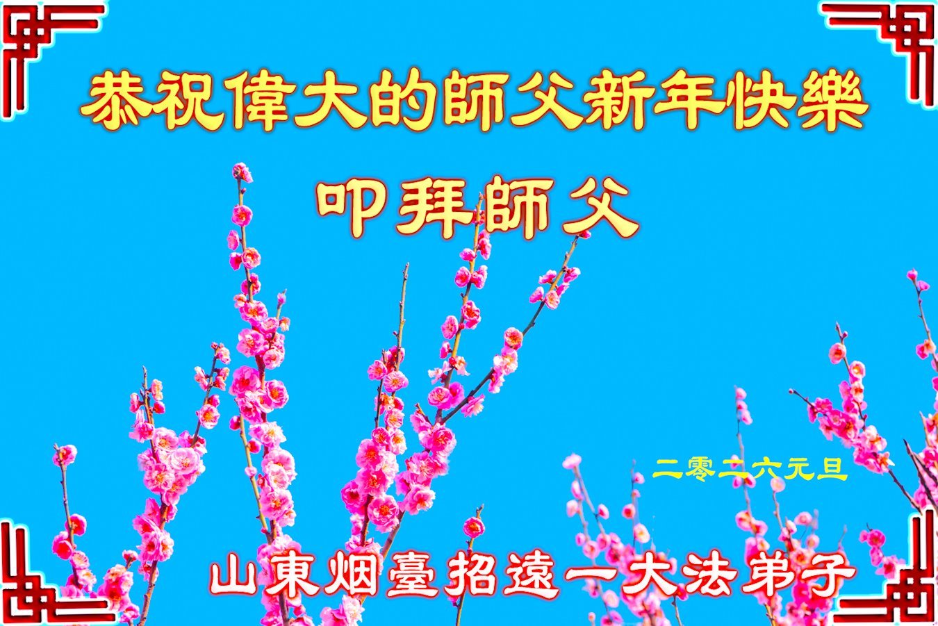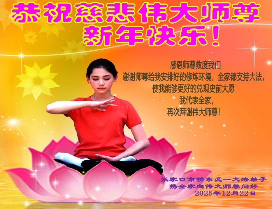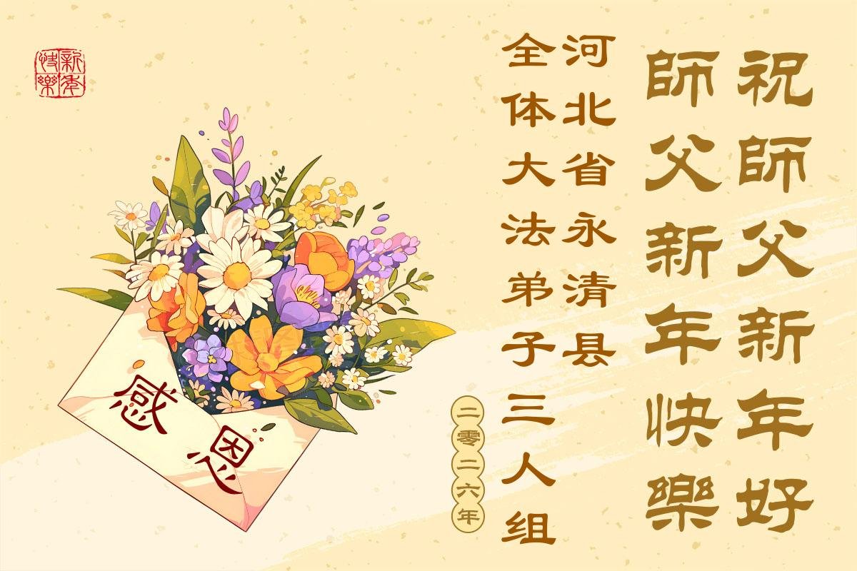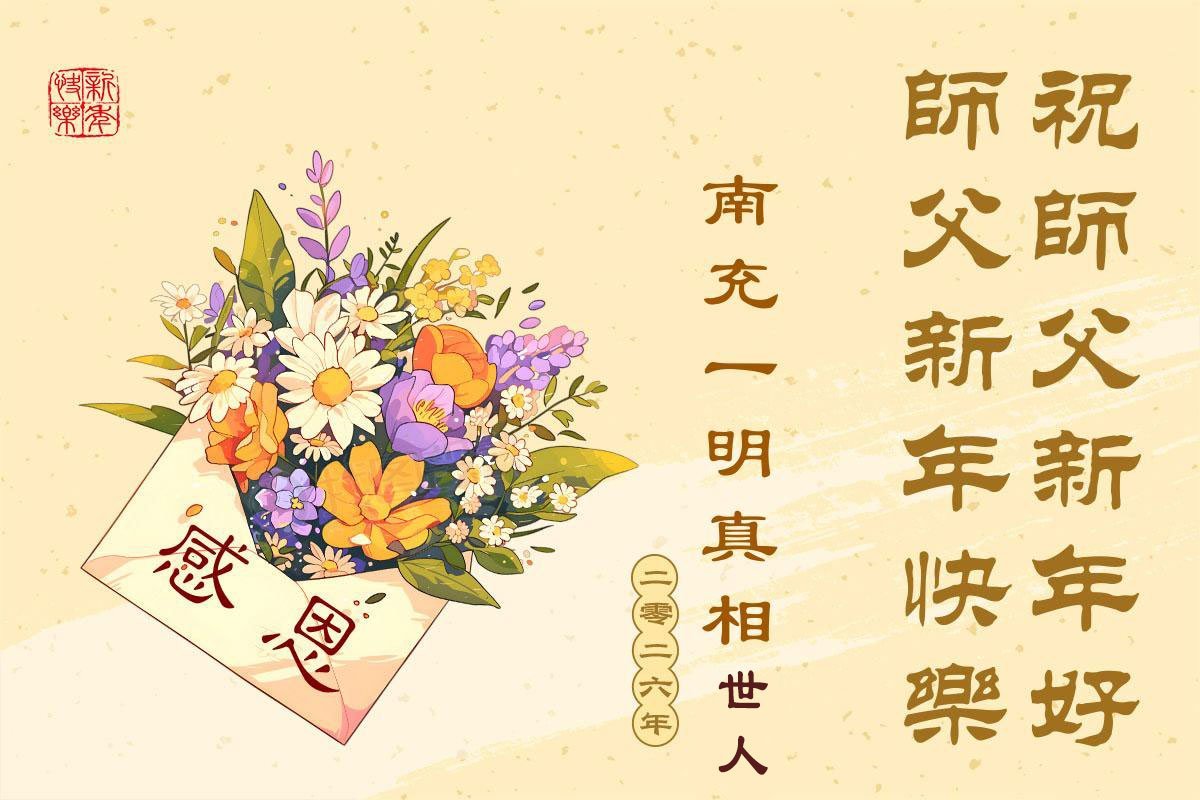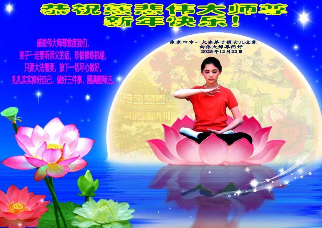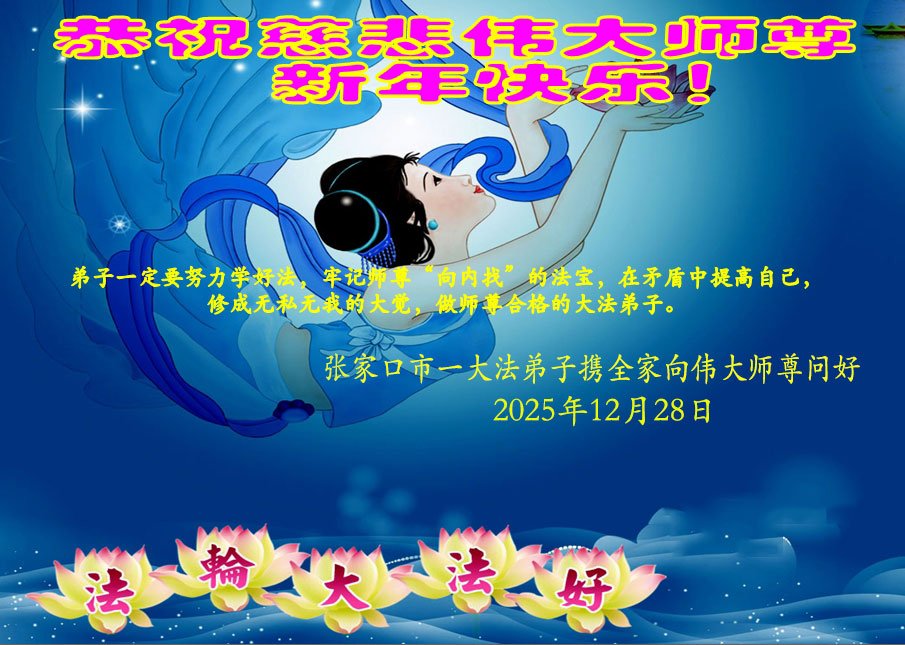【明慧網二零二五年十二月三十一日】二零二六年新年鐘聲敲響之際,中國大陸30省、直轄市、自治區大法弟子同拜師尊,恭祝慈悲偉大的師尊新年好!