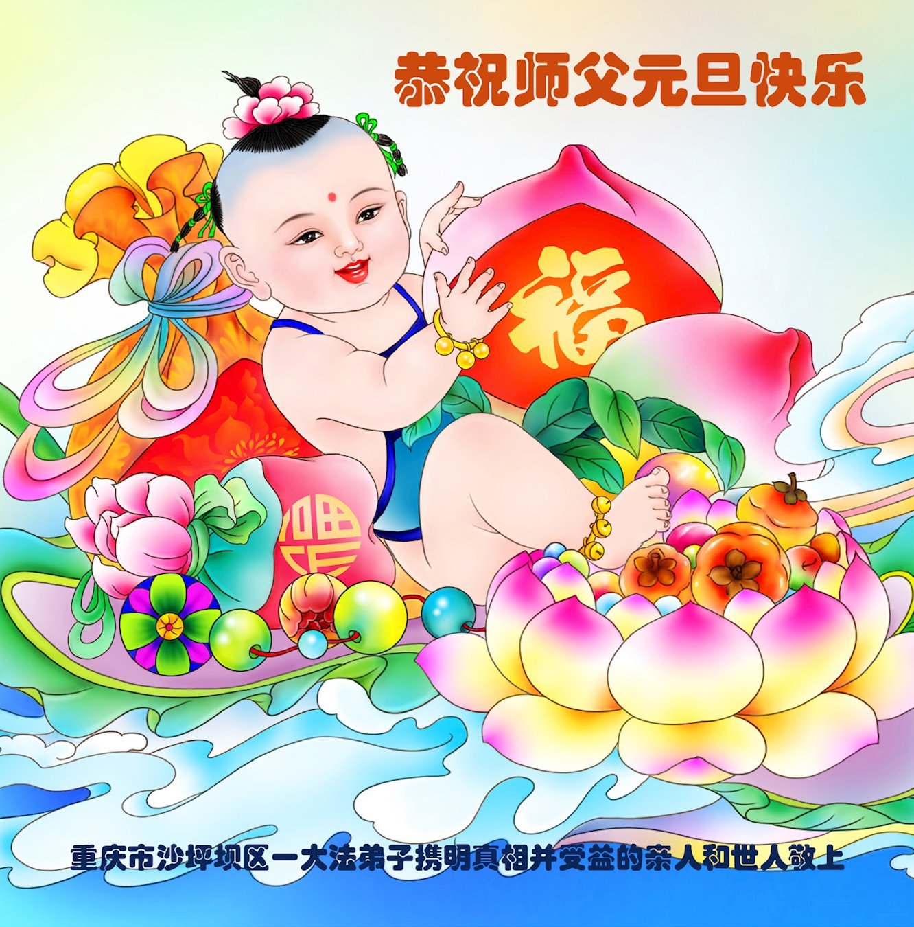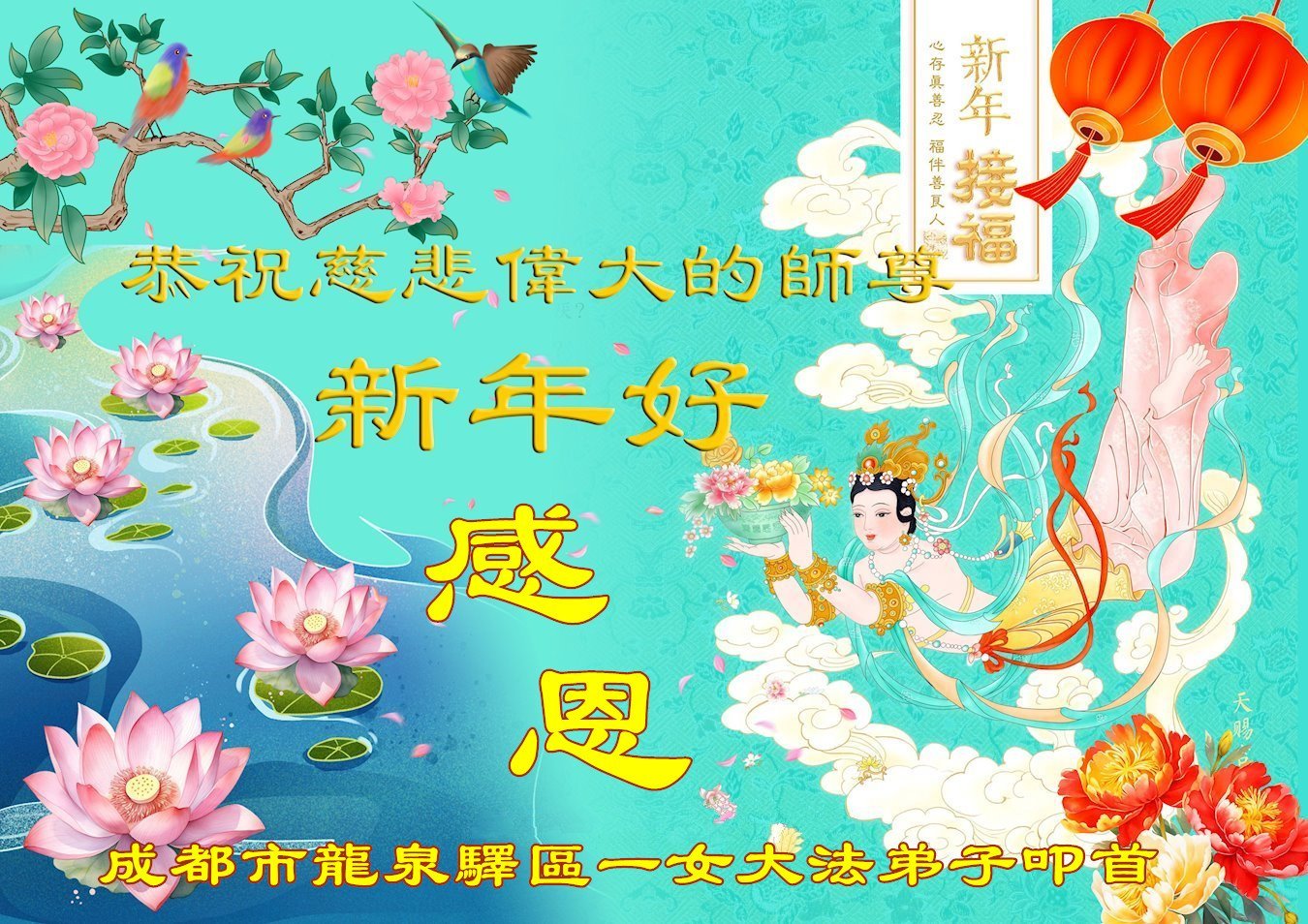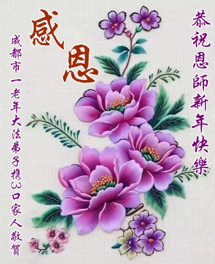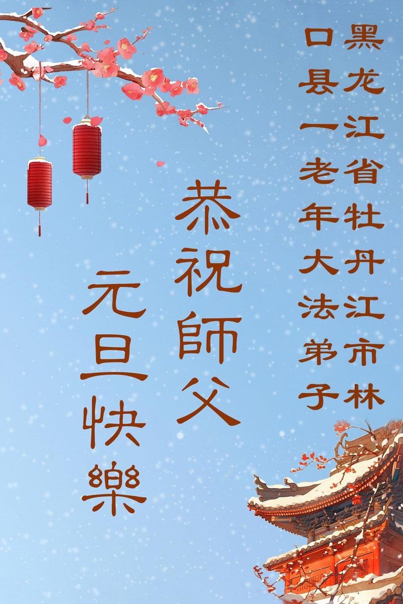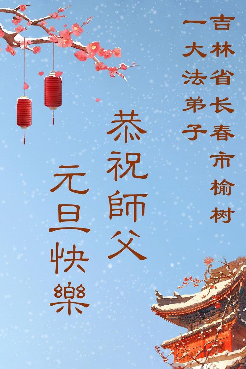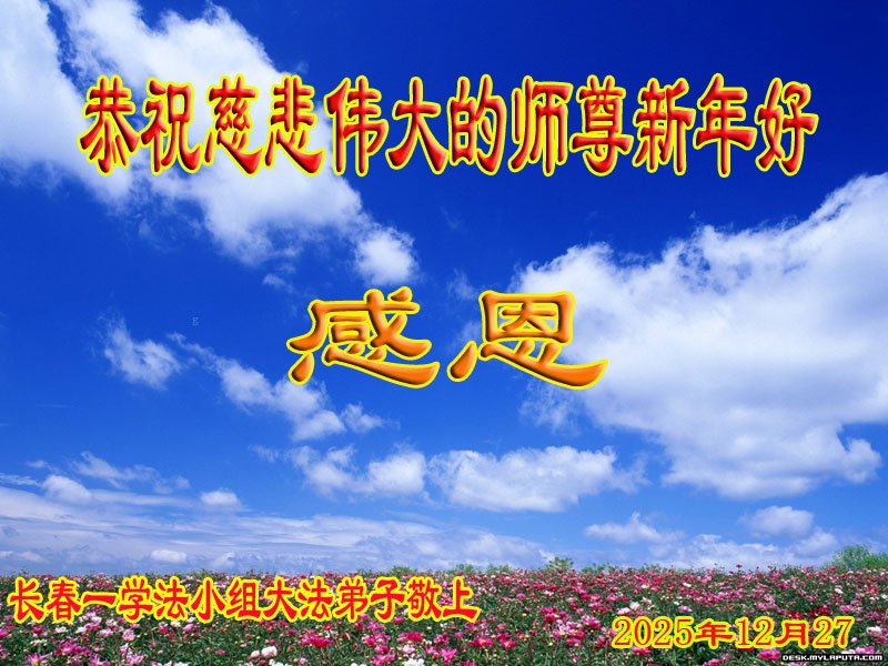 時光飛逝,一晃新的一年又開始了,在這辭舊迎新的日子裏,恭祝慈悲偉大的師父新年快樂!感恩師父時刻的慈悲看護和加持,弟子才能在這特殊的歷史時期,能一如既往的做好自己分內之事。對師父的感恩之心無以言表,弟子會更加精進,兌現誓約,讓師父少些操勞,多些安慰。遙拜叩謝恩師!