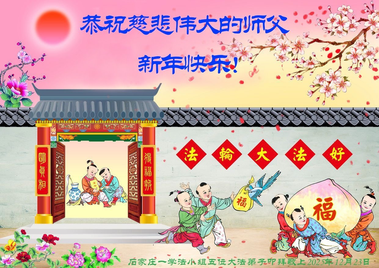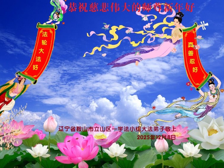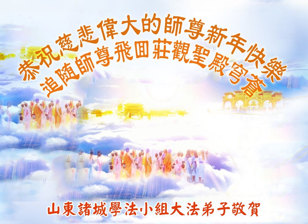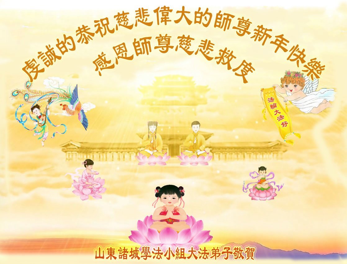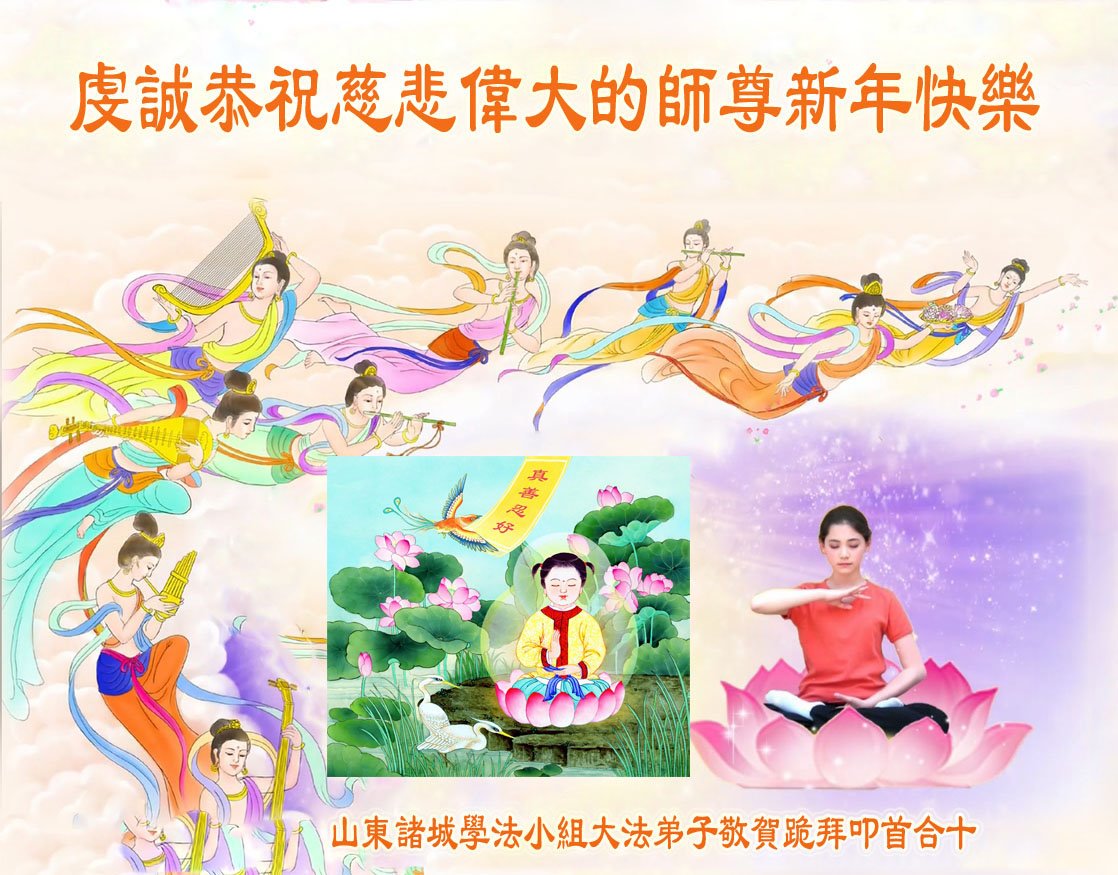 慈悲偉大的師尊您好,您辛苦啦!新年到來之際,我們十個學法小組的弟子們合十恭祝師尊新年好!新年快樂!弟子感恩師尊慈悲普度!我們每天三三兩兩的一起出去面對面講真相救人,一起學法,相互提醒,共同昇華,做好三件事圓容師尊要的。感恩師尊對弟子的一路加持看護!