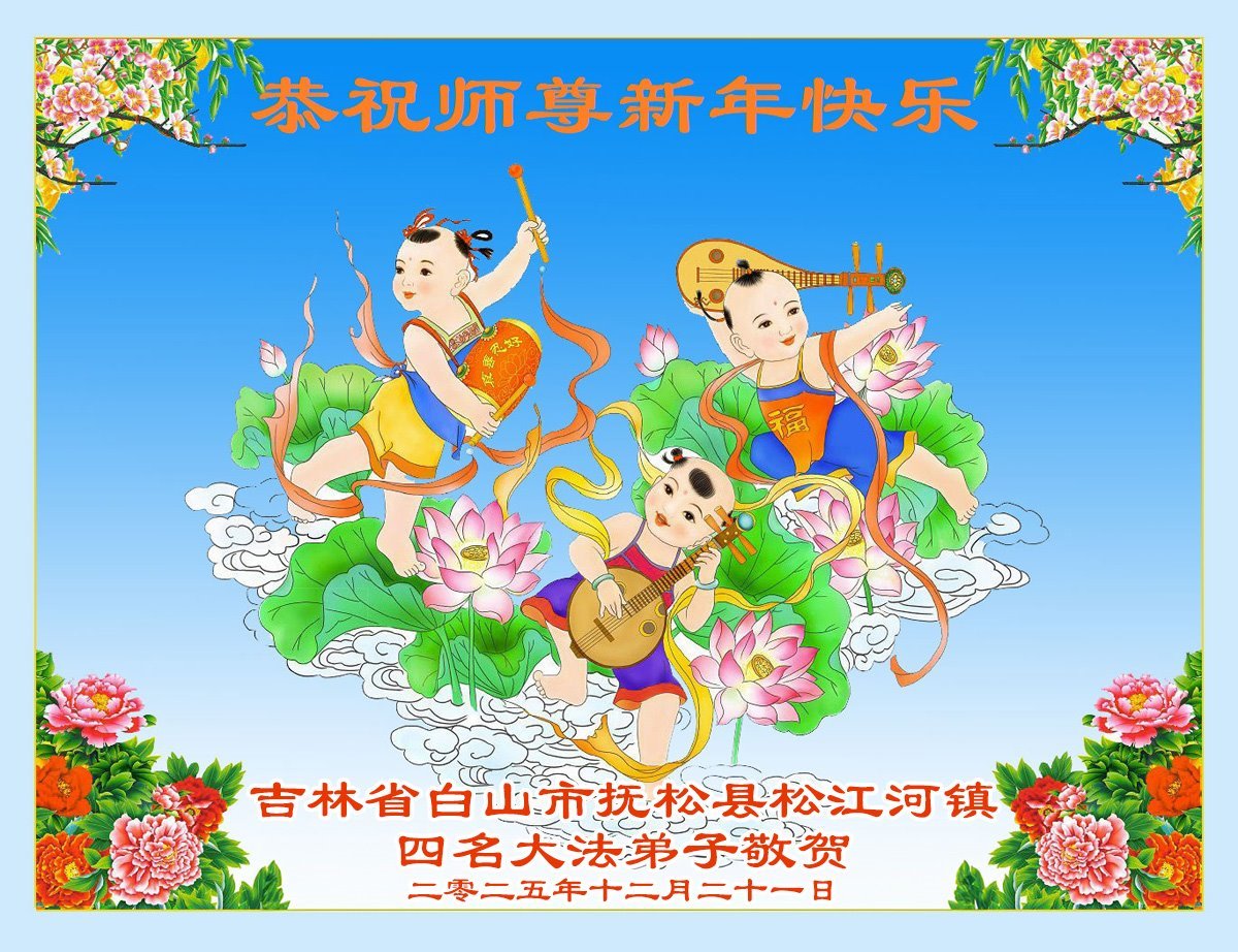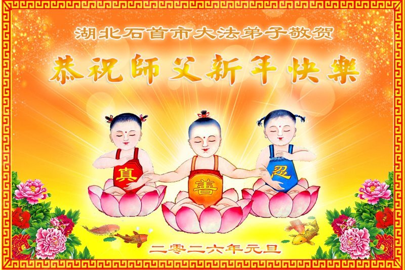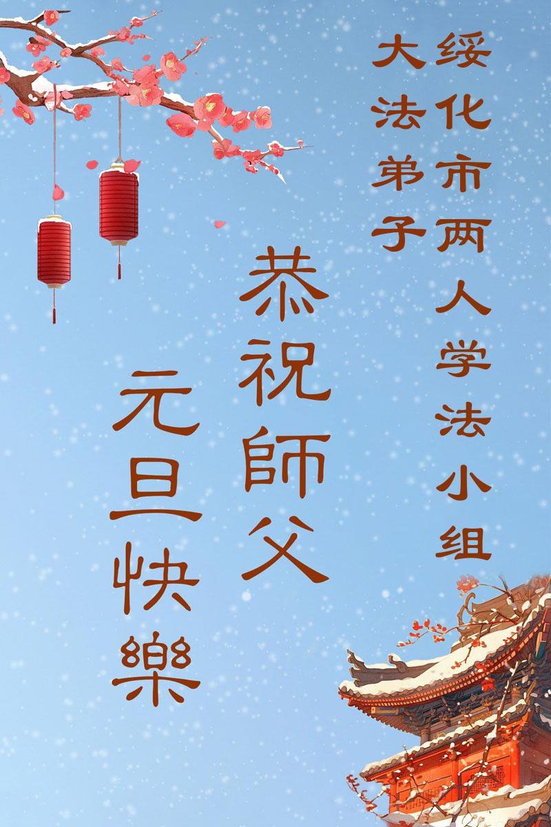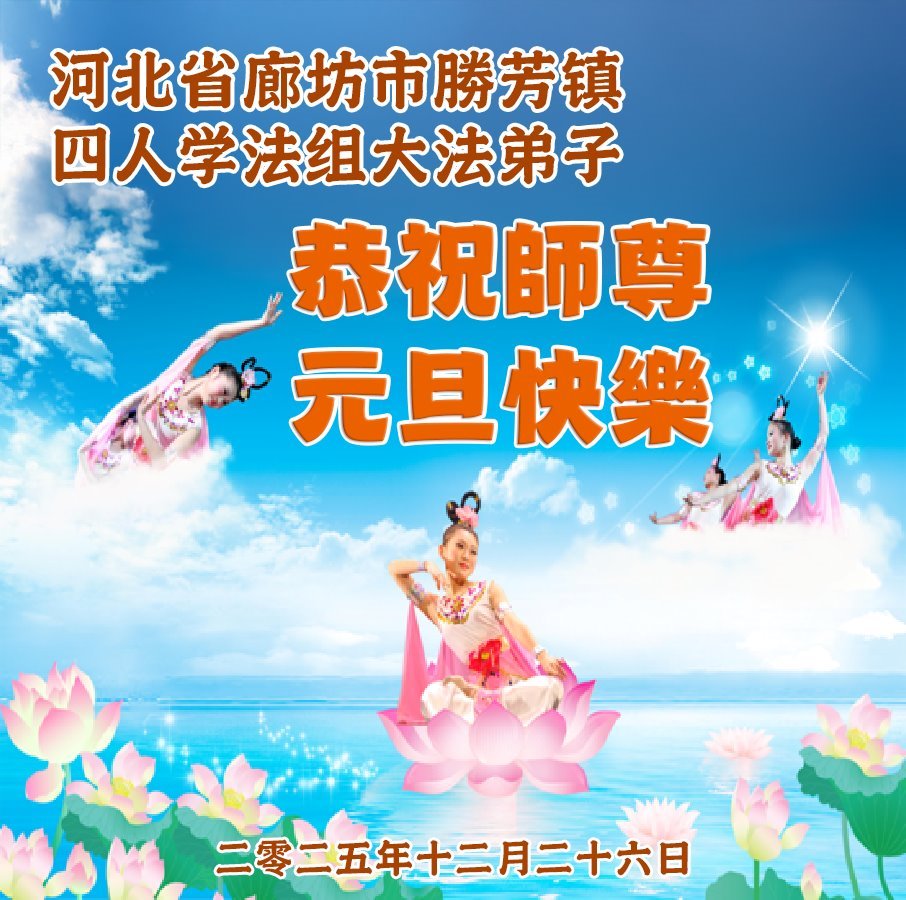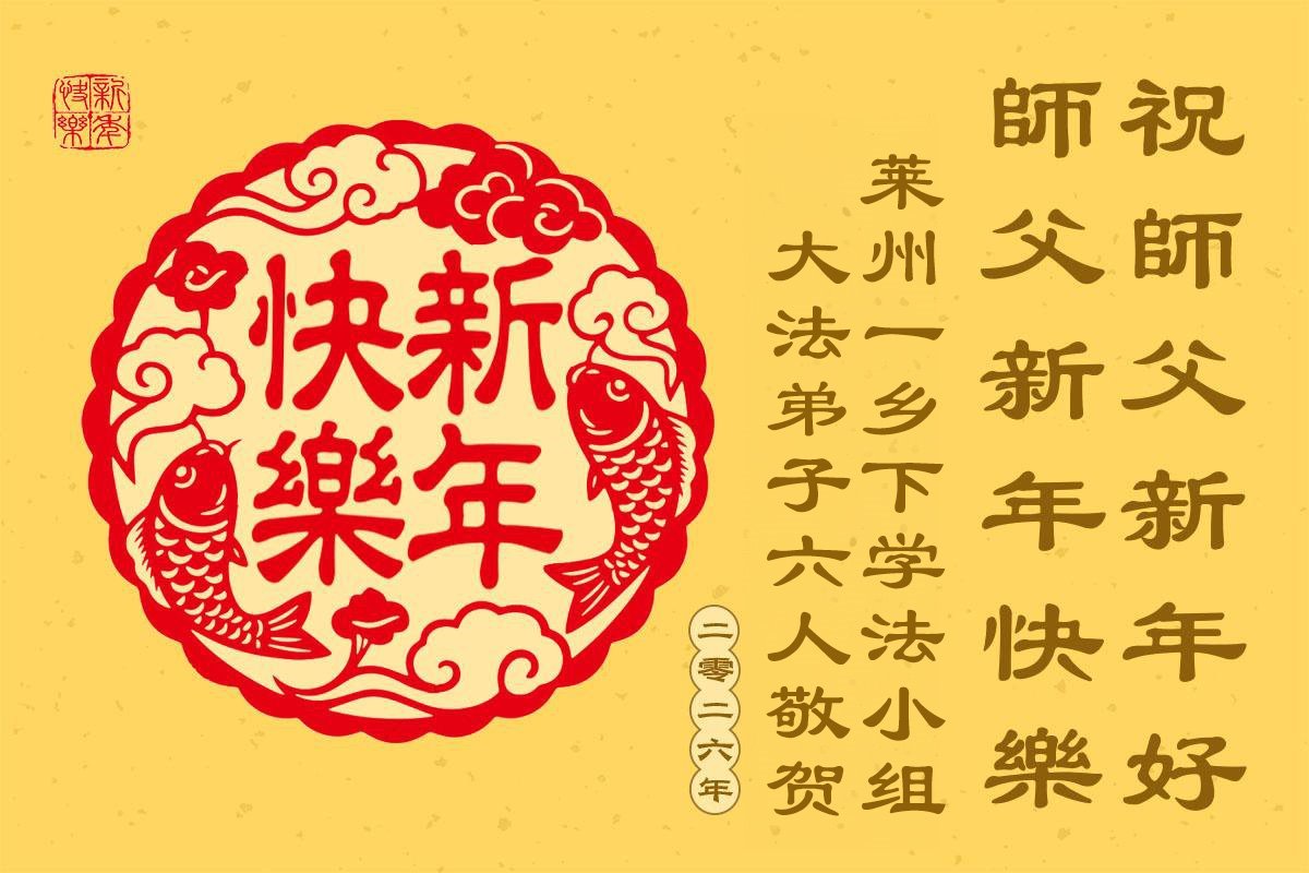 慈悲偉大的師尊您好,您辛苦啦!新年到來之際,我們十個學法小組的弟子們合十恭祝師尊新年好!新年快樂!弟子感恩師尊慈悲普度!我們每天三三兩兩的一起出去面對面講真相救人,一起學法,相互提醒,共同昇華,做好三件事圓容師尊要的。感恩師尊對弟子的一路加持看護!
