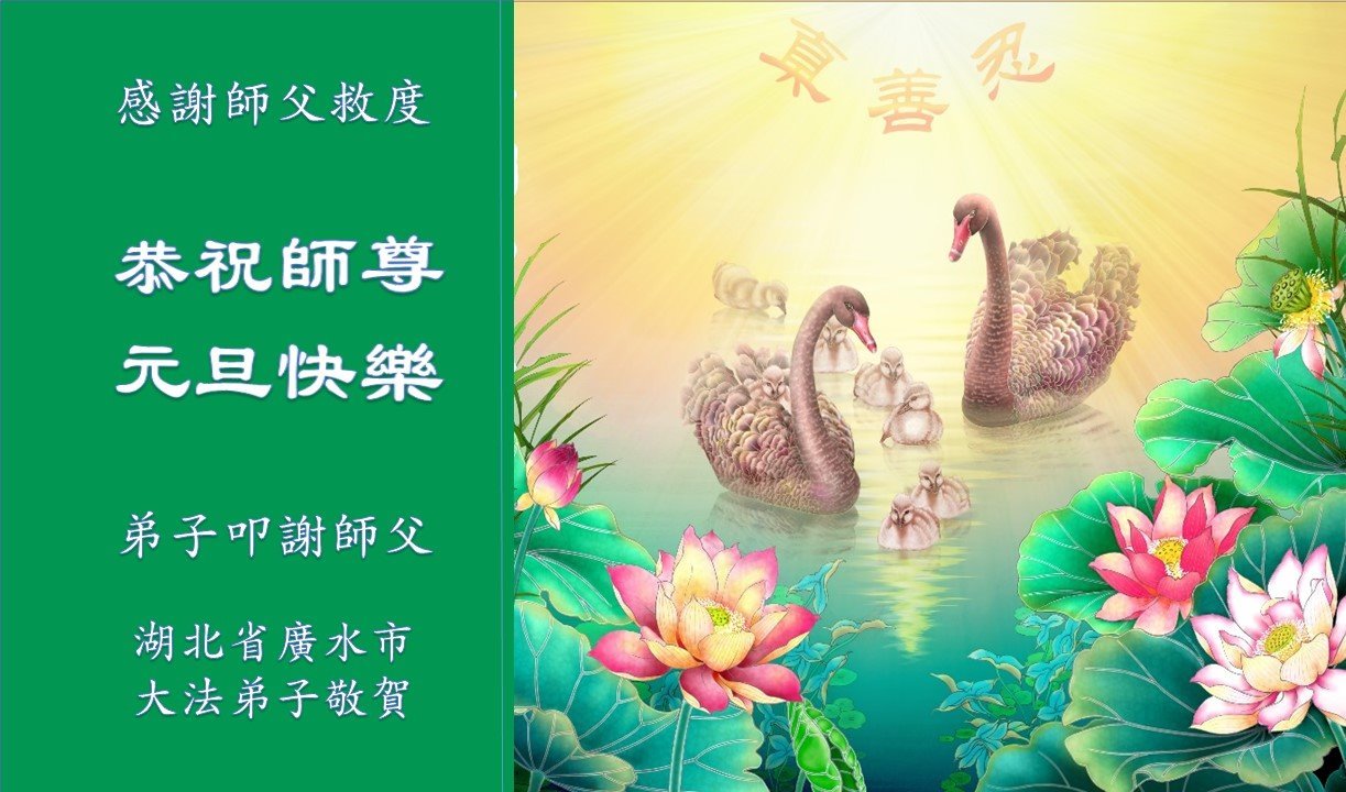 弟子得法近十年,修煉路並不平坦,但是身心靈獲救後的輕鬆和愉悅,用任何語言都無法表述對師父的感恩!新的一年又將來臨,弟子知道是師父巨大的承受給我們又延續來了一個新年,弟子深知只有更加努力精進,做好三件事,多多救人,兌現好史前大願,才是對師父最好的報答。感恩師父!
