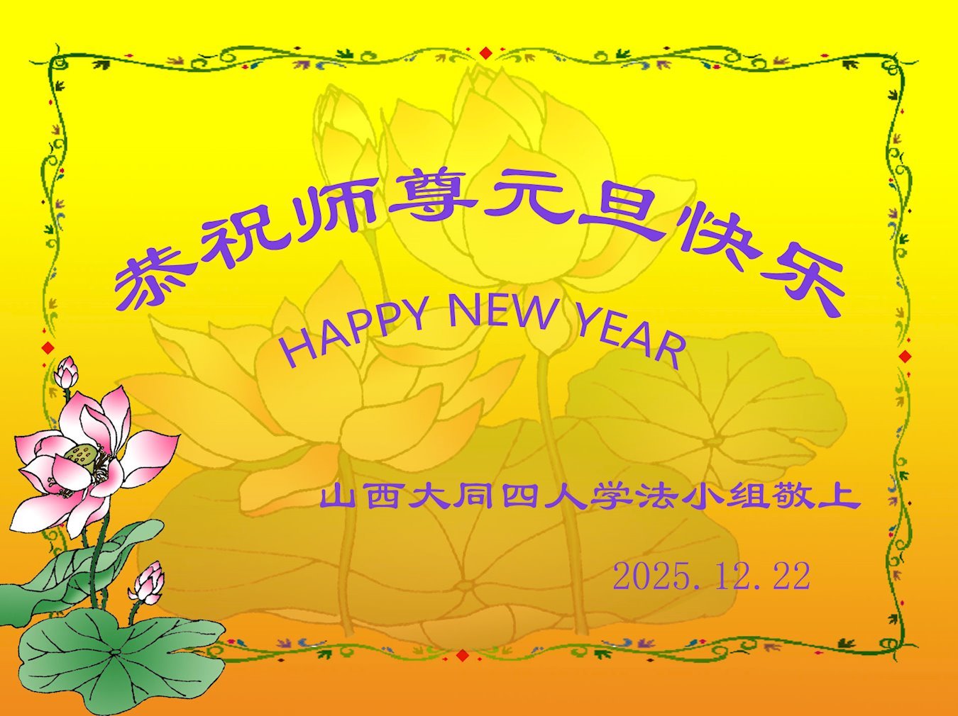 在新的一年到來之際,弟子們及家人遙祝師尊及您的家人新年快樂!